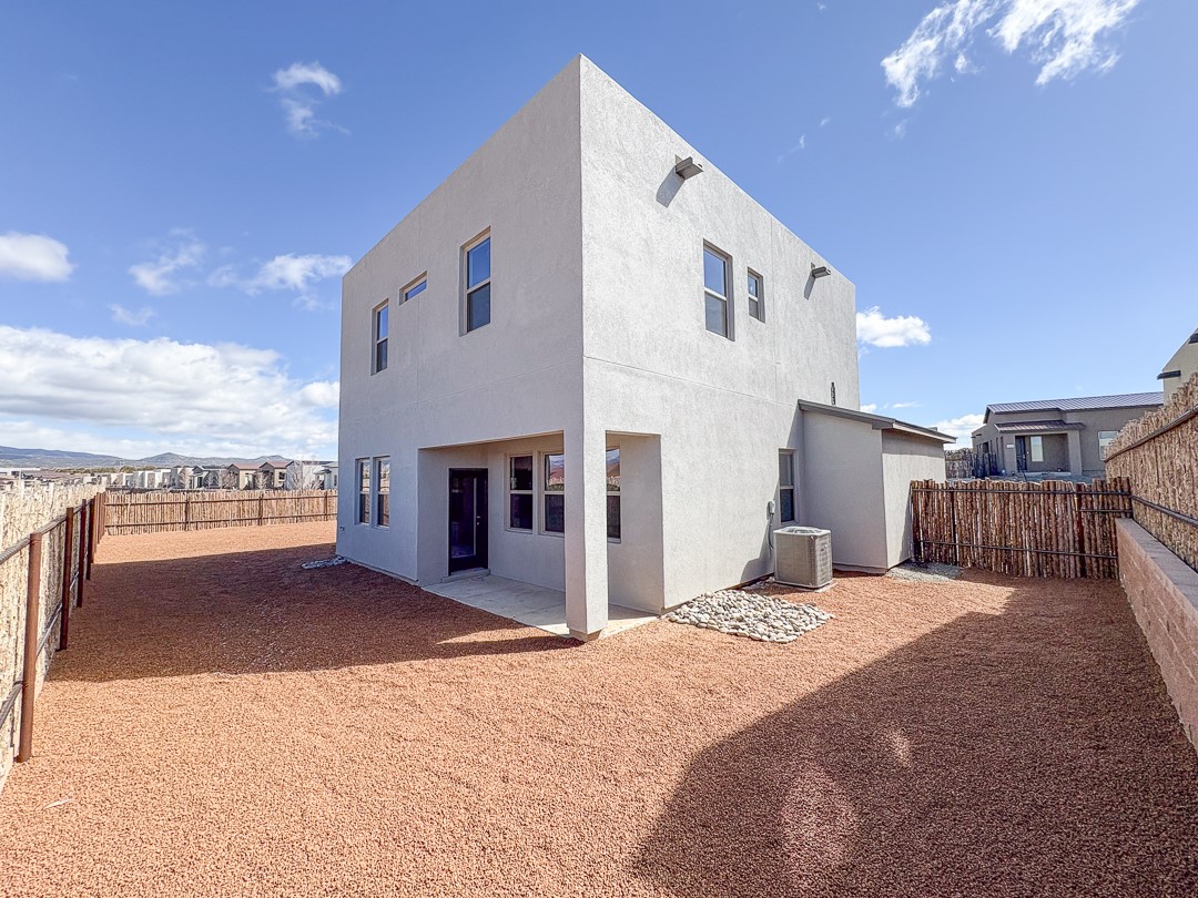 Welcome to this beautiful two-story Desert Sage home! Thoughtfully designed, it features spacious communal areas along with a versatile bonus room on the main floor, perfect for added privacy while still offering plenty of space for entertaining. Upstairs, the generous loft provides an additional place to unwind without sacrificing room for the three comfortable bedrooms.These exceptional homes are Build Green NM Certified and come equipped with energy-efficient features, including a tankless hot water heater, 100% blown-in recycled cellulose insulation, and low-E, double-pane windows. Front landscaping is also included and connected to a low-flow irrigation system, offering both convenience and sustainability.Come check out the big backyard, a wonderful space with endless potential for outdoor living, play, or relaxation.