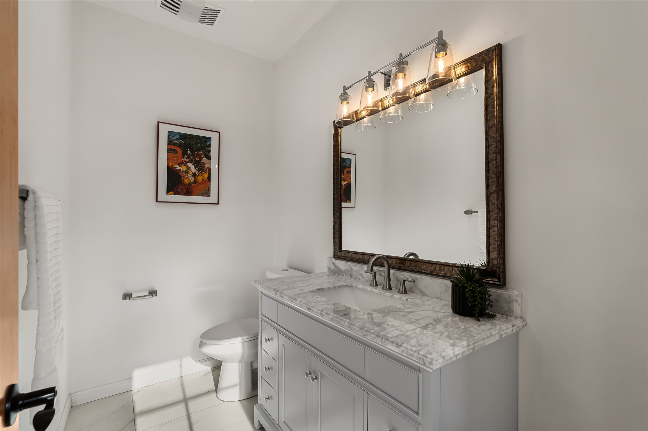 Elegant Eastside Living on Upper Canyon Road - Set in a premier Eastside location across from the tree-lined Santa Fe River Park, this beautifully designed and built 4-bedroom, 4.5-bathroom estate blends timeless Southwestern charm with modern luxury. Offering approximately 3,800 square feet on a 0.45-acre lot, the property includes a 3BD/3BA main residence and a 1BD/1BA guest suite, thoughtfully designed for comfort, privacy, and style. Inside, clean architectural lines meet regional authenticity with vigas, corbels, and nichos, complemented by diamond-finish plaster walls, wide porcelain tile, and rich wood flooring. The open-concept layout flows seamlessly through the home, anchored by a chef's kitchen with custom cabinetry, stainless steel appliances, a farmhouse sink, and an expansive marble center island. The living and dining spaces feature vaulted ceilings, art-worthy wall space, and abundant natural light. A serene primary suite offers a walk-in closet, artisan stained-glass windows, and a spa-like bath with soaking tub and glass-enclosed shower. Radiant heat and mini-split systems (with heat and a/c) throughout ensure year-round comfort. The landscaped grounds invite outdoor living with portals and patios ideal for entertaining or quiet reflection. A privacy wall encloses the property, and an oversized one-car garage offers additional storage. Located near the historic Cristo Rey Church--a landmark by architect John Gaw Meem--this property captures the essence of Santa Fe living: elegant, rooted in history, and surrounded by natural beauty.