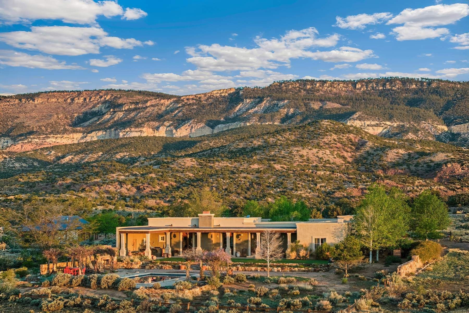 Apache Mesa Ranch is a timeless sanctuary, where the past meets the present in a landscape that has inspired generations. Unparalleled views of the rolling grasslands, ancient rock outcroppings, and miles of pion, ponderosa, and juniper offer a soothing visual harmony -- that unmistakable "Southwest Zen." Located just 70 miles north of Santa Fe, the ranch is comprised of a primary residence, a gorgeous guest house as well as three additional secondary casitas, each capable of being fully independent and self-sufficient homes. But first: the 4,640-sf main house, built in 2004 inspired by the estancias of South America, strikes the perfect balance between rustic and refined. This spectacular home was lovingly constructed in close collaboration with some of the finest craftsmen in northern New Mexico. You'll relish the authentic architectural details at every turn, including antique doors sourced from Chihuahua, Mexico; hand-scraped oak living room & dining room floors affixed with handmade nails, wide pine plank floors in the main bedroom, and beautifully crafted cabinetry throughout the entire home. All the primary buildings are constructed of authentic adobe (warm in Winter, cool in Summer) and each room features its own unique ceiling treatment that includes reclaimed and hand-finished wood vigas. The central courtyard of this elegant hacienda-style home, known as the placita, creates a serene refuge. Enter through an ancient zaguan passage, lined with stone sourced from property. The charming internal colonnade is paved with vintage bricks from across the US, adding texture and delight underfoot. The one-of-a-kind kitchen features antique French tile floors, a wood-fired oven, a custom wood island with seating, a Viking range and adjacent butler's pantry. Outside, looking over the classic pool and grapevine-covered pergolas is an undisturbed view of the iconic Cerro Pedernal, the mesa that famously captivated Georgia O'Keeffe. At night, a sky untarnished by city lights and awash with stars is as vast and brilliant as the land itself. Steps from the main house, the two-car carriage house with attached studio/office features its own bath, plus connections for a kitchen. Additional structures on the property include the original 1049-sf 1bd/1ba casita set a mile further uphill, high on a mesa with a portal with the biggest views of them all; half a mile from the main house is a large workshop & writer's studio with fireplace and sweeping views of the scenery -- the perfect place to dream big dreams; and an additional 2bd/1ba caretaker's casita that is perched above the main gate. The equestrian facility, complete with world-class dressage arena by Premier Equestrian LLC, horse barns, tack room and an adjacent horseshoe canyon; a perfect place for the horses to roam. Multiple sites on the property could accommodate a helicopter or be considered for adding a heliport. Spanning over 560 acres, with an adjacent 500 acres also available, this incredibly-appointed ranch estate offers plenty of space for family and friends to convene peacefully. At Apache Mesa Ranch, the spirit of the land is woven into the very fabric of the home, creating an experience that is both profoundly peaceful and uniquely elegant, set amid ancient and sacred geology.