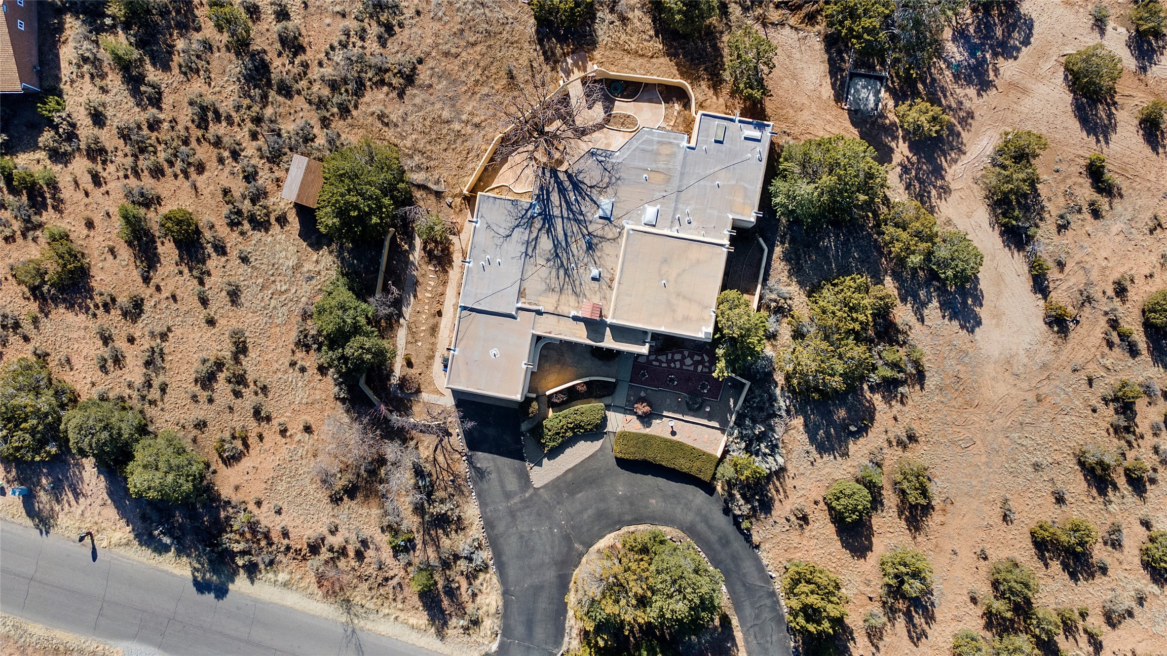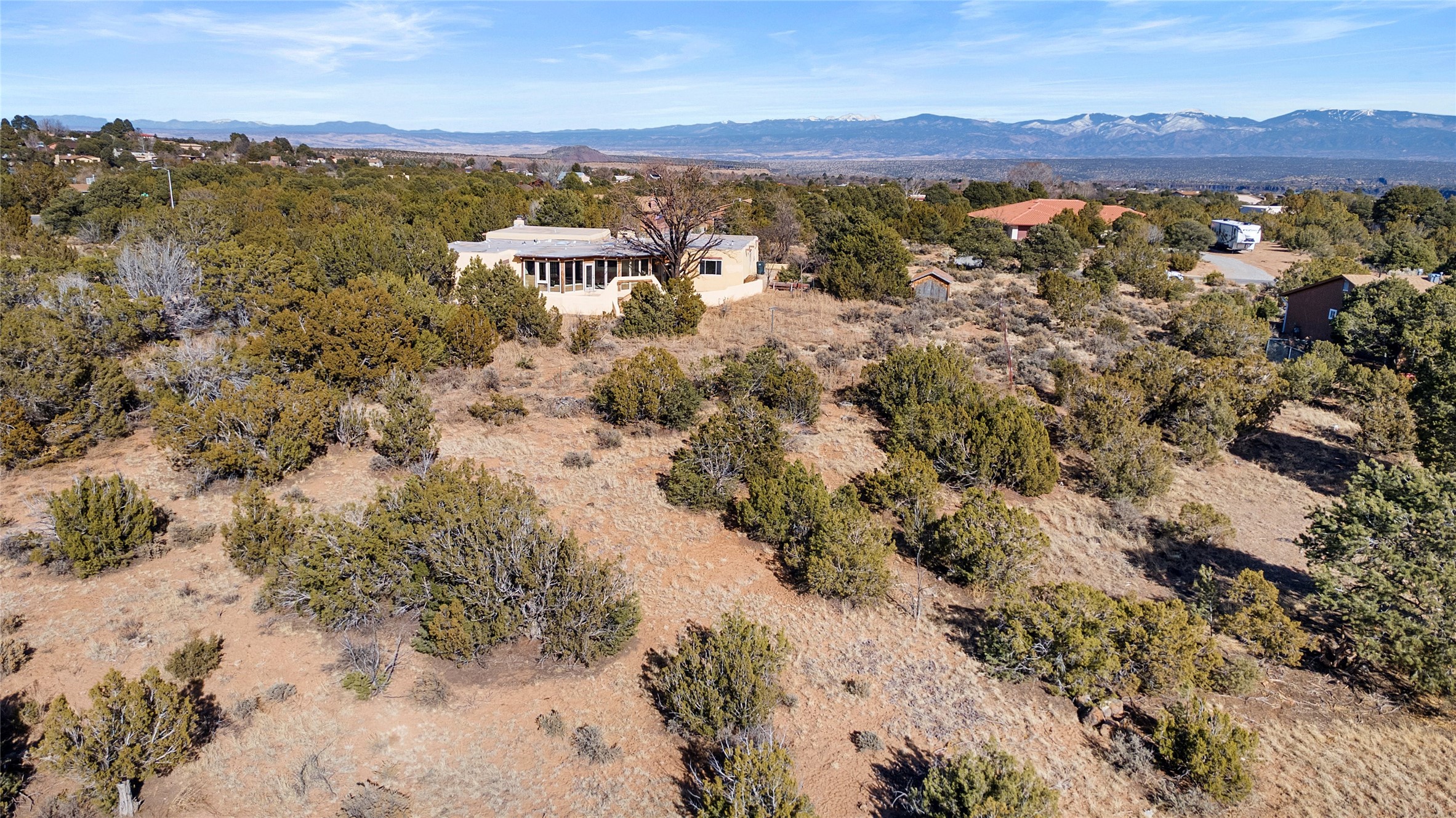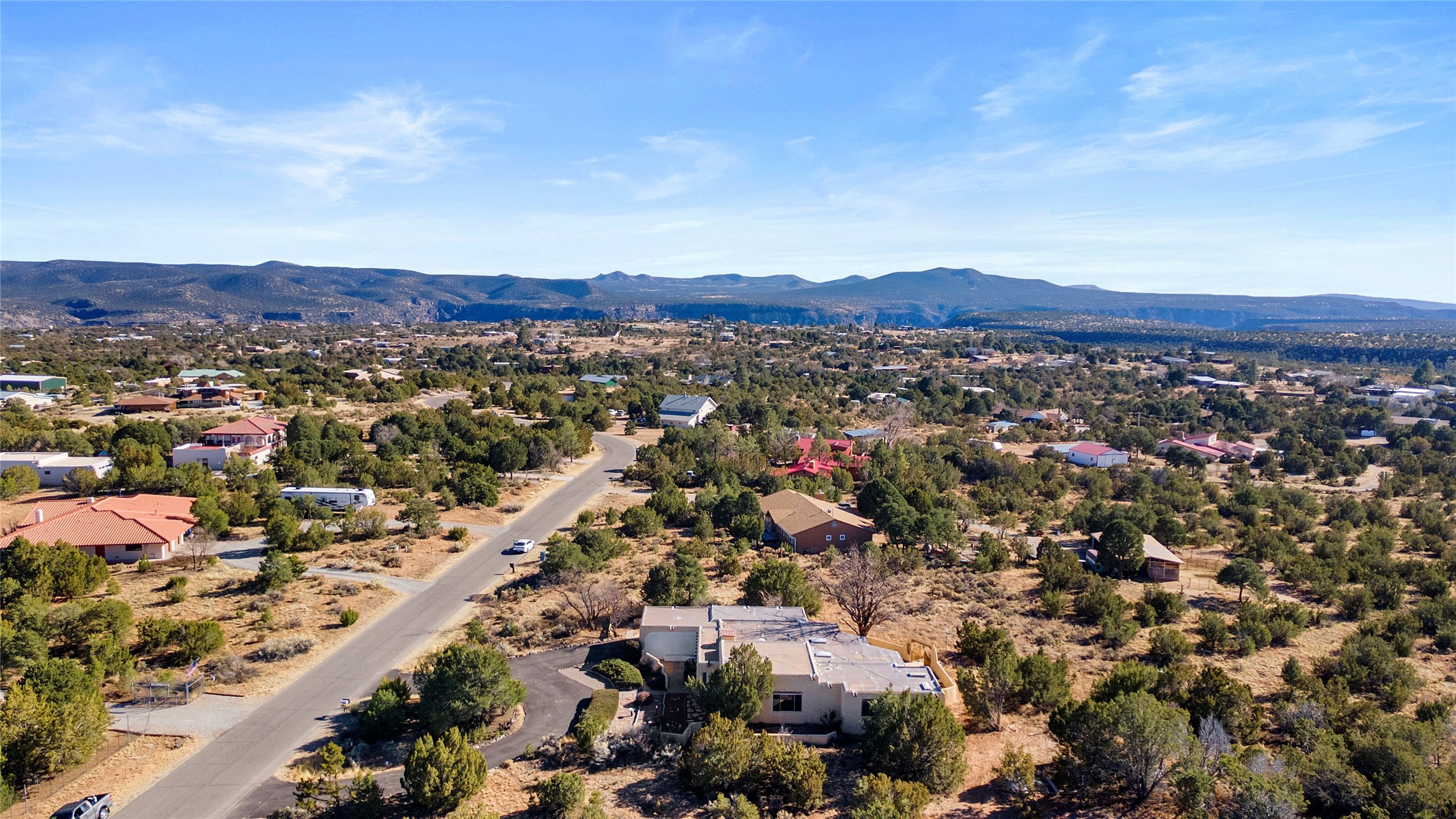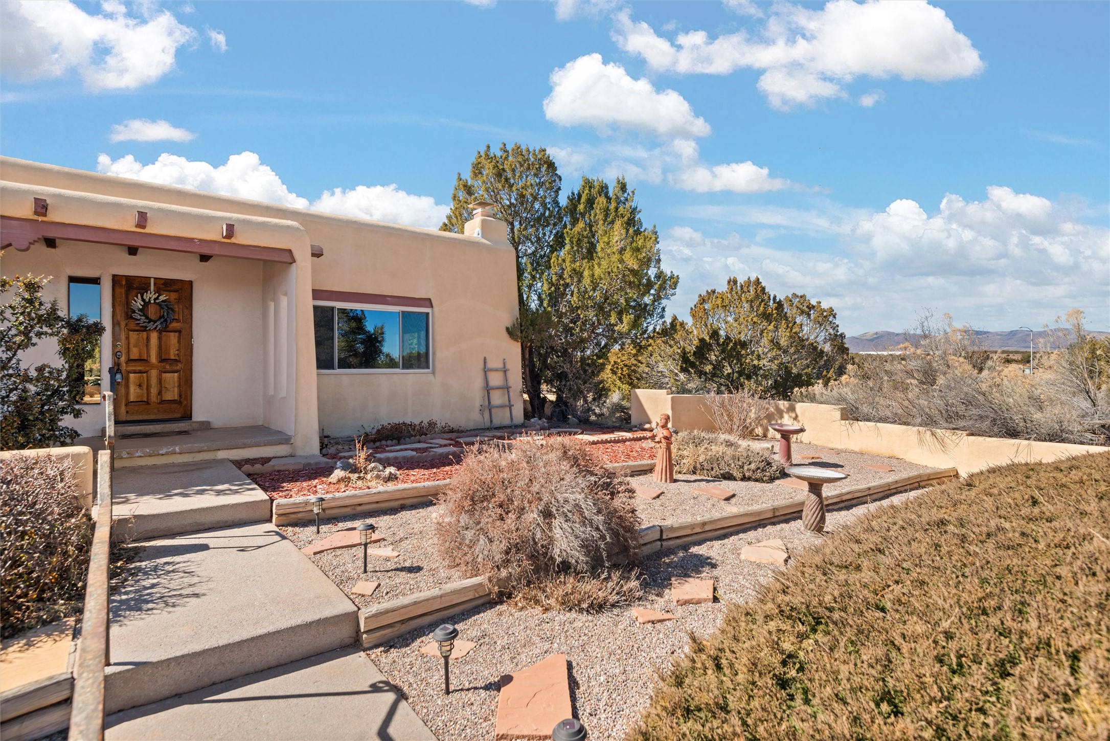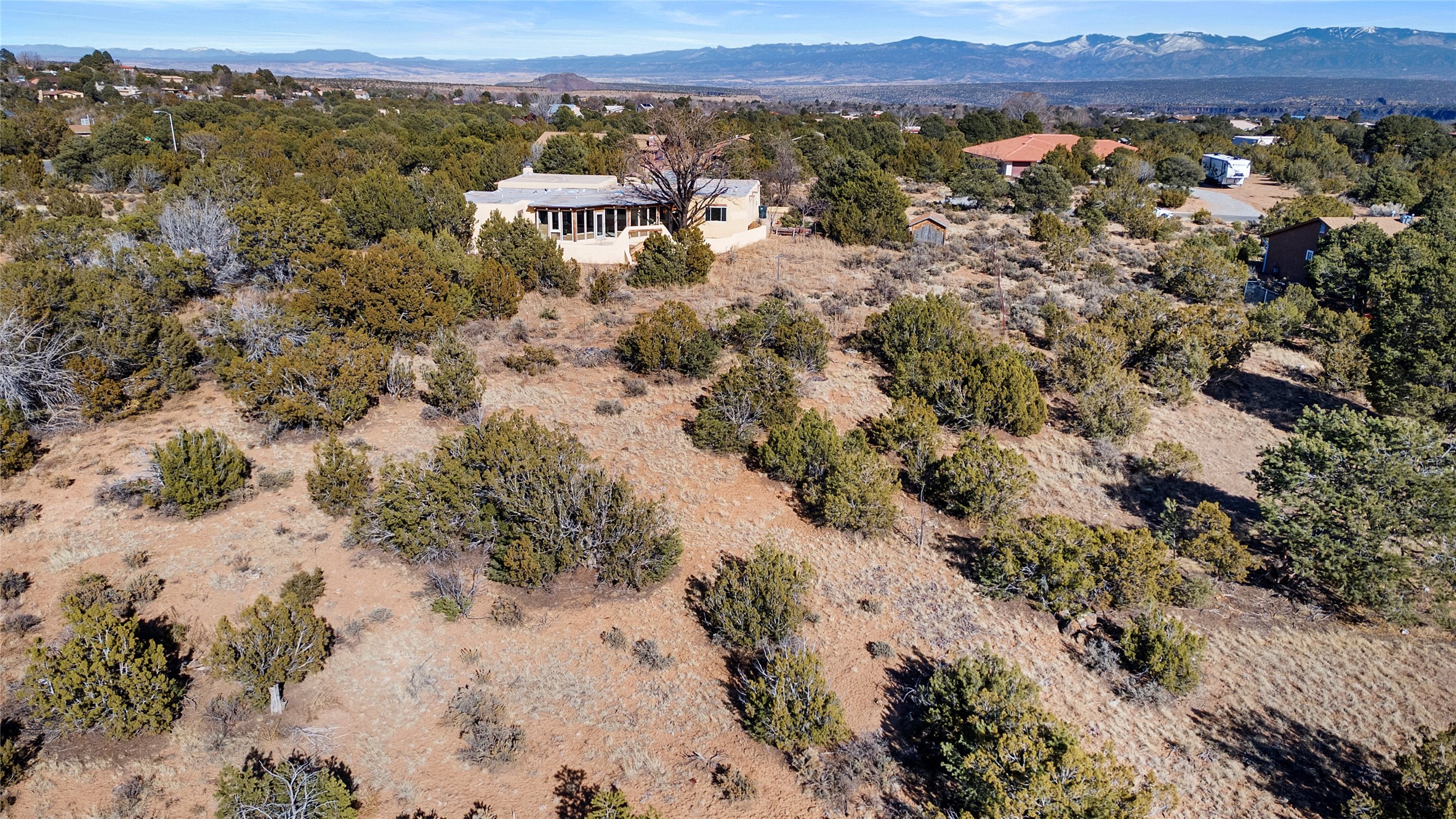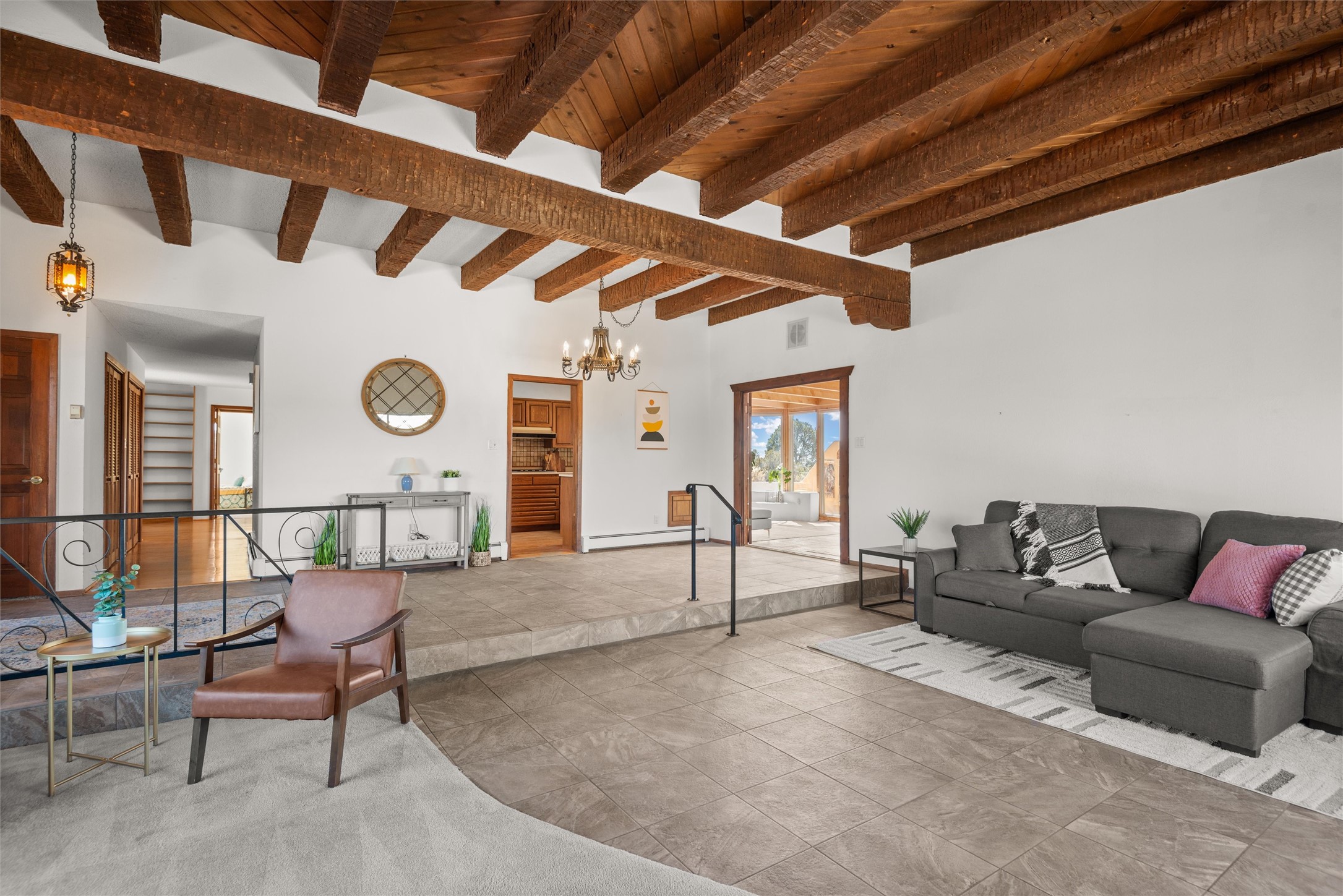 Welcome to 102 La Senda where dreams become reality! As you approach the entrance to your very own private residence you will find a spacious driveway and beautifully landscaped entry area. Take a deep breath you're about to enter into this rare pueblo style home with towering 11' ceilings adorned with natural wood vigas including a kiva hearth built right into this living space area. Above the newer tiled floors the dining area boasts traditional lighting from a candelabrum light fixture. Continuing into the home through the double doors that lead you into a warm passive solar sunroom with seating areas featuring floor to ceiling windows facing the west where you can enjoy the dancing colors of the famed NM sunsets in the evenings. Plenty of potential here with space for indoor plants, hot tub and a small pond in the corner. As you gaze into the sunset in the sunroom you can retreat through double doors again into the master bedroom where you will find a en suite bathroom tiled all around including a fully functioning jetted tub. In this private north side area of the home the privacy is astonishing with the south side bedrooms on the opposite side of the home. Let's work our way around the home towards the other sleeping quarters. This area of the home on the south side has two additional bedrooms and a full bathroom which is beautifully tiled from floor to ceiling. As you head back into the living room you will find a 3/4 guest bathroom to accommodate your visitors. This bathroom also features a full walk-in shower with tiled sink area from floor to ceiling. Let's walk into your kitchen where you can't help but notice these natural hardwood floors throughout. This leads into a separate dining area/living space to make your own. Tucked away in this living area is a washer/dryer closet with storage above in cabinets and shelves. Facing towards the east side of the dining room you will find garage access through a separate locking door. As you walk into the garage watch your step! That is where you will find space here for two cars and plenty of built in cabinets for storage. Working your way around the exterior of the house you will find various landscaping with space for planters to grow your very own vegetables or fruits. The rear side of the home has a flagstone patio walled and gated. Take a look around the larger sized lot encompassing over 2.52 acres of space leading as far west as NM4 and North to Piedra Loop. The very size of this private corner lot is astonishing. So so much potential all around the property inside and out! If a large lot in Los Alamos county is your thing don't hesitate to come by and see how vast 102 La Senda really is! Don't forget this space allows for your Equine as well!