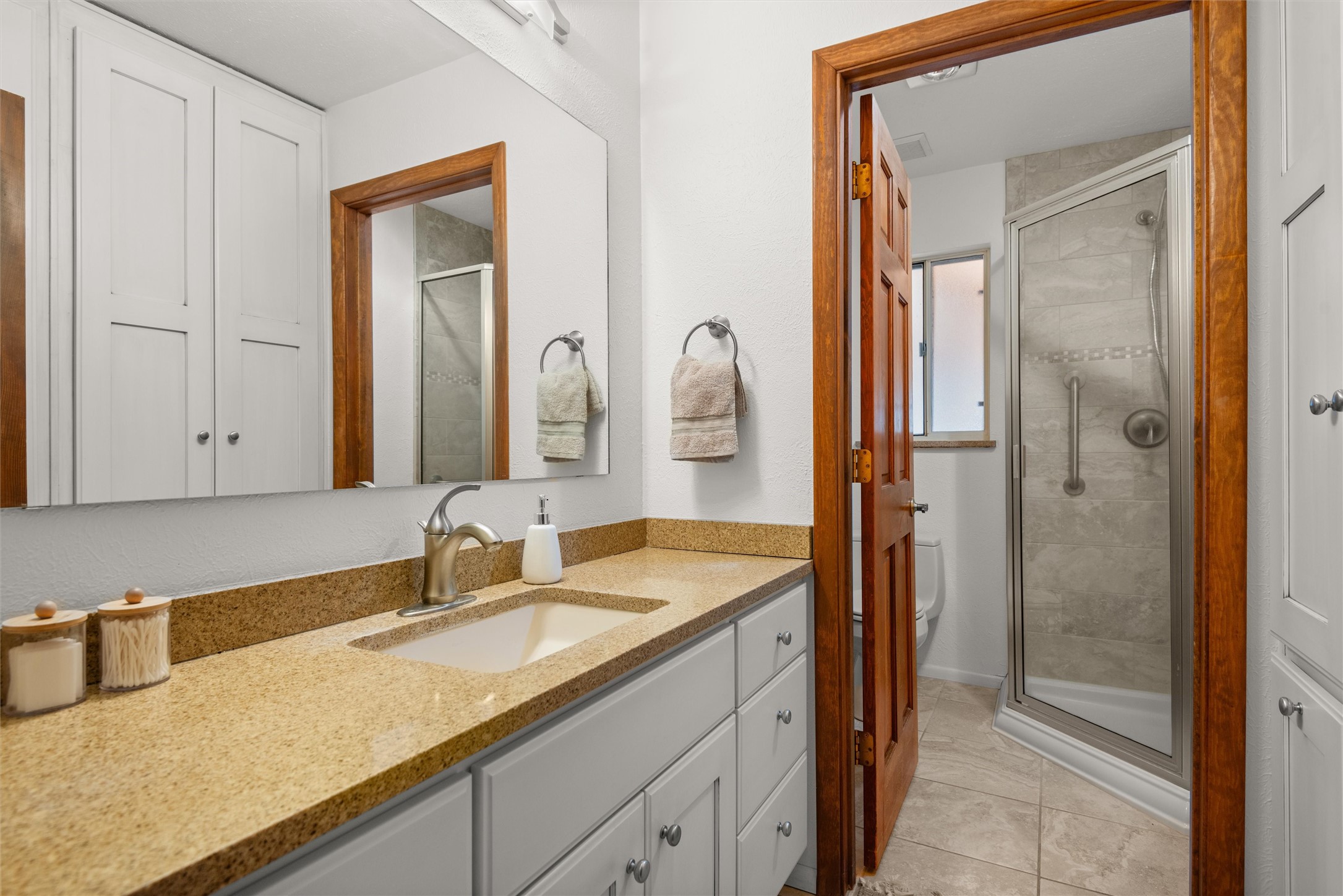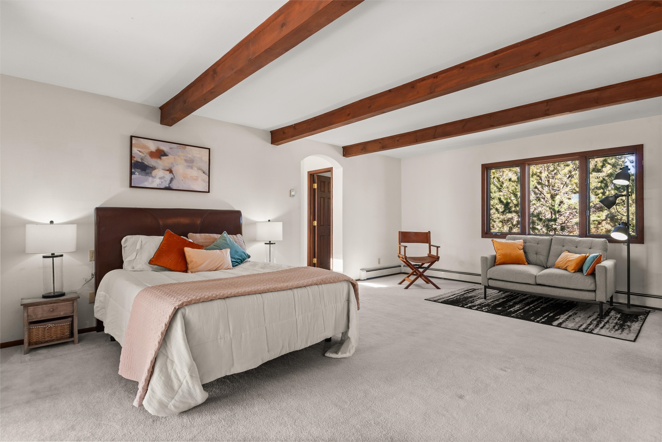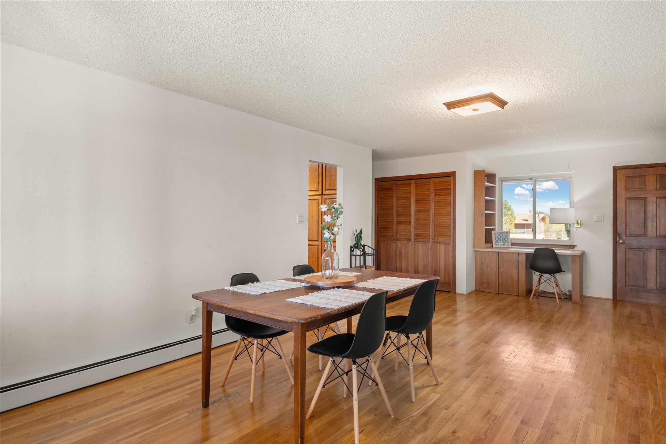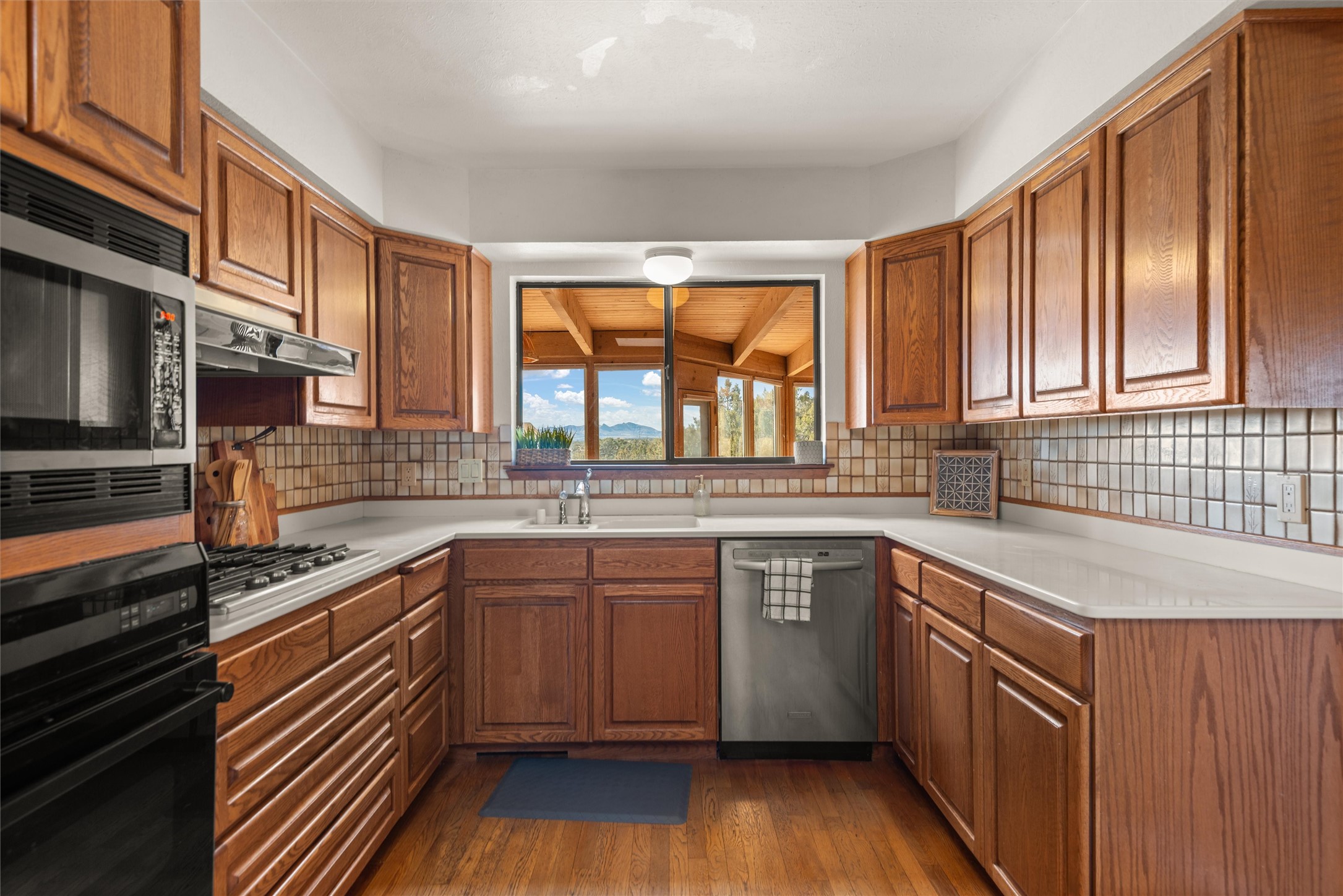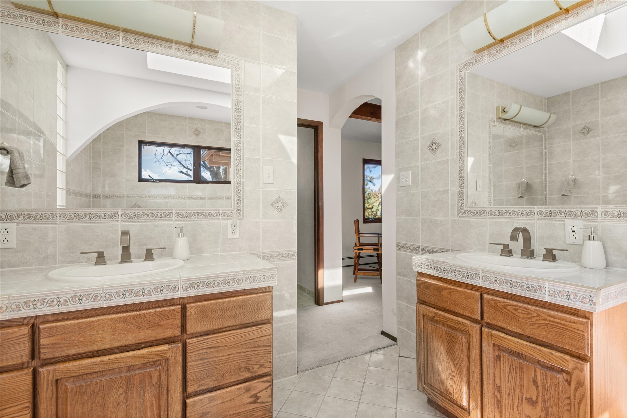 Welcome to 102 La Senda where dreams become reality! As you approach the entrance to your very own private residence you will find a spacious driveway and beautifully landscaped entry area. Take a deep breath you're about to enter into this rare pueblo style home with towering 11' ceilings adorned with natural wood vigas including a kiva hearth built right into this living space area. Above the newer tiled floors the dining area boasts traditional lighting from a candelabrum light fixture. Continuing into the home through the double doors that lead you into a warm passive solar sunroom with seating areas featuring floor to ceiling windows facing the west where you can enjoy the dancing colors of the famed NM sunsets in the evenings. Plenty of potential here with space for indoor plants, hot tub and a small pond in the corner. As you gaze into the sunset in the sunroom you can retreat through double doors again into the master bedroom where you will find a en suite bathroom tiled all around including a fully functioning jetted tub. In this private north side area of the home the privacy is astonishing with the south side bedrooms on the opposite side of the home. Let's work our way around the home towards the other sleeping quarters. This area of the home on the south side has two additional bedrooms and a full bathroom which is beautifully tiled from floor to ceiling. As you head back into the living room you will find a 3/4 guest bathroom to accommodate your visitors. This bathroom also features a full walk-in shower with tiled sink area from floor to ceiling. Let's walk into your kitchen where you can't help but notice these natural hardwood floors throughout. This leads into a separate dining area/living space to make your own. Tucked away in this living area is a washer/dryer closet with storage above in cabinets and shelves. Facing towards the east side of the dining room you will find garage access through a separate locking door. As you walk into the garage watch your step! That is where you will find space here for two cars and plenty of built in cabinets for storage. Working your way around the exterior of the house you will find various landscaping with space for planters to grow your very own vegetables or fruits. The rear side of the home has a flagstone patio walled and gated. Take a look around the larger sized lot encompassing over 2.52 acres of space leading as far west as NM4 and North to Piedra Loop. The very size of this private corner lot is astonishing. So so much potential all around the property inside and out! If a large lot in Los Alamos county is your thing don't hesitate to come by and see how vast 102 La Senda really is! Don't forget this space allows for your Equine as well!