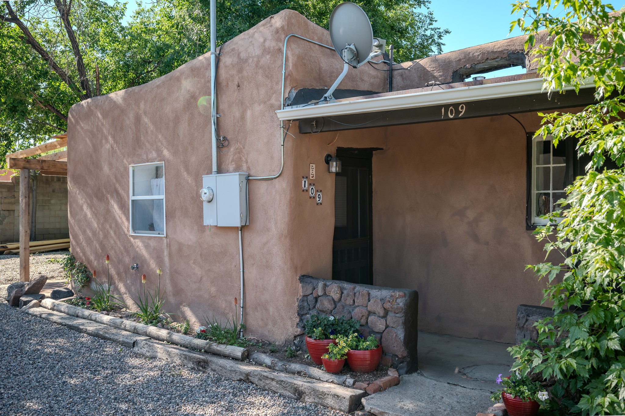 Owner Financing while you process further development. There's a potential for an additional 1700 ground floor addition and possibly a second story. Parking is the primary limitation depending on the use (zoned mixed use). The Rail Yard is a half block away. Improvements include a solid and charming historic adobe that has been loved for generations, plus the remains of a structure acting as a place holder for grandfathered setbacks. Excellent potential for investment/commercial uses and development. BCDWES zoned with no limitation on lot coverage other than set back requirements. An easy rental, live/work situation with potential to add and/or expand. Two existing structure is single level and includes 2 bedrooms and 1 bath. Seller financing possible with REC, 25% down, 30 year amortization, 10% interest, 5 year balloon. Call today to see this once in 3 generations opportunity.