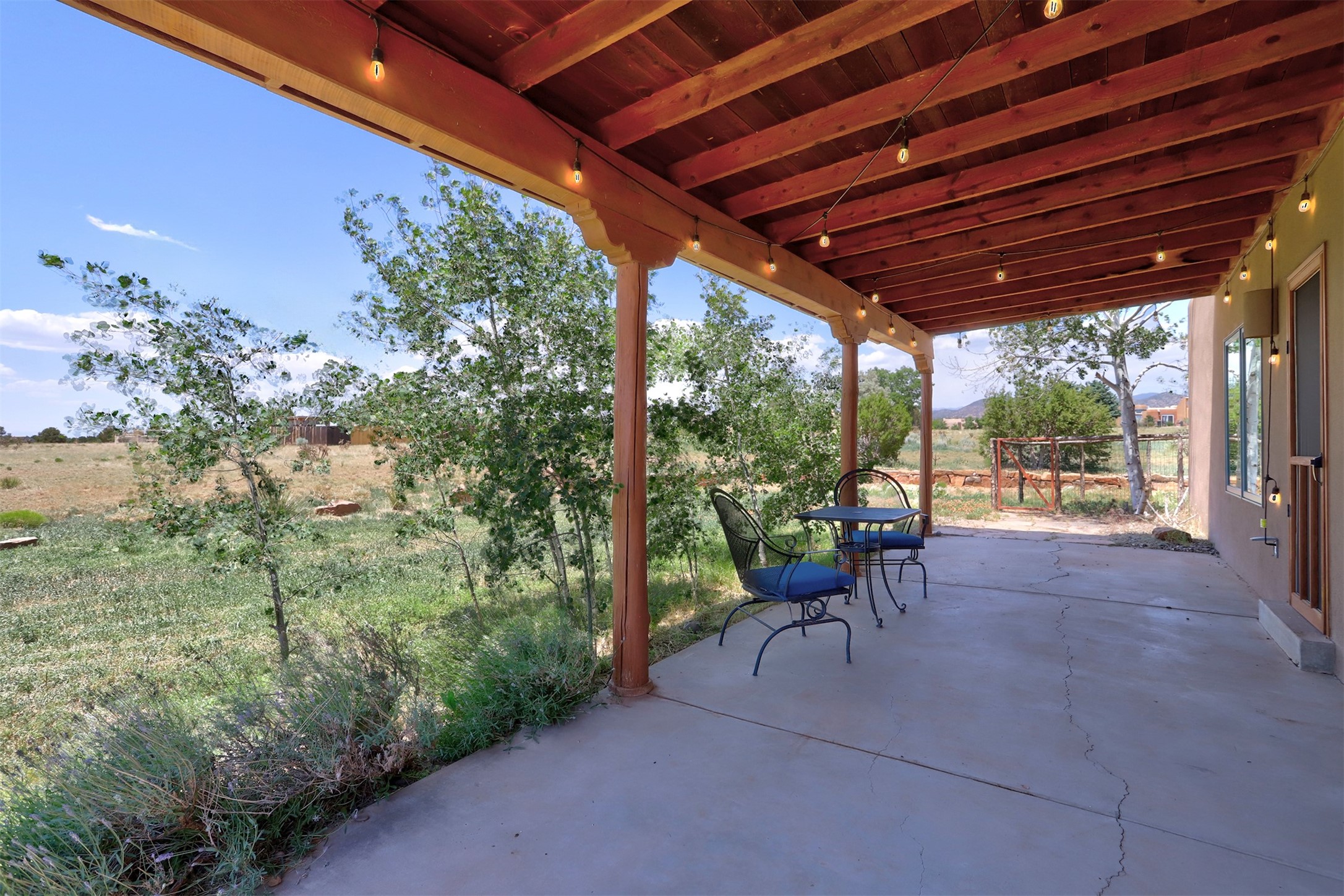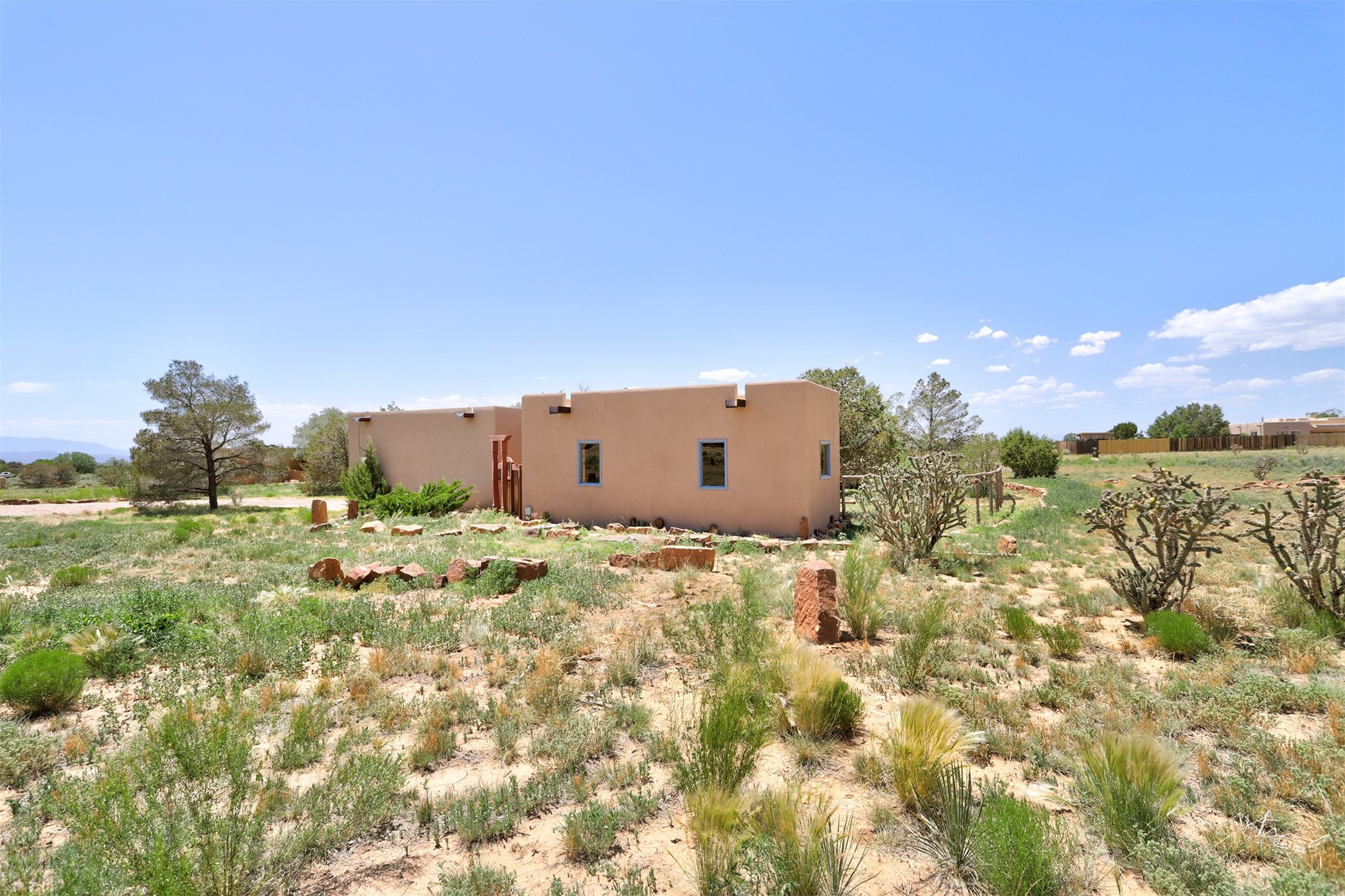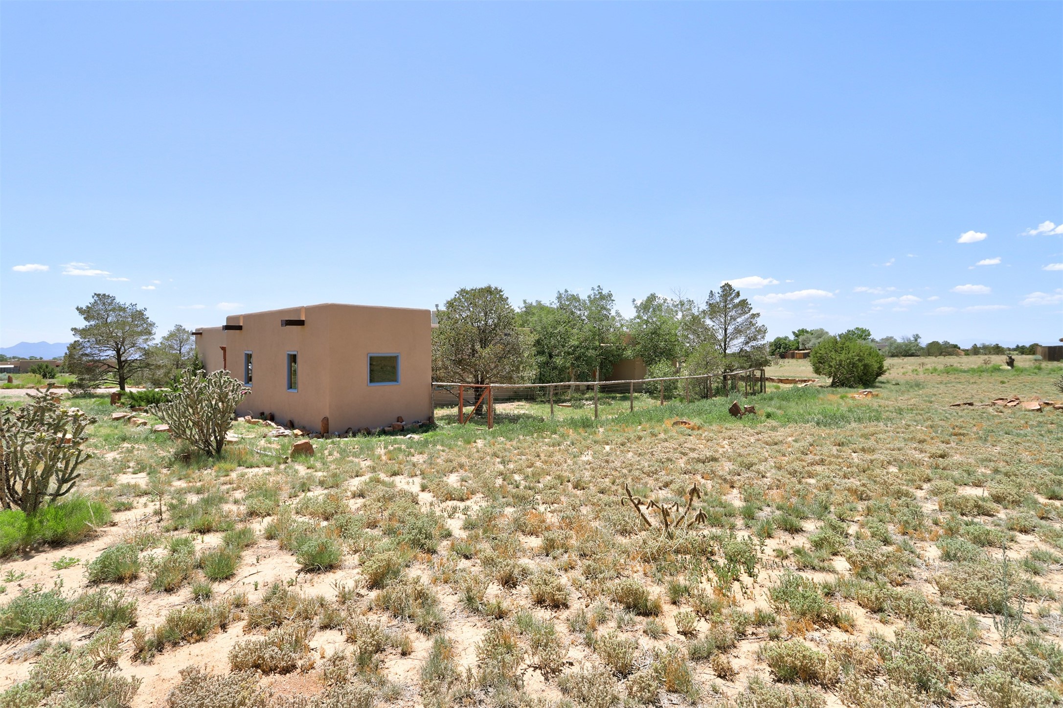 A serene lifestyle with flexible living spaces awaits in this beautifully maintained and move-in-ready 4-bedroom, 2-bathroom home with 2,082 sq ft of comfort and charm on 1.47 acres.Nestled in a peaceful, well-connected community, the property features a newly built 2024 studio with a TPO roof, ideal for a creative space, home office, or fitness room. Inside the main home, enjoy the warmth of all-new wood flooring, fresh paint, and updates including newer windows, a water heater, and a full exterior stucco refresh in 2017. The open layout centers around a cozy, efficient pellet stove - both charming and practical during cooler months.Step outside to a spacious covered portal perfect for entertaining or relaxing outdoors. The fenced yard provides pet security, while the large lot offers ample space for gardening, growing, or simply enjoying the outdoors.Just minutes from the community pool, tennis courts, dog park, library, local shops, dining, and scenic walking trails. With quick access to downtown Santa Fe, you'll enjoy privacy with urban convenience.Don't miss your chance to own this versatile and inviting property - schedule your showing today!