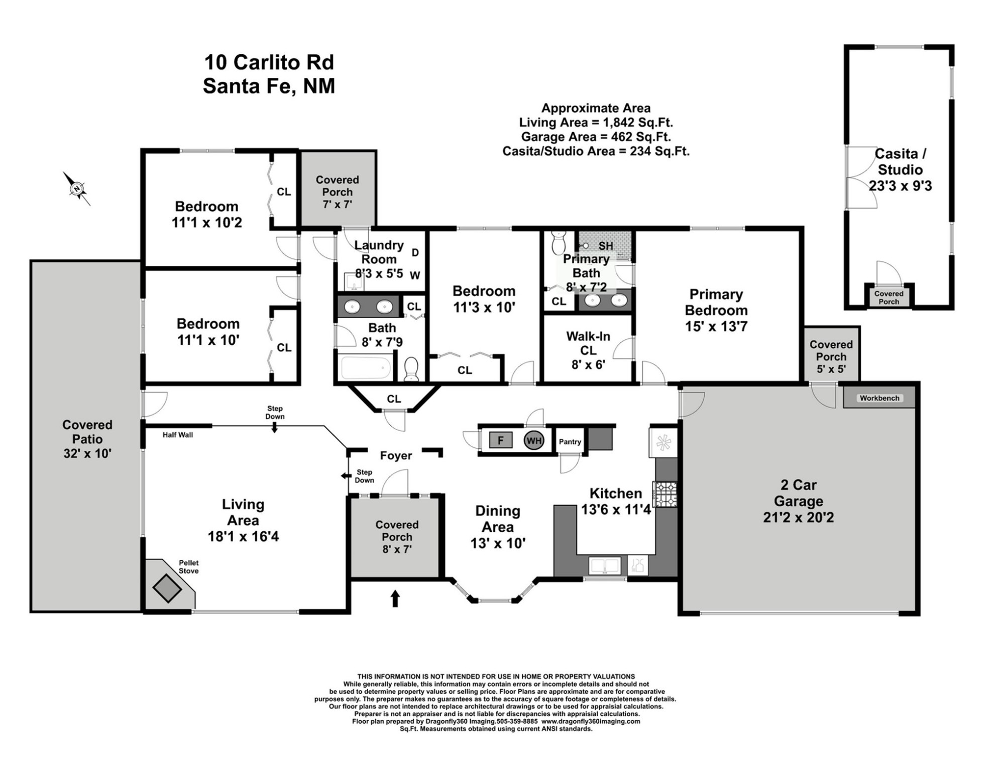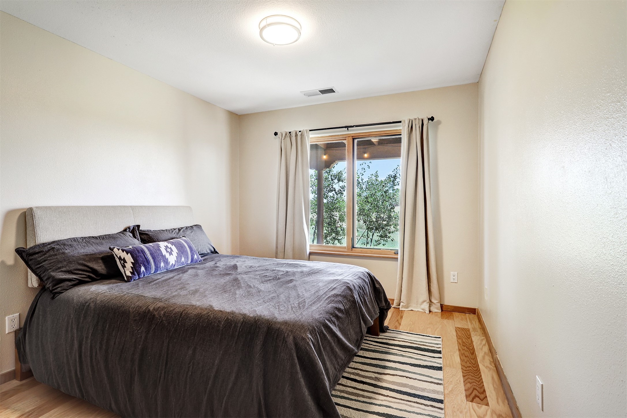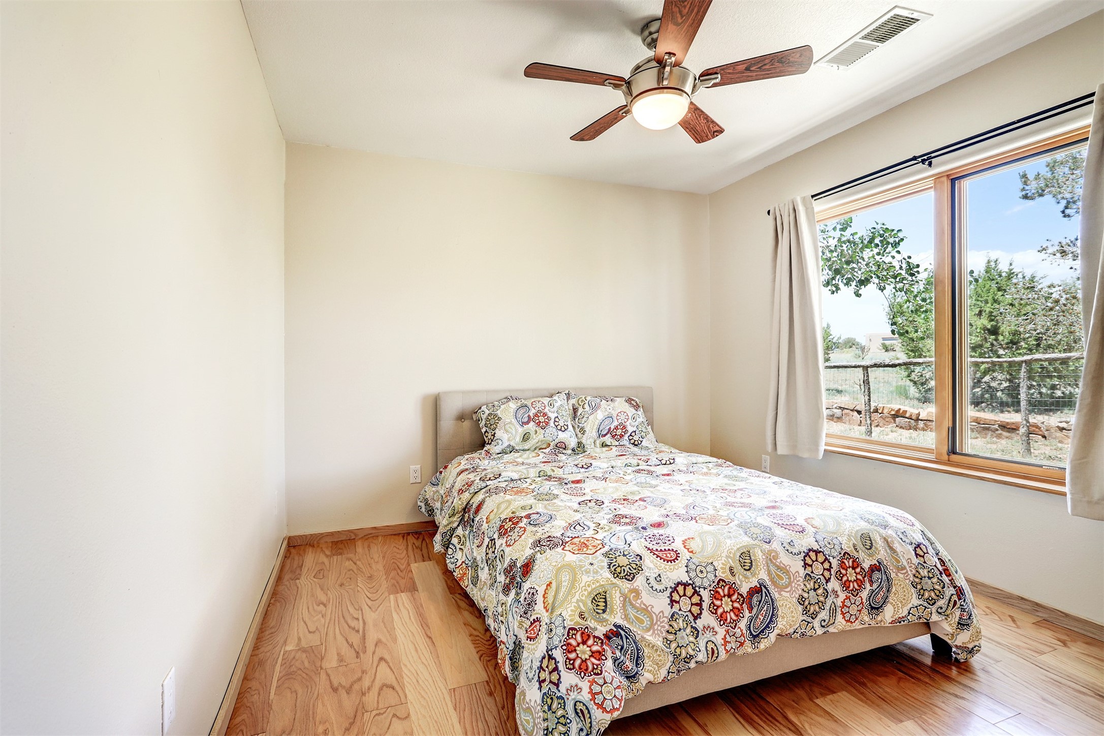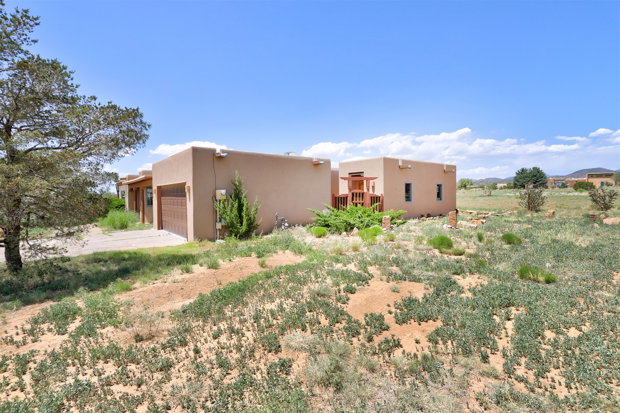 A serene lifestyle with flexible living spaces awaits in this beautifully maintained and move-in-ready 4-bedroom, 2-bathroom home with 2,082 sq ft of comfort and charm on 1.47 acres.Nestled in a peaceful, well-connected community, the property features a newly built 2024 studio with a TPO roof, ideal for a creative space, home office, or fitness room. Inside the main home, enjoy the warmth of all-new wood flooring, fresh paint, and updates including newer windows, a water heater, and a full exterior stucco refresh in 2017. The open layout centers around a cozy, efficient pellet stove - both charming and practical during cooler months.Step outside to a spacious covered portal perfect for entertaining or relaxing outdoors. The fenced yard provides pet security, while the large lot offers ample space for gardening, growing, or simply enjoying the outdoors.Just minutes from the community pool, tennis courts, dog park, library, local shops, dining, and scenic walking trails. With quick access to downtown Santa Fe, you'll enjoy privacy with urban convenience.Don't miss your chance to own this versatile and inviting property - schedule your showing today!