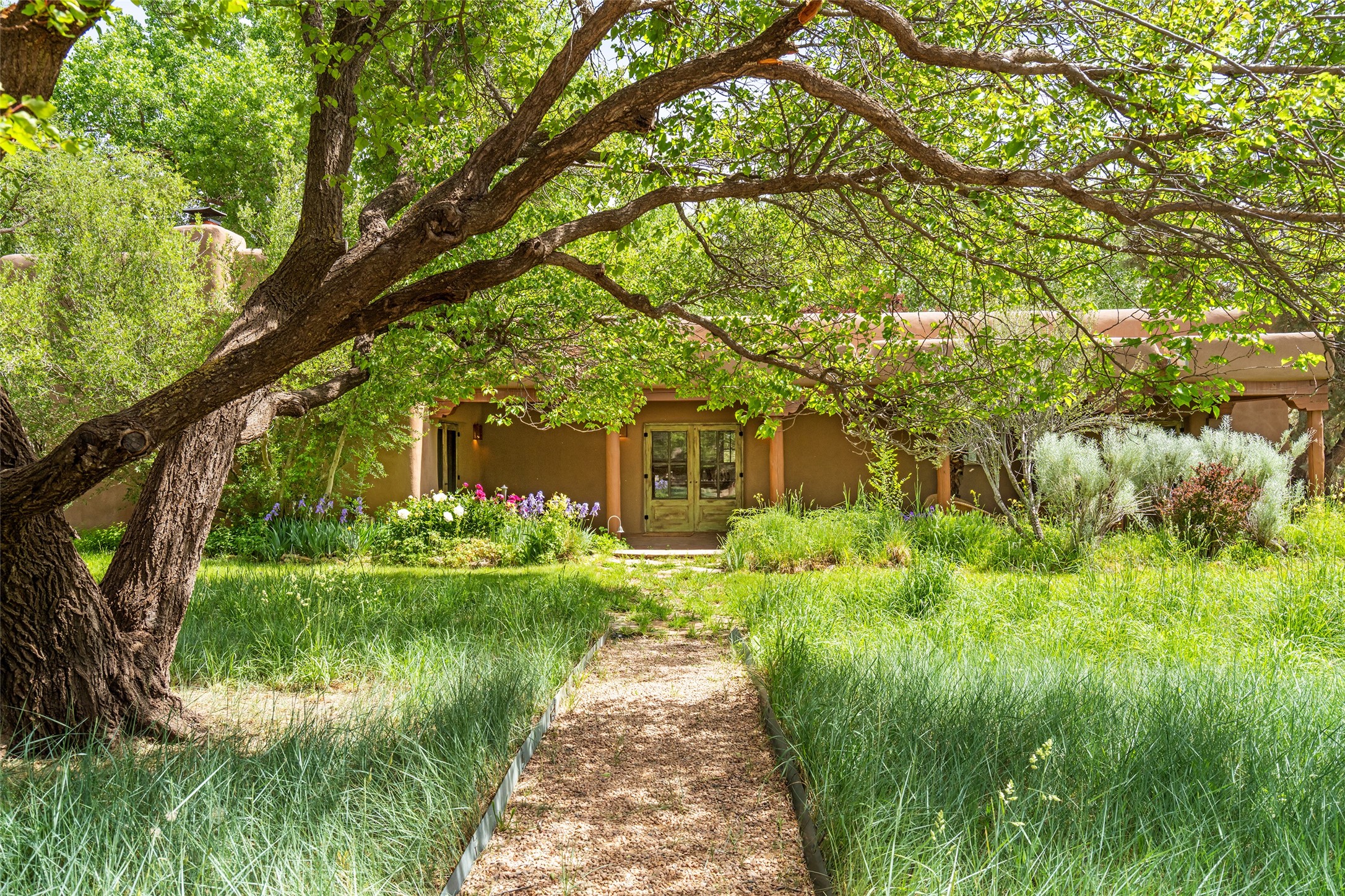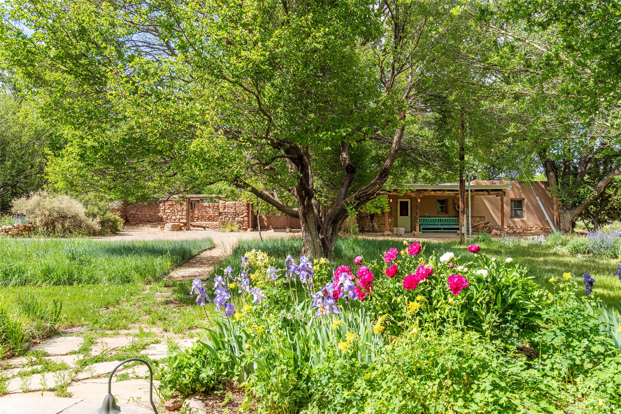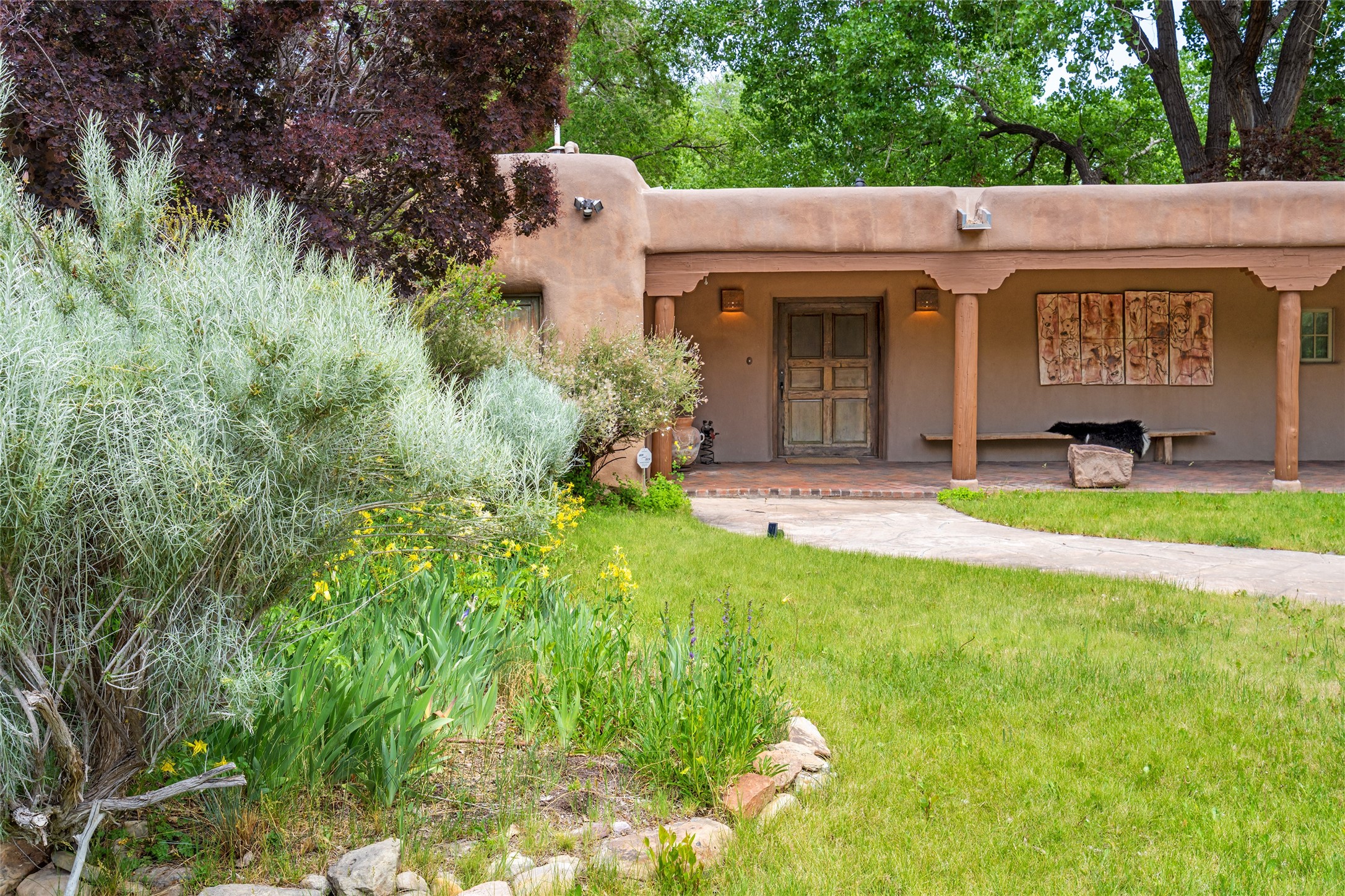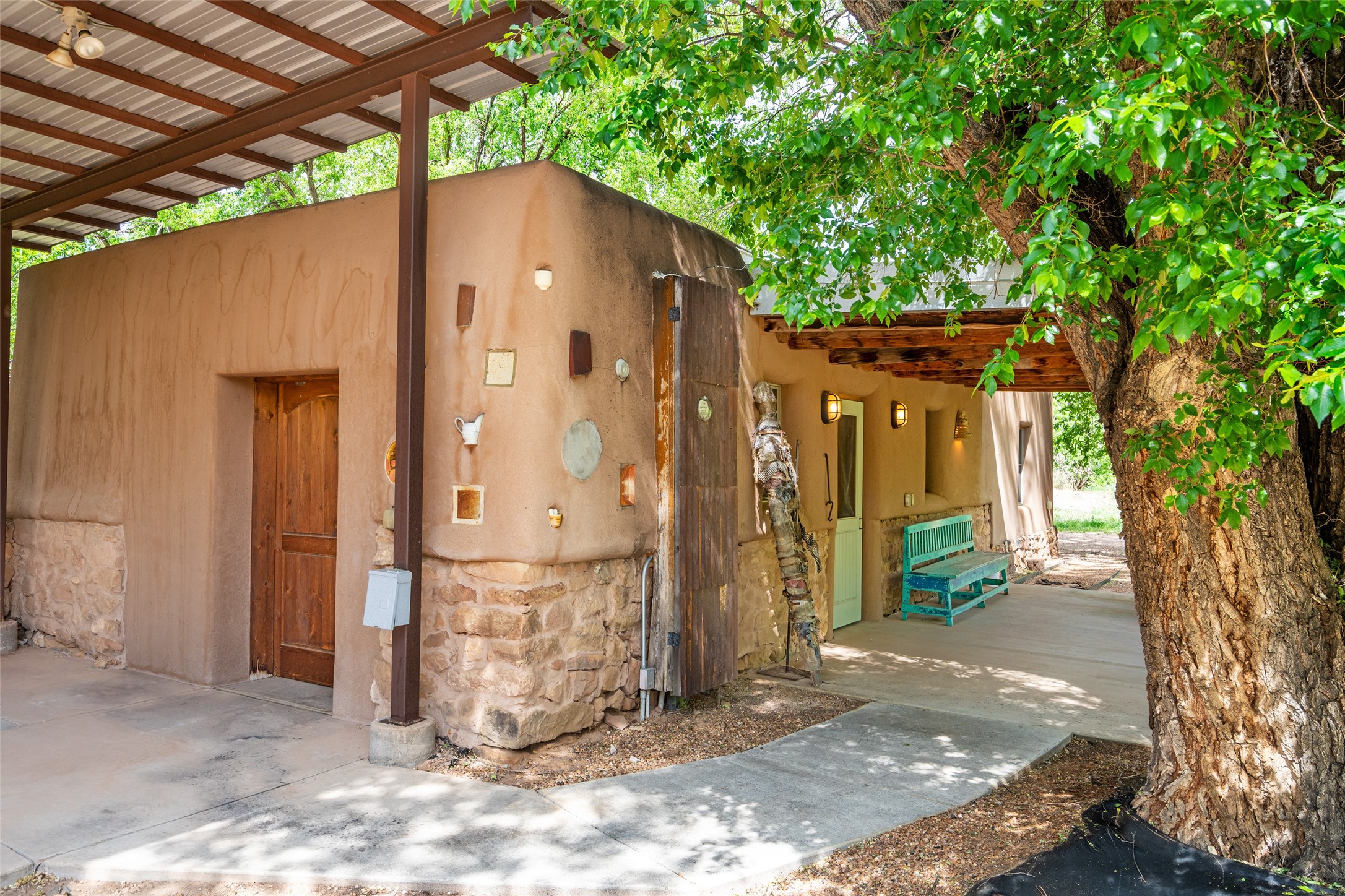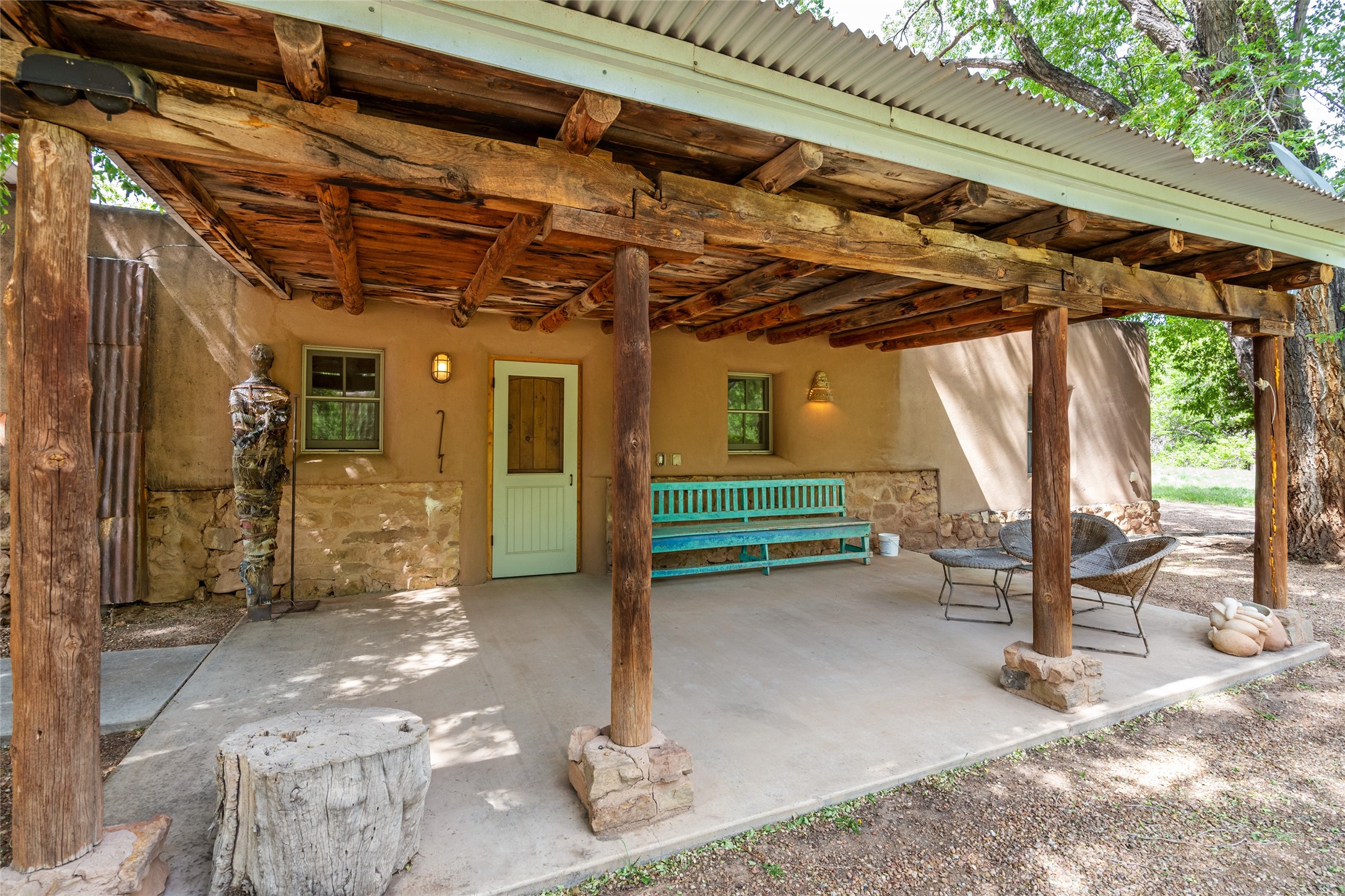 Historic Adobe Oasis on the Galisteo CreekCreate your own paradise along the Galisteo Creek. This stunning 6.39 acre estate offers a compelling blend of historic character, traditional craftsmanship, and natural beauty. A renovated 2 bed, 2 bath double adobe main residence, and a charming 1 bedroom, 1 bath guest quarters create a private compound offering the best of old and new in the heart of one of New Mexico's most storied villages, all a mere 30 minute drive from Santa Fe.The main home features 2 bedrooms and 2.5 baths, showcasing hand-plastered walls, vigas, latillas, deep adobe walls, high ceilings and wood-burning fireplaces that reflect the architectural heritage of the area, enhanced by historic ruins on the property dating back to 1880. Thoughtful renovations and preservation work ensure modern comfort while honoring the property's authenticity.Residents and guests will appreciate the privacy of the split floor plan, with the two bedroom suites separate and serene, each featuring their own cozy fireplace and en suite bath. The large kitchen boasts an equally large butlers pantry. It's a generous amount of space allowing for a multifaceted culinary experience. Set beneath majestic cottonwoods in a park-like setting, surrounded by lush irrigated landscaping, the grounds are verdant with fruit trees and flower gardens. Proximity to the Galisteo Creek enhances the sense of abundance and connection, with expansive portals and shaded outdoor spaces ideal for quiet retreat or entertaining.The separate guest house offers its own living space with a kitchenette and bath, ideal for hosting guests or tenants. It has also been used as an artist studio as the concrete floors allow for being creative. There is a large barn door that opens out to a small porch perfect for a lovely evening dinner. Experience this rare, water-adjacent adobe property in an artistic community full of heritage and natural splendor.