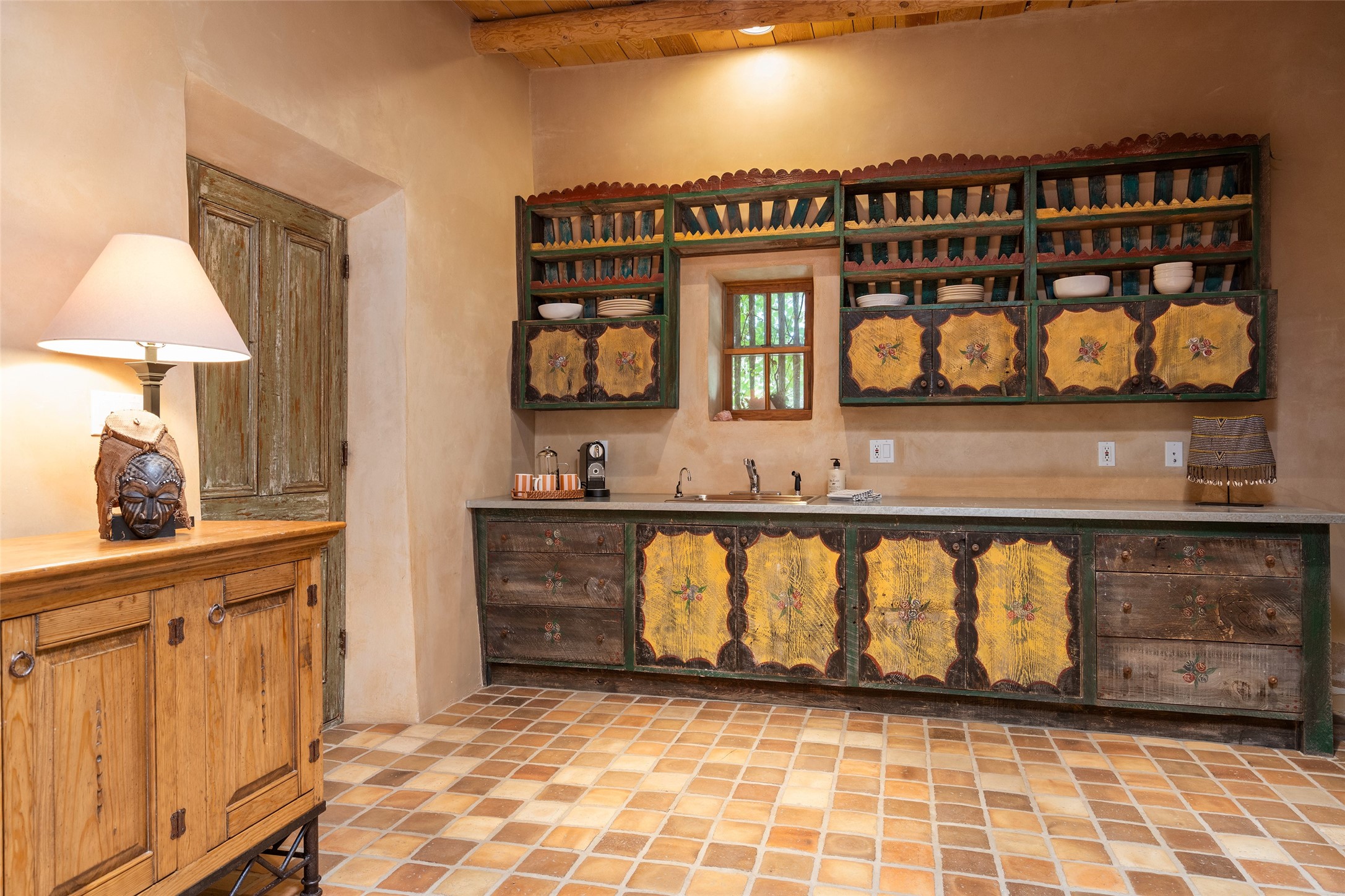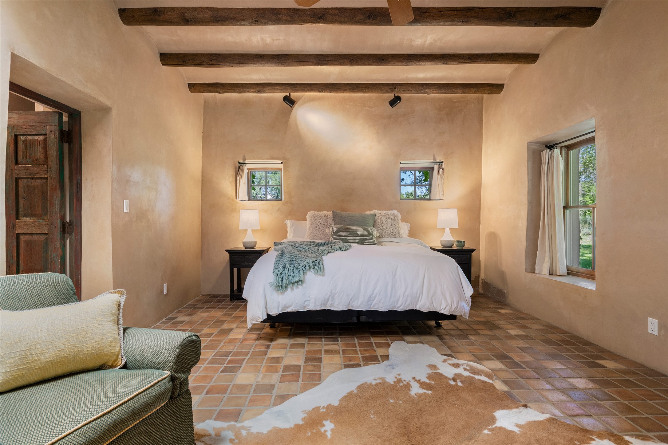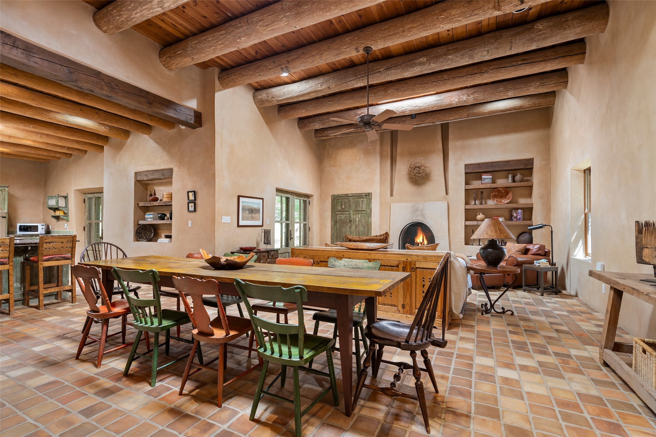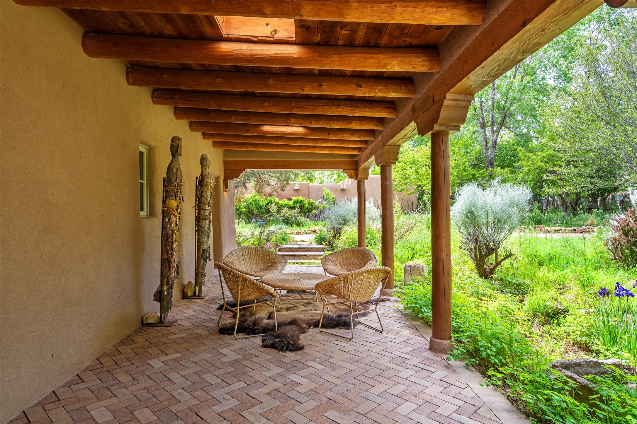 Historic Adobe Oasis on the Galisteo CreekCreate your own paradise along the Galisteo Creek. This stunning 6.39 acre estate offers a compelling blend of historic character, traditional craftsmanship, and natural beauty. A renovated 2 bed, 2 bath double adobe main residence, and a charming 1 bedroom, 1 bath guest quarters create a private compound offering the best of old and new in the heart of one of New Mexico's most storied villages, all a mere 30 minute drive from Santa Fe.The main home features 2 bedrooms and 2.5 baths, showcasing hand-plastered walls, vigas, latillas, deep adobe walls, high ceilings and wood-burning fireplaces that reflect the architectural heritage of the area, enhanced by historic ruins on the property dating back to 1880. Thoughtful renovations and preservation work ensure modern comfort while honoring the property's authenticity.Residents and guests will appreciate the privacy of the split floor plan, with the two bedroom suites separate and serene, each featuring their own cozy fireplace and en suite bath. The large kitchen boasts an equally large butlers pantry. It's a generous amount of space allowing for a multifaceted culinary experience. Set beneath majestic cottonwoods in a park-like setting, surrounded by lush irrigated landscaping, the grounds are verdant with fruit trees and flower gardens. Proximity to the Galisteo Creek enhances the sense of abundance and connection, with expansive portals and shaded outdoor spaces ideal for quiet retreat or entertaining.The separate guest house offers its own living space with a kitchenette and bath, ideal for hosting guests or tenants. It has also been used as an artist studio as the concrete floors allow for being creative. There is a large barn door that opens out to a small porch perfect for a lovely evening dinner. Experience this rare, water-adjacent adobe property in an artistic community full of heritage and natural splendor.