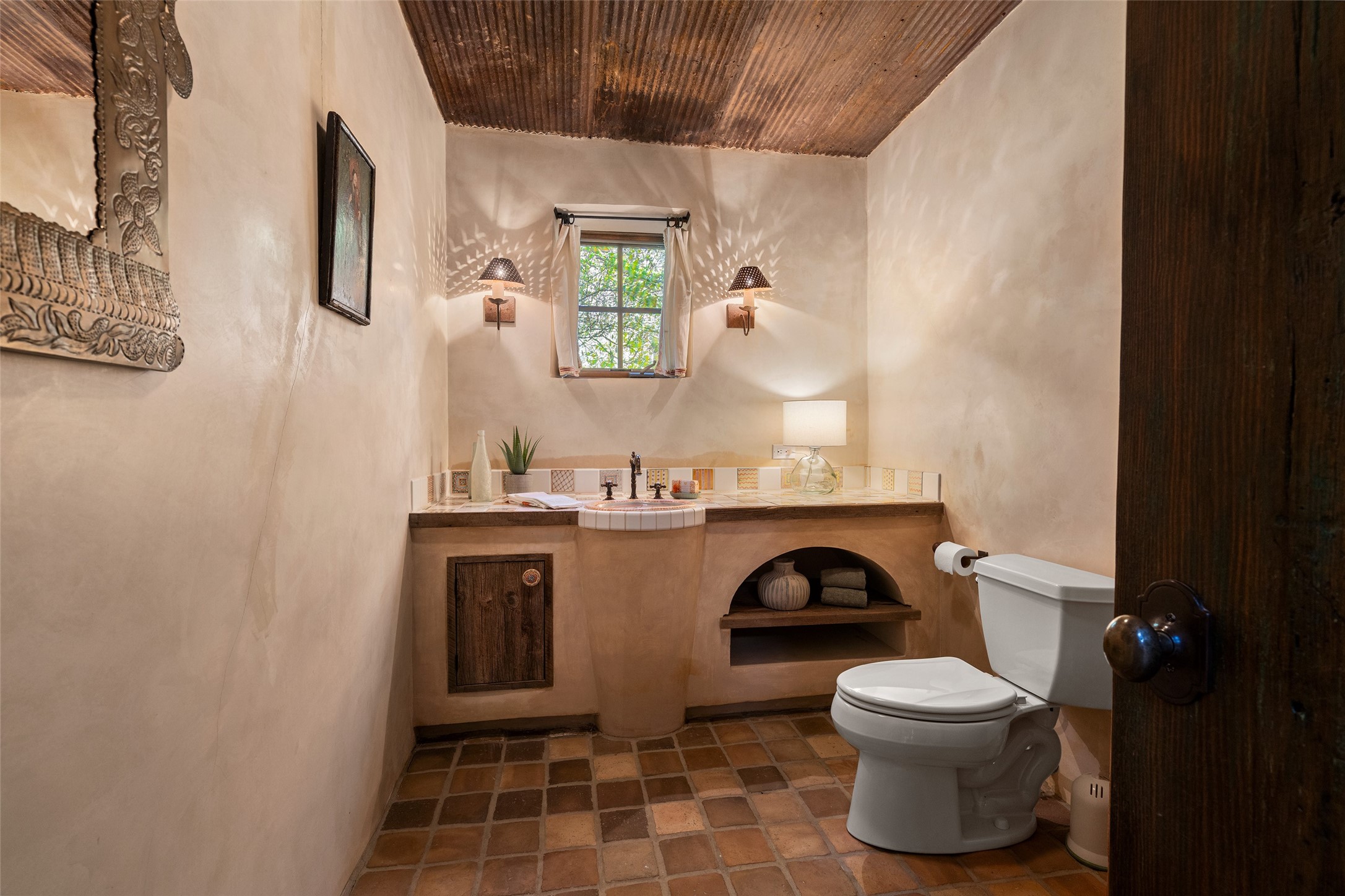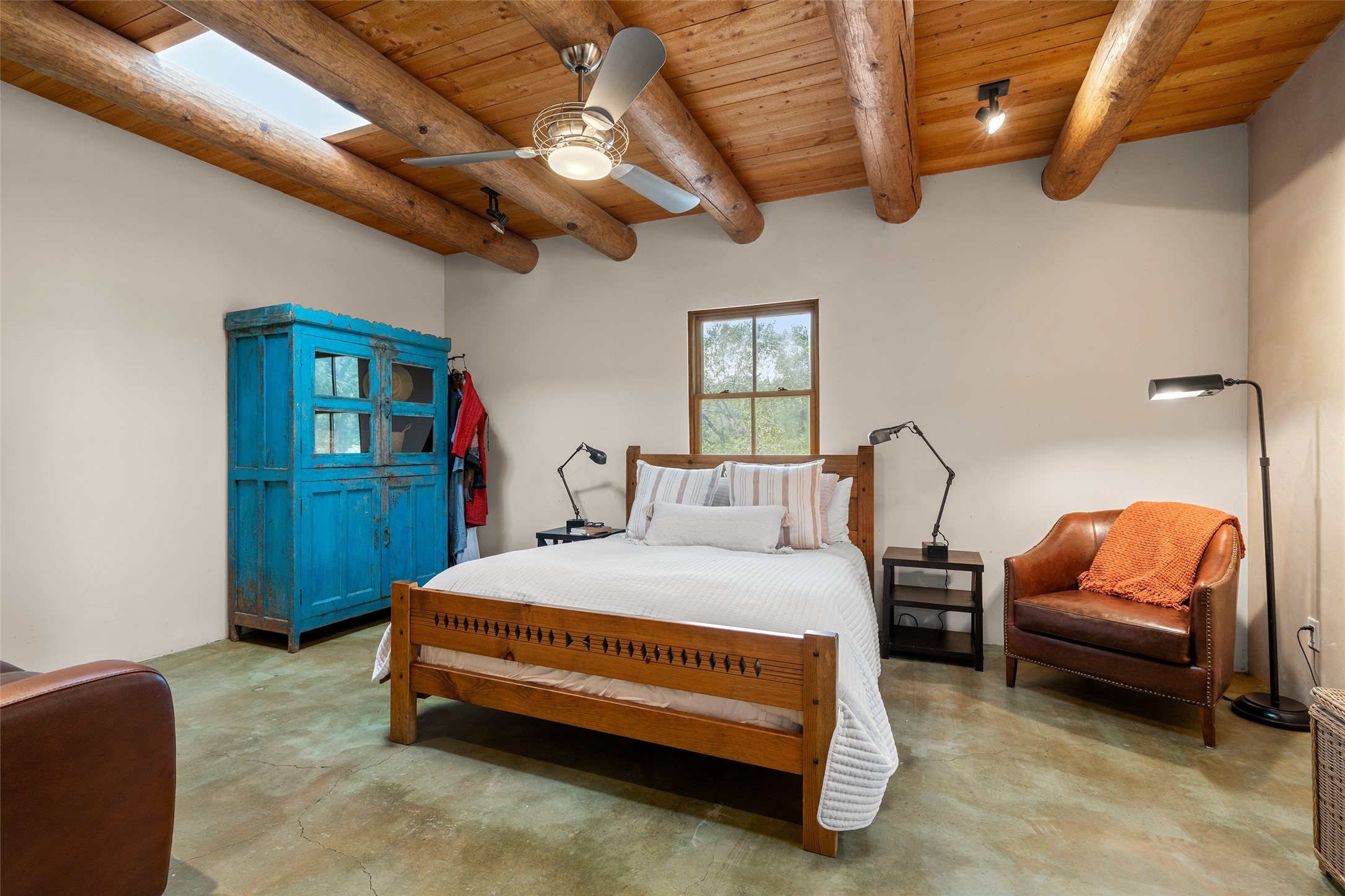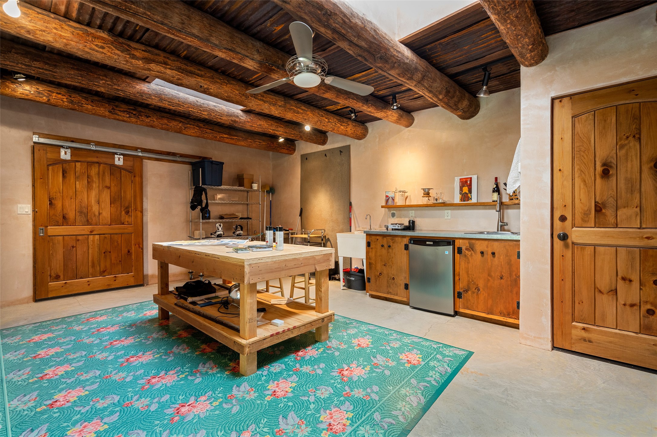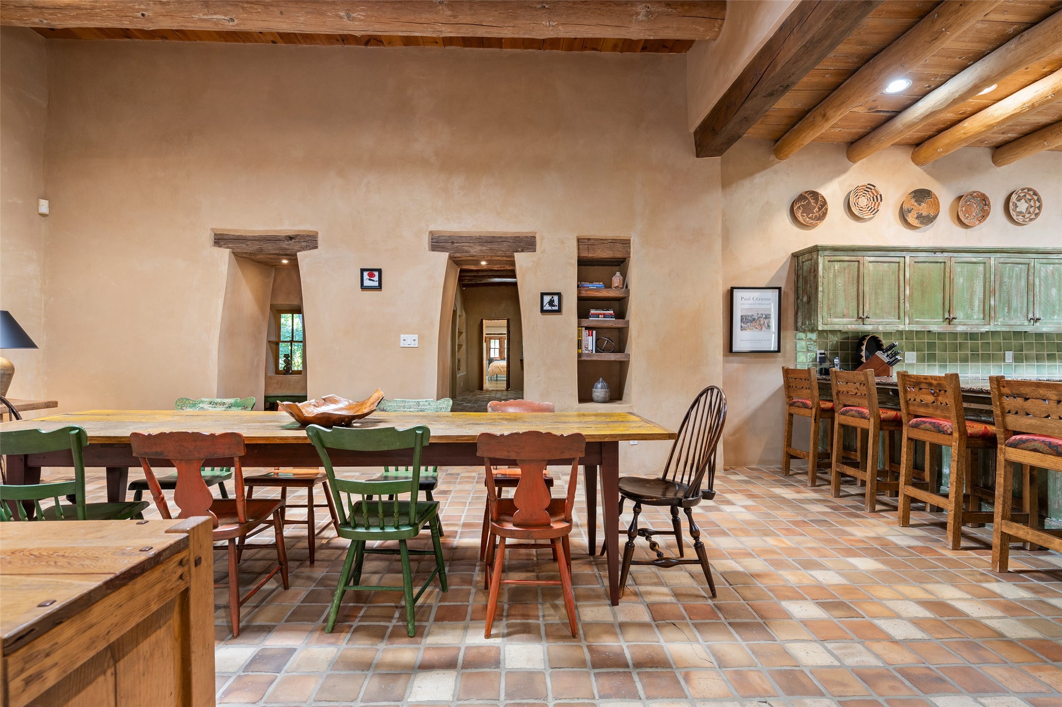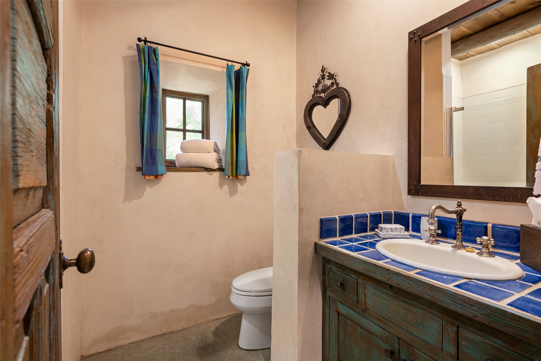 Historic Adobe Oasis on the Galisteo CreekCreate your own paradise along the Galisteo Creek. This stunning 6.39 acre estate offers a compelling blend of historic character, traditional craftsmanship, and natural beauty. A renovated 2 bed, 2 bath double adobe main residence, and a charming 1 bedroom, 1 bath guest quarters create a private compound offering the best of old and new in the heart of one of New Mexico's most storied villages, all a mere 30 minute drive from Santa Fe.The main home features 2 bedrooms and 2.5 baths, showcasing hand-plastered walls, vigas, latillas, deep adobe walls, high ceilings and wood-burning fireplaces that reflect the architectural heritage of the area, enhanced by historic ruins on the property dating back to 1880. Thoughtful renovations and preservation work ensure modern comfort while honoring the property's authenticity.Residents and guests will appreciate the privacy of the split floor plan, with the two bedroom suites separate and serene, each featuring their own cozy fireplace and en suite bath. The large kitchen boasts an equally large butlers pantry. It's a generous amount of space allowing for a multifaceted culinary experience. Set beneath majestic cottonwoods in a park-like setting, surrounded by lush irrigated landscaping, the grounds are verdant with fruit trees and flower gardens. Proximity to the Galisteo Creek enhances the sense of abundance and connection, with expansive portals and shaded outdoor spaces ideal for quiet retreat or entertaining.The separate guest house offers its own living space with a kitchenette and bath, ideal for hosting guests or tenants. It has also been used as an artist studio as the concrete floors allow for being creative. There is a large barn door that opens out to a small porch perfect for a lovely evening dinner. Experience this rare, water-adjacent adobe property in an artistic community full of heritage and natural splendor.