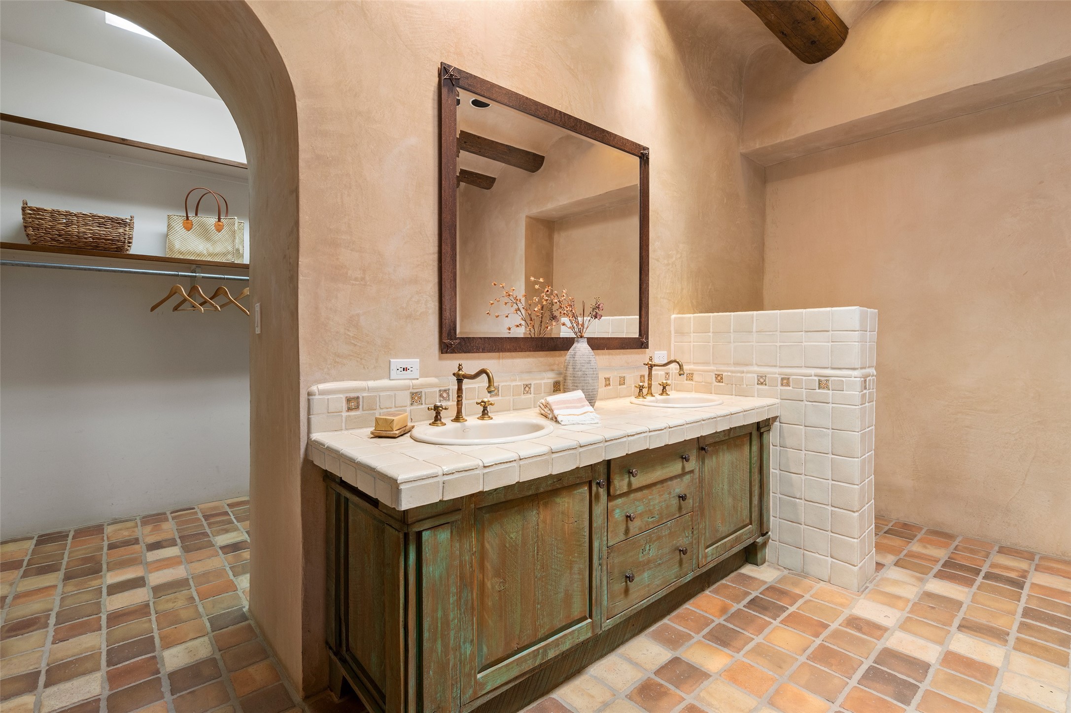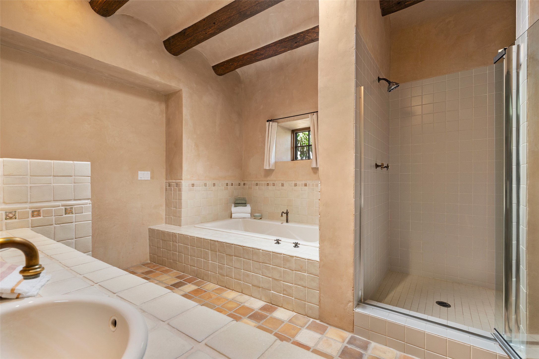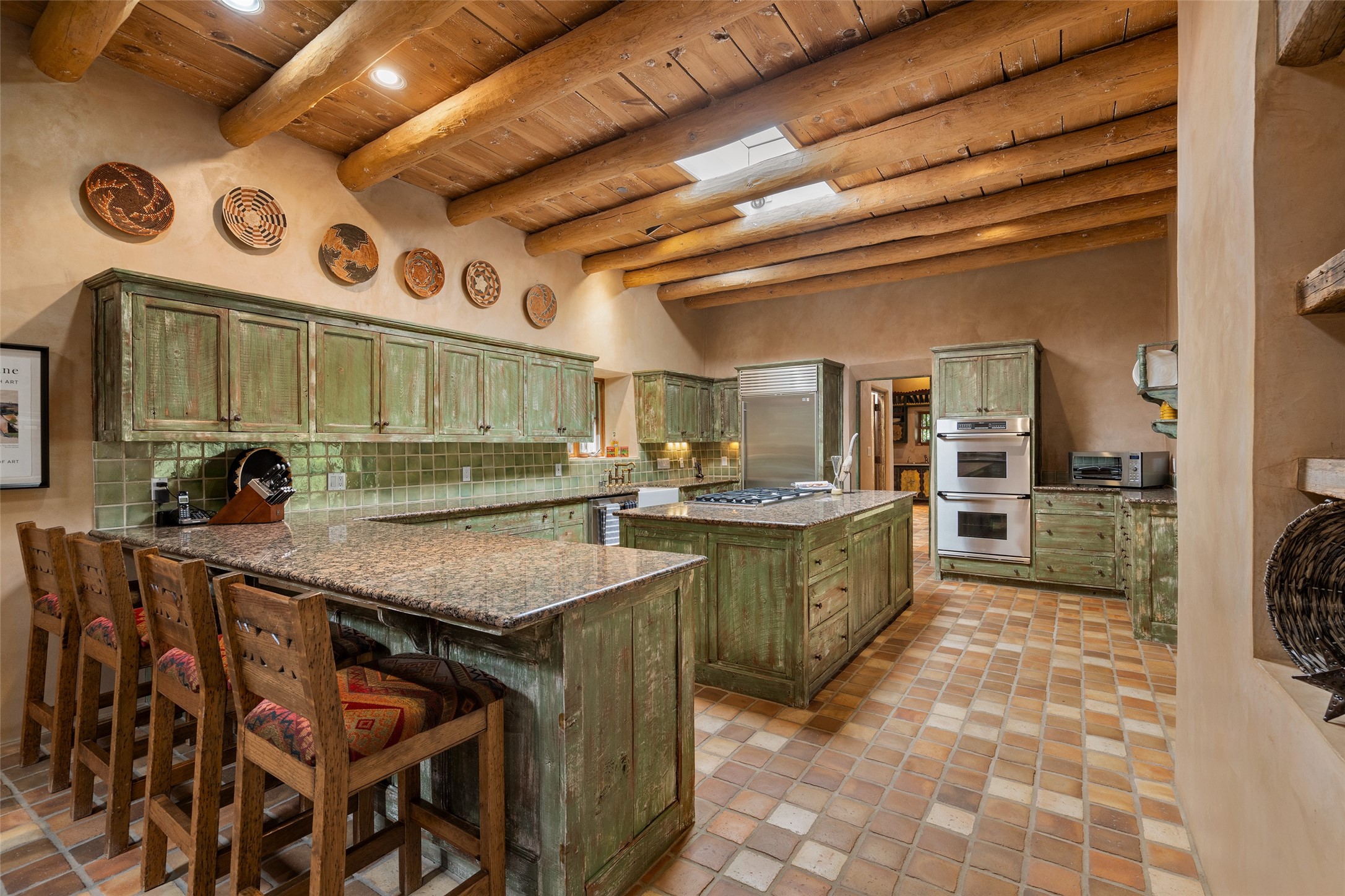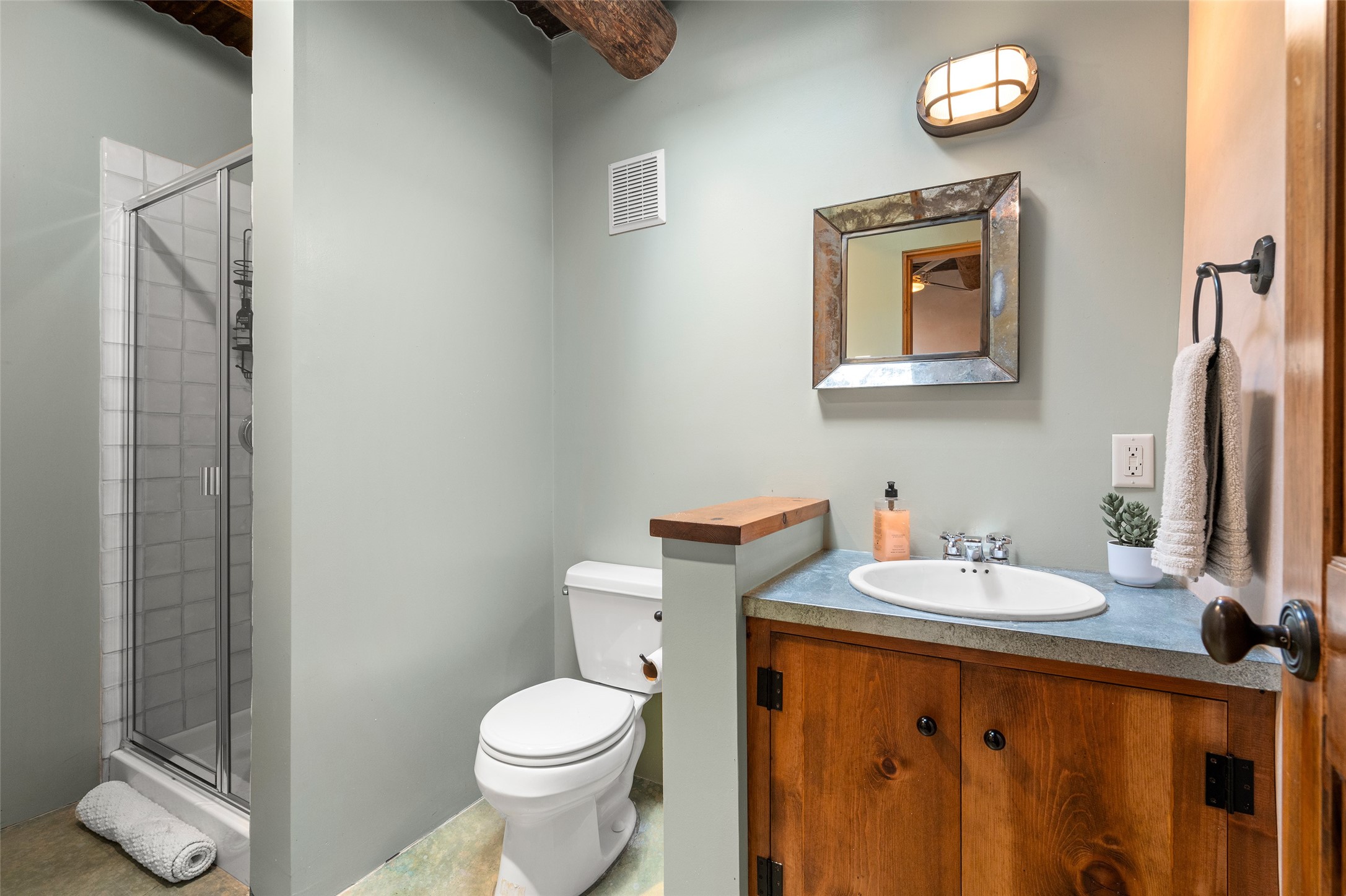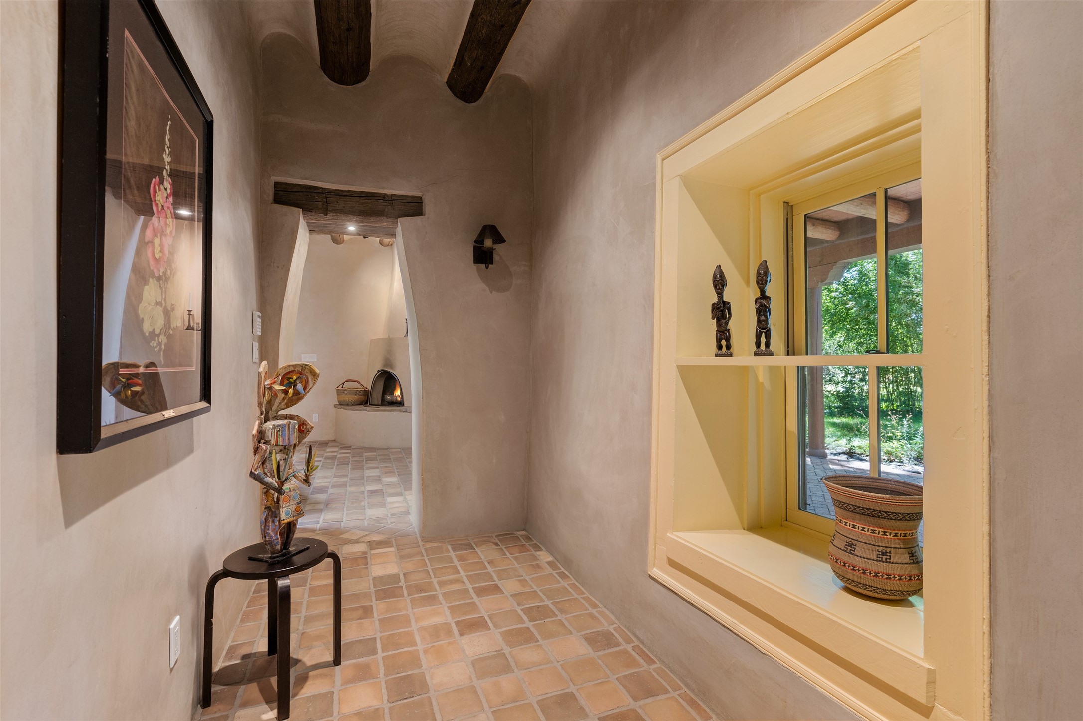 Historic Adobe Oasis on the Galisteo CreekCreate your own paradise along the Galisteo Creek. This stunning 6.39 acre estate offers a compelling blend of historic character, traditional craftsmanship, and natural beauty. A renovated 2 bed, 2 bath double adobe main residence, and a charming 1 bedroom, 1 bath guest quarters create a private compound offering the best of old and new in the heart of one of New Mexico's most storied villages, all a mere 30 minute drive from Santa Fe.The main home features 2 bedrooms and 2.5 baths, showcasing hand-plastered walls, vigas, latillas, deep adobe walls, high ceilings and wood-burning fireplaces that reflect the architectural heritage of the area, enhanced by historic ruins on the property dating back to 1880. Thoughtful renovations and preservation work ensure modern comfort while honoring the property's authenticity.Residents and guests will appreciate the privacy of the split floor plan, with the two bedroom suites separate and serene, each featuring their own cozy fireplace and en suite bath. The large kitchen boasts an equally large butlers pantry. It's a generous amount of space allowing for a multifaceted culinary experience. Set beneath majestic cottonwoods in a park-like setting, surrounded by lush irrigated landscaping, the grounds are verdant with fruit trees and flower gardens. Proximity to the Galisteo Creek enhances the sense of abundance and connection, with expansive portals and shaded outdoor spaces ideal for quiet retreat or entertaining.The separate guest house offers its own living space with a kitchenette and bath, ideal for hosting guests or tenants. It has also been used as an artist studio as the concrete floors allow for being creative. There is a large barn door that opens out to a small porch perfect for a lovely evening dinner. Experience this rare, water-adjacent adobe property in an artistic community full of heritage and natural splendor.