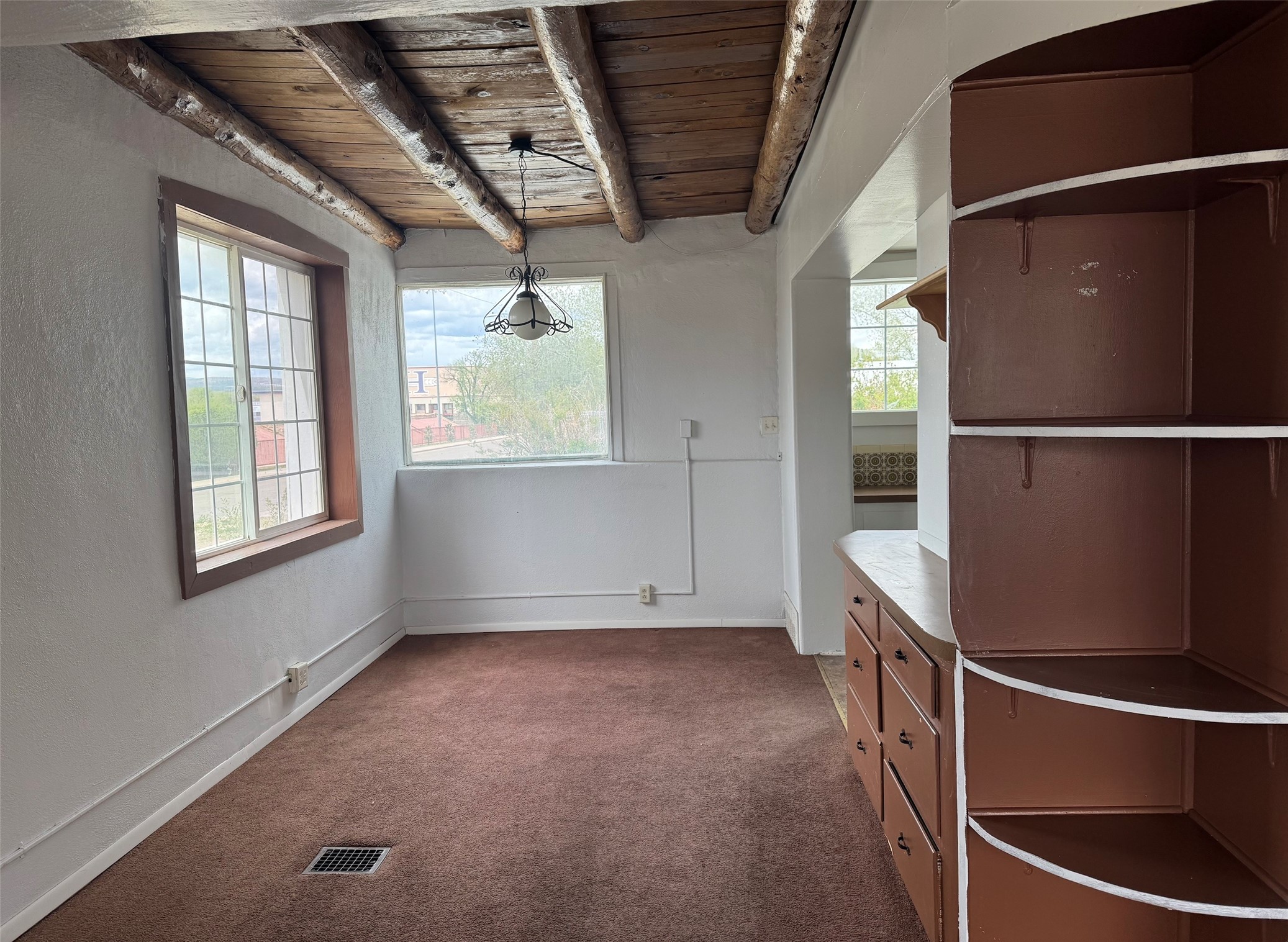 Centrally located large home! Five bedrooms, two bathrooms, large living room and kitchen with plenty of cabinets. Exposed vigas, large primary with en-suite bathroom. Large corner lot. Come take a look today!