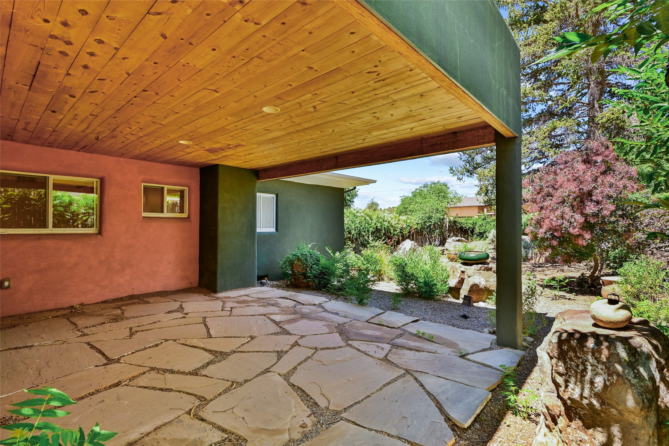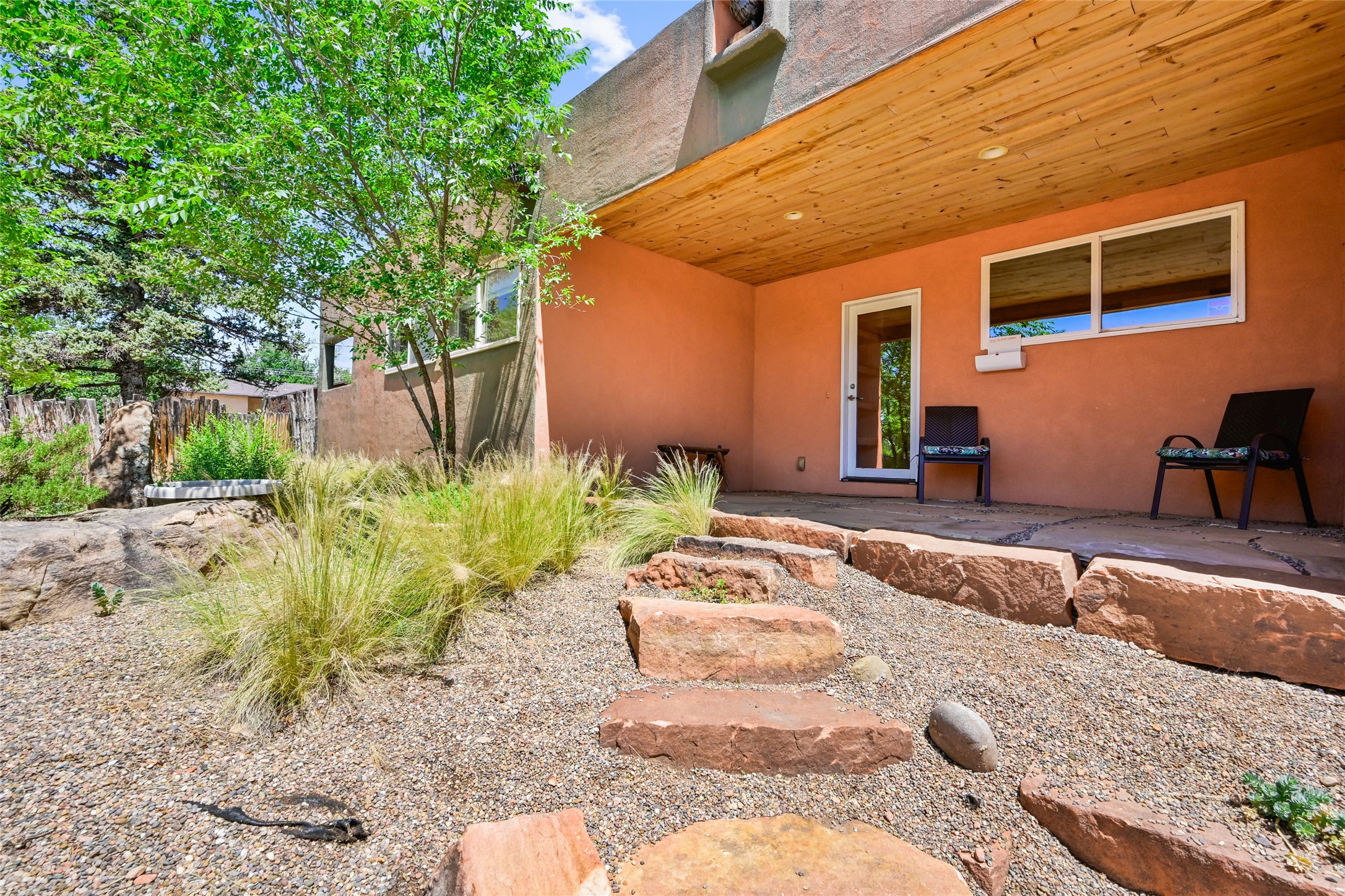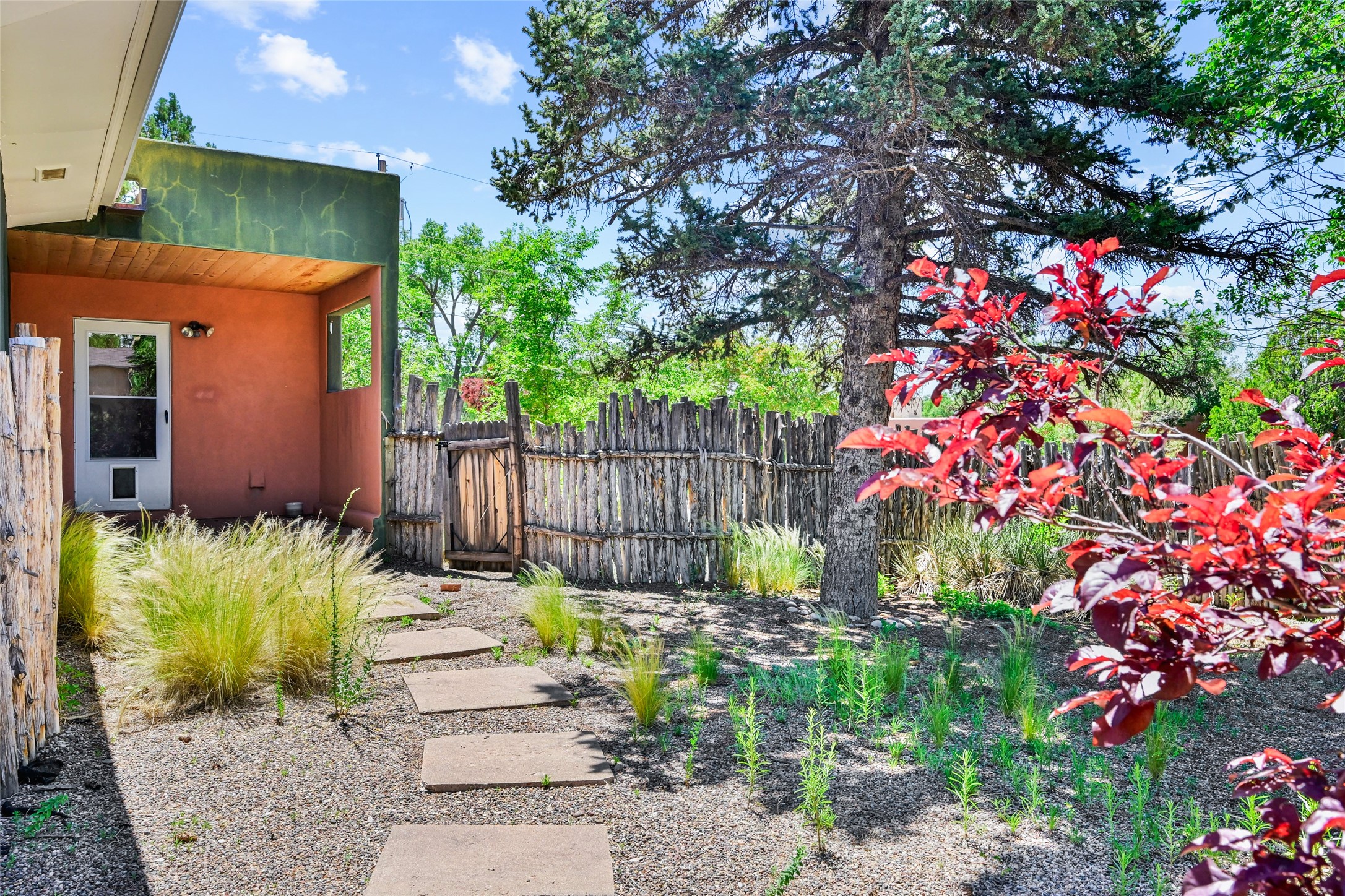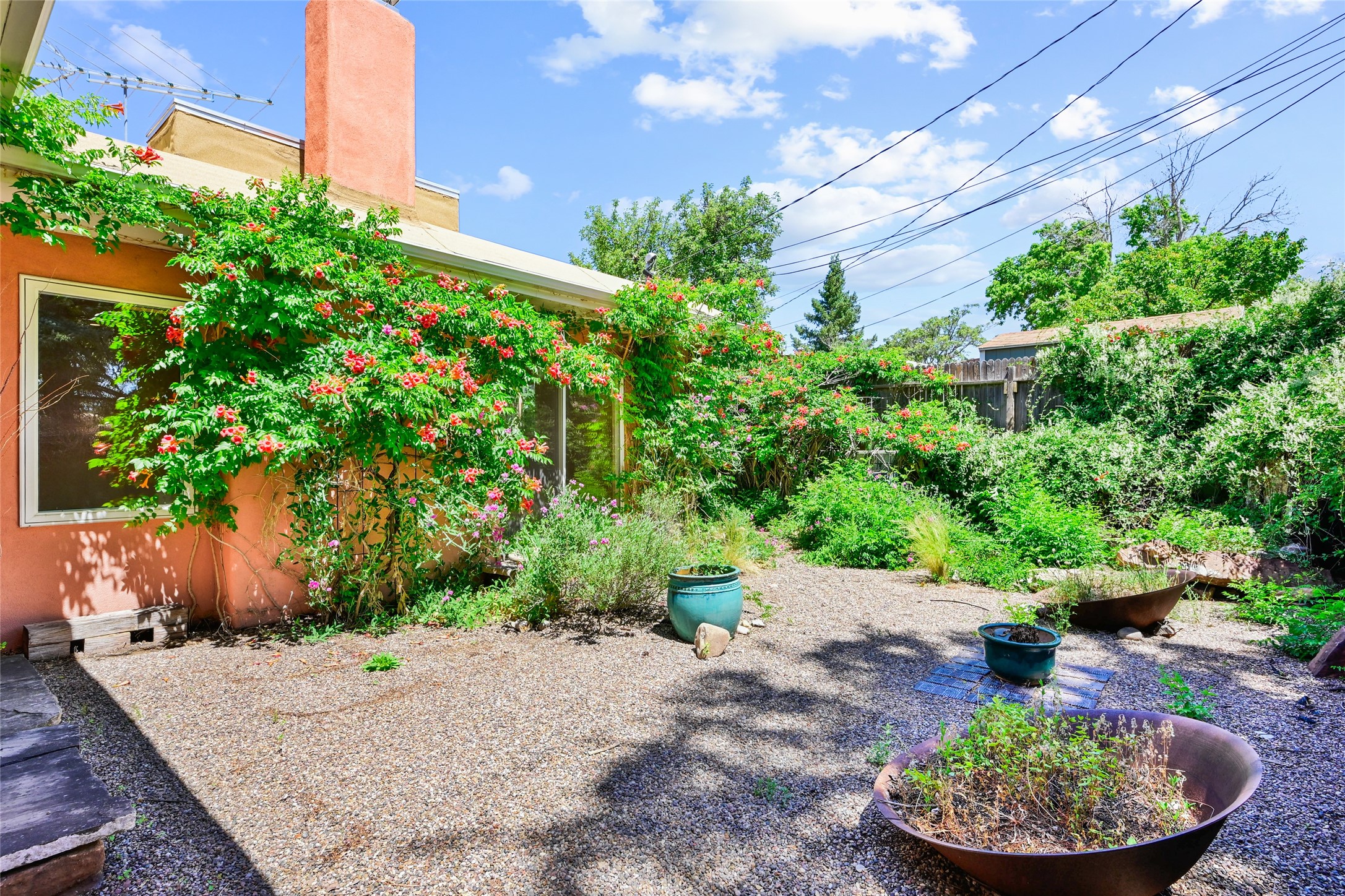 This unique and versatile home in Casa Solana is ideal for a growing family, multi-generational living or savvy investor. The owner has expanded the home to include two separate living spaces. The original home has a primary bedroom suite with a full bath, a second bedroom or office, living area and kitchen. The owner's wing features an open concept kitchen and great room with a wood burning fireplace, an artfully designed primary bedroom and bath, a second bedroom, bathroom, as well as a flex space for a home office and artist studio. Both units have off-street parking and excellent outdoor entertaining spaces. This property offers a fantastic investment opportunity, allowing you to live in one unit and rent out the other or both. Just minutes to shopping, the Plaza and the Railyard.