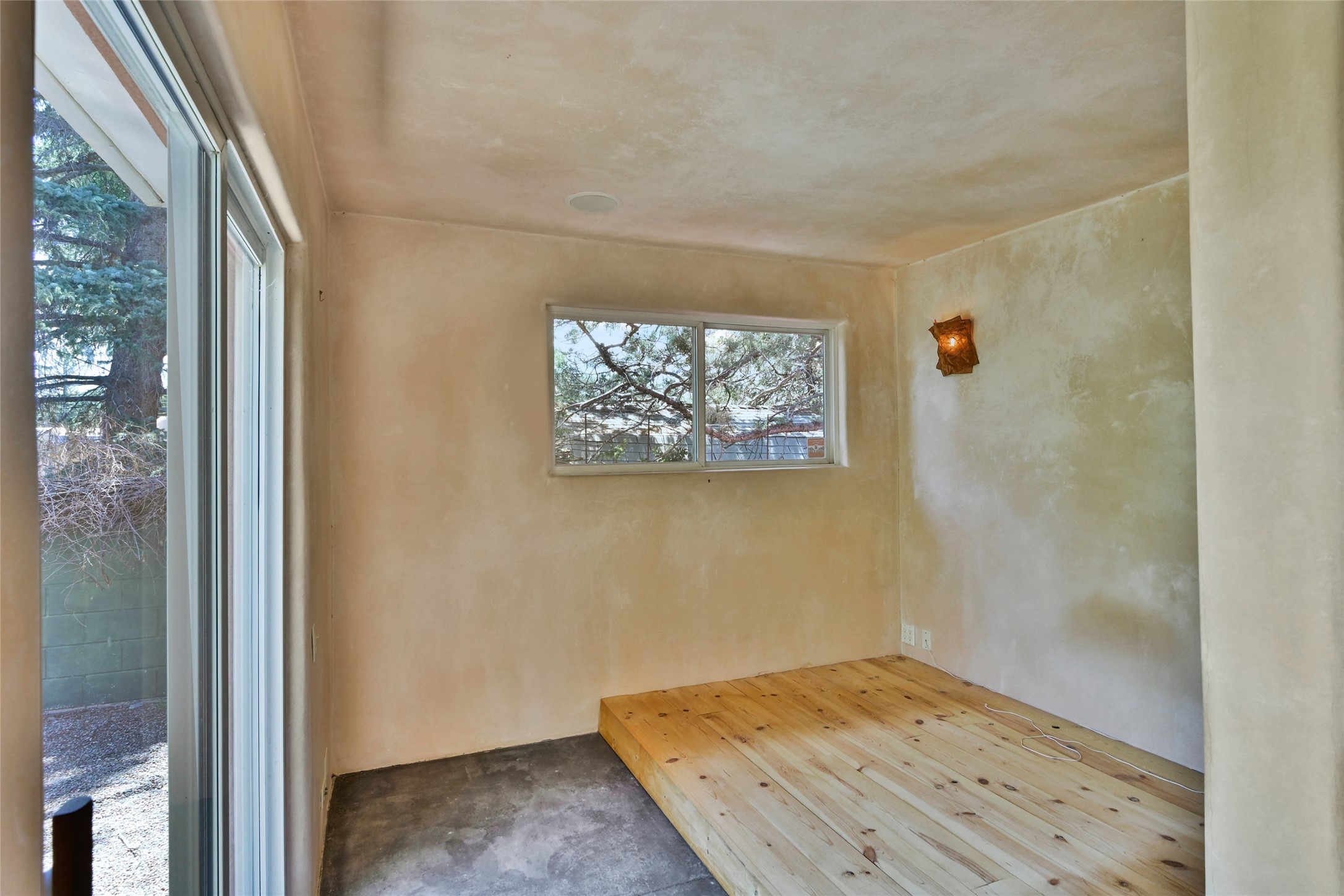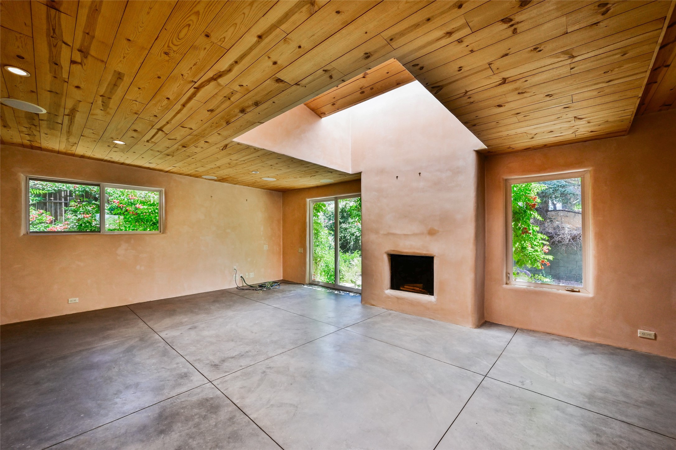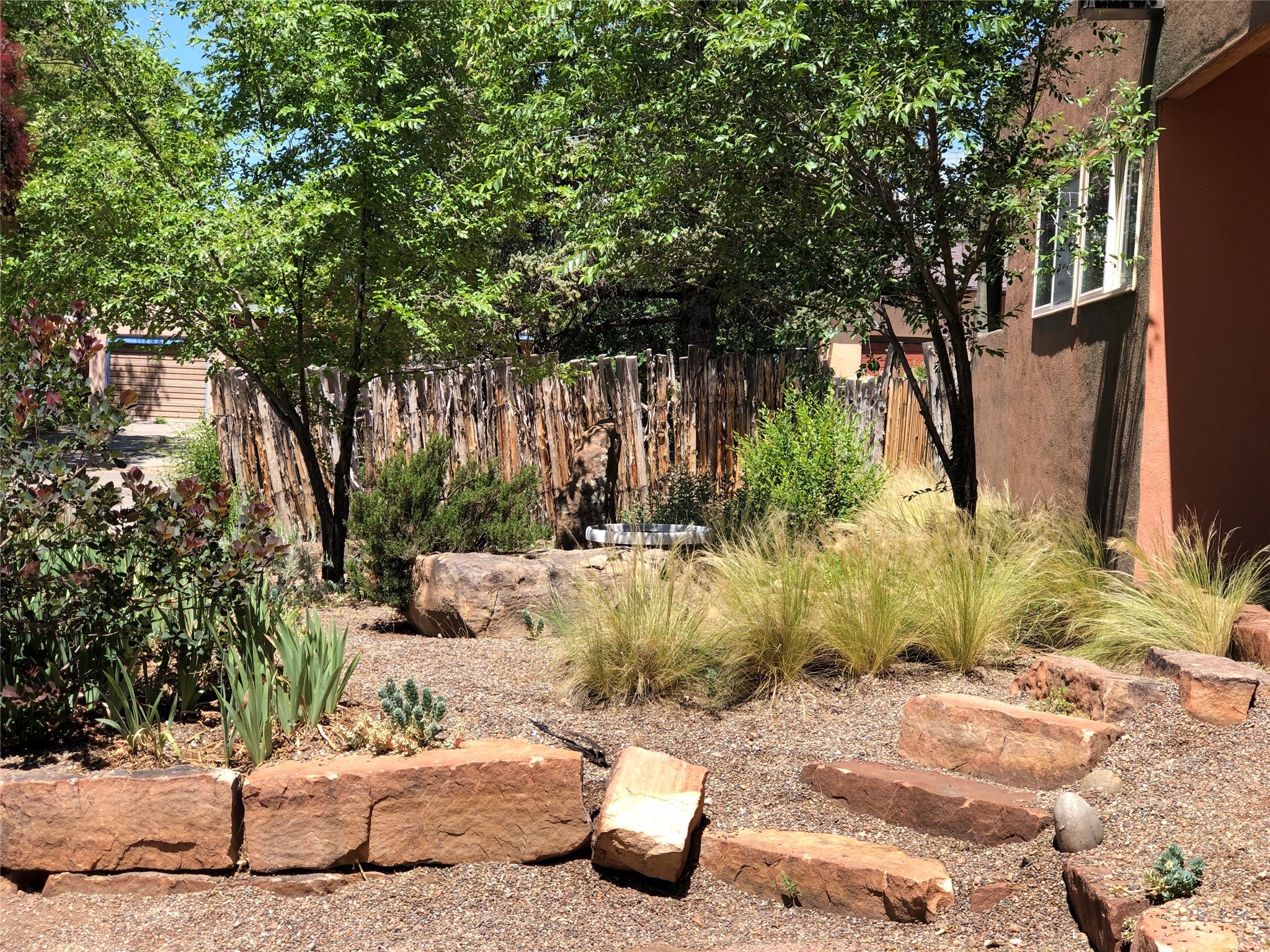 This unique and versatile home in Casa Solana is ideal for a growing family, multi-generational living or savvy investor. The owner has expanded the home to include two separate living spaces. The original home has a primary bedroom suite with a full bath, a second bedroom or office, living area and kitchen. The owner's wing features an open concept kitchen and great room with a wood burning fireplace, an artfully designed primary bedroom and bath, a second bedroom, bathroom, as well as a flex space for a home office and artist studio. Both units have off-street parking and excellent outdoor entertaining spaces. This property offers a fantastic investment opportunity, allowing you to live in one unit and rent out the other or both. Just minutes to shopping, the Plaza and the Railyard.