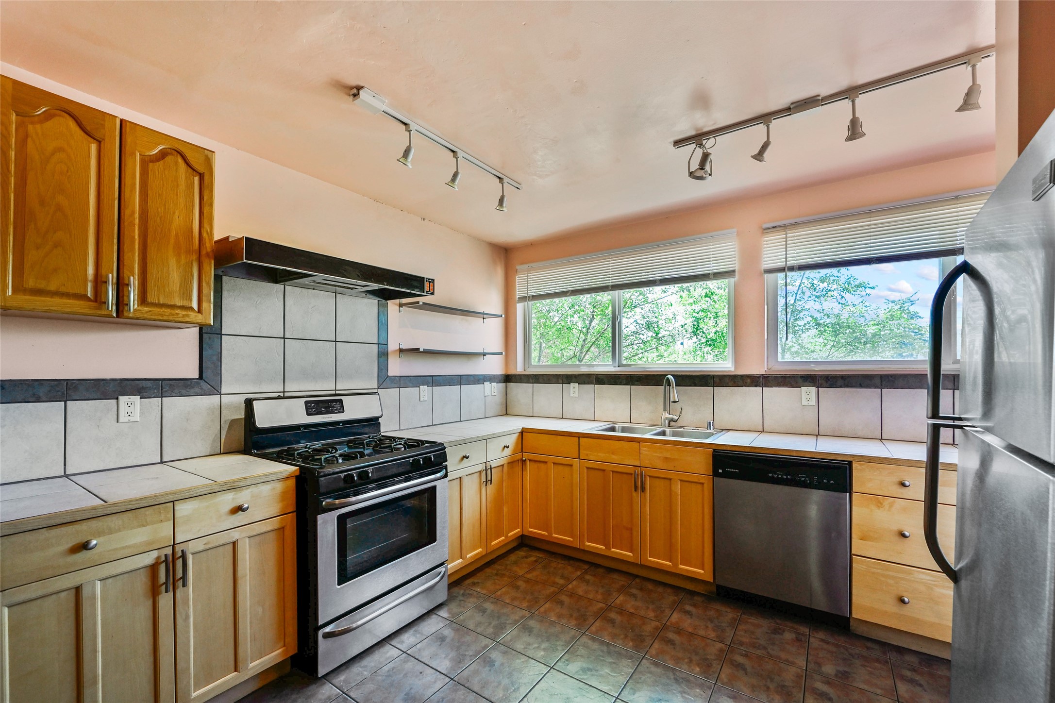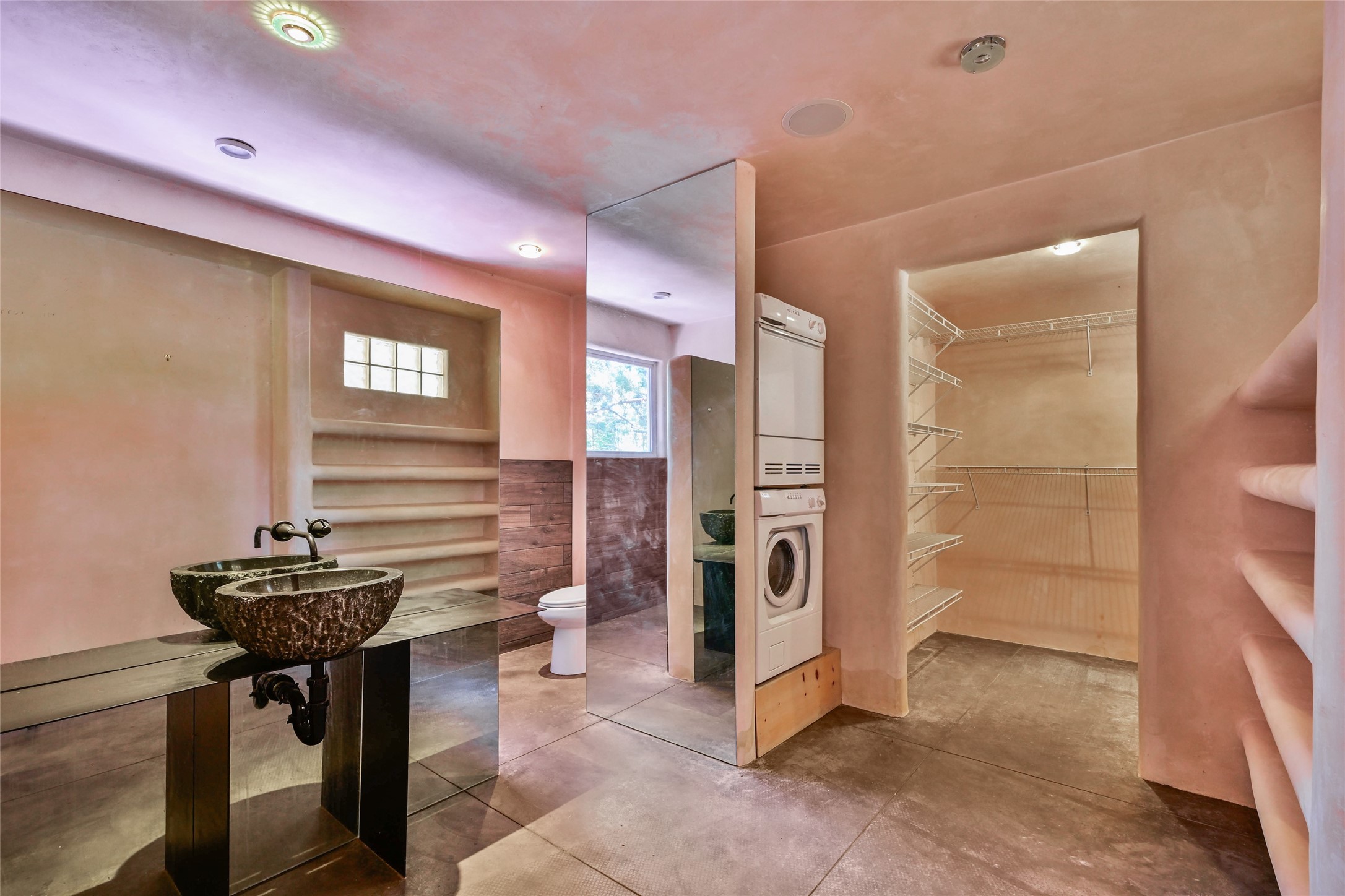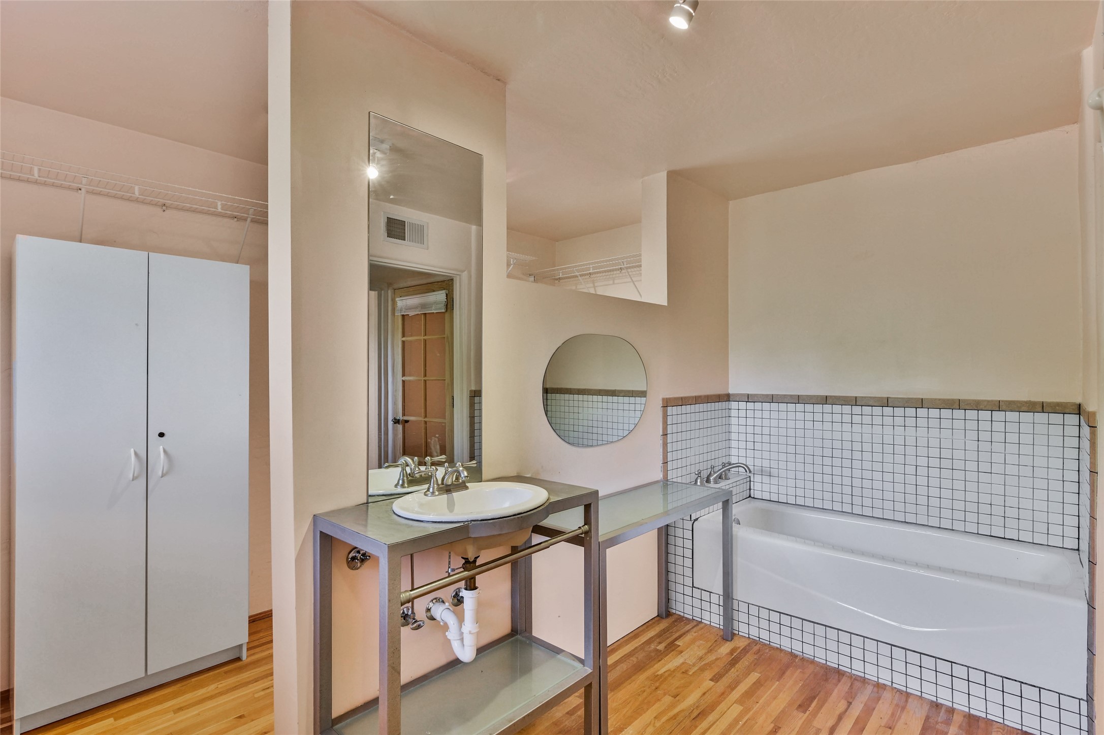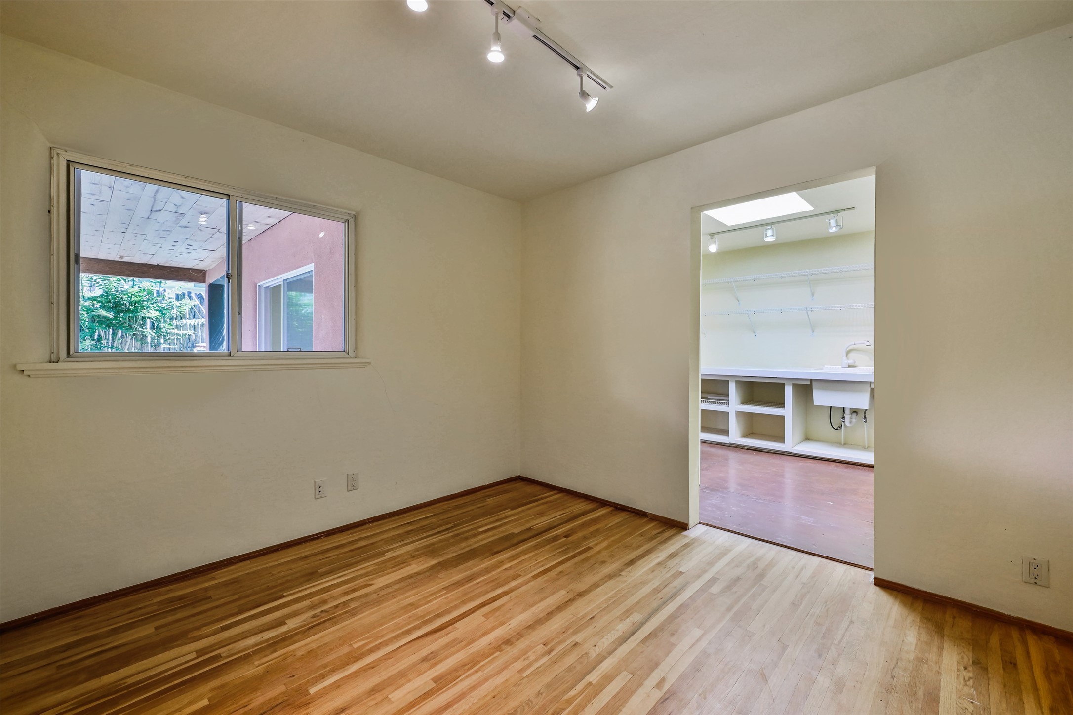 This unique and versatile home in Casa Solana is ideal for a growing family, multi-generational living or savvy investor. The owner has expanded the home to include two separate living spaces. The original home has a primary bedroom suite with a full bath, a second bedroom or office, living area and kitchen. The owner's wing features an open concept kitchen and great room with a wood burning fireplace, an artfully designed primary bedroom and bath, a second bedroom, bathroom, as well as a flex space for a home office and artist studio. Both units have off-street parking and excellent outdoor entertaining spaces. This property offers a fantastic investment opportunity, allowing you to live in one unit and rent out the other or both. Just minutes to shopping, the Plaza and the Railyard.