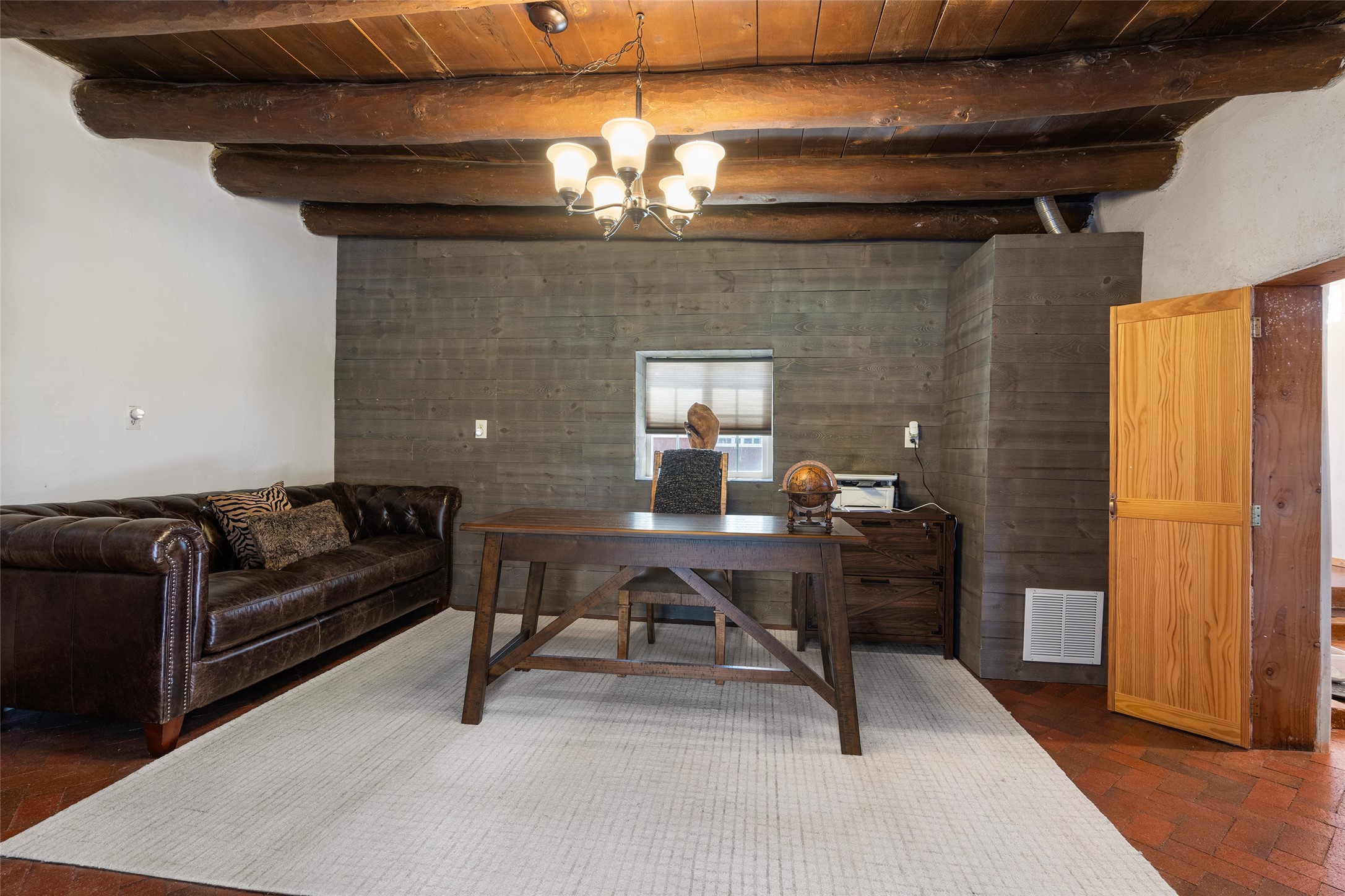 Step into a piece of history at 2 Short Rd in the charming community of Nambe, Santa Fe County. Constructed in 1904, this extraordinary adobe home offers a unique blend of historical charm and artistic legacy. With 3,223 square feet of expansive living space, this home invites you to explore its timeless character and stories etched into its walls.Set on nearly half an acre (.479 acres) of serene landscape, the property provides a peaceful retreat with ample space for outdoor enjoyment. A standout feature is a mural gracing the back portal--a stunning work of art that seamlessly marries the cultural richness of the past with the vibrant artistic spirit of the present.This is not just a home; it is a sanctuary where history and art come together to create an unforgettable living experience. Discover the allure of Nambe, and make this iconic piece of New Mexico's heritage your own. The beautiful mural on the back portal was painted by the Seller's grandfather and is featured in a book "Adobe! Homes and Interiors of Taos, Santa Fe and the Southwest by Sandra and Laurel Seth.