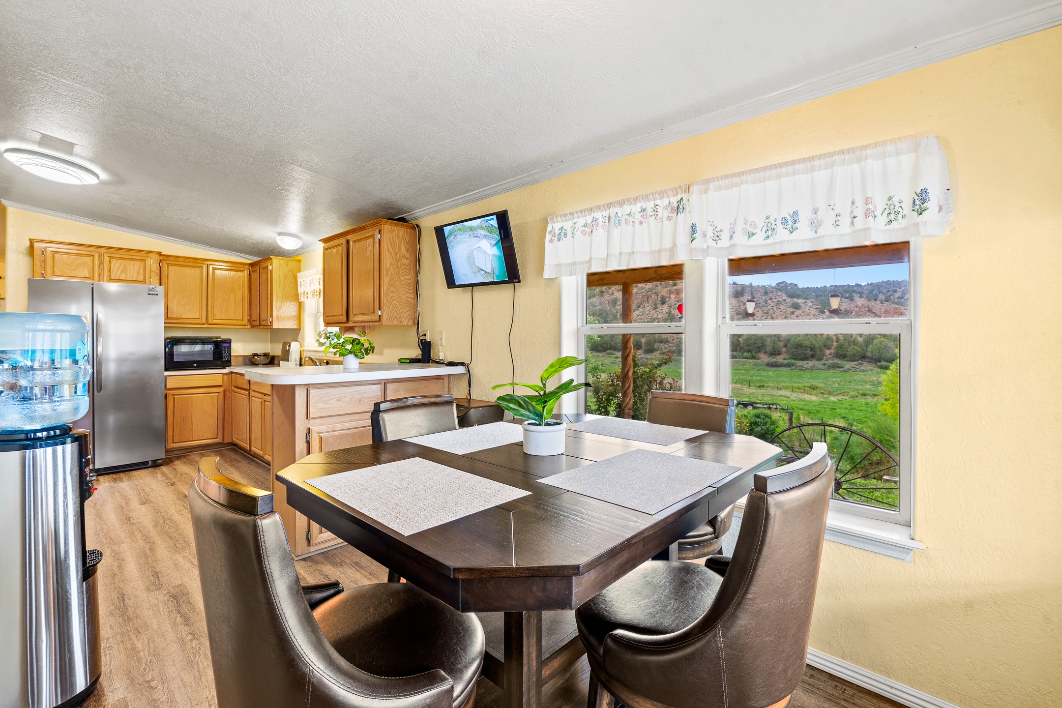 Nestled in the serene, green valley of La Madera--between the vibrant art hubs of Santa Fe and Taos--this well-maintained 1,500 sq ft manufactured home offers peaceful living in a breathtaking Northern New Mexico setting. Surrounded by stunning mountain views and with the gentle Rio Tusas flowing nearby, this 3-bedroom, 2-bathroom home sits on a spacious 1.029-acre lot, perfect for those seeking privacy, tranquility, and natural beauty.The property is ideal as a full-time residence, weekend getaway, or artist's retreat. Enjoy star-filled skies, fresh mountain air, and endless opportunities for hiking, fishing, and exploring the surrounding wilderness.Exceptional Opportunity:Also available under a separate sale is an adjacent 39-acre parcel of prime irrigated farmland (MLS#202502567). With ample surface water rights and two historic acequias flowing directly through the property, this fertile land is ready for agricultural use--ideal for farming, ranching, or creating your own sustainable homestead. Properties with this kind of water access and rich soil are increasingly rare in Northern New Mexico.