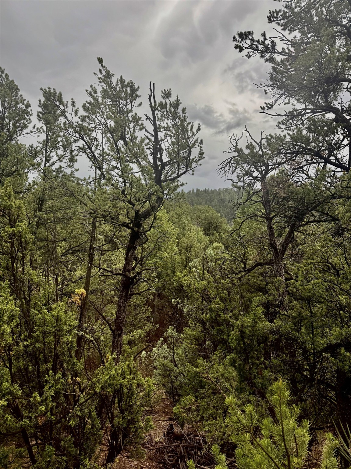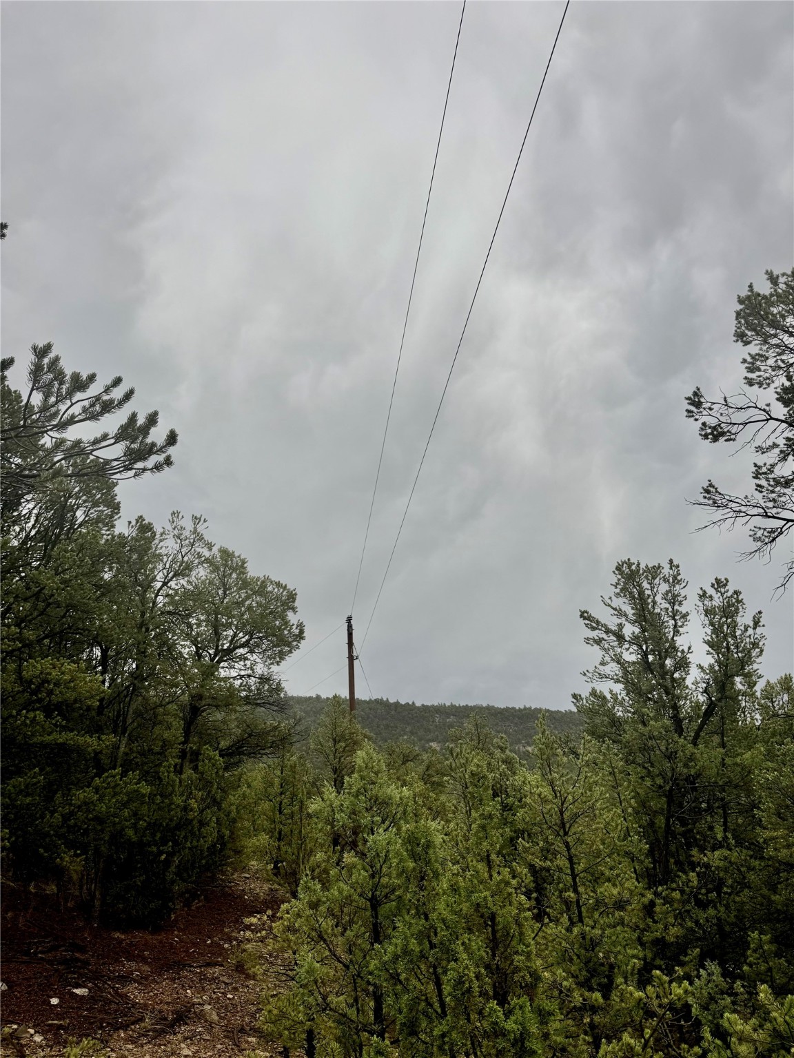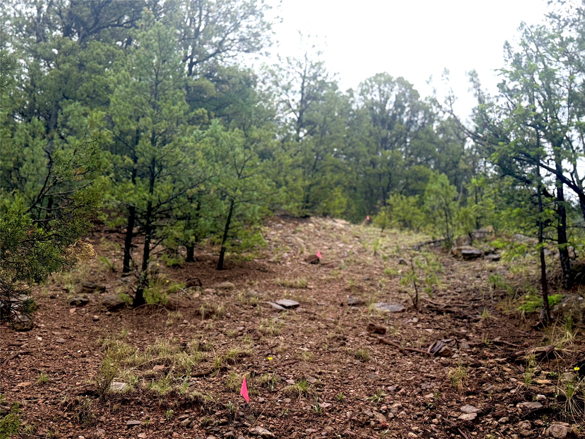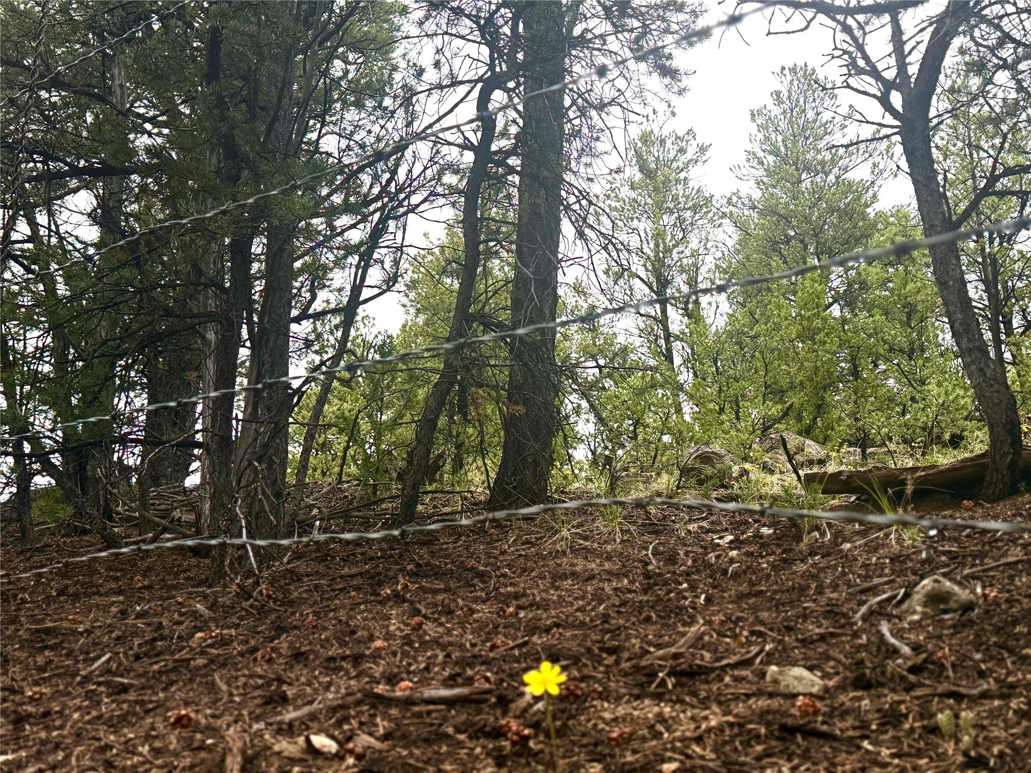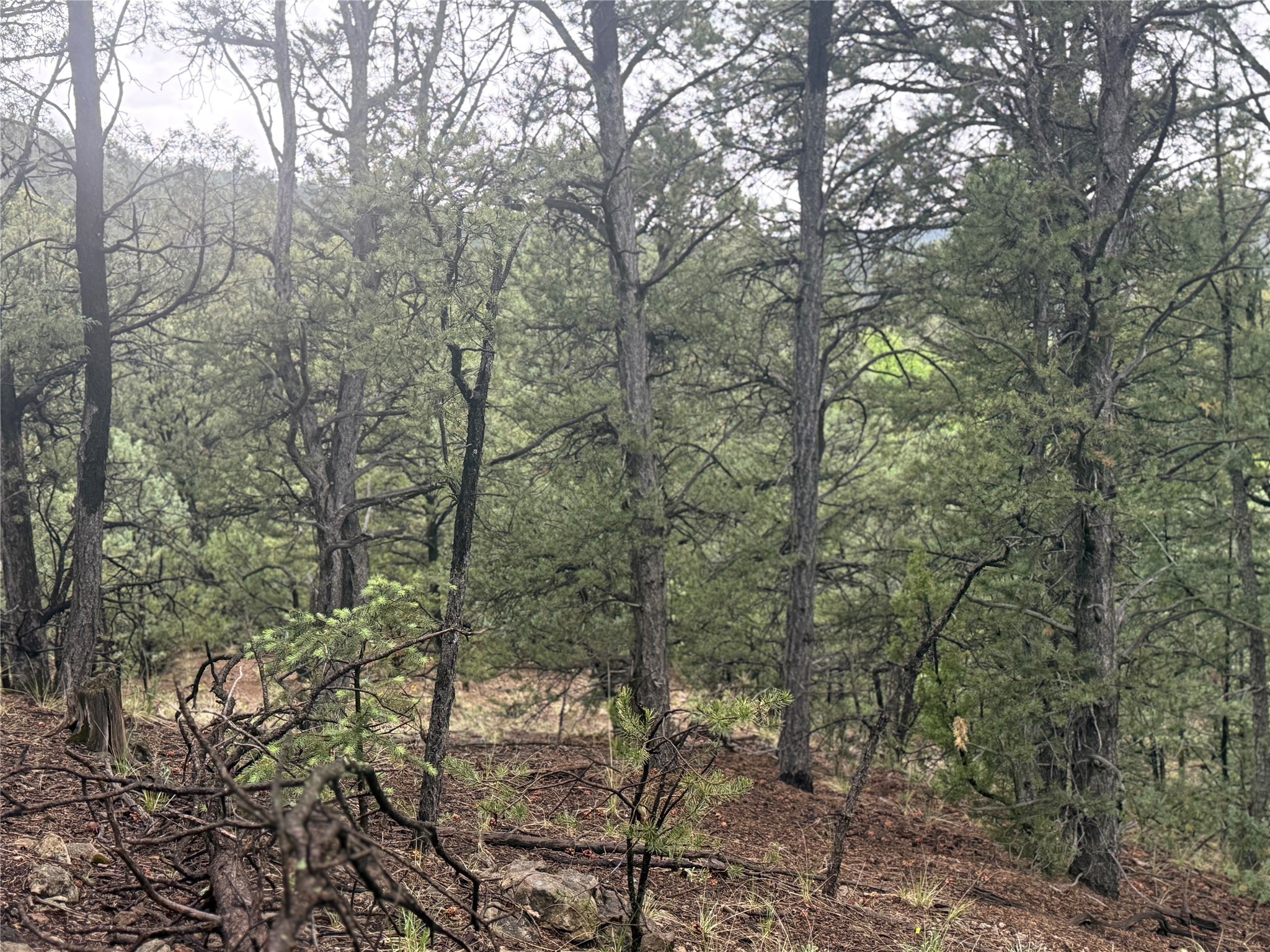 One acre wooded lot in the Pecos Canyon. This sloped lot is adjacent to Highway 63, and is within minutes of fishing and hiking, as well as being just 3 miles north of the town of Pecos for easy access for those who want to commute. The property has electricity nearby, and has no covenants, what you do with the property will be subject only to San Miguel County restrictions. Big pines, rock outcroppings, and outdoor adventure await, all within a convenient distance to Santa Fe.
