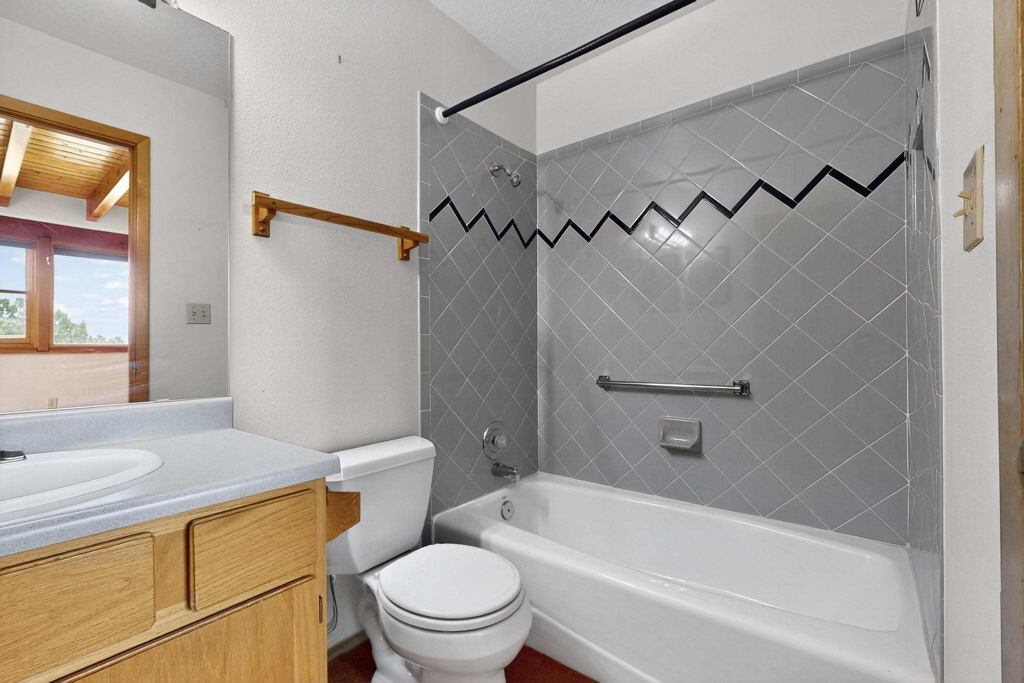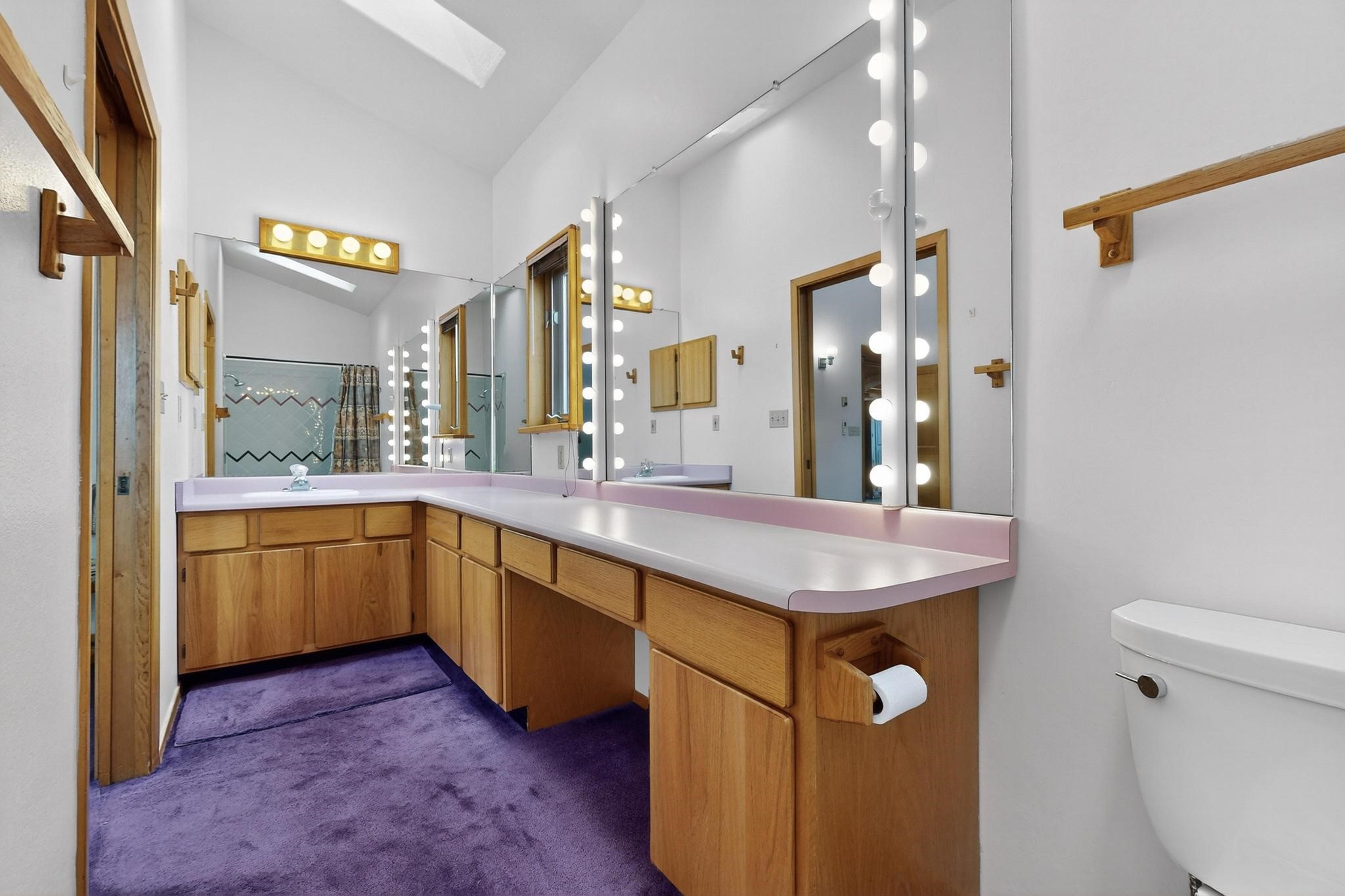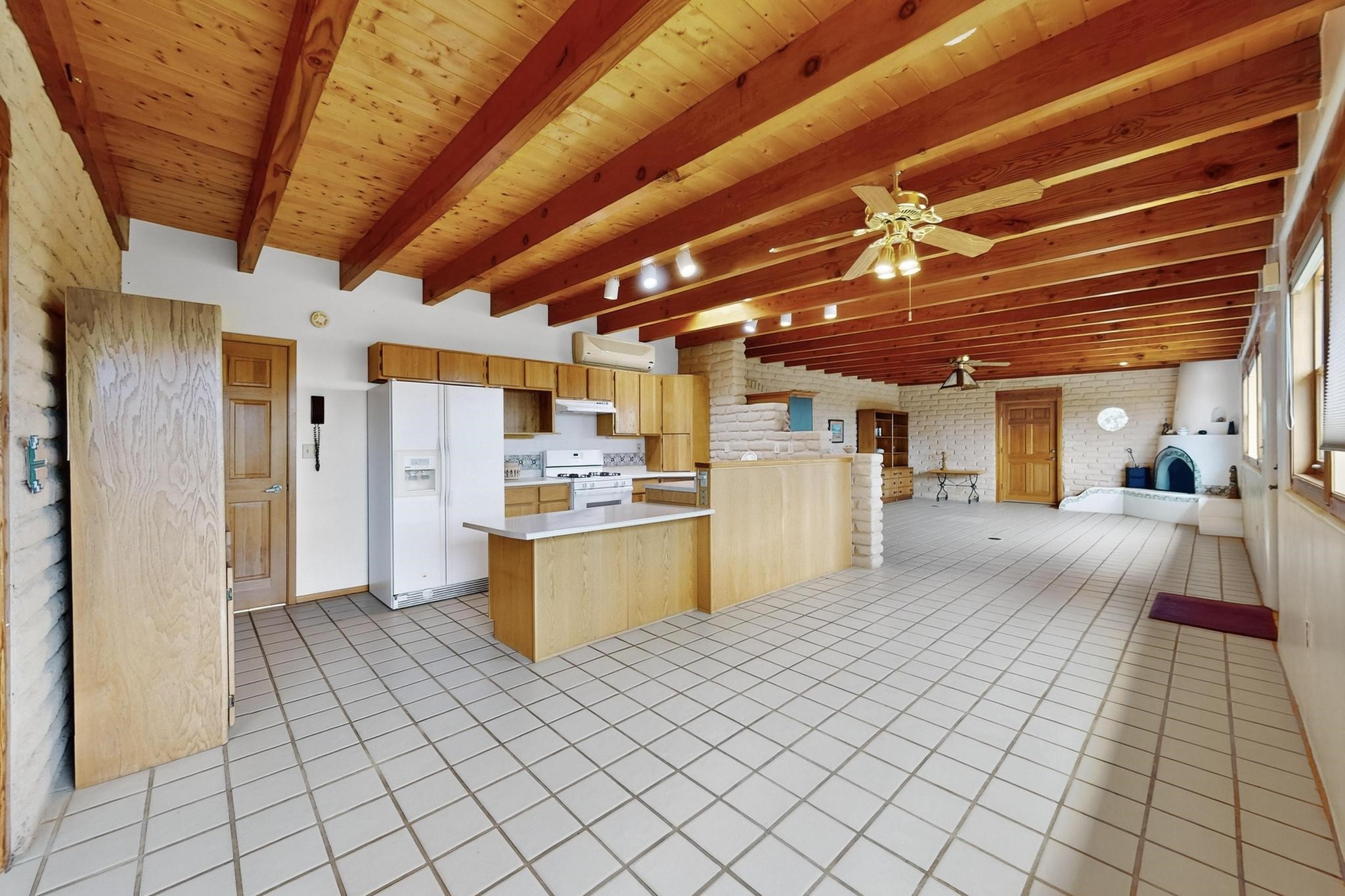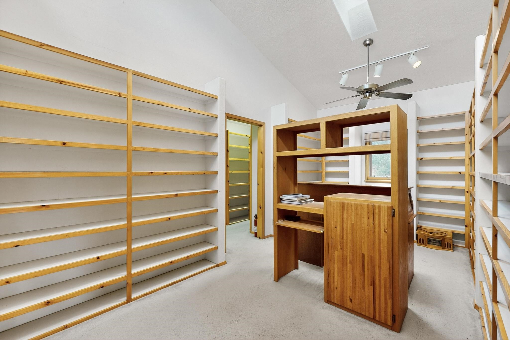 Priced to Sell! First time on the market, grand one owner home custom built by Sierra Homes bordering a large greenbelt, on a cul de sac close to the Eldorado community center and amenities. The passive solar open great room combines kitchen, dining and living room with Kiva fireplace and a mini split. Separate guest bedroom with bathroom off the living room, plus another guest bedroom and full bath, plus an office/library with walk in closet/storage room with extra access from the garage.. A spacious owners suite with large bathroom and mini split for comfortable living. There is an oversized 600sf finished 2 car garage with plenty of storage space and plenty of guest parking. All this close to Eldorado amenities, local shopping, schools, parks, trails, library and senior center, and only minutes into Santa Fe