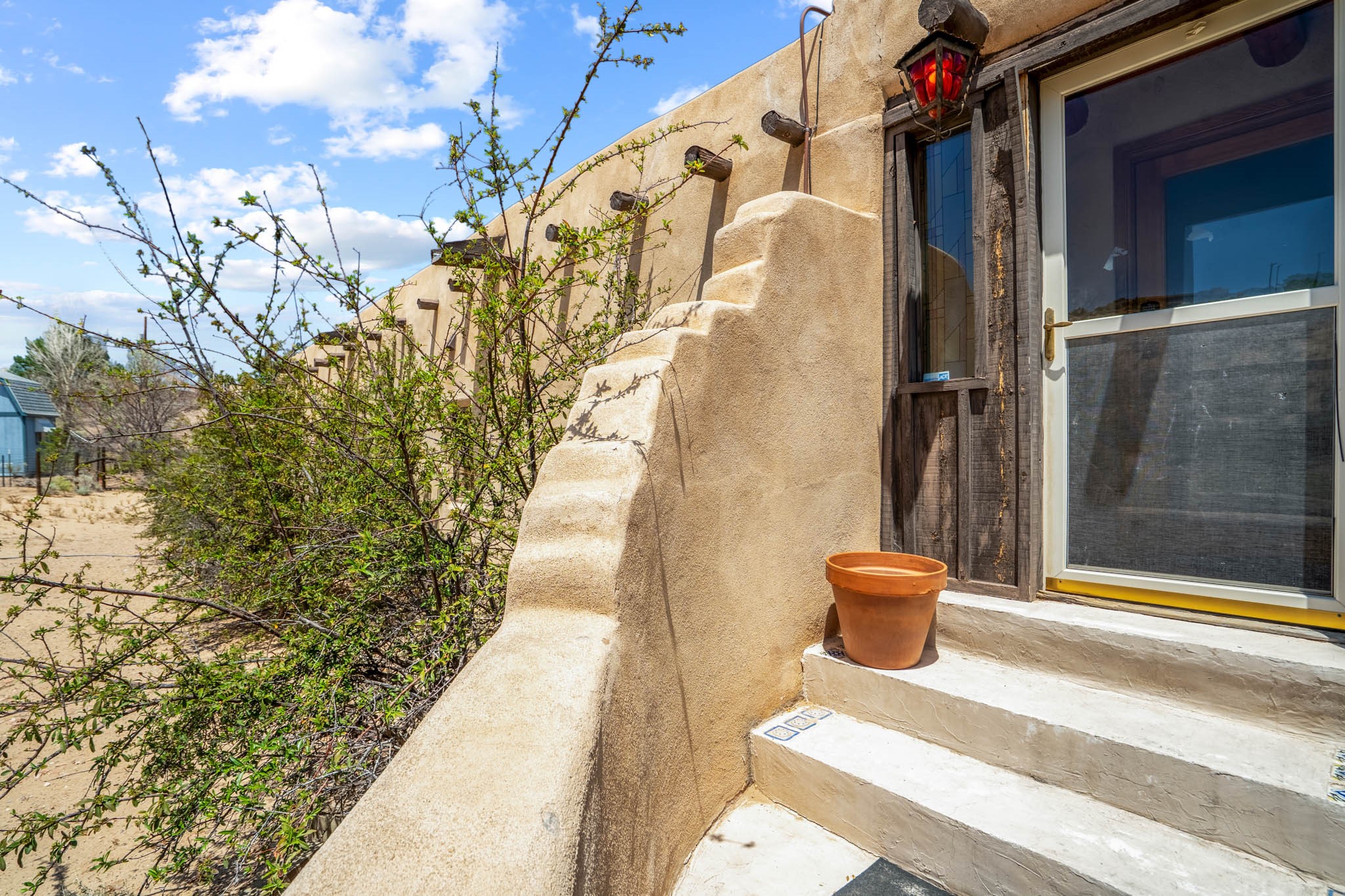 Enchanting Adobe Retreat with Balloon Fiesta Views & Mountain MajestyWelcome to your private New Mexico sanctuary--perched on a peaceful acre at the end of a quiet road, this stunning two-story adobe home offers breathtaking views, timeless character, and unforgettable experiences.Watch the Magic Unfold Every October: From the comfort of your backyard balcony, enjoy front-row seats to the world-famous Albuquerque International Balloon Fiesta. Watch vibrant hot air balloons take flight each morning as they rise gracefully into the sky--an annual tradition that transforms your backyard into a front-row viewing paradise. It's the perfect setting to entertain guests, sip morning coffee, or soak in the wonder of the Southwest.Southwestern Charm Meets Modern Comfort:This thoughtfully crafted adobe home features classic brick floors, exposed vigas, hand-troweled plaster walls, and curved adobe lines that fill the space with warmth and natural light. A striking kiva fireplace anchors the living room, while floor-to-ceiling windows frame expansive mountain and city views.The open-concept kitchen and dining area seamlessly blend rustic charm with modern updates--wood cabinetry, sleek countertops, traditional tilework, and beautiful beamed ceilings. Whether you're hosting a holiday feast or a cozy dinner, this home was made for joyful gatherings and lifelong memories.Outdoor Living at Its Finest:Step into your private courtyard, beautifully landscaped with native flora and multiple seating areas. Listen to birdsong from the trees, wave at the curious roadrunners that visit often, or unwind in the hot tub as the sky puts on a show with radiant sunsets and sunrises.Property Features:1 acre of peaceful land at the end of a quiet roadOwned solar power system (active)Two A/C units (one replaced in 2018)Private well and septic systemTwo RV hookups with a concrete parking slabPrivate balcony with sweeping views of Albuquerque and beyondBirds, roadrunners, and local wildlife enhance the serene settingThe backyard is perfect for entertaining and star-gazingThis home has been a place of deep love, laughter, and countless gatherings with family and friends. From the peaceful morning light to the fiery evening skies--and every Balloon Fiesta in between--it's a home that offers more than just space. It offers experience.Come and fall in love with the magic of New Mexico living--this one-of-a-kind retreat is ready to welcome you home.