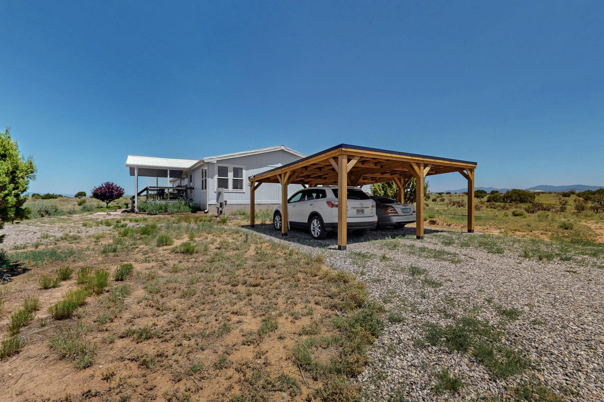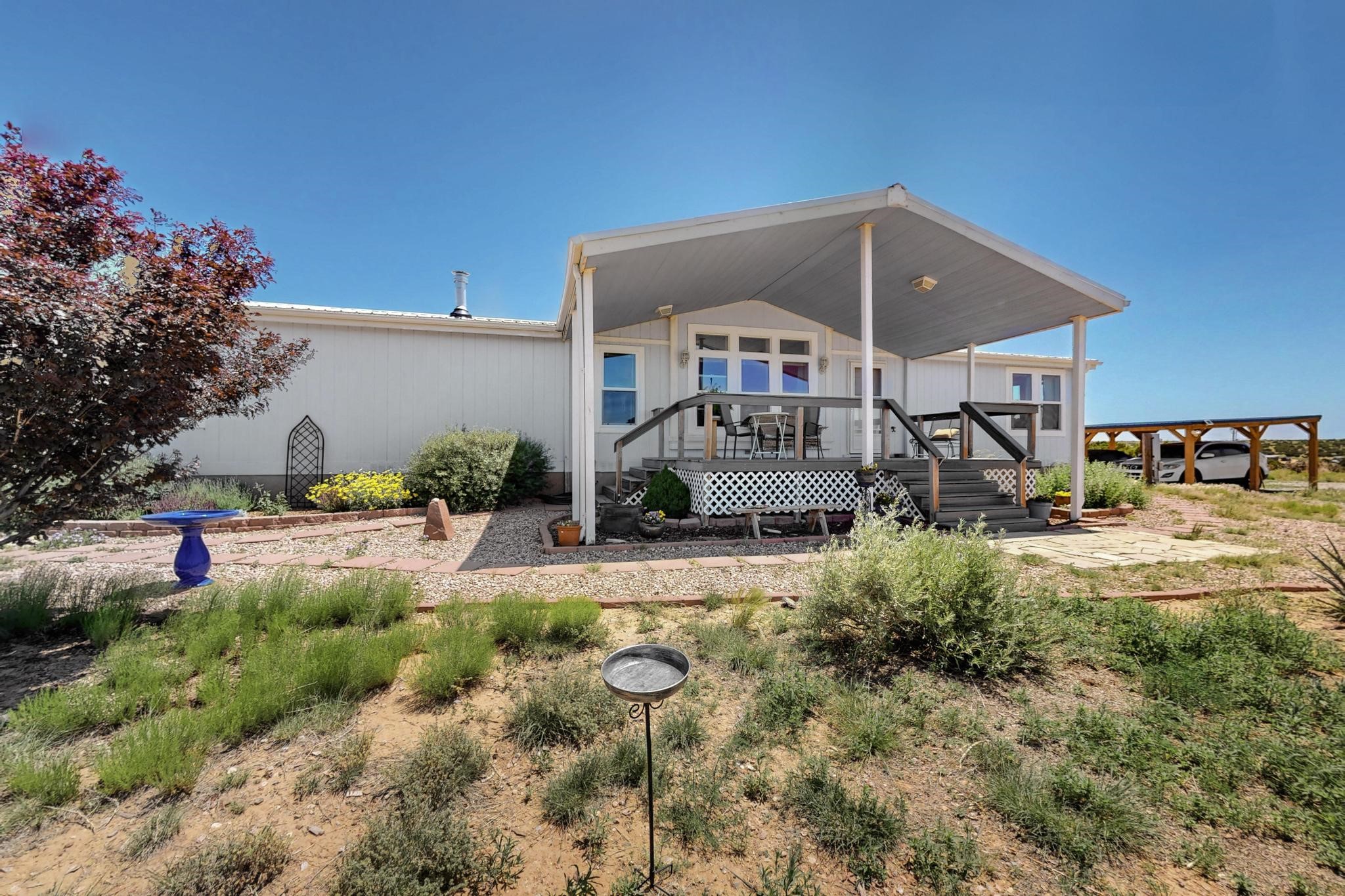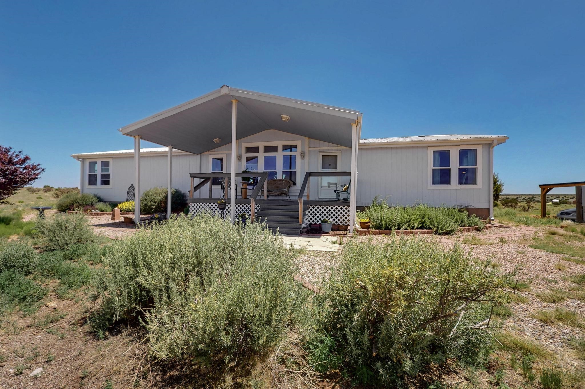 Experience the tranquility of country living on this stunning 6.25-acre property, offering breathtaking views in every direction. This meticulously maintained manufactured home features three bedrooms and two full bathrooms. Enjoy the comfort of central air conditioning, an open floor plan perfect for gatherings, and a cozy gas fireplace. The primary bedroom suite is thoughtfully separated for privacy and includes a luxurious oversized soaking tub and bidet. The kitchen is well-appointed with stainless steel appliances and a bar top, ideal for entertaining. A recently added custom carport provides welcome shade. Schedule an appointment to see this beautiful property today!