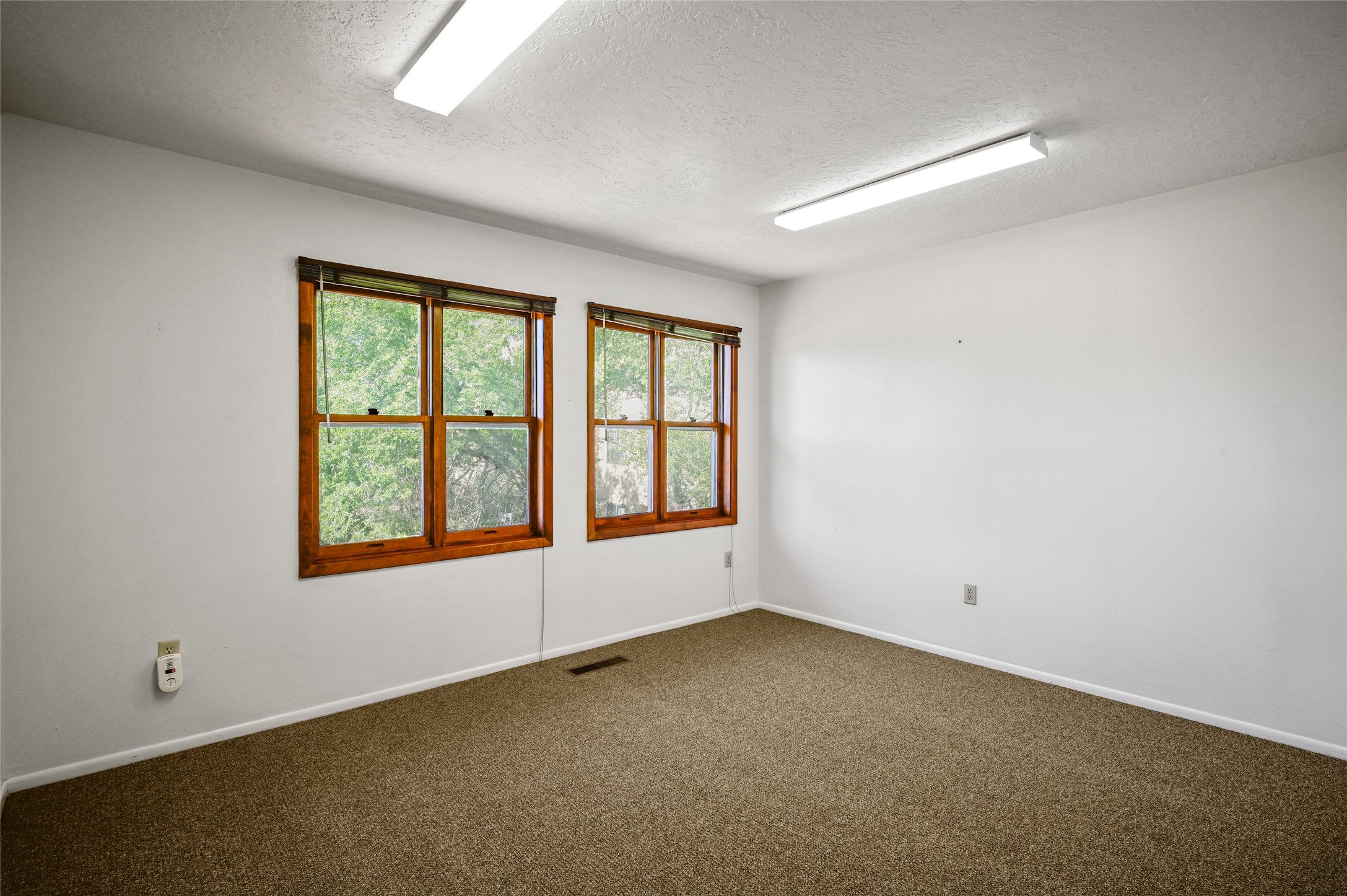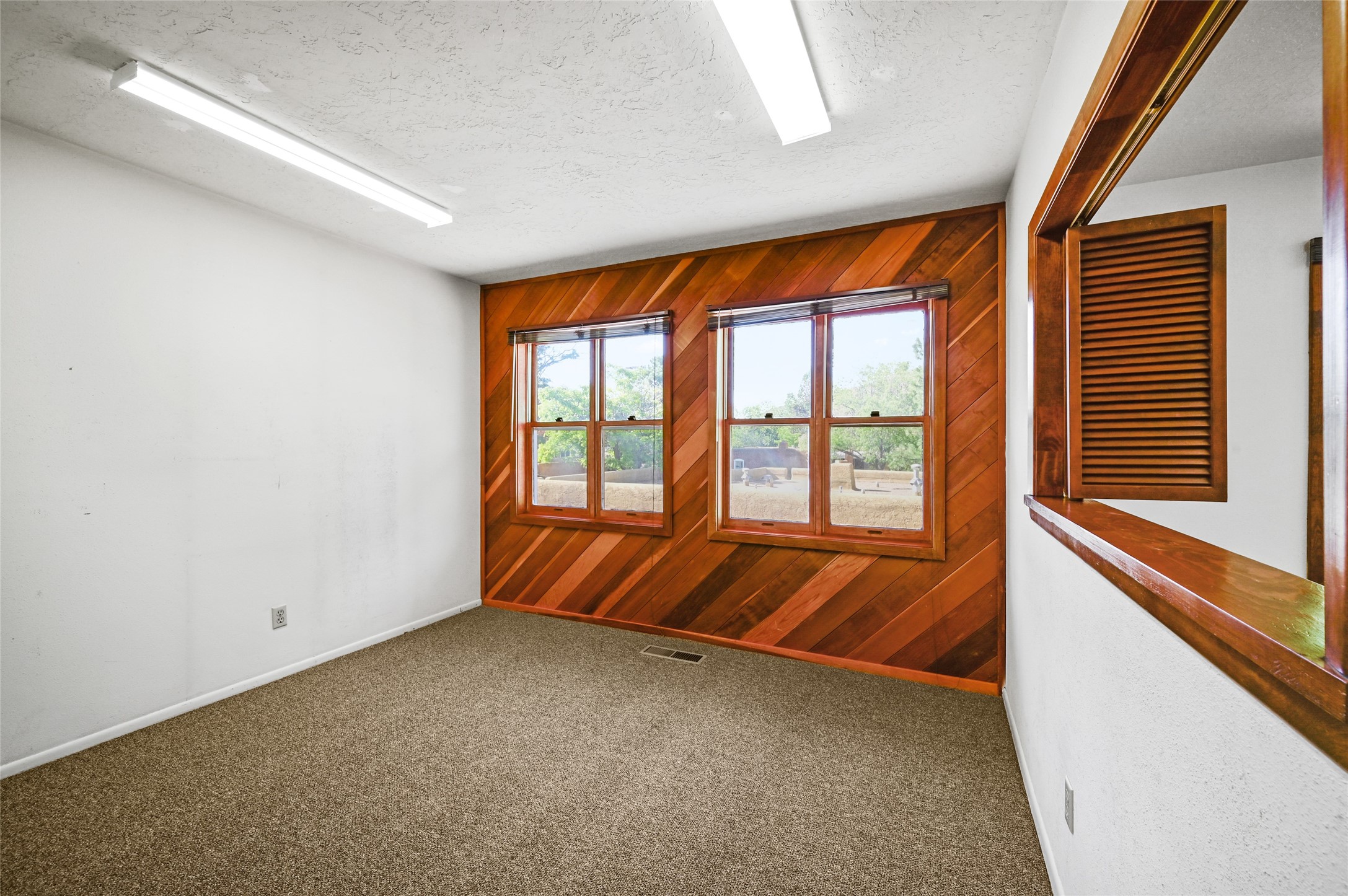 Desirable two-story office condo for sale in the Saint Francis Professional Center (Clock Tower). The space features four windowed offices, one with a charming kiva fireplace and two with built-in bookcases. It also includes a private restroom, a spacious waiting/reception area with ample storage, and newly installed commercial-grade carpet throughout. Conveniently located just off South St. Francis Drive, the property offers easy access to I-25, restaurants, and shopping. Condo dues are approximately $573 quarterly. A great opportunity for a small business or satellite office.