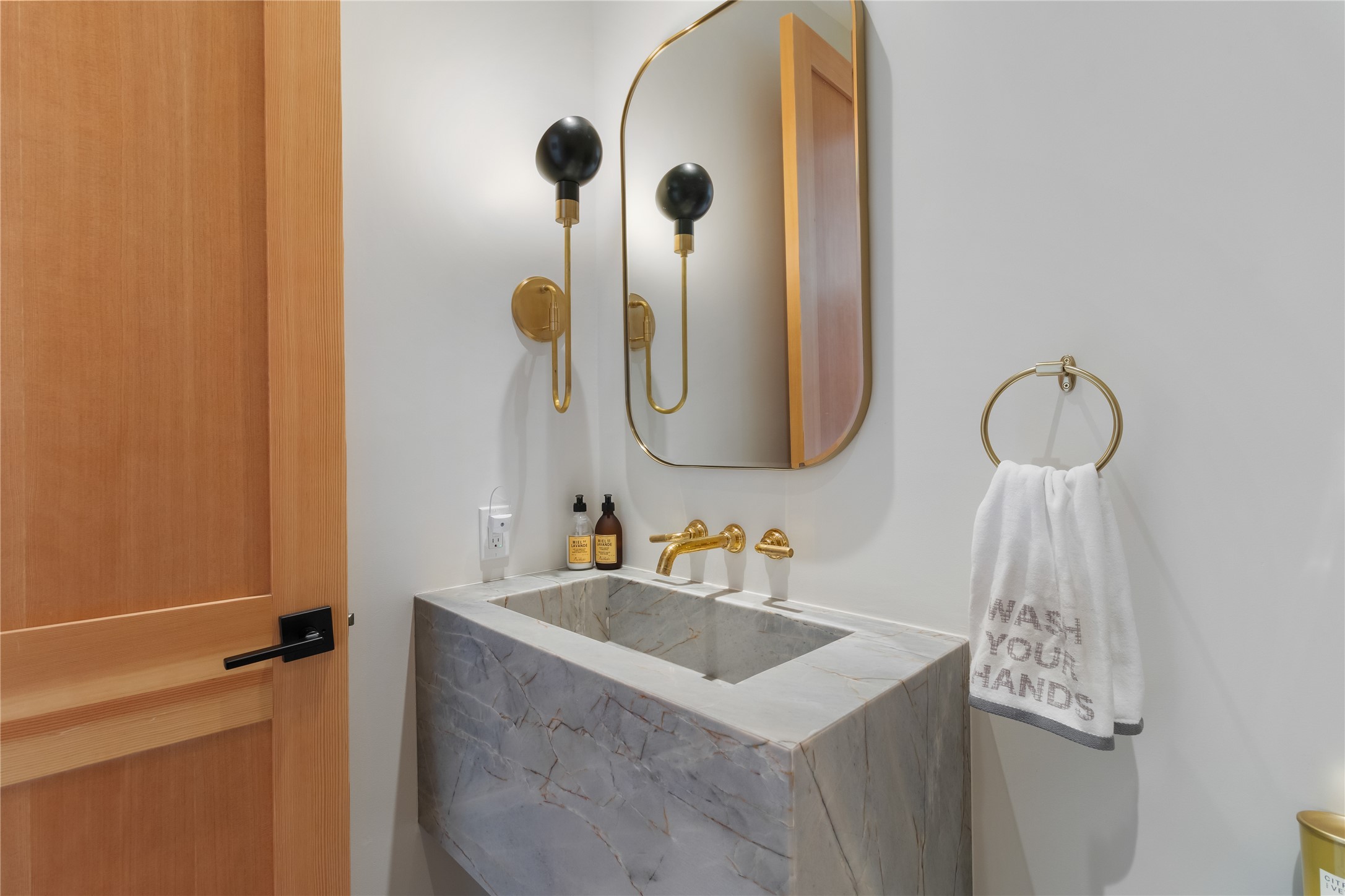 This exquisite 1-acre gated compound that's centrally located & just 2 miles from the historic Santa Fe Plaza features a masterfully designed main residence, spacious guest home, and 6 garage bays for collectors or creatives. The main home offers ~3,875 sq. ft. of refined living with Venetian plaster walls in public areas, custom cabinetry throughout, and 8-ft interior doors. The living and dining rooms feature an impressive dual aspect Ortal fireplace. Soaring ceilings and a wet bar with beverage drawers complete the living room, which opens to a ~1,700 sq. ft. covered patio. Multi-slide door systems open to this impressive patio, that includes built-in Bromic heaters and a 42 inch Wolf grill. The chef's kitchen is anchored by a Lacanche 7-burner stove, pot filler, Sub-Zero refrigerator and freezer, Wolf steam oven, Cove dishwasher and hot/cold tap. The butler's pantry has an abundance of storage, undermount lighting and Red/White EuroCave wine refrigerators. A serene primary suite includes a steam shower, soaking tub, room sized walk-in closet with island, and patio access. Smart touches include Sonos surround system, California Closets, electric patio shades, and a whole-house water filtration system. The guest house (~1,460 sq. ft.) offers generous privacy with a large living area, bedroom, and its own designer fireplace. An attached garage/storage wing (~1,853 sq. ft.) includes a standard 2-car bay plus an oversized 2+ bay garage with 10'x12' doors--ideal for small RVs, boats, or a home gym/studio. Both main and guest garages include EV hookup capabilities. Outdoors, enjoy lush landscaping by McCumber Fine Gardens, fruit trees, raised garden beds, a custom firepit and water feature, and ample space for entertaining--easily accommodating up to 100 guests. Additional highlights include steel electric gates, frosted glass garage doors, radiant heat in main home, and the most luxurious laundry/craft room you will find. This gated retreat is a one-of-a-kind compound.