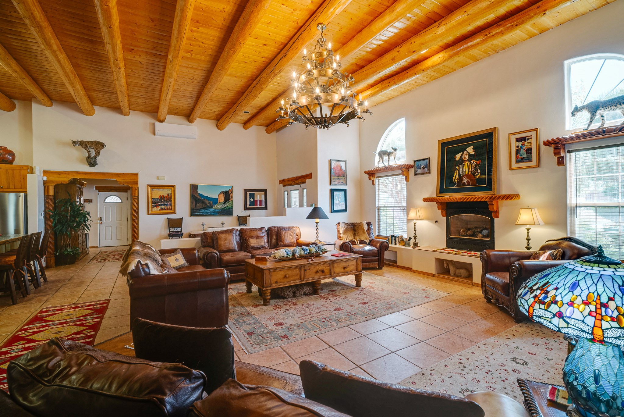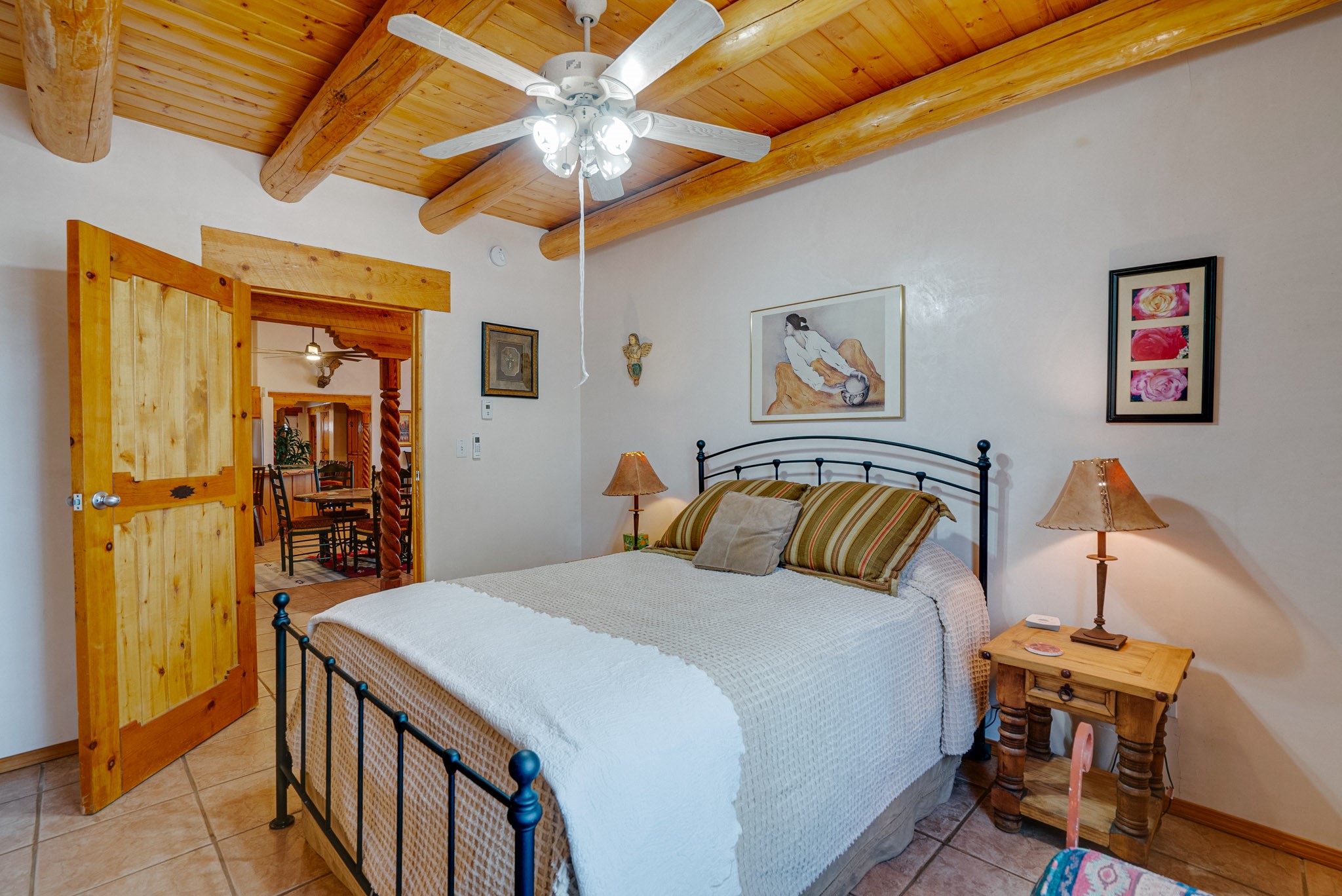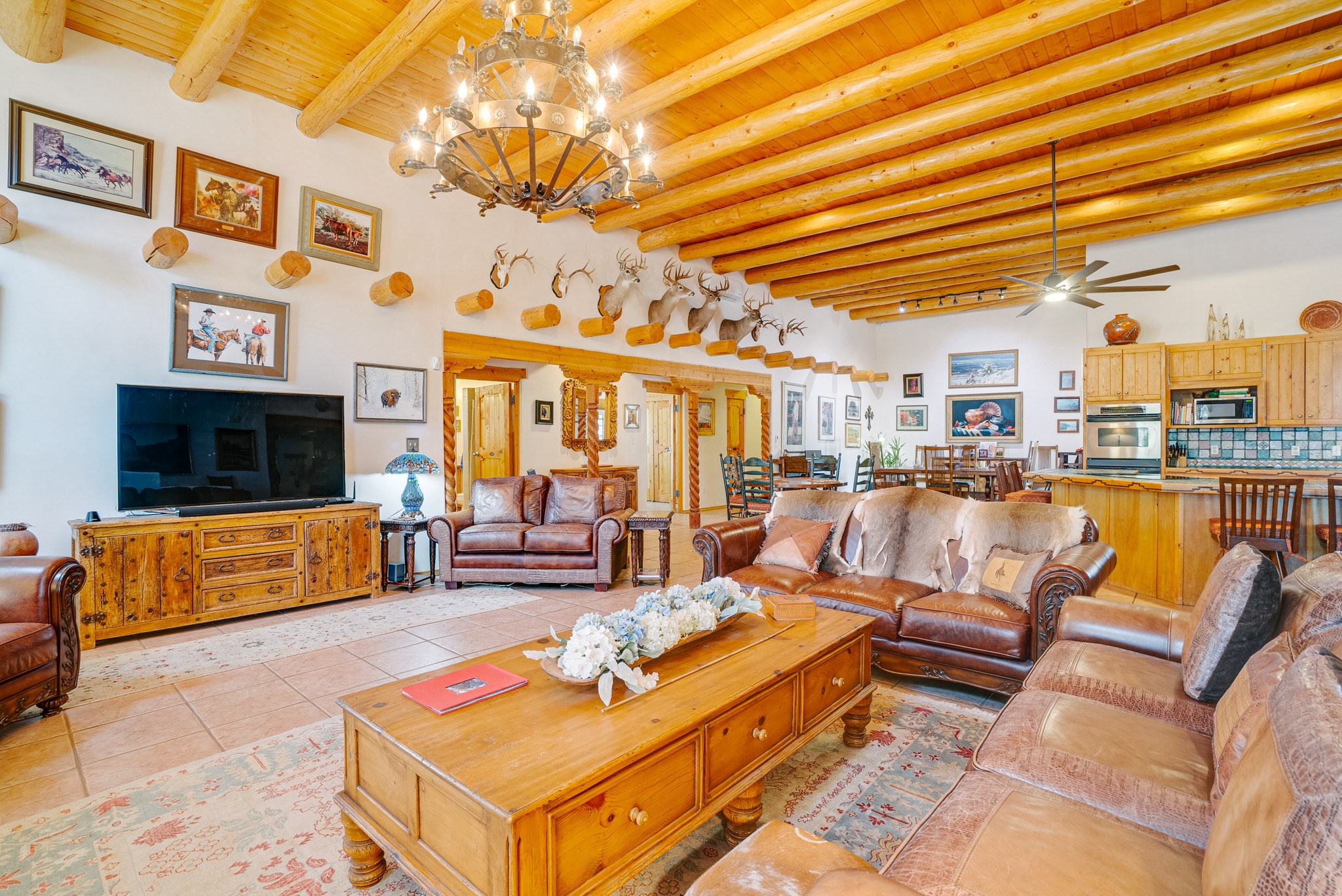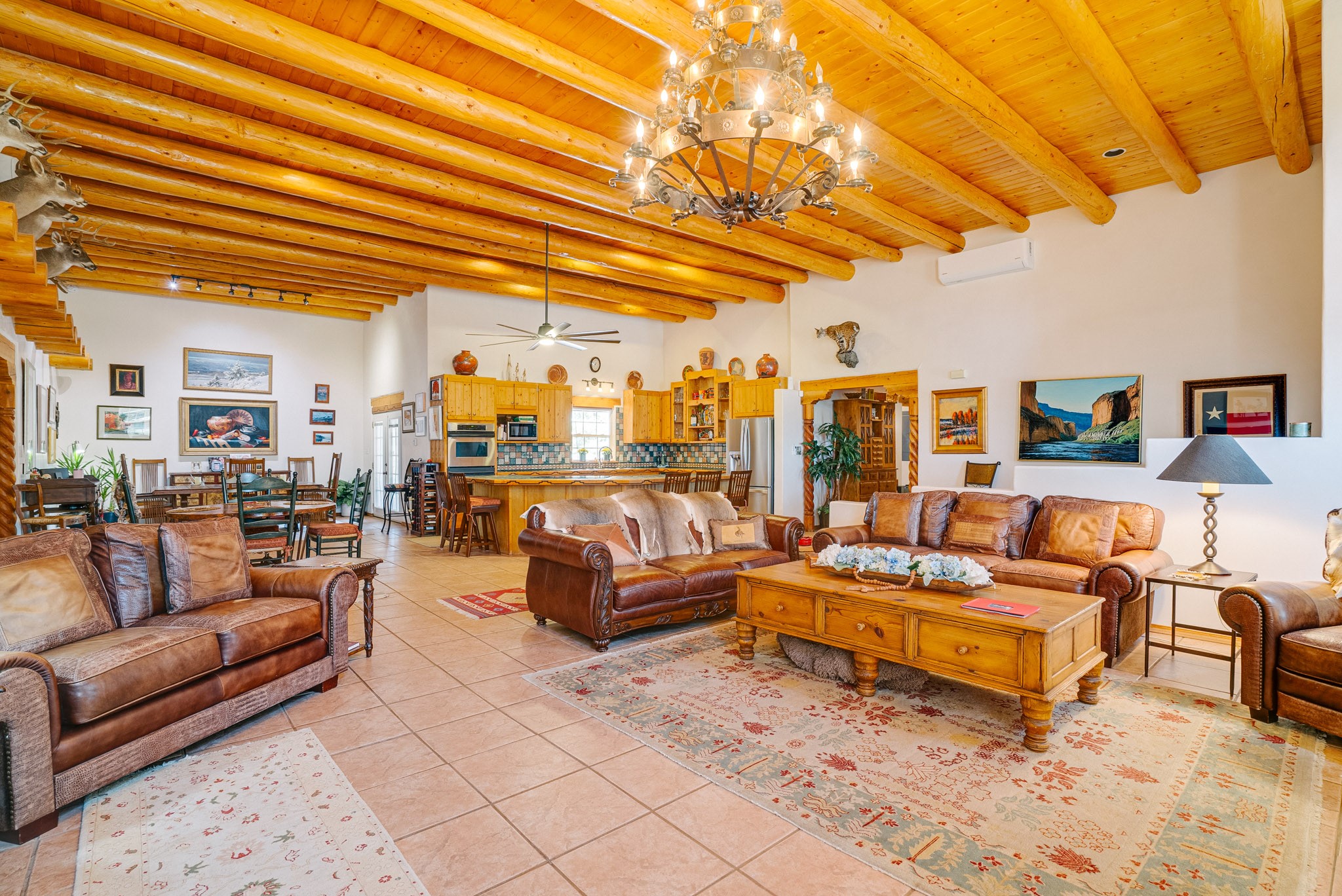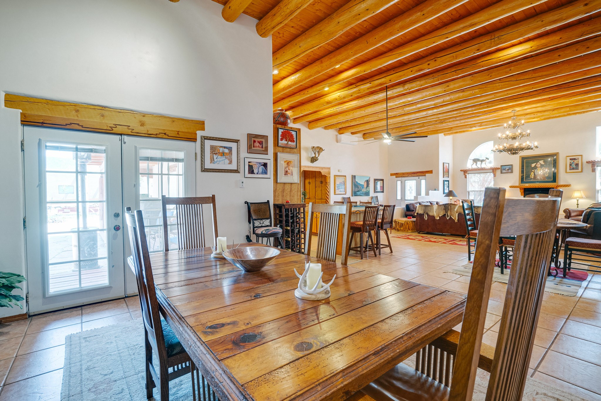 Discover this spacious 4-bedroom, 3-bathroom home offering 3,400 square feet of comfort, style, and Southwestern charm -- all nestled in the desirable Vegas De Taos subdivision. Enjoy the convenience of an in-town location with the tranquility of a secluded .68-acre lot, complete with paved roads, sidewalks, and mature landscaping. This special neighborhood offers so much, including a strong sense of community. The beautifully landscaped property features multiple water features, lush grass, raised garden beds, and a stunning assortment of trees -- including mature conifers, deciduous, and fruit trees. Relax under big blue skies with breathtaking mountain views, and enjoy the easy-care xeriscaping in the front and lush backyard oasis in the rear. Thoughtfully designed rock walls and wooden fences create a variety of distinct, inviting outdoor spaces.The home's grand great room welcomes you with 14' vaulted ceilings, custom woodwork, and radiant floor heating, complemented by efficient split units for year-round comfort. French doors off the dining area open to a spacious covered veranda -- perfect for entertaining or quiet evenings. The kitchen is a dream with stainless steel appliances, a double oven, a smooth-surface cooktop on the island, a 3-basin sink, and an expansive island that seats up to eight. Host family gatherings in the formal dining room or enjoy casual meals around the island.The west wing offers two bright guest bedrooms, a large full bathroom, and a luxurious master suite featuring hickory Pergo flooring, a sitting area or office nook, a whirlpool tub, separate shower, and extra-large walk-in closet. The east wing includes another spacious bedroom, guest bathroom, large pantry, hall closet, and a laundry room leading to the covered breezeway and detached two-car garage.Minutes from downtown Taos, the hospital, and grocery stores, this home offers the perfect blend of convenience, space, and a true homestead feel -- a rare find in Taos!