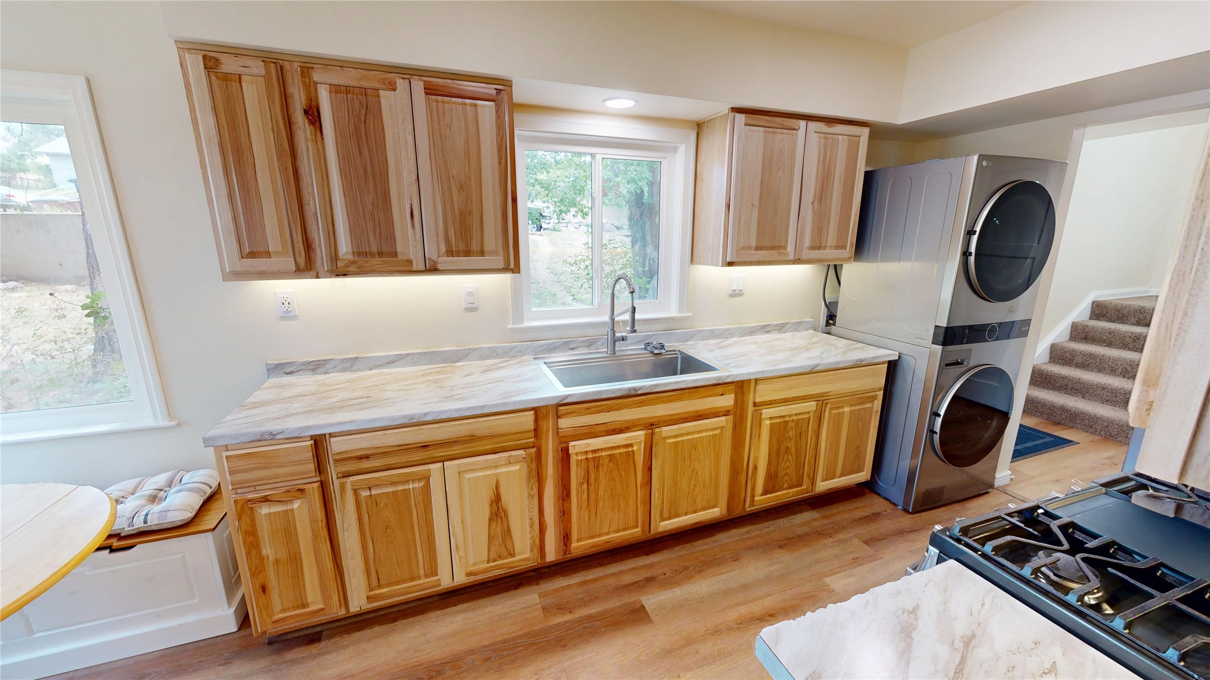 Welcome to 2374 36th St Unit B, a beautifully updated half-duplex nestled on a spacious lot. This inviting home features a remodeled kitchen with sleek new cabinets and modern appliances, including a gas range, microwave, and refrigerator--perfect for culinary enthusiasts. Enjoy the comfort of new laminate flooring throughout the downstairs living areas, highlighted by a large brick fireplace with a cozy wood-burning insert. Convenience abounds with a newer stackable washer-dryer combo and a refreshed full bath boasting a new counter, sink, and toilet. Upstairs, you'll find three generously sized bedrooms, ideal for family or guests. With two off-street parking spaces and a prime location, this home blends comfort, style, and practicality--ready for you to move in and make it your own!