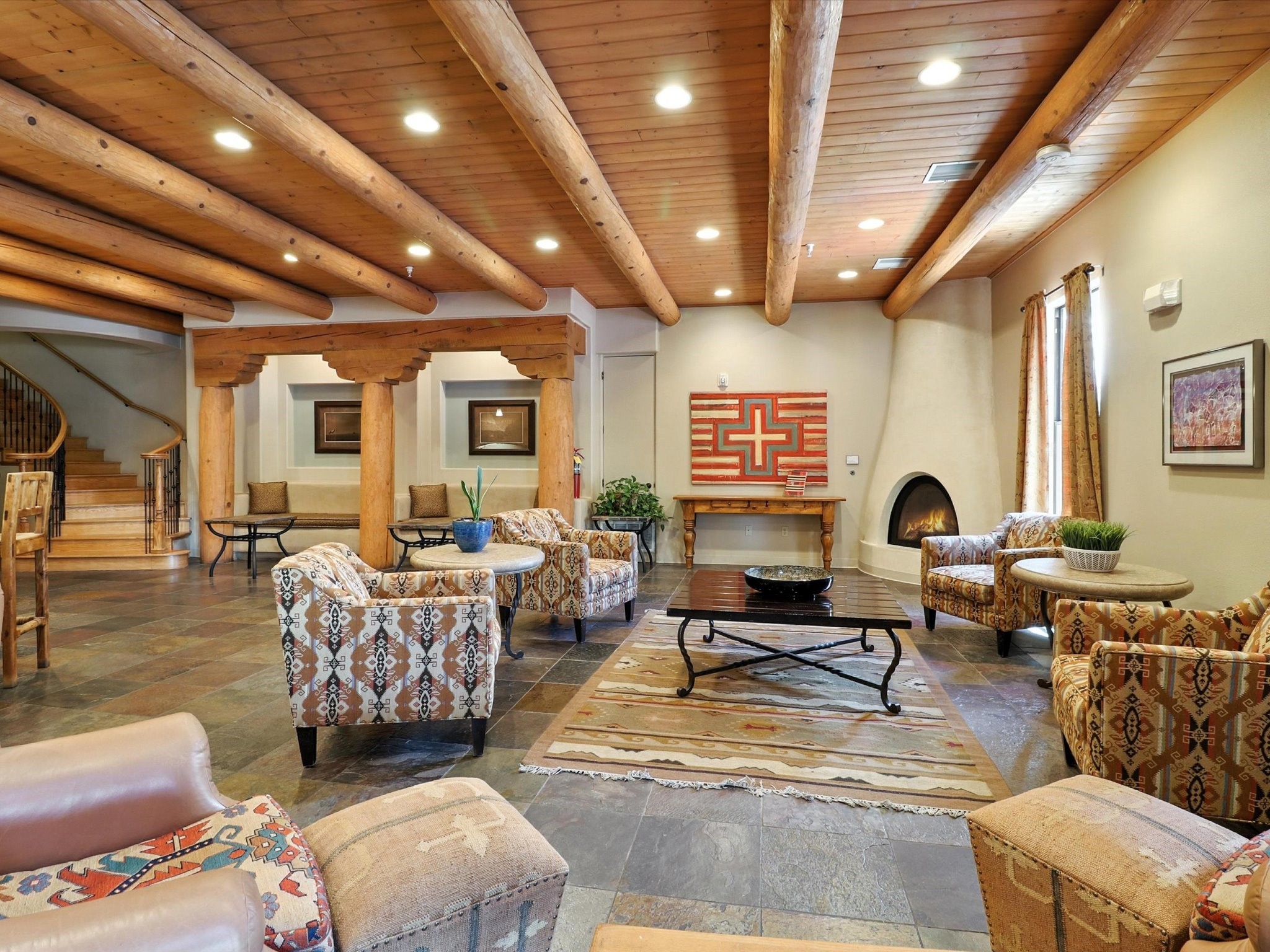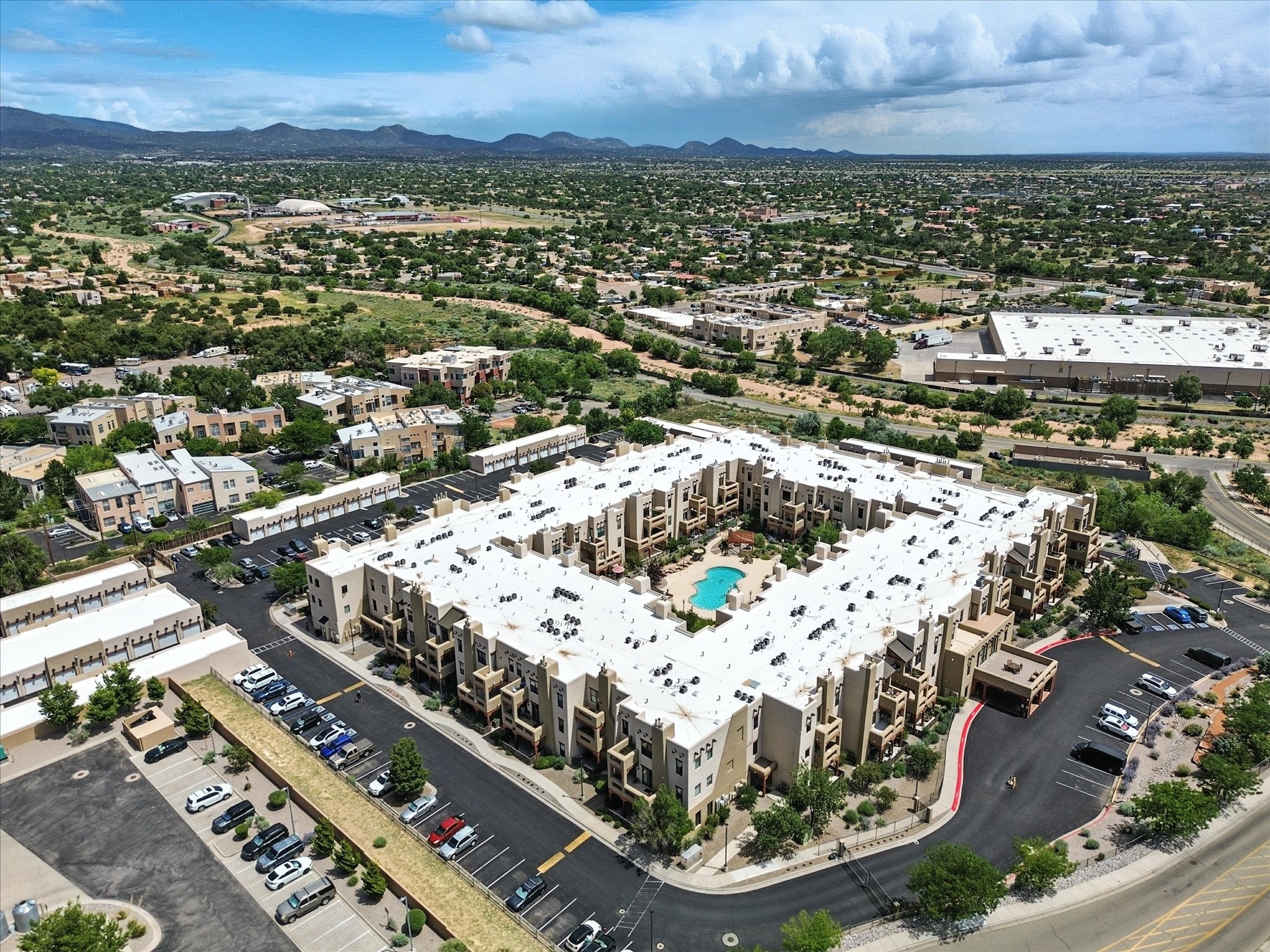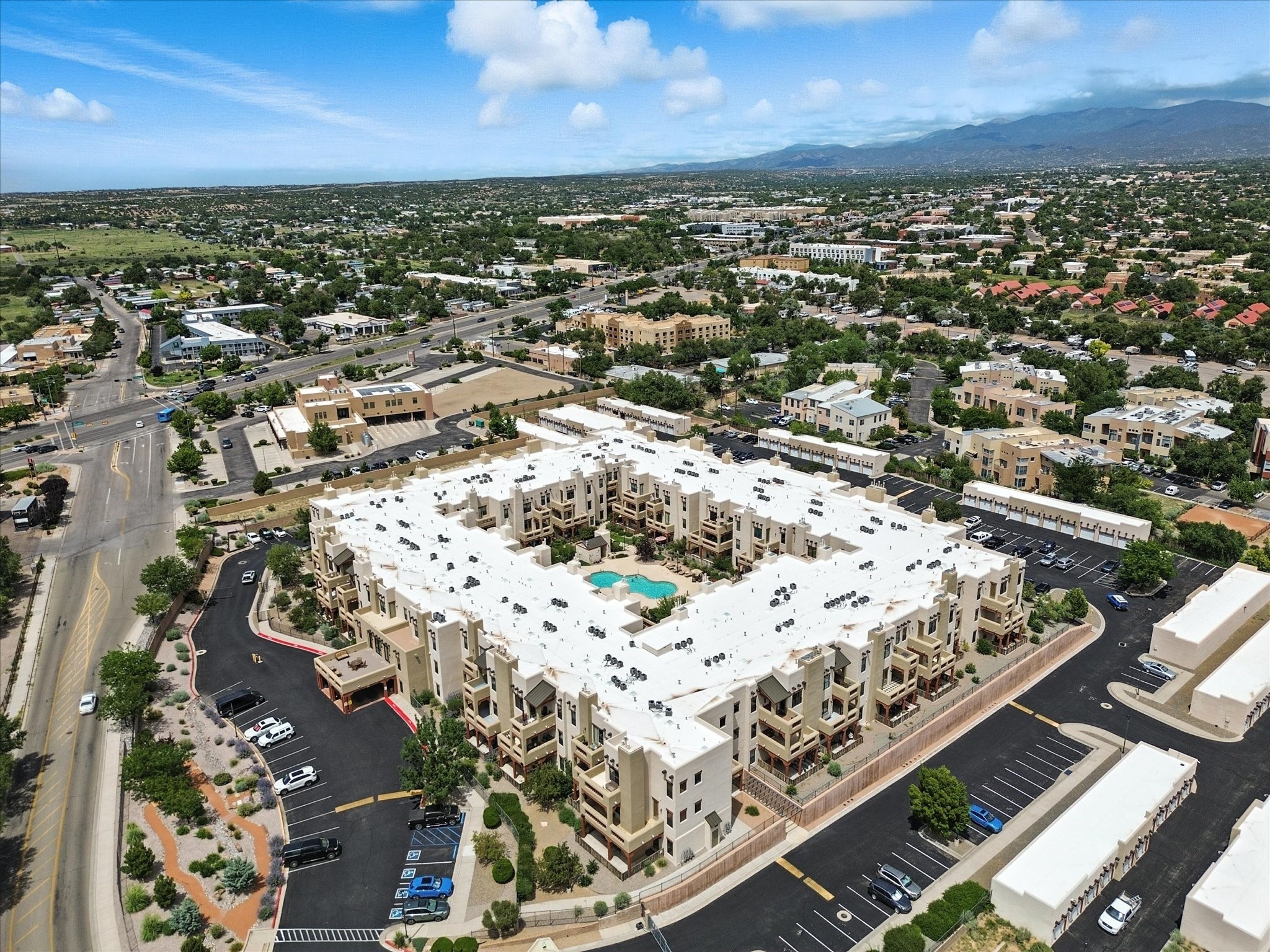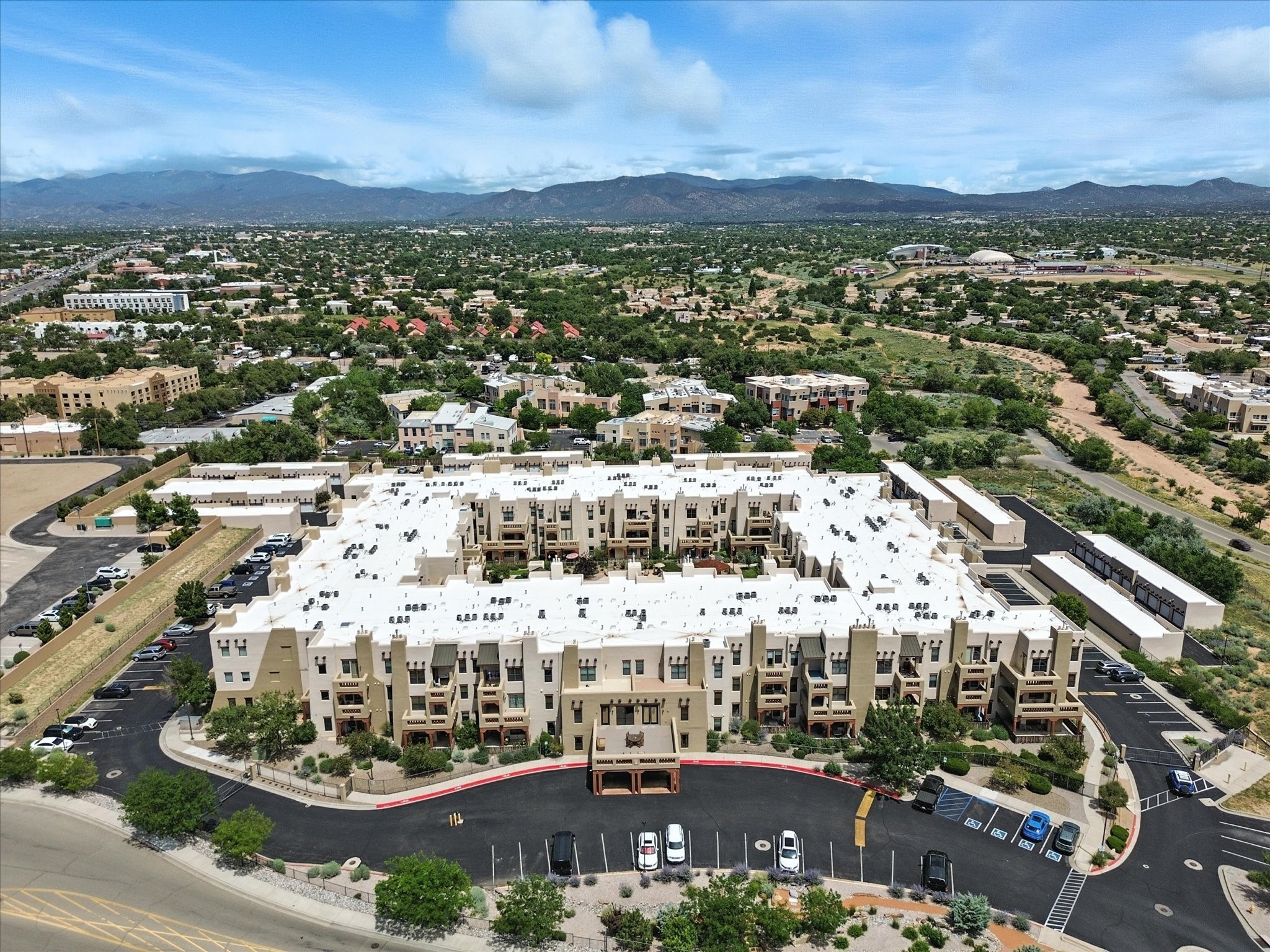 Discover an opportunity to own a ground-level condo in the highly sought-after Alameda compound--an elegant, amenity-rich community in the heart of Santa Fe. This residence captures eastern light and high ceilings that enhance the sense of space, while the cozy kiva gas fireplace adds a touch of Southwestern charm. It has 1 bed & 1 bath, and a covered patio with a private gate offers direct access to parking--ideal for effortless indoor-outdoor living. Kitchen equipped with appliances, an ample cabinet for storage, granite breakfast countertop, a provision for storage room, and a separate laundry room. One of the most desirable locations in the complex, the home enjoys peaceful greenbelt views and a glimpse of the Sangre de Cristo Mountains.The Alameda offers a lifestyle beyond compare with 24-hour controlled access, an outdoor pool, fitness center, two community lounges with kitchens, conference facilities, on-site management, and secure gated parking. Whether you're seeking a primary residence, a secure lock-and-leave getaway, or a smart investment, this turnkey condo is a rare find in a truly extraordinary setting.