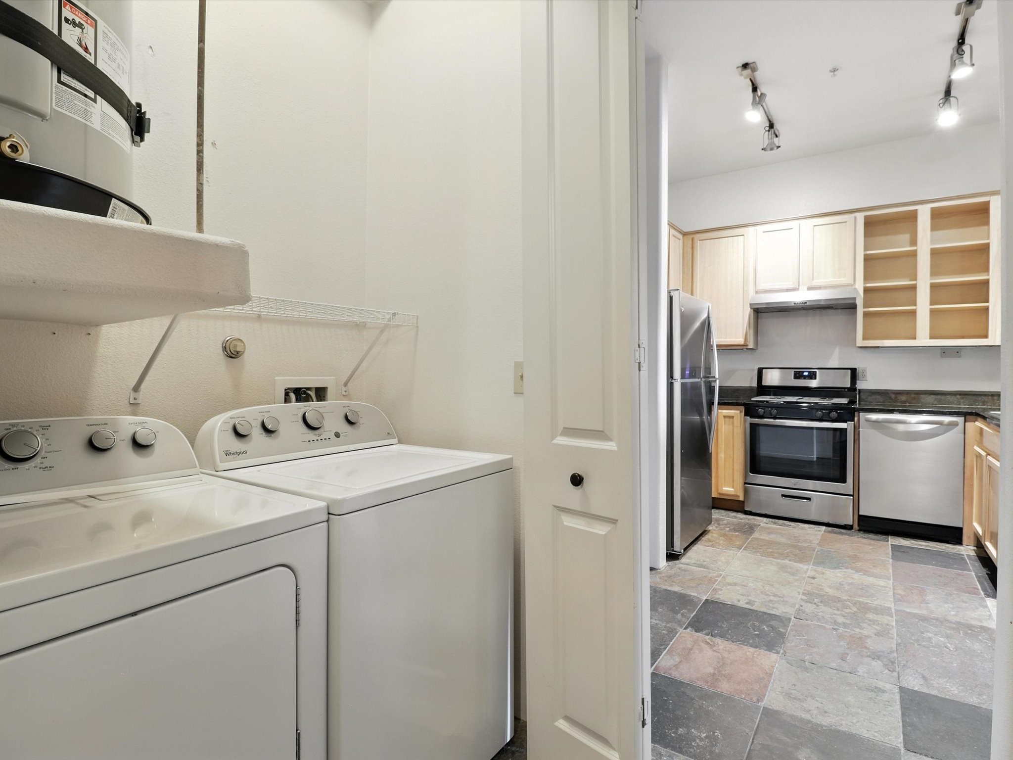 - AppliancesDryer, Dishwasher, Electric Cooktop, Disposal, Gas Water Heater, Oven, Range, Refrigerator, Water Heater, Washer