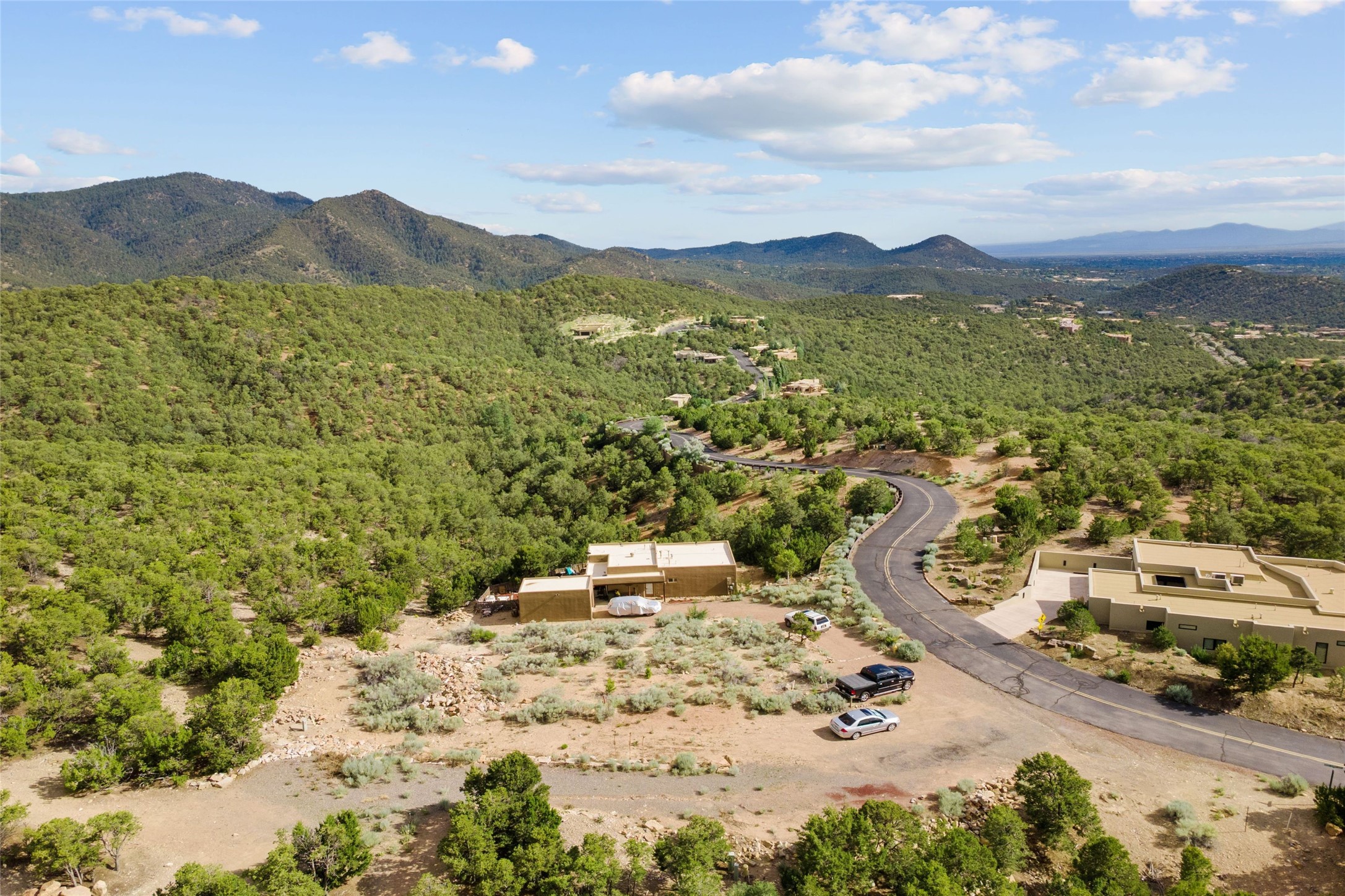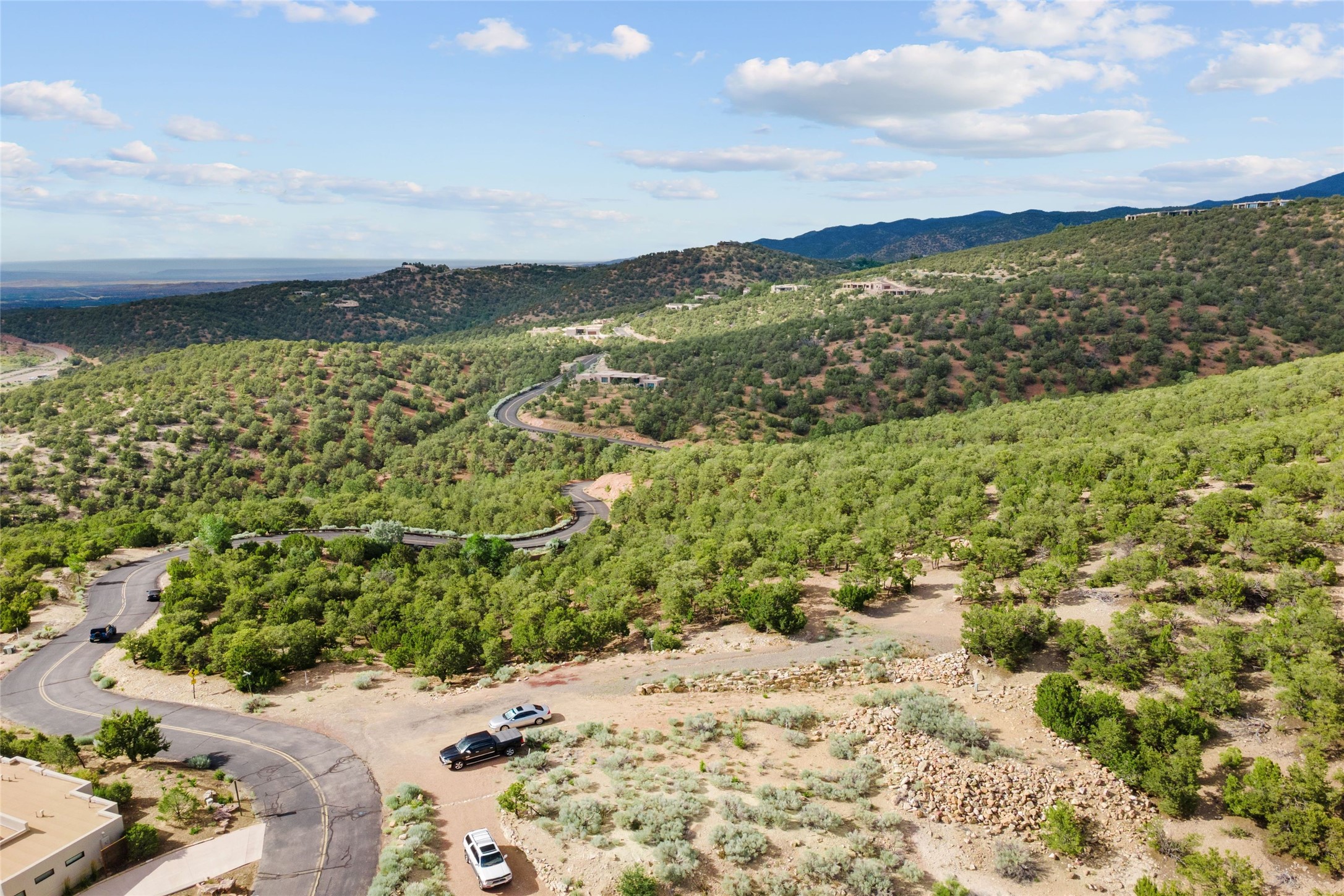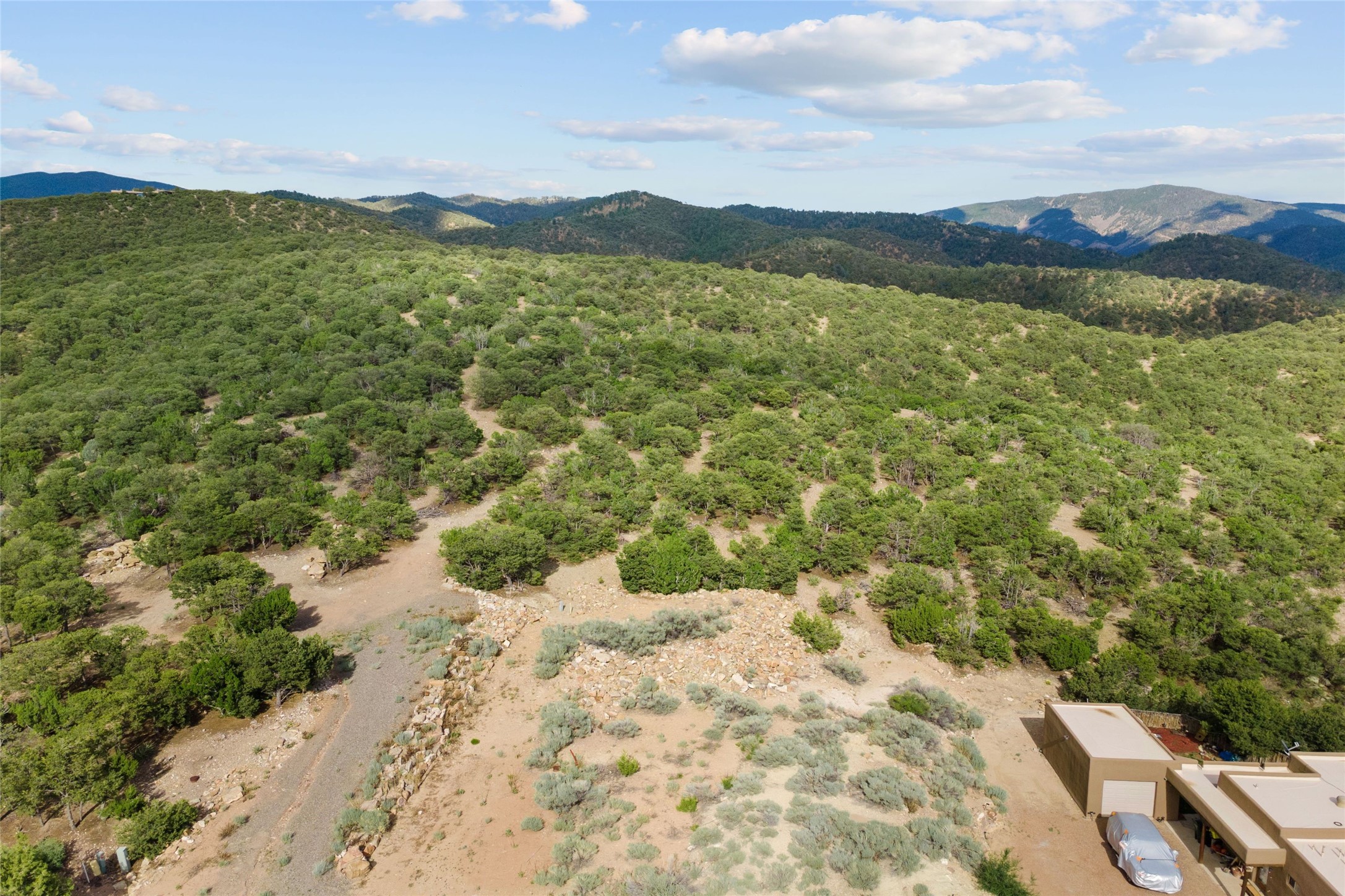 The smallest lot in High Summit, being offered together with the second smallest lot in High Summit. Relatively flat and buildable with good access. Elevation of 7400 feet allows for an Ortiz/Sandia view corridor AND a Jemez view corridor. Lots 8 and 9 must be purchased together and they each have an 1100sf minimum build size. Owner is in process of combining these two lots at the County. HOA has verbally approved the conjoining and anticipates an 1800-2000sf build. No new building envelope. Setbacks apply.