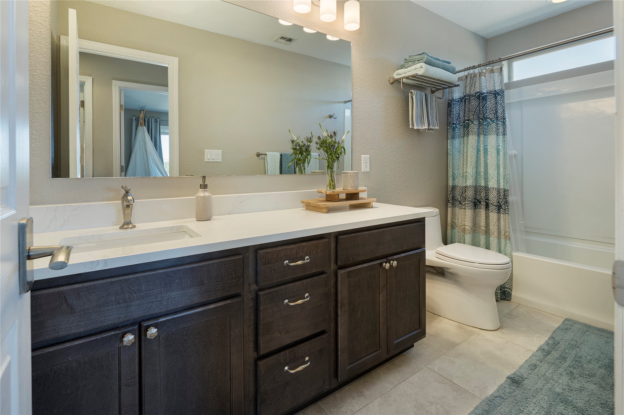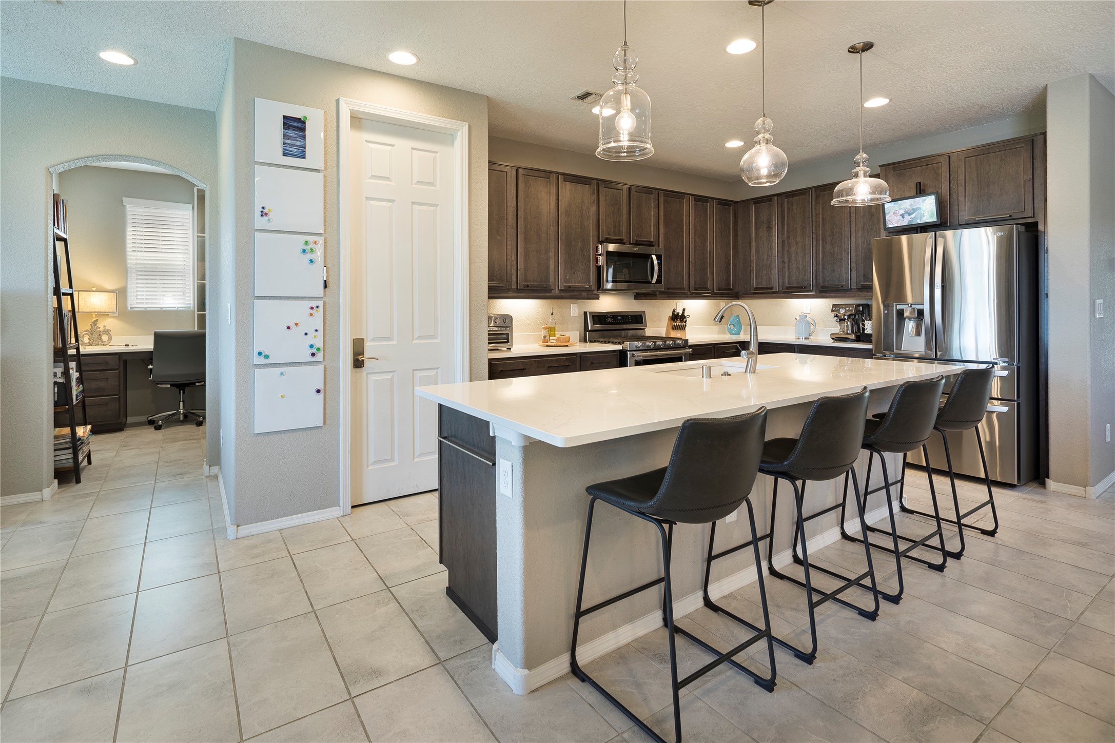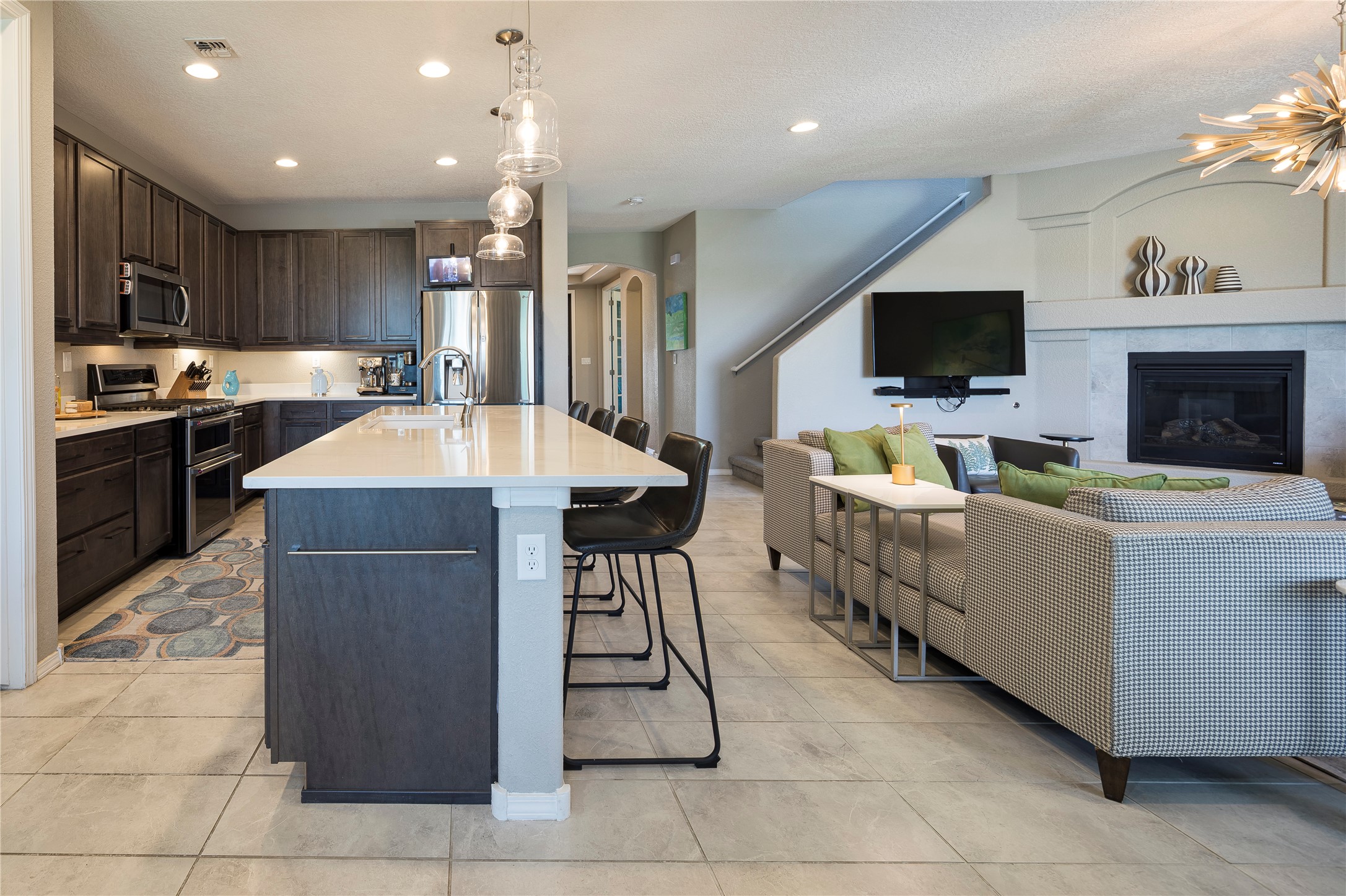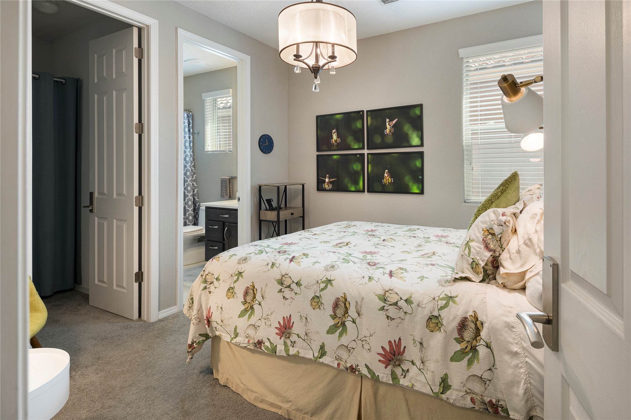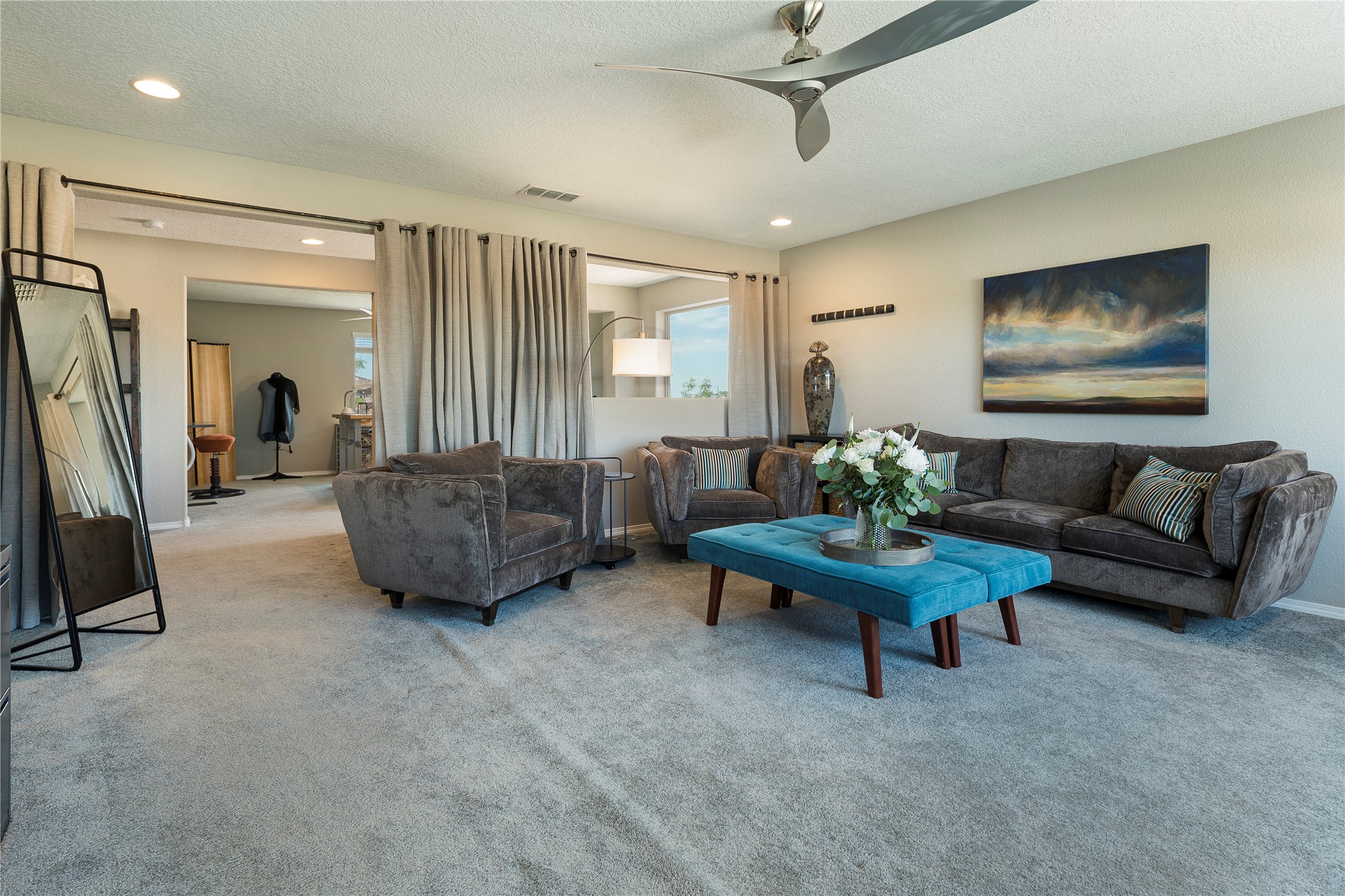 This fine home dazzles under the sure hand of its designer owner. The floorplan is a deft blend of elegance and comfort. Its light, open feel includes defined yet versatile spaces that serve a range of lifestyle needs. On the first floor is a bedroom with ensuite bath. The handsome Cook's Kitchen, with quartz countertops, stainless steel appliances, and adjacent Butler's pantry/office, overlooks the chic living area, with fireplace. The dining room feels at once spacious and intimate. Both living and dining rooms open to the splendid backyard with arching grape vines, a trellised wall of trumpet vines, sprays of ornamental grass, a stretch of turf, raised beds and a newer hot tub. A spiral staircase connects this enchanting oasis with the upper deck, off the Primary Bedroom, with long range views of several mountain ranges. The second story's flexible layout includes a large den or office, a sizable craft room, and two additional bedrooms. Come experience this inviting Las Soleras home, conveniently located close to Presbyterian Hospital, shopping, restaurants and major transportation routes.