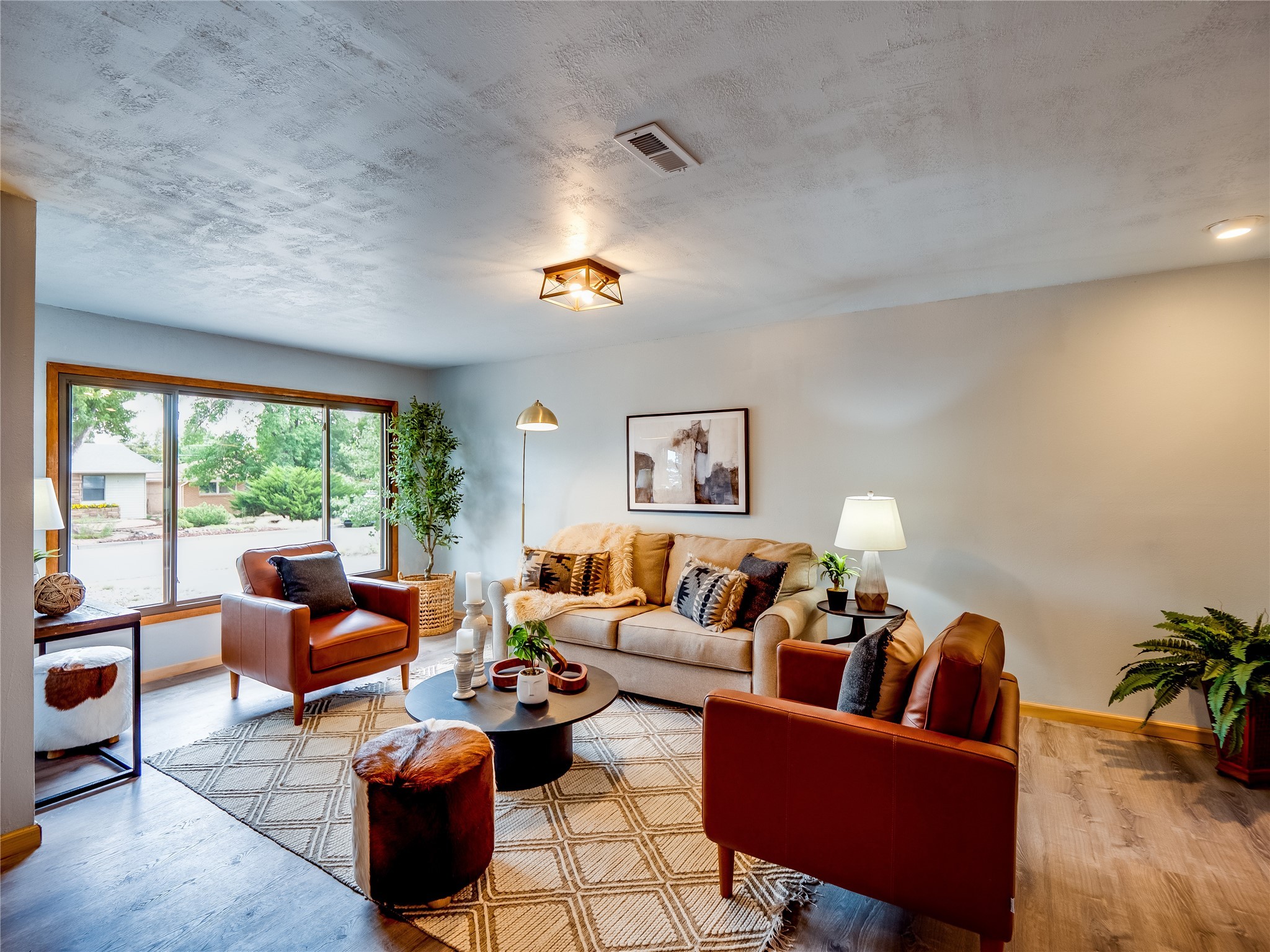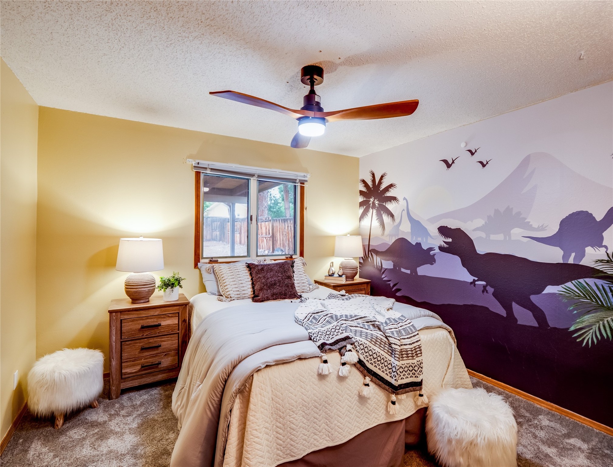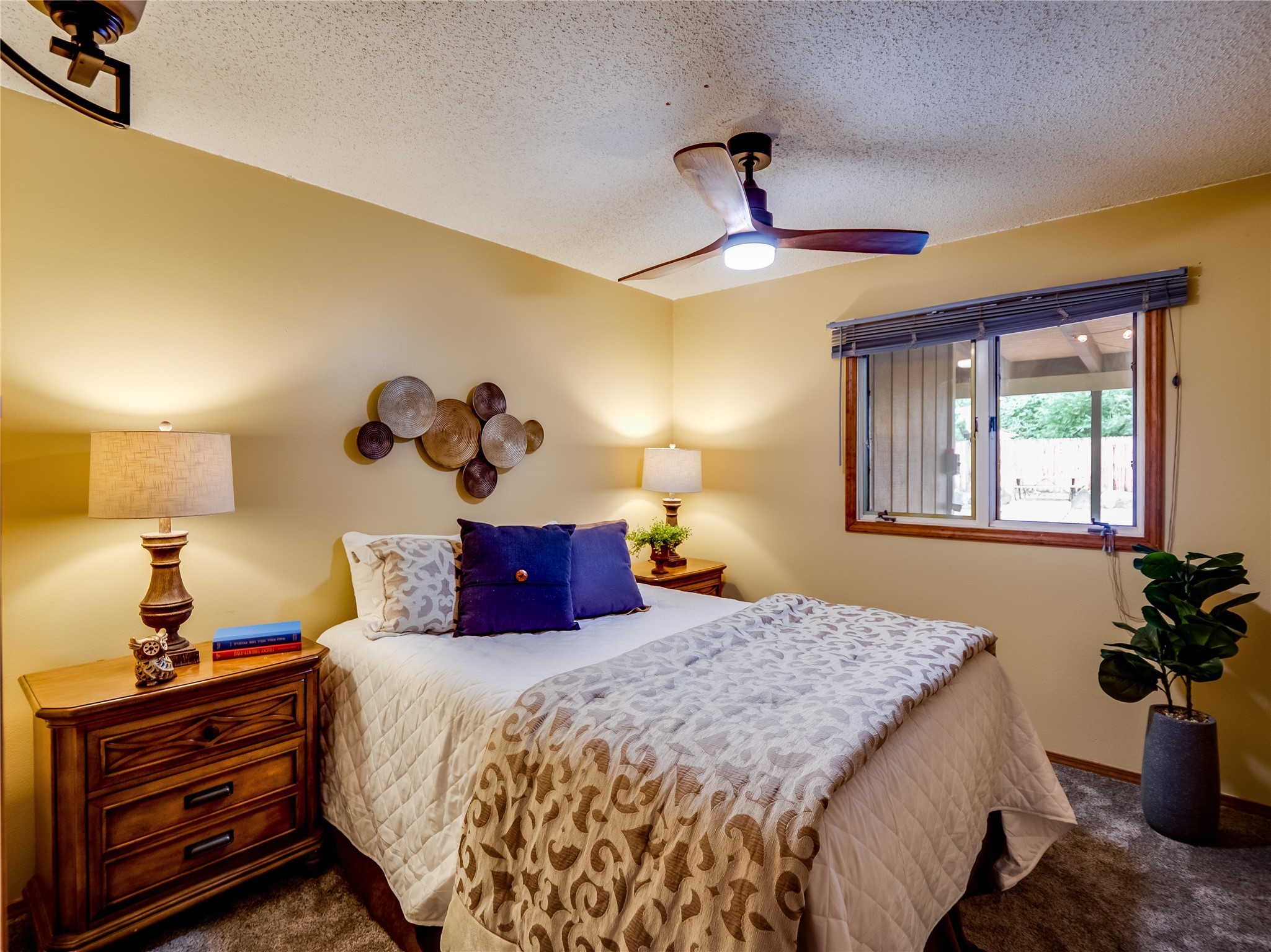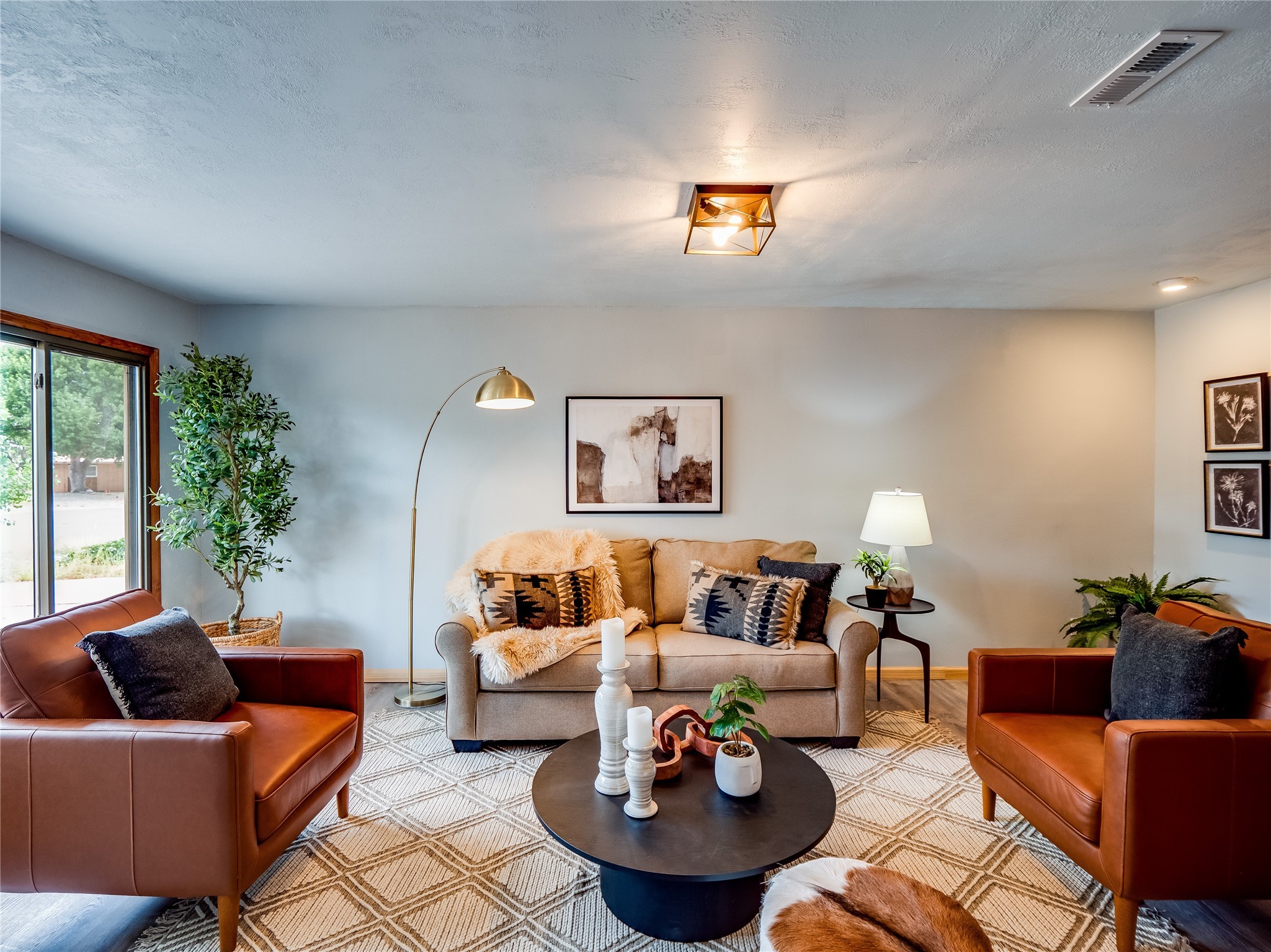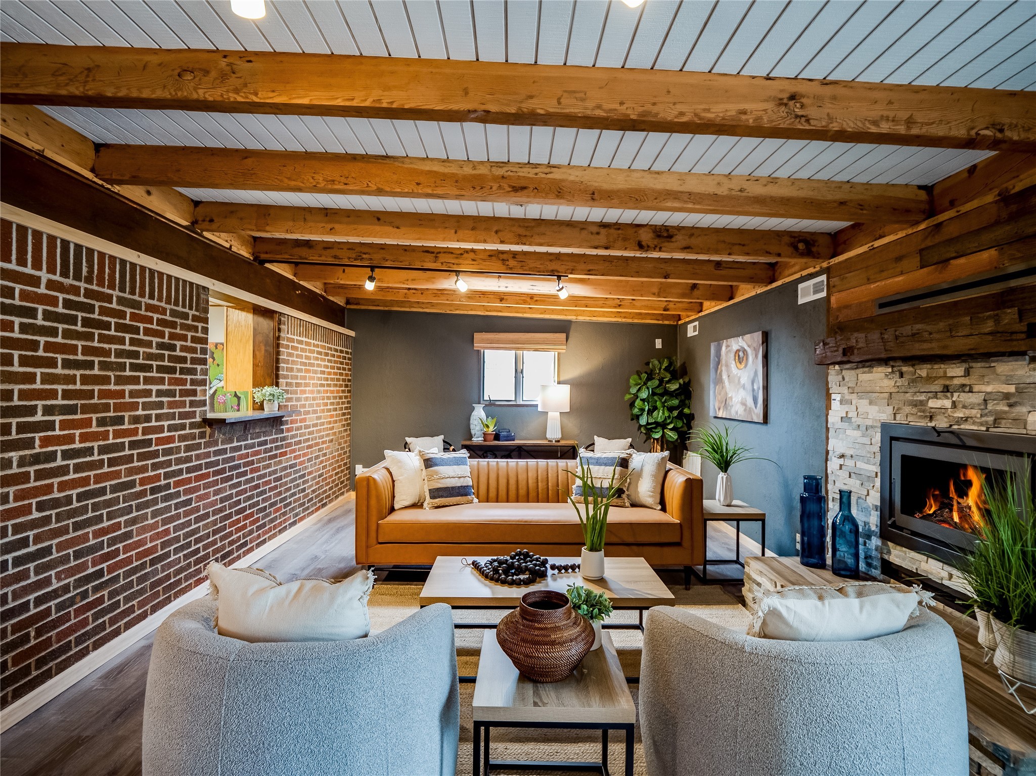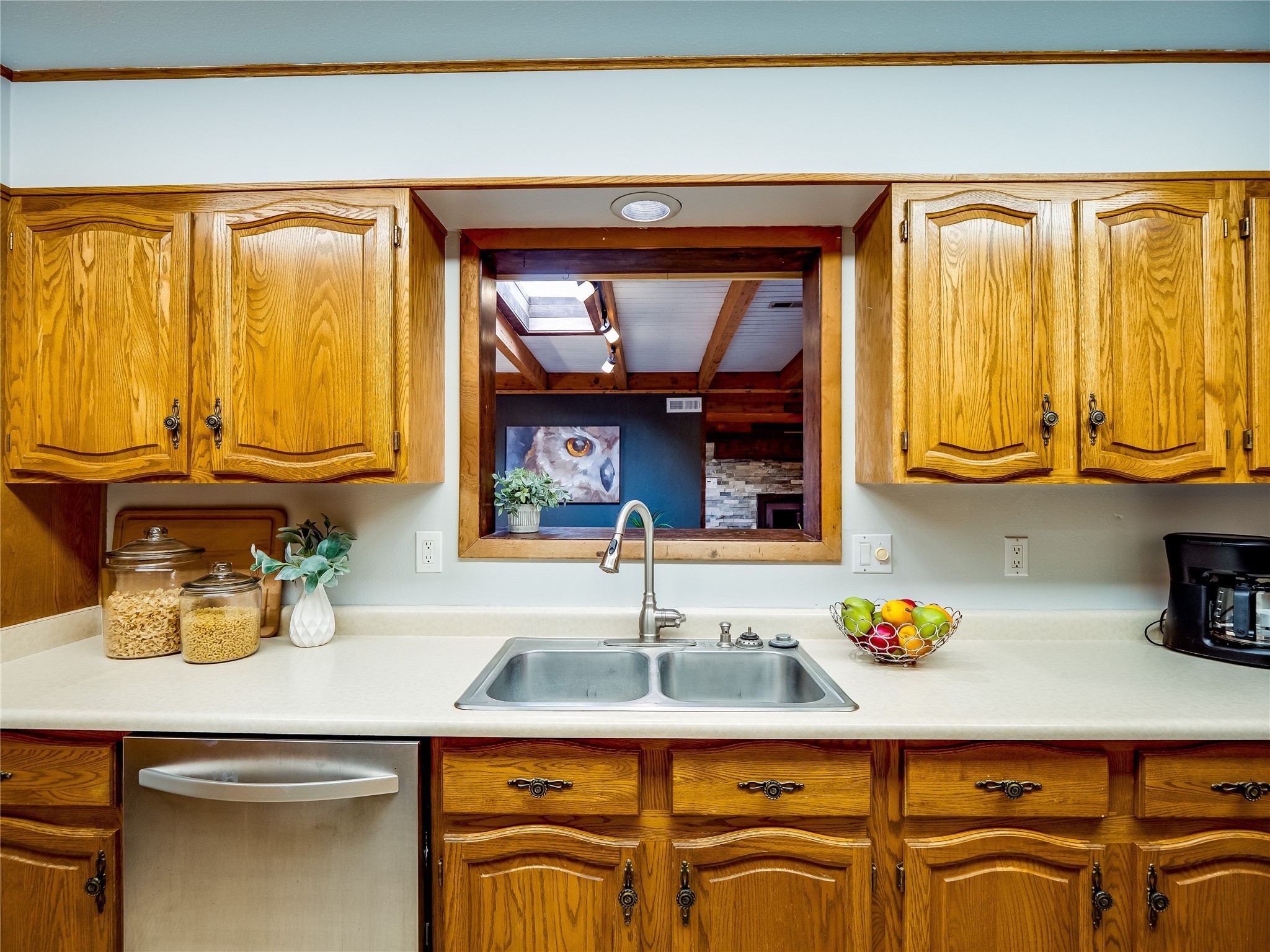 Welcome to this beautifully updated single-story home in White Rock, full of character and charm. Nestled under a mature shade tree, the low-maintenance front yard offers a warm and inviting curb appeal. Step inside through the front entrance and into the open-concept living room featuring laminate wood floors and a large front-facing picture window that fills the space with natural light. The adjoining dining area leads into the galley-style kitchen, which offers an abundance of wood cabinetry, extensive counter space, and stainless steel appliances--ideal for any home chef. A convenient pass-through window opens into the spacious family room, creating great flow for entertaining and daily living. The family room is the heart of the home, boasting a wood-beamed ceiling with a skylight, a beautiful brick accent wall, and a cozy stone wood-burning fireplace. This room also includes access to the backyard and a large covered patio, plus a laundry room discreetly tucked away for added functionality. Down the hallway are two comfortable guest bedrooms, both with plush carpeting and walk-in closets. The nearby guest bathroom includes a single sink vanity, a tiled shower/tub combo, and a skylight that brings in soft natural light. The generous primary en-suite also features carpet flooring, a large walk-in closet, and a stunningly renovated modern bathroom complete with a tiled walk-in shower with ceiling showerhead and sleek single sink vanity--a true private retreat. The expansive backyard is a xeriscaped blank canvas, ready for your dream outdoor entertainment space. A large covered deck provides the perfect shady spot to lounge or host outdoor dinner parties. Two attached storage rooms offer ample space for garden tools and seasonal items. Located near shopping, restaurants, parks, and trails, this home offers a perfect balance of comfort, convenience, and style. Don't miss your chance to tour this wonderful property today!