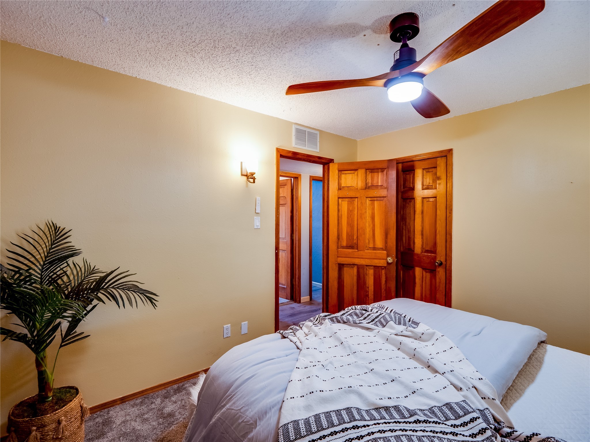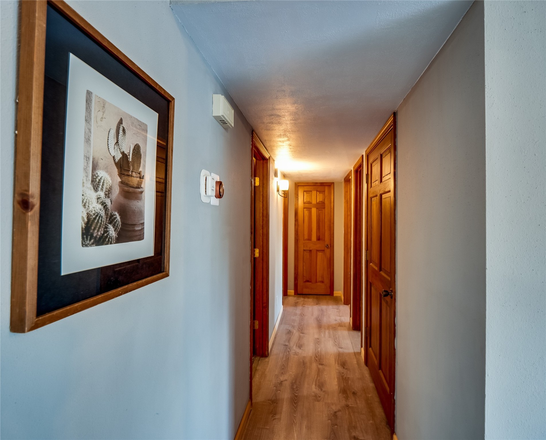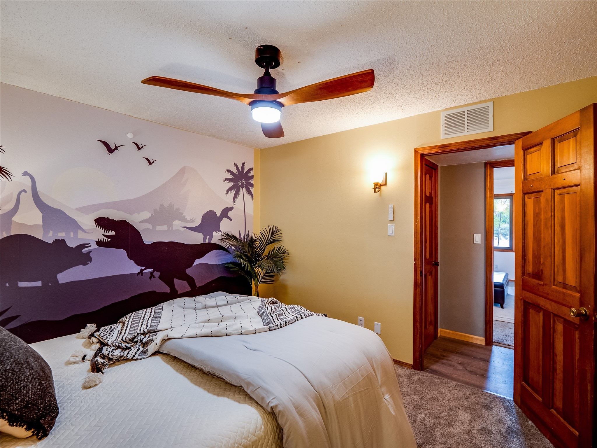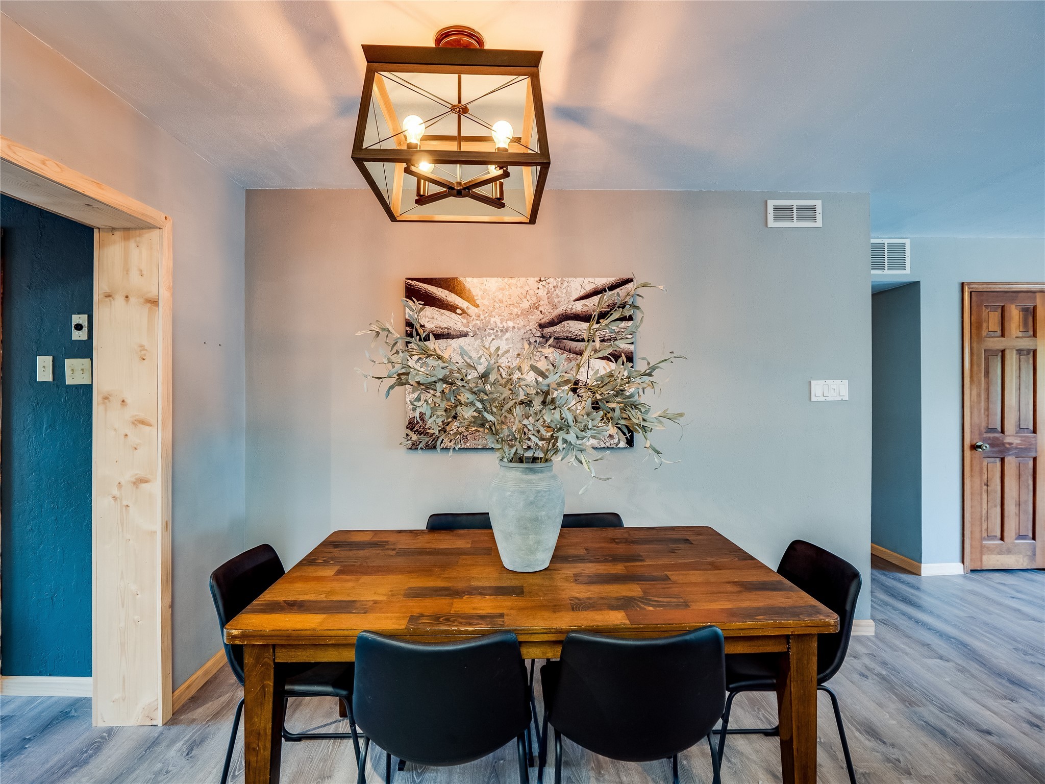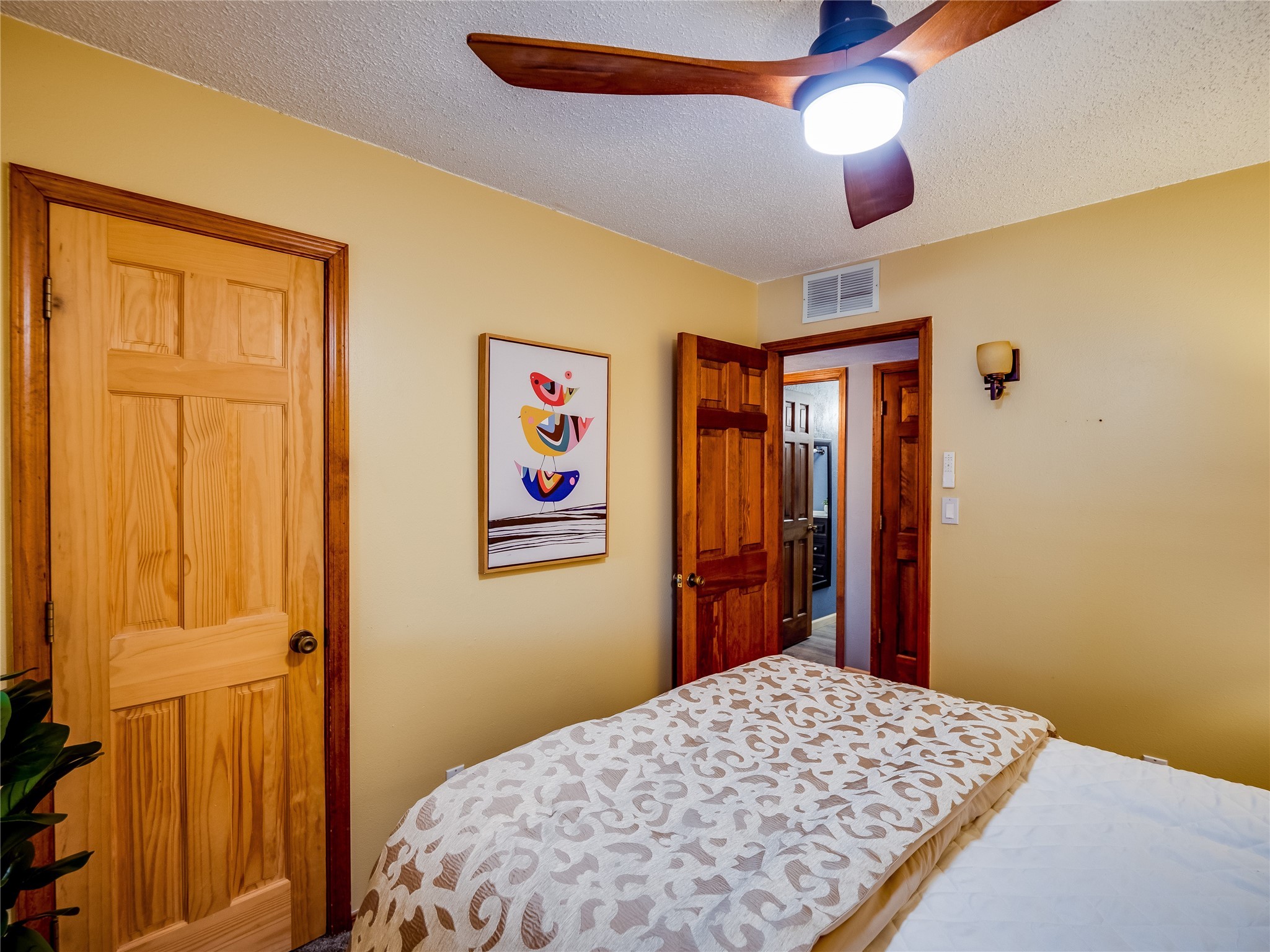 Welcome to this beautifully updated single-story home in White Rock, full of character and charm. Nestled under a mature shade tree, the low-maintenance front yard offers a warm and inviting curb appeal. Step inside through the front entrance and into the open-concept living room featuring laminate wood floors and a large front-facing picture window that fills the space with natural light. The adjoining dining area leads into the galley-style kitchen, which offers an abundance of wood cabinetry, extensive counter space, and stainless steel appliances--ideal for any home chef. A convenient pass-through window opens into the spacious family room, creating great flow for entertaining and daily living. The family room is the heart of the home, boasting a wood-beamed ceiling with a skylight, a beautiful brick accent wall, and a cozy stone wood-burning fireplace. This room also includes access to the backyard and a large covered patio, plus a laundry room discreetly tucked away for added functionality. Down the hallway are two comfortable guest bedrooms, both with plush carpeting and walk-in closets. The nearby guest bathroom includes a single sink vanity, a tiled shower/tub combo, and a skylight that brings in soft natural light. The generous primary en-suite also features carpet flooring, a large walk-in closet, and a stunningly renovated modern bathroom complete with a tiled walk-in shower with ceiling showerhead and sleek single sink vanity--a true private retreat. The expansive backyard is a xeriscaped blank canvas, ready for your dream outdoor entertainment space. A large covered deck provides the perfect shady spot to lounge or host outdoor dinner parties. Two attached storage rooms offer ample space for garden tools and seasonal items. Located near shopping, restaurants, parks, and trails, this home offers a perfect balance of comfort, convenience, and style. Don't miss your chance to tour this wonderful property today!