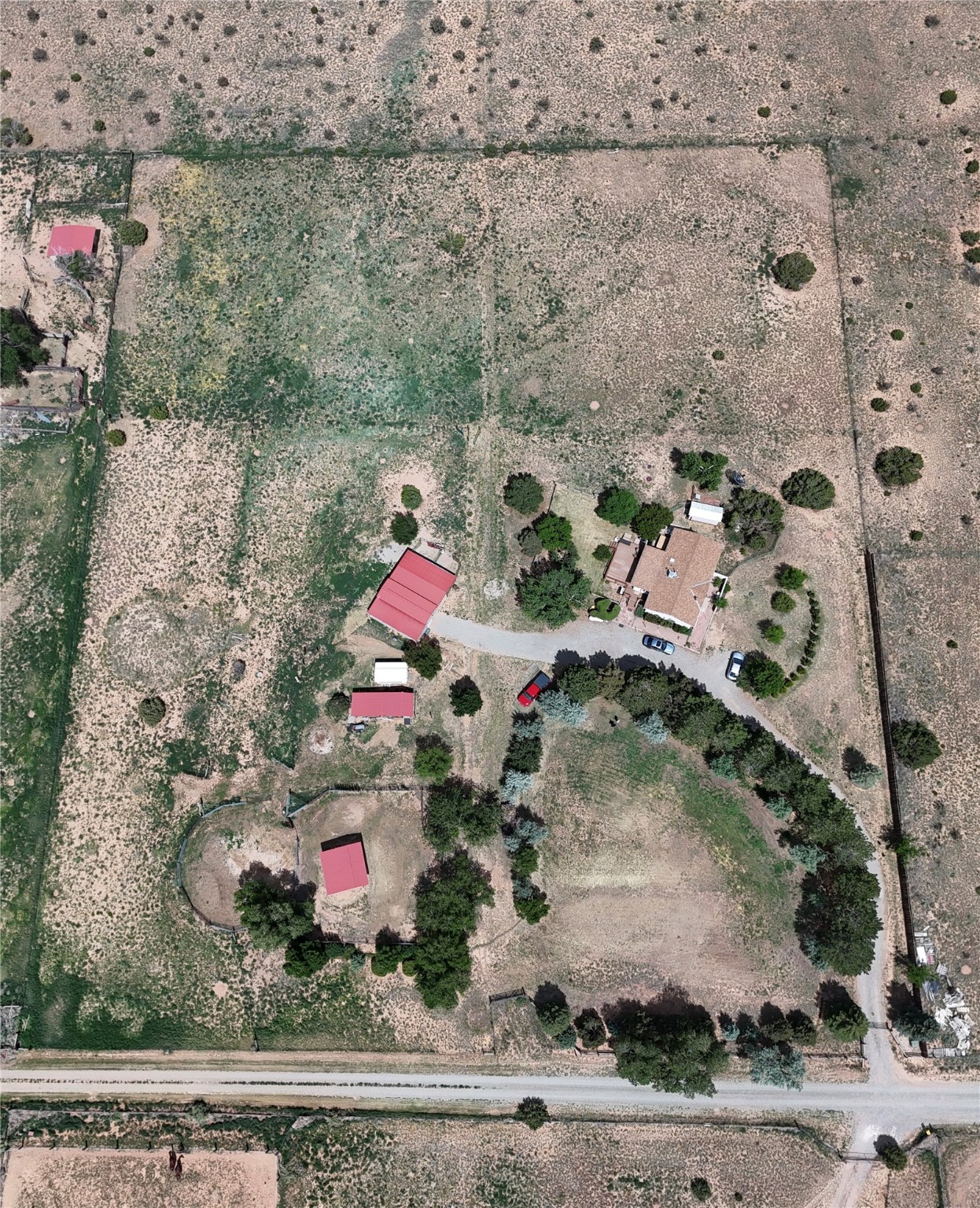Dream retreat just south of Santa Fe! Nestled on 5 pristine acres, this well-maintained 3-bed, 1.5-bath home offers 1,320 sq ft of cozy comfort & endless outdoor freedom. Perfectly tailored for equestrian lovers and nature enthusiasts alike. The property features a large barn with 5 stalls, training pen, and two storage sheds--plus a hot tub for unwinding under the stars. The home is meticulously cared for & has its own private well. Electricity across the property, and a dedicated sub-panel in the barn. Your back gate opens directly to 700 acres of untouched state land, complete with horse and hiking trails. 35 year old plantings and countless tall shade trees grace the property in key areas. A new pro-panel metal roof was installed 11/25, as well as a brand new evaporative cooling system. A rare opportunity to live on the edge of wild New Mexico beauty--but just 20 minutes to the city.