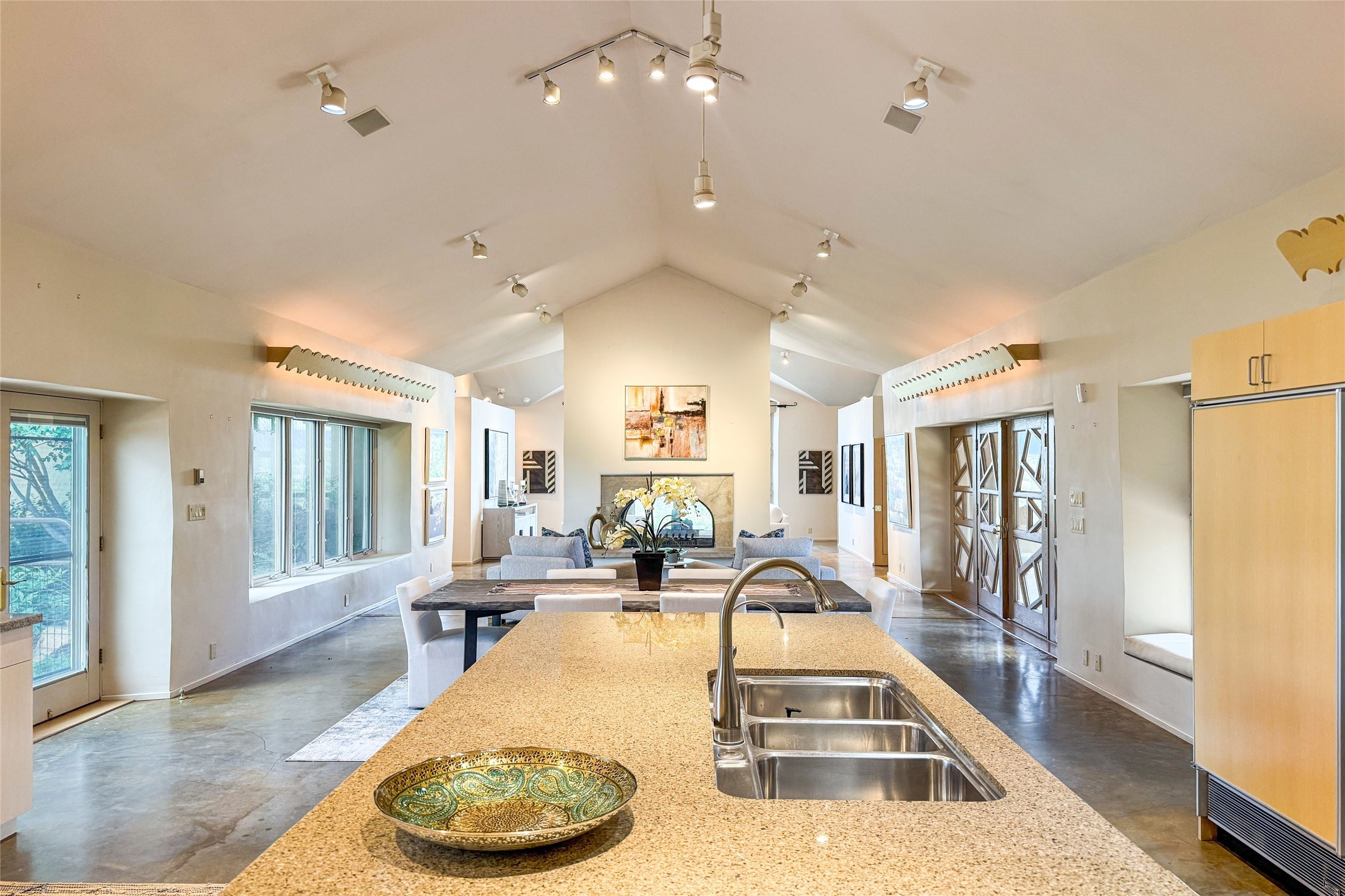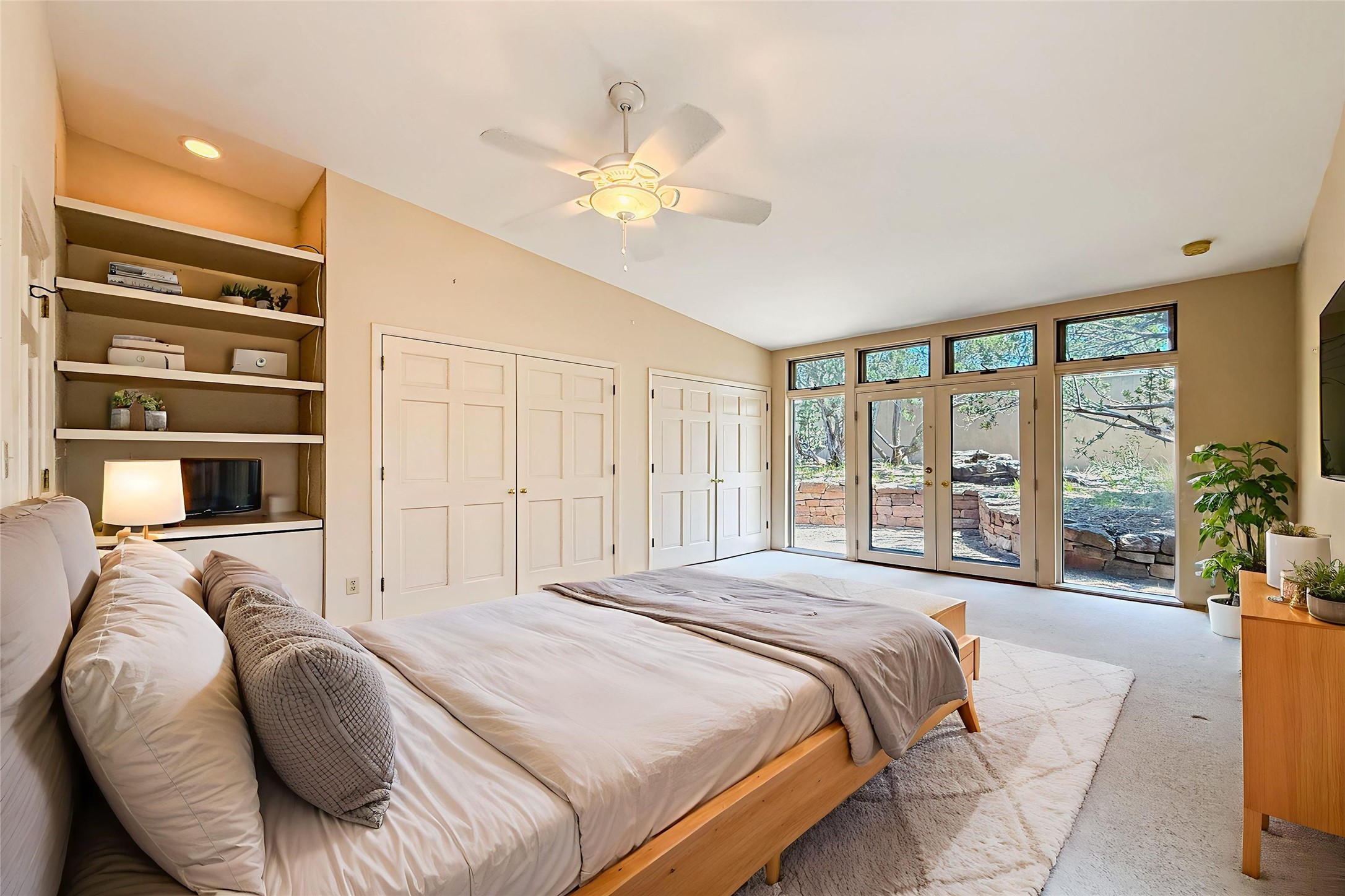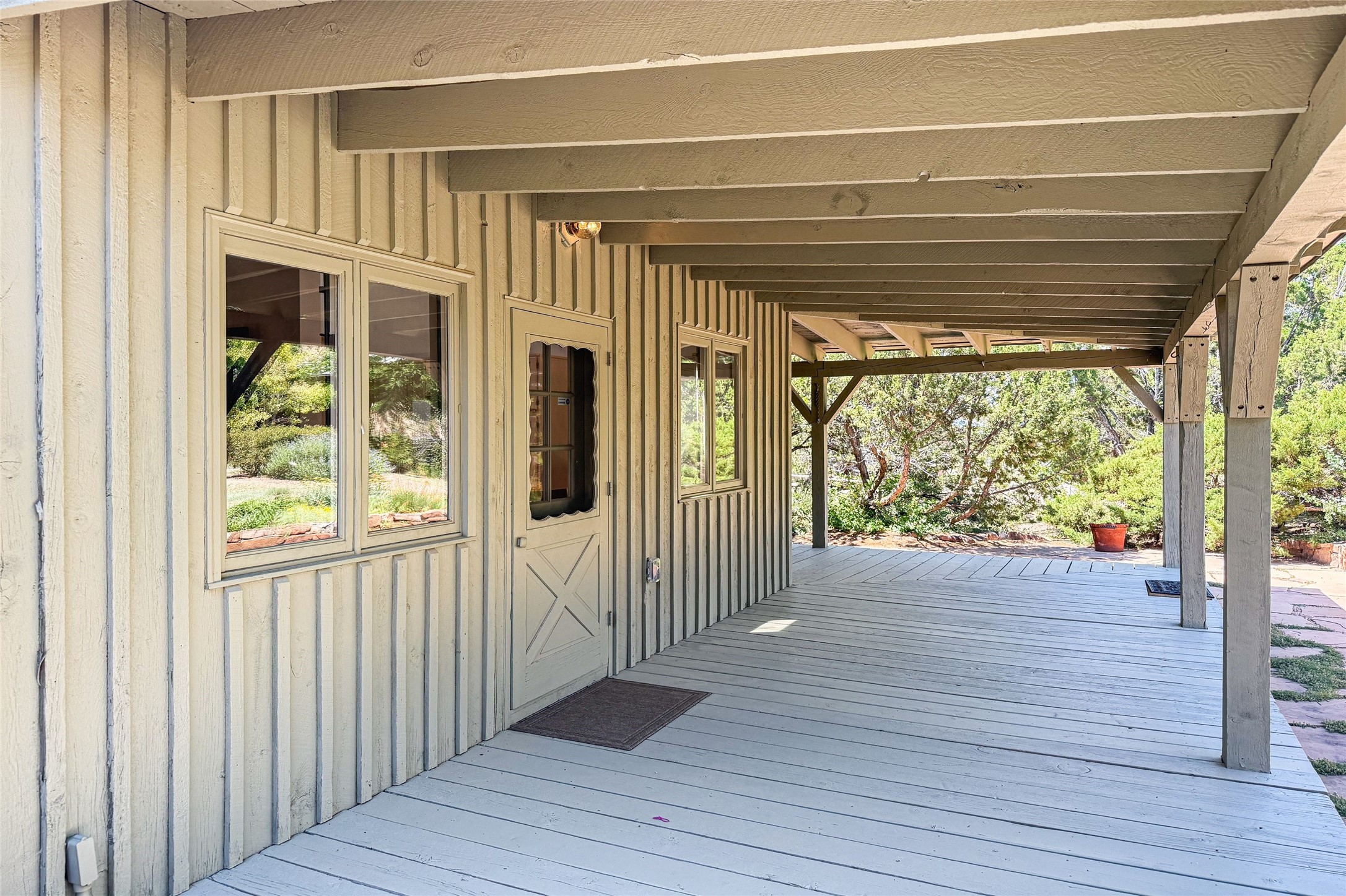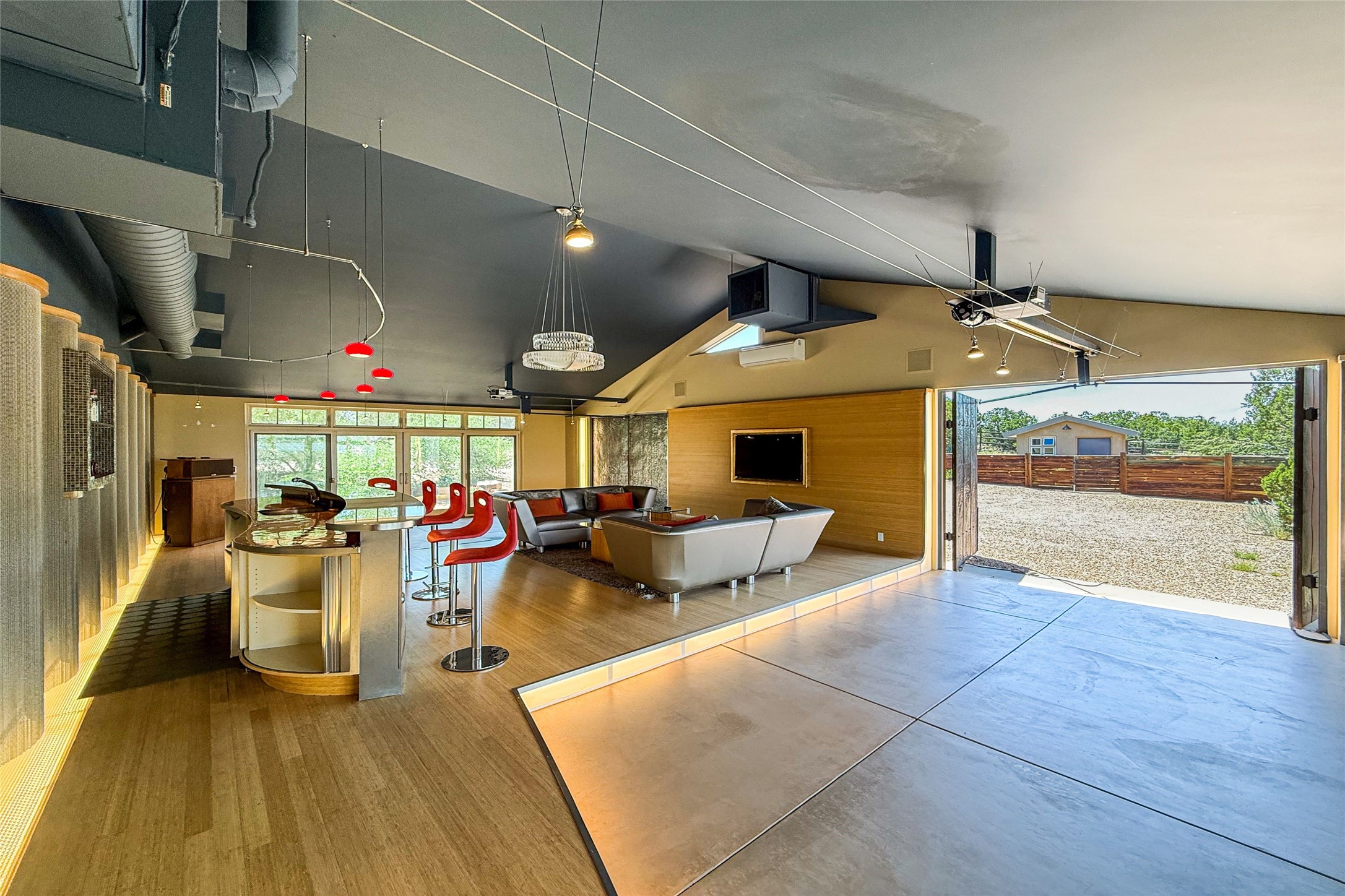 This serene La Tierra Nueva compound, with three distinct residences totaling 7,341 sq. feet of living space. Designed by renowned architect, Lila DeWindt, this lush oasis boasts mature landscaping in a serene, country-like setting with Sangre and Jemez mountain views, 11.85 acres, and vegetable and perennial gardens. The 3,982 sq. foot single level main residence features a blend of timeless Northern NM and modern design, a dramatic high-pitched roof, double-sided stone fireplace, copious natural light, andlarge windows that capture breathtaking Sangre views. With two sitting rooms, a media room and bedrooms that boast mountain views, this residence is truly stunning. Sitting in a bay window, the primary suite's tub overlooks a flower garden. An open-concept kitchen is centered around a large island, perfect for hosting.The home enjoys a portal and multiple patio spaces. The charming 1,334 sq. foot, two bedroom guest house includes a full kitchen, Saltillo tile flooring, a wood-burning stove, large windows, and wrap-around porch. The impressive 2,025 sq footmodern 1-bedroom studio has an open living/dining/kitchen area, and portal. The adult rec-room, with built-in bar, is ideal as live/work space, artist studio/music room, car enthusiast or convert to a barn. Perfect for large gatherings and relaxing with sunset Jemez views. Beneath the studio, lays a remarkable walk-in wine cellar for approx. 5000 bottles with wine tasting area. The property also includes a generous fenced dog area and room for horses.A truly peaceful, secluded atmosphere just 18 minutes from the heart of Santa Fe or the airport, and 8 minutes to The Club at Las Campanas. La Tierra Nueva is a coveted, gated, equestrian-friendly community with access to over 60,000 acres BLM land, and tennis/pickleball court. Ideal for multigenerational living, a large family, or patron of the arts, 7 Goodnight Trail West is a true hidden gem.
