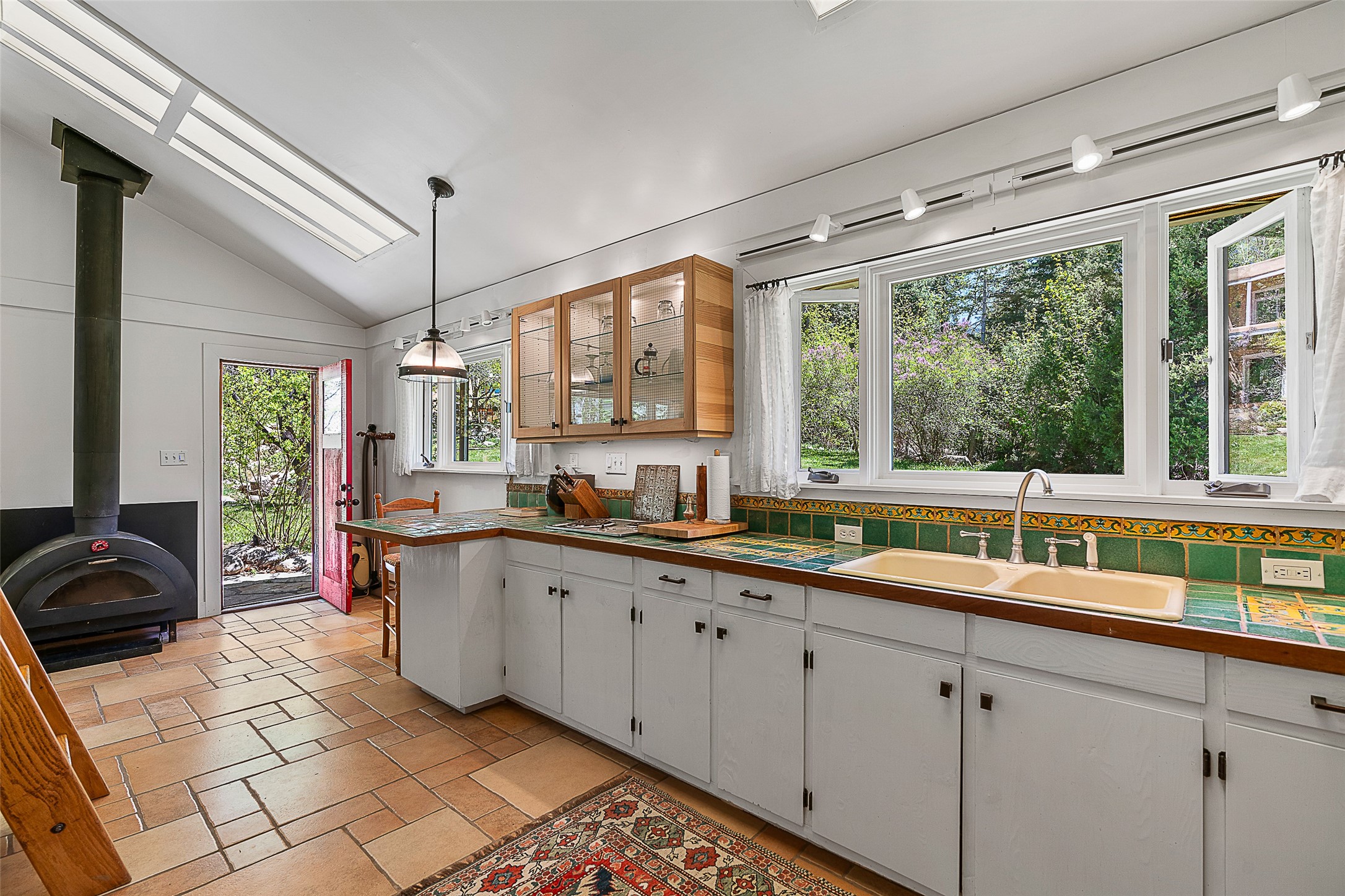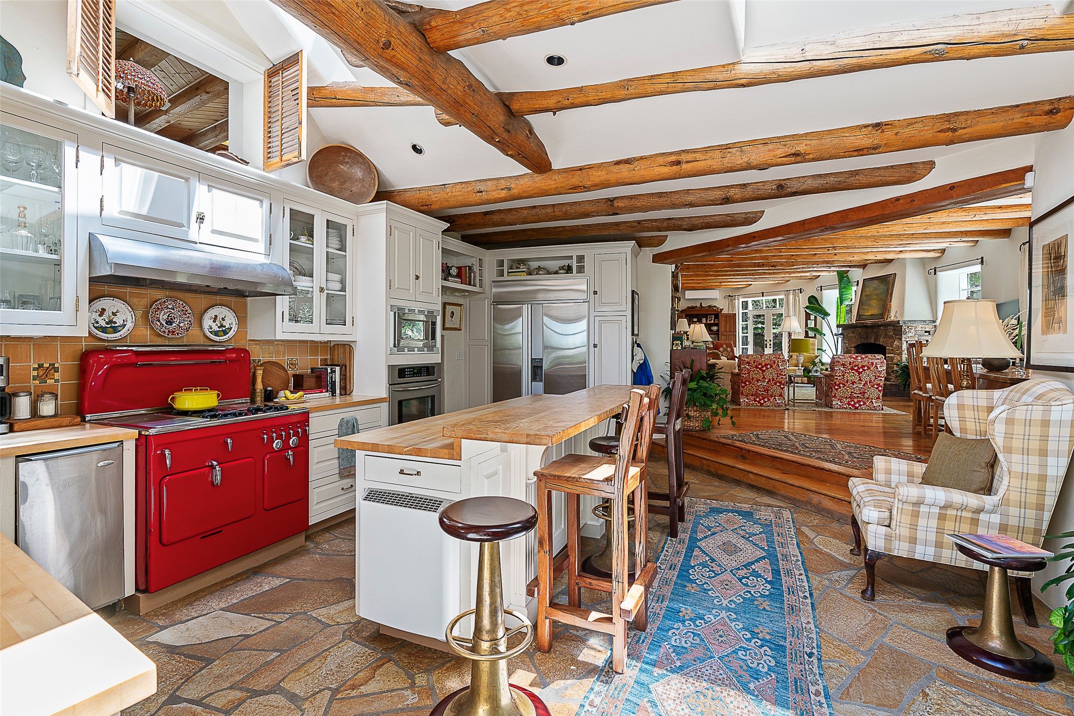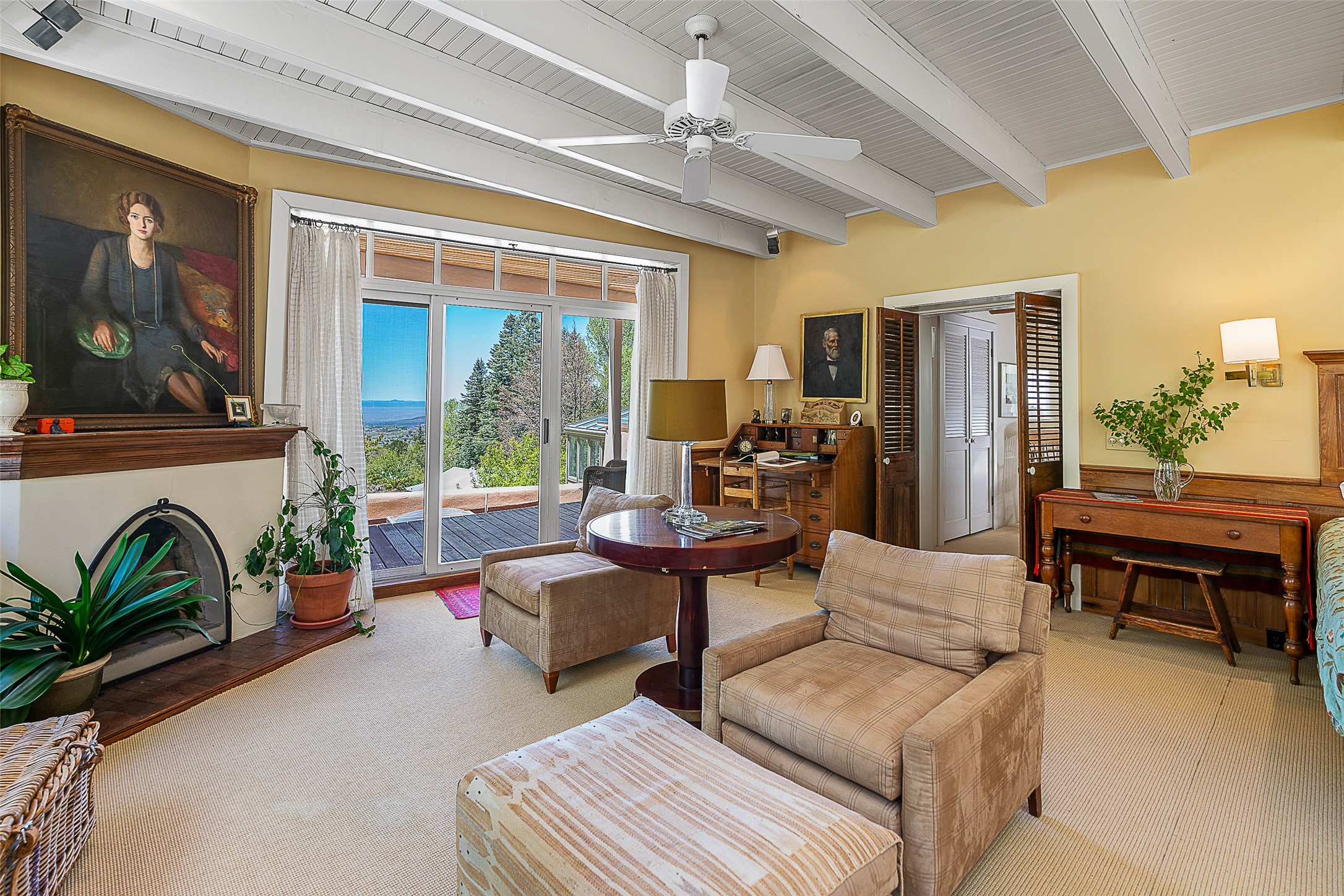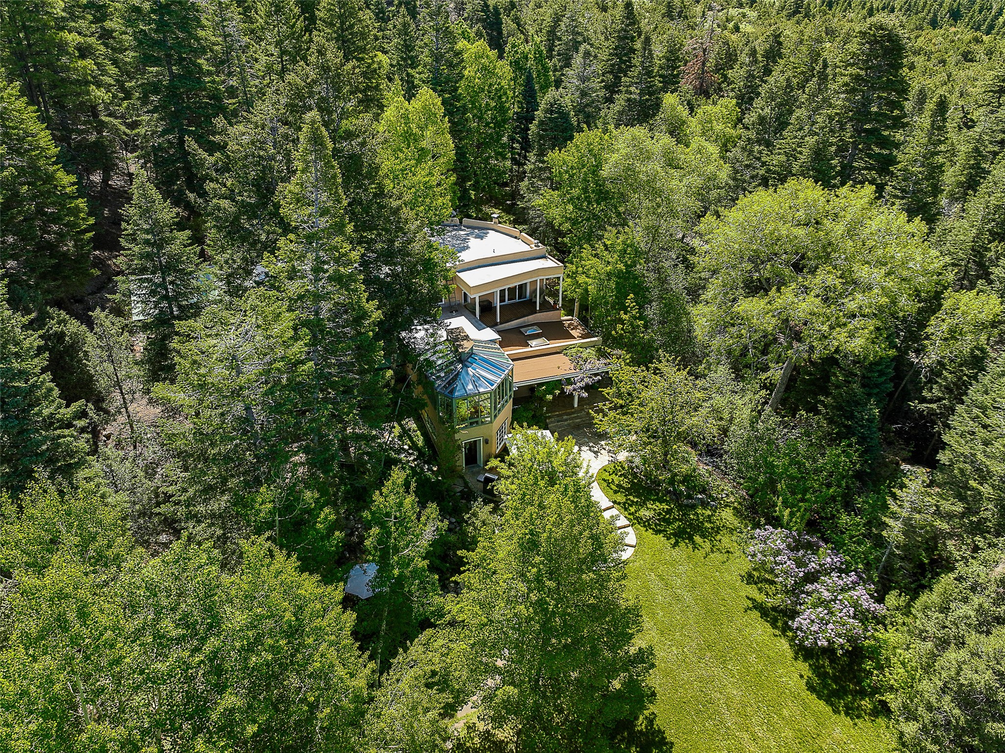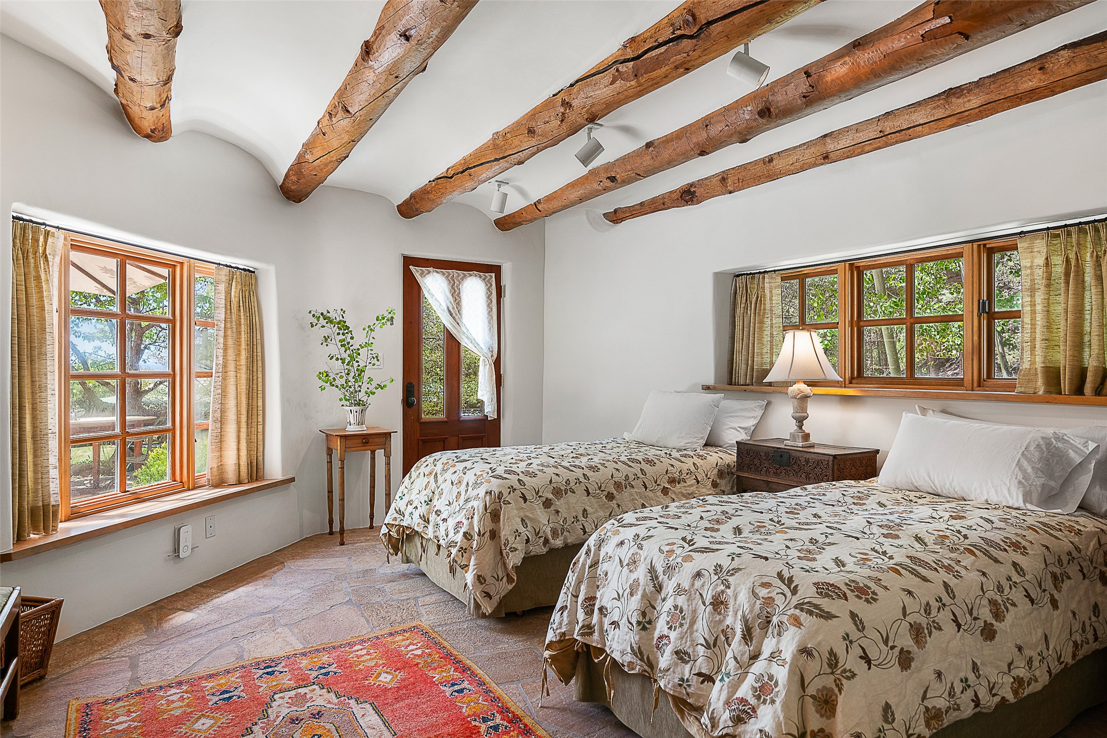 Comfortably tucked beneath the towering El Salto Mountain, sits this special 5.25 acre estate alongside the Arroyo Seco stream. This green oasis is defined by water, tall trees, birdsong and woodland gardens, by clear light, forever views and cool, starry nights. From its origins in the early 1970's, generously expanded over several decades, the home is built in harmony with the land. Each level flows naturally from the last, echoing the cascading waters just outside, with terraces, nooks, and rooms unfolding like the curves of the Creek itself. Both informal and refined, the house feels completely welcoming and comfortable. Gorgeous Idaho quartzite flagstone moves seamlessly from the broad front portal draped with Wisteria into the kitchen. The principal living space has a dreamy kitchen with a fantastic 1954 red enamel Chambers stove, a wonderful creek-side sitting area, a living room with wide plank reclaimed heart pine floors, a dry-stack stone fireplace, a library nook, a dining area, and three sets of French doors leading out onto a wrap-around patio that follows the banks of the winding creek. Salvaged and repurposed cypress shutters from New Orleans became beautiful wainscot paneling and doors. The home is anchored by a spectacular second story glass sunroom, made and installed by Pennsylvania Mennonite and Amish craftsmen from Renaissance Conservatories. The magical room with a warm quartzite floor is bathed in natural light that invites the outdoors in- perfect for morning coffee, quiet reflection, reading, writing, or entertaining under the stars. From here, a short rise of stairs leads to a landing off of which radiate two large, private suites. The western facing suite has a cozy sitting area with a large fireplace and a patio overlooking the stream and endless views to the Rio Grande Gorge and beyond. The corresponding suite is bathed in beautiful natural light from the large windows, vaulted ceilings and skylights. It feels like a cozy nest tucked into the treed canopy surrounding it. The third bedroom suite is can be accessed from the main living level or via a private door from the gardens. A delightful guesthouse with a complete kitchen sits at the base of a grassy lawn. Under the same roof, yet with it's own entrances from the lawn or garage is an additional light-filled room currently used as a home gym/office, and has a half bathroom. Versatile spaces amongst a verdant landscape. The stream brings the music of water to your daily rhythms. In the evening a cool breeze comes down the creek, and with it the gift of sleeping under a light blanket...windows wide open, stream trickling along. Natural springs feed native plants and perennials that bloom spring and summer. Golden Aspens shimmer and quake in the fall. Over 60 varieties of flowering trees, shrub sand perennials make for a true botanical delight. This is northern New Mexico at its most magical. Simply stroll out the door to hike and bike. No bike racks and drives to a trailhead necessary. Contiguous with quiet Taos Pueblo lands. Hiking trails lead to the El Salto waterfall and Carson National Forest. It's an easy 12 mile/20 minute drive to Taos Ski Valley. The location is secluded, yet sneaky-convenient. Meticulously maintained by one Owner for over 50 years, this is the first opportunity for another lucky soul to call this Home. This one-of-a-kind mountain sanctuary blends privacy, luxury and natural beauty in a way that simply can't be replicated. It is a truly special spot- Private Luxury at the Edge of Wild.