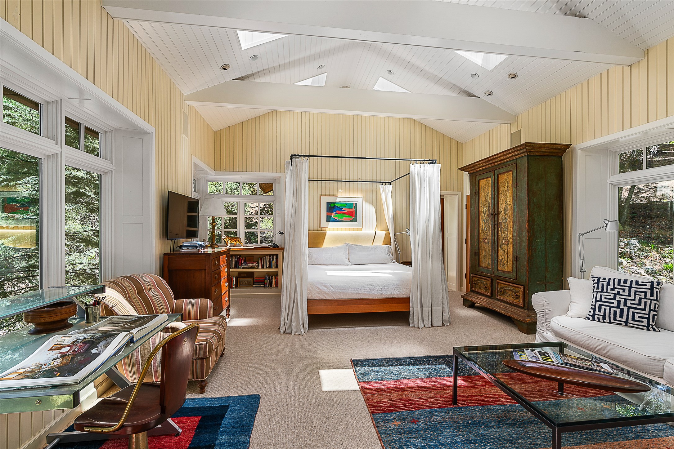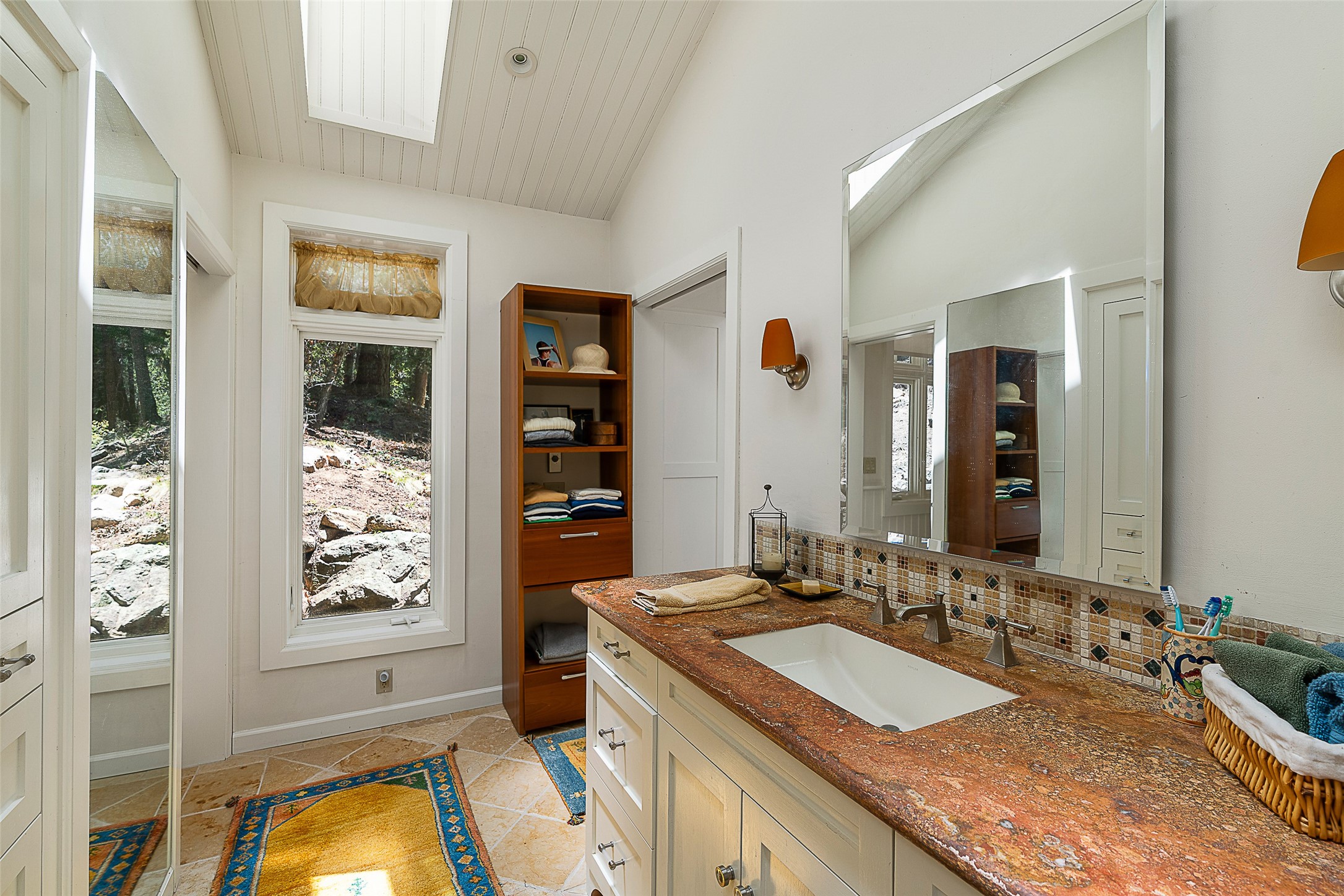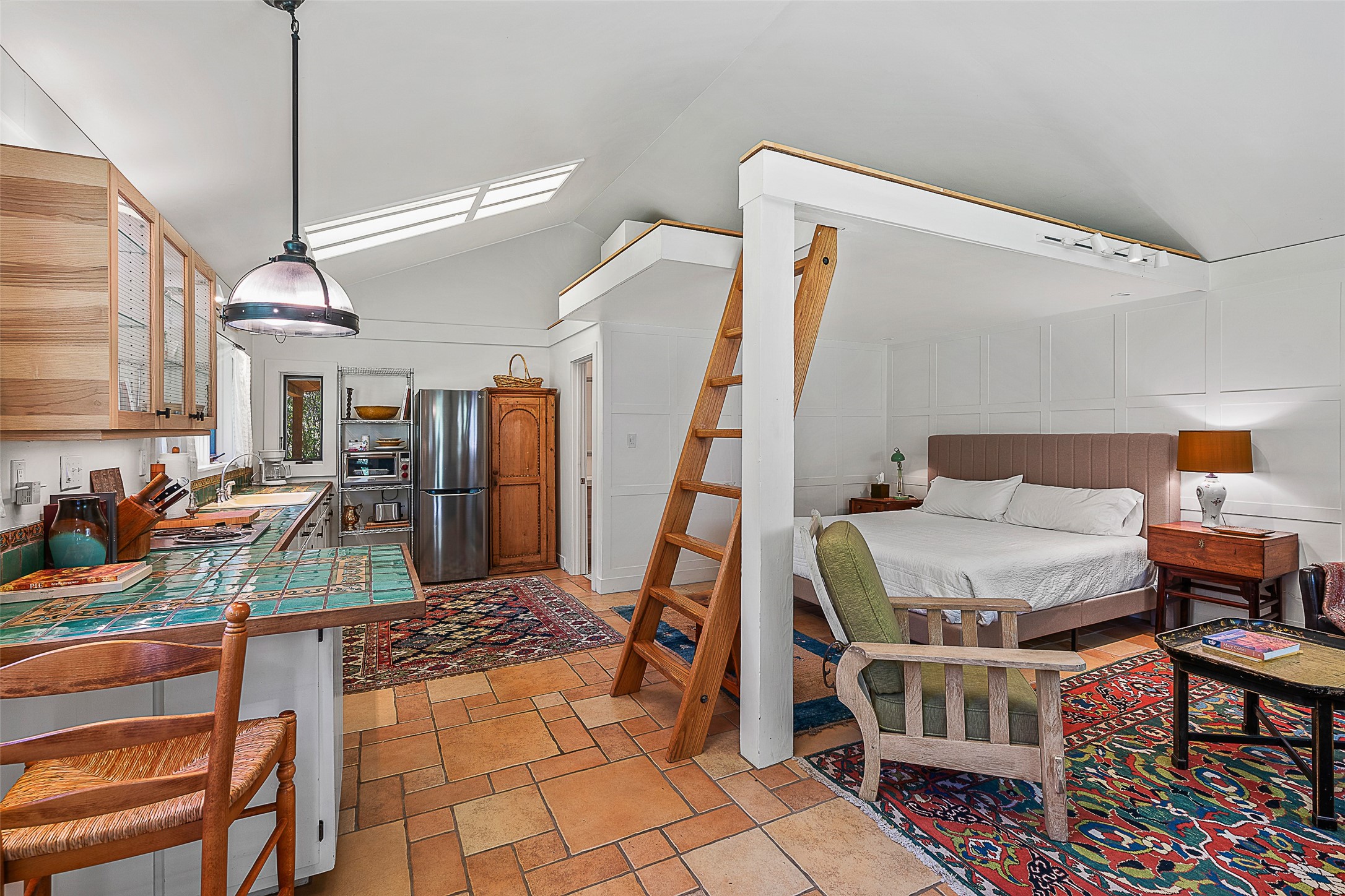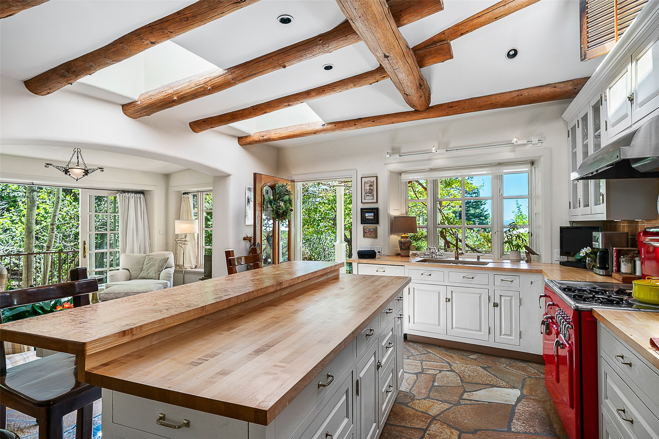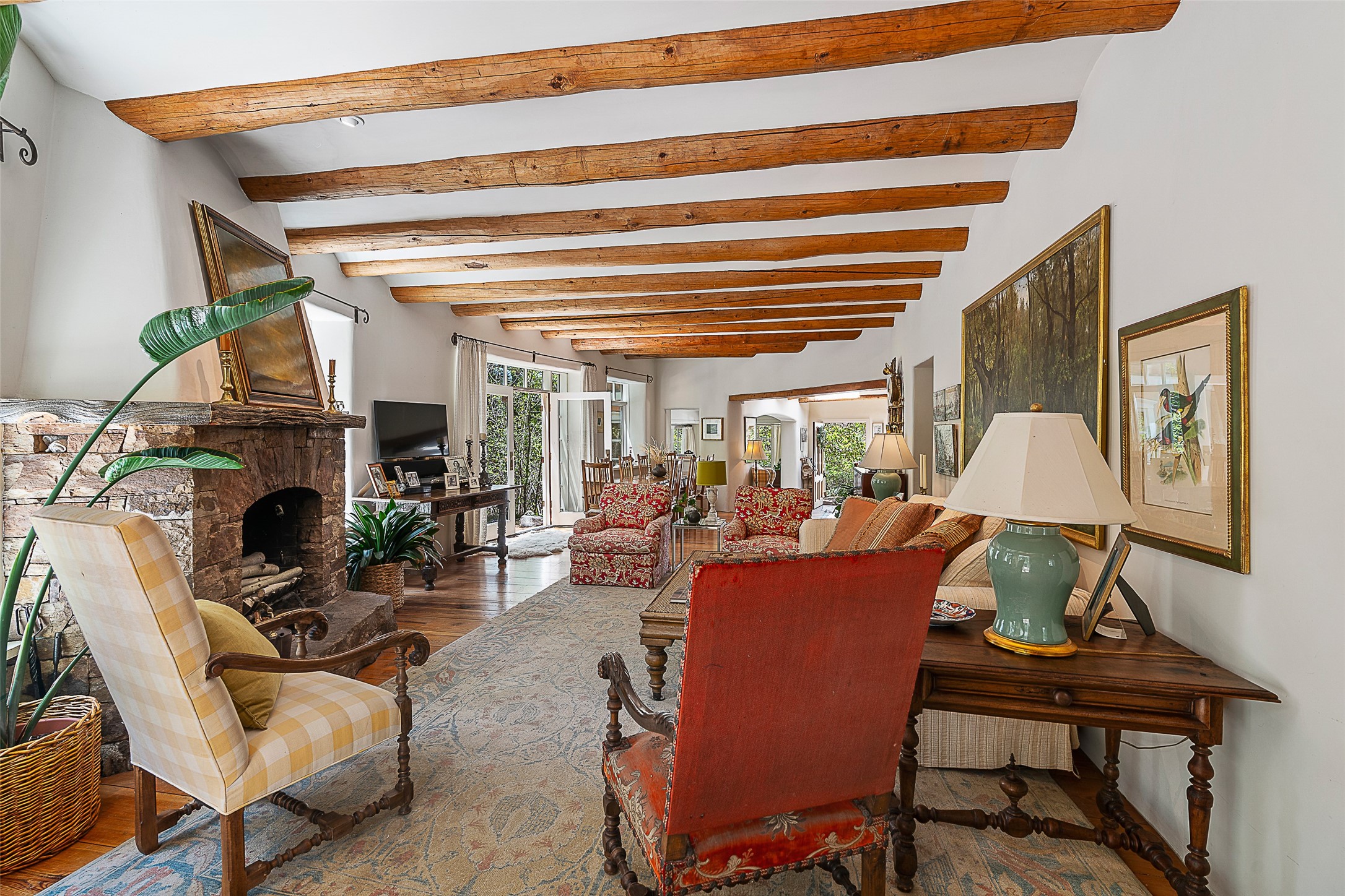 Comfortably tucked beneath the towering El Salto Mountain, sits this special 5.25 acre estate alongside the Arroyo Seco stream. This green oasis is defined by water, tall trees, birdsong and woodland gardens, by clear light, forever views and cool, starry nights. From its origins in the early 1970's, generously expanded over several decades, the home is built in harmony with the land. Each level flows naturally from the last, echoing the cascading waters just outside, with terraces, nooks, and rooms unfolding like the curves of the Creek itself. Both informal and refined, the house feels completely welcoming and comfortable. Gorgeous Idaho quartzite flagstone moves seamlessly from the broad front portal draped with Wisteria into the kitchen. The principal living space has a dreamy kitchen with a fantastic 1954 red enamel Chambers stove, a wonderful creek-side sitting area, a living room with wide plank reclaimed heart pine floors, a dry-stack stone fireplace, a library nook, a dining area, and three sets of French doors leading out onto a wrap-around patio that follows the banks of the winding creek. Salvaged and repurposed cypress shutters from New Orleans became beautiful wainscot paneling and doors. The home is anchored by a spectacular second story glass sunroom, made and installed by Pennsylvania Mennonite and Amish craftsmen from Renaissance Conservatories. The magical room with a warm quartzite floor is bathed in natural light that invites the outdoors in- perfect for morning coffee, quiet reflection, reading, writing, or entertaining under the stars. From here, a short rise of stairs leads to a landing off of which radiate two large, private suites. The western facing suite has a cozy sitting area with a large fireplace and a patio overlooking the stream and endless views to the Rio Grande Gorge and beyond. The corresponding suite is bathed in beautiful natural light from the large windows, vaulted ceilings and skylights. It feels like a cozy nest tucked into the treed canopy surrounding it. The third bedroom suite is can be accessed from the main living level or via a private door from the gardens. A delightful guesthouse with a complete kitchen sits at the base of a grassy lawn. Under the same roof, yet with it's own entrances from the lawn or garage is an additional light-filled room currently used as a home gym/office, and has a half bathroom. Versatile spaces amongst a verdant landscape. The stream brings the music of water to your daily rhythms. In the evening a cool breeze comes down the creek, and with it the gift of sleeping under a light blanket...windows wide open, stream trickling along. Natural springs feed native plants and perennials that bloom spring and summer. Golden Aspens shimmer and quake in the fall. Over 60 varieties of flowering trees, shrub sand perennials make for a true botanical delight. This is northern New Mexico at its most magical. Simply stroll out the door to hike and bike. No bike racks and drives to a trailhead necessary. Contiguous with quiet Taos Pueblo lands. Hiking trails lead to the El Salto waterfall and Carson National Forest. It's an easy 12 mile/20 minute drive to Taos Ski Valley. The location is secluded, yet sneaky-convenient. Meticulously maintained by one Owner for over 50 years, this is the first opportunity for another lucky soul to call this Home. This one-of-a-kind mountain sanctuary blends privacy, luxury and natural beauty in a way that simply can't be replicated. It is a truly special spot- Private Luxury at the Edge of Wild.