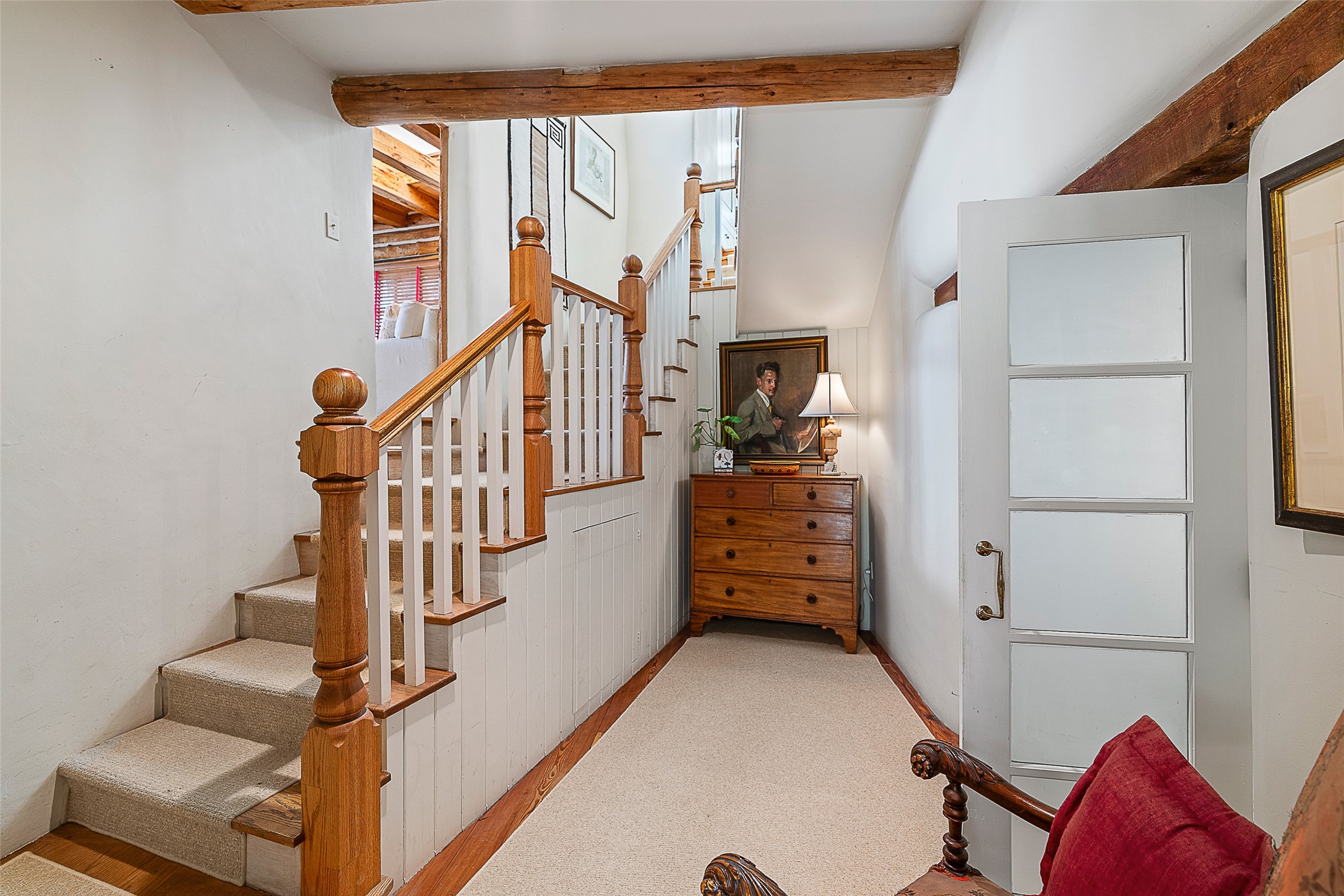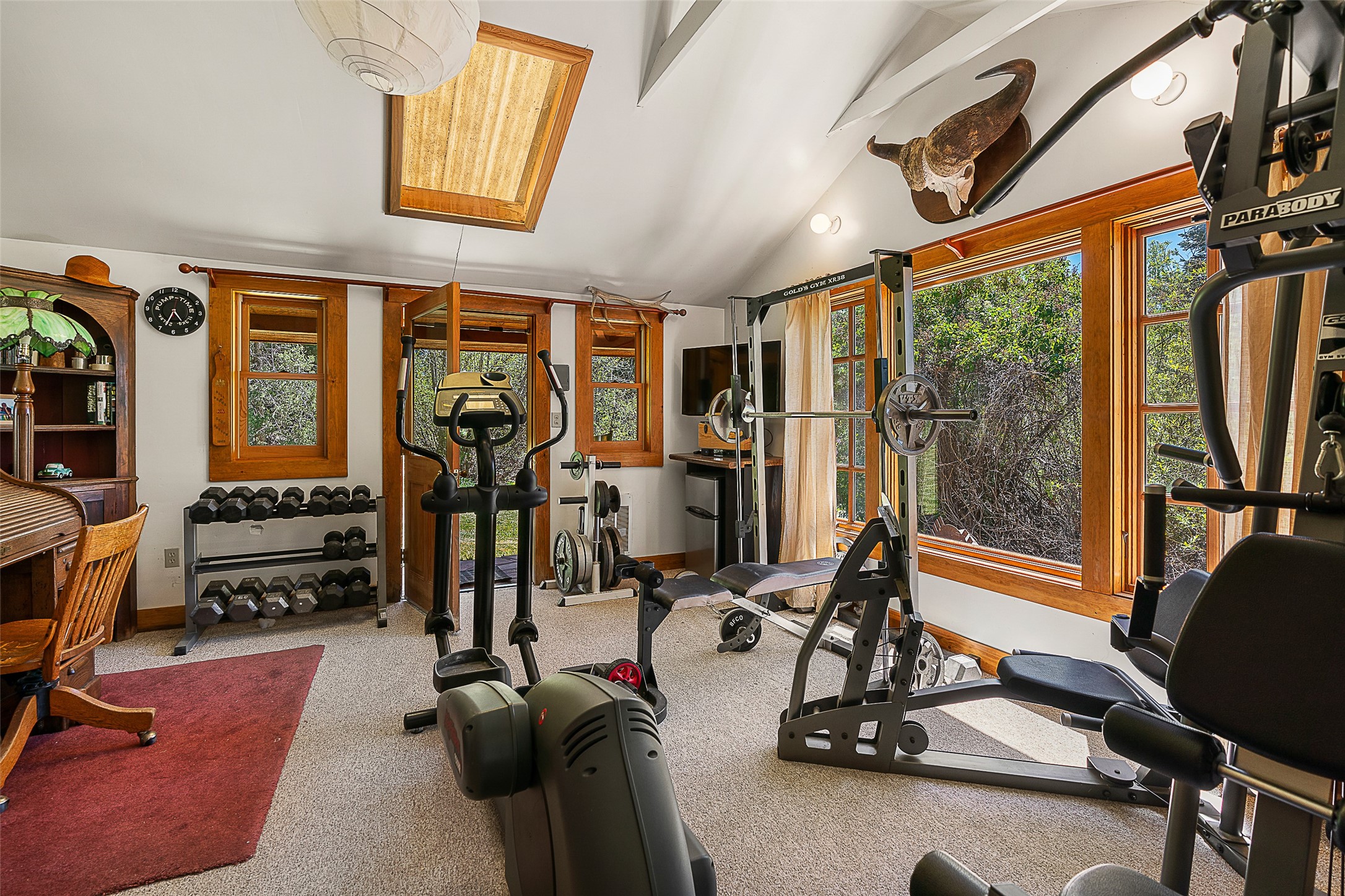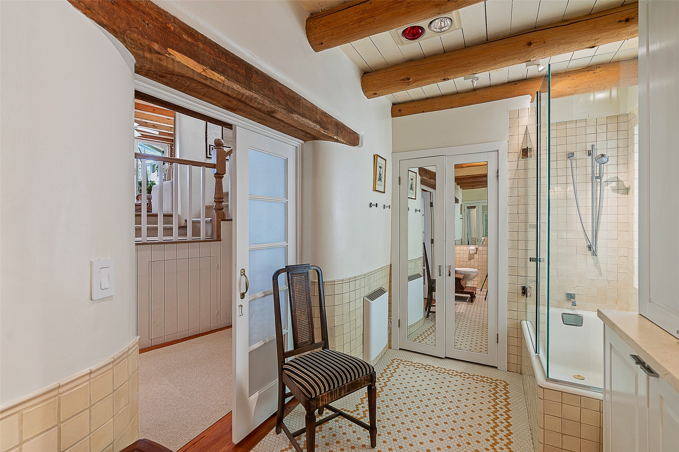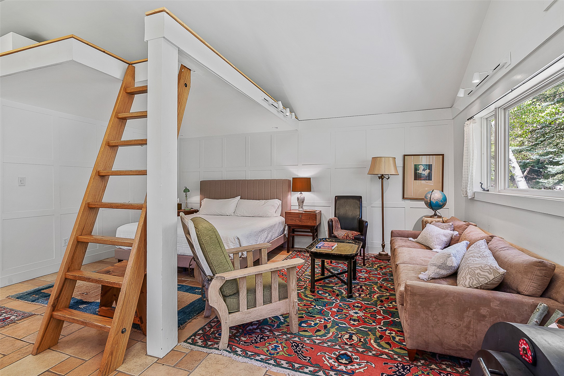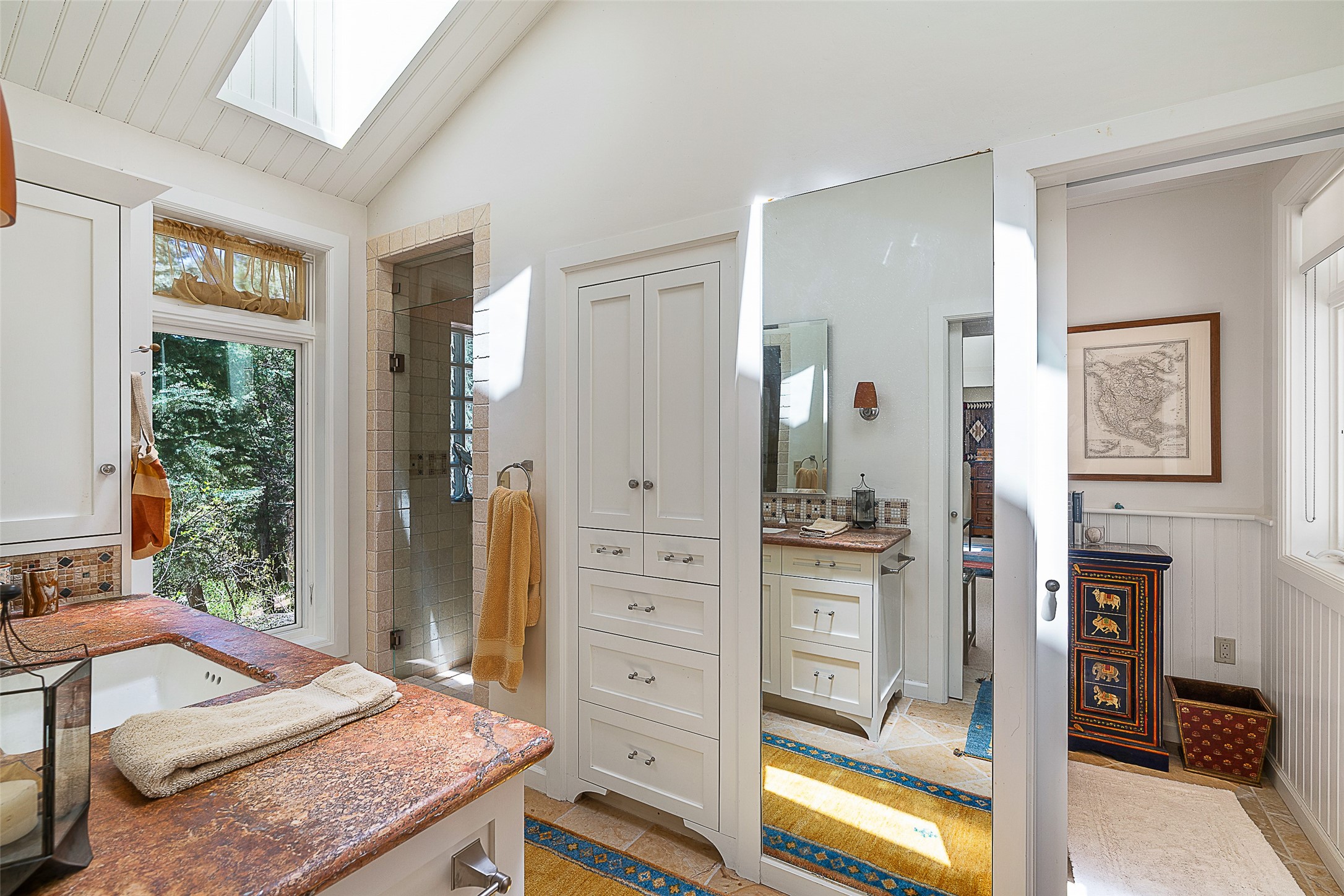 Comfortably tucked beneath the towering El Salto Mountain, sits this special 5.25 acre estate alongside the Arroyo Seco stream. This green oasis is defined by water, tall trees, birdsong and woodland gardens, by clear light, forever views and cool, starry nights. From its origins in the early 1970's, generously expanded over several decades, the home is built in harmony with the land. Each level flows naturally from the last, echoing the cascading waters just outside, with terraces, nooks, and rooms unfolding like the curves of the Creek itself. Both informal and refined, the house feels completely welcoming and comfortable. Gorgeous Idaho quartzite flagstone moves seamlessly from the broad front portal draped with Wisteria into the kitchen. The principal living space has a dreamy kitchen with a fantastic 1954 red enamel Chambers stove, a wonderful creek-side sitting area, a living room with wide plank reclaimed heart pine floors, a dry-stack stone fireplace, a library nook, a dining area, and three sets of French doors leading out onto a wrap-around patio that follows the banks of the winding creek. Salvaged and repurposed cypress shutters from New Orleans became beautiful wainscot paneling and doors. The home is anchored by a spectacular second story glass sunroom, made and installed by Pennsylvania Mennonite and Amish craftsmen from Renaissance Conservatories. The magical room with a warm quartzite floor is bathed in natural light that invites the outdoors in- perfect for morning coffee, quiet reflection, reading, writing, or entertaining under the stars. From here, a short rise of stairs leads to a landing off of which radiate two large, private suites. The western facing suite has a cozy sitting area with a large fireplace and a patio overlooking the stream and endless views to the Rio Grande Gorge and beyond. The corresponding suite is bathed in beautiful natural light from the large windows, vaulted ceilings and skylights. It feels like a cozy nest tucked into the treed canopy surrounding it. The third bedroom suite is can be accessed from the main living level or via a private door from the gardens. A delightful guesthouse with a complete kitchen sits at the base of a grassy lawn. Under the same roof, yet with it's own entrances from the lawn or garage is an additional light-filled room currently used as a home gym/office, and has a half bathroom. Versatile spaces amongst a verdant landscape. The stream brings the music of water to your daily rhythms. In the evening a cool breeze comes down the creek, and with it the gift of sleeping under a light blanket...windows wide open, stream trickling along. Natural springs feed native plants and perennials that bloom spring and summer. Golden Aspens shimmer and quake in the fall. Over 60 varieties of flowering trees, shrub sand perennials make for a true botanical delight. This is northern New Mexico at its most magical. Simply stroll out the door to hike and bike. No bike racks and drives to a trailhead necessary. Contiguous with quiet Taos Pueblo lands. Hiking trails lead to the El Salto waterfall and Carson National Forest. It's an easy 12 mile/20 minute drive to Taos Ski Valley. The location is secluded, yet sneaky-convenient. Meticulously maintained by one Owner for over 50 years, this is the first opportunity for another lucky soul to call this Home. This one-of-a-kind mountain sanctuary blends privacy, luxury and natural beauty in a way that simply can't be replicated. It is a truly special spot- Private Luxury at the Edge of Wild.