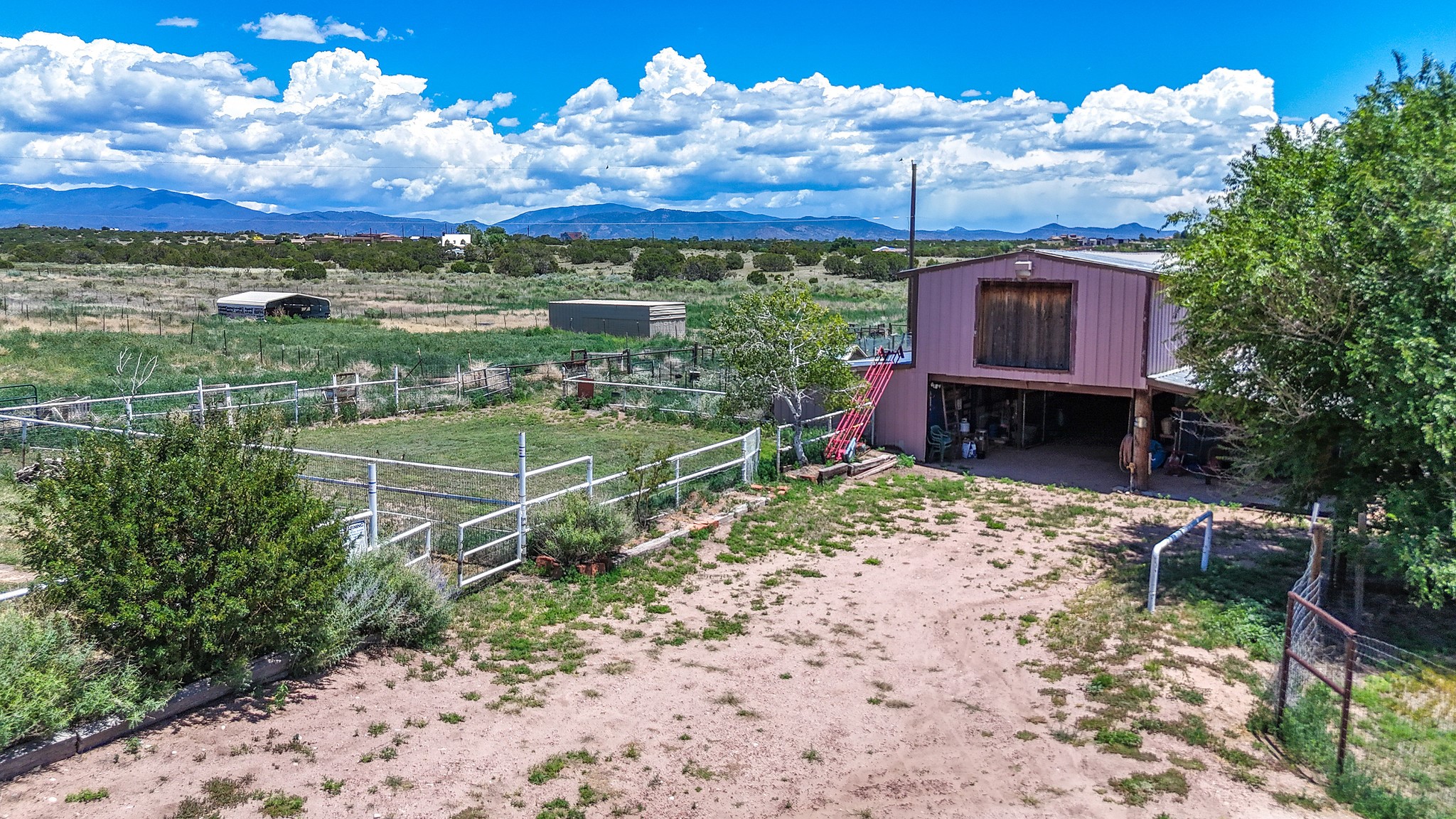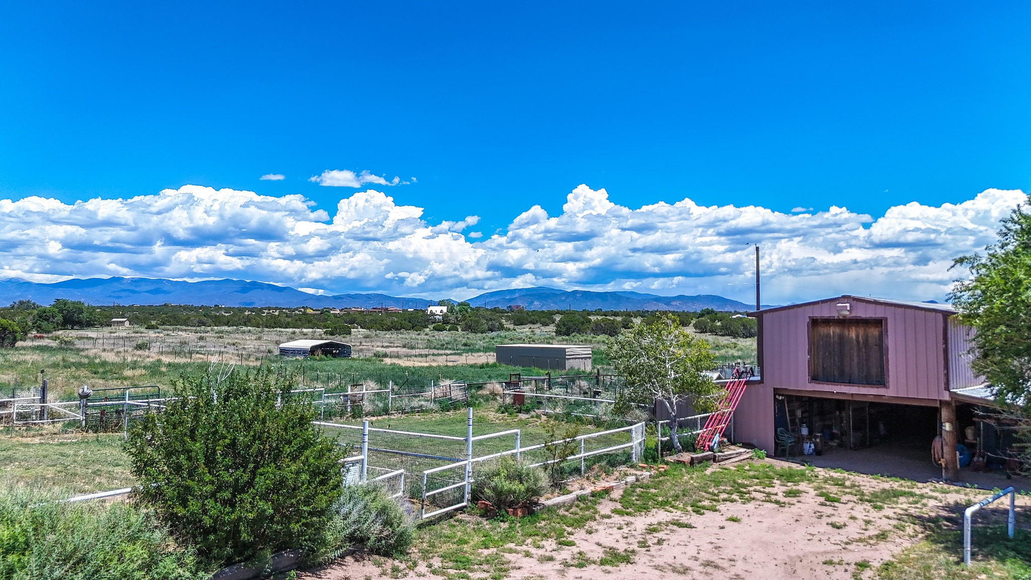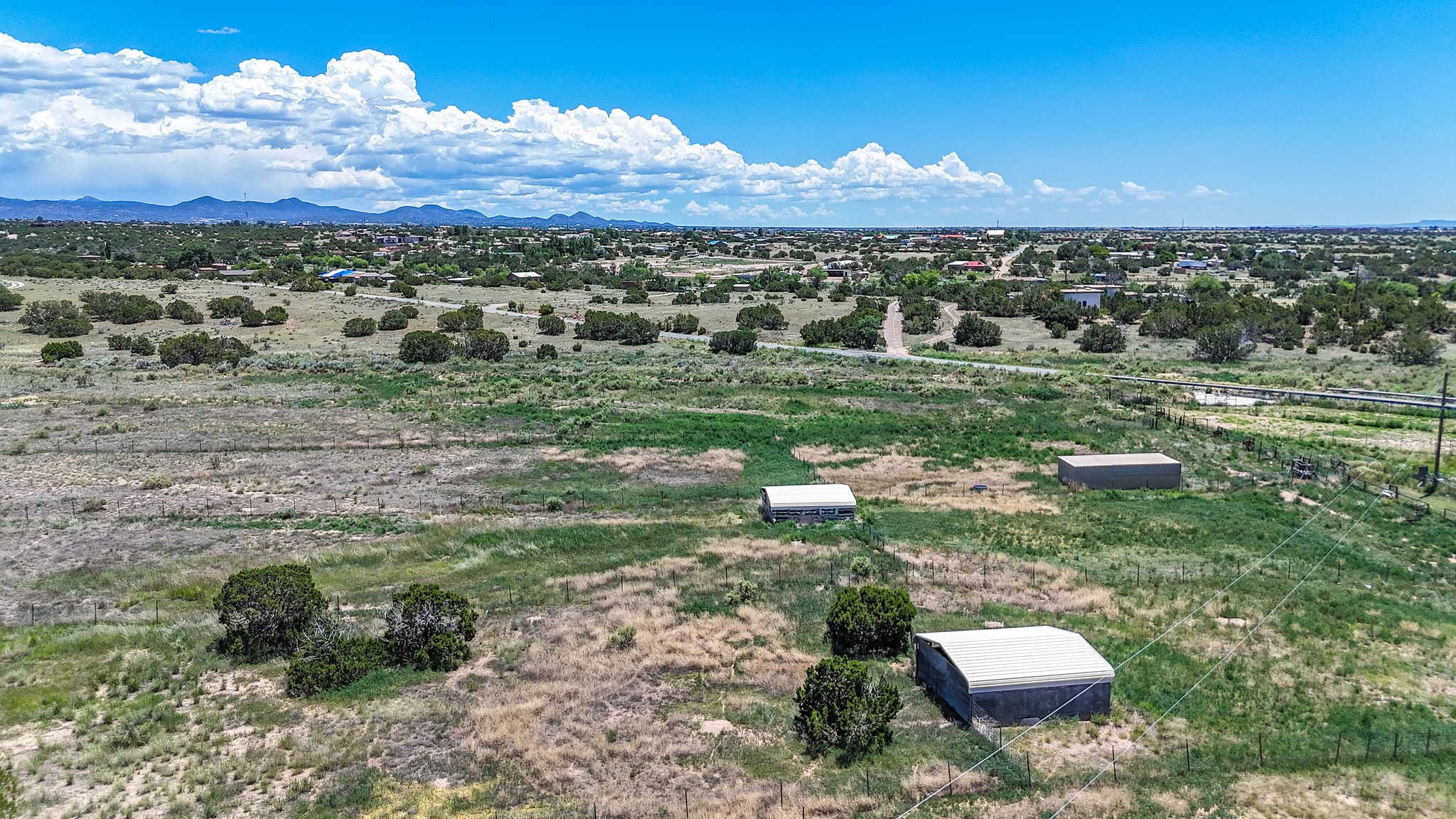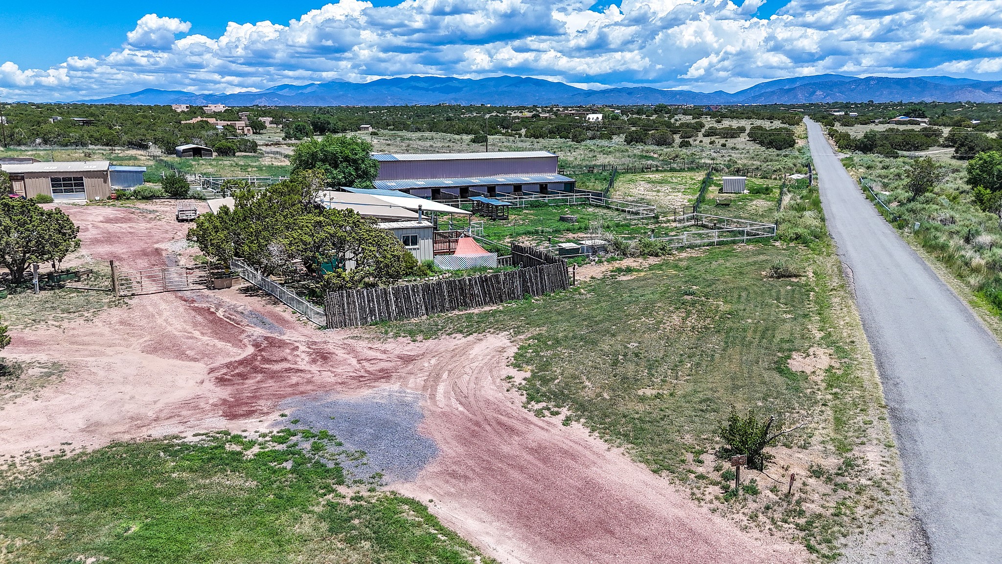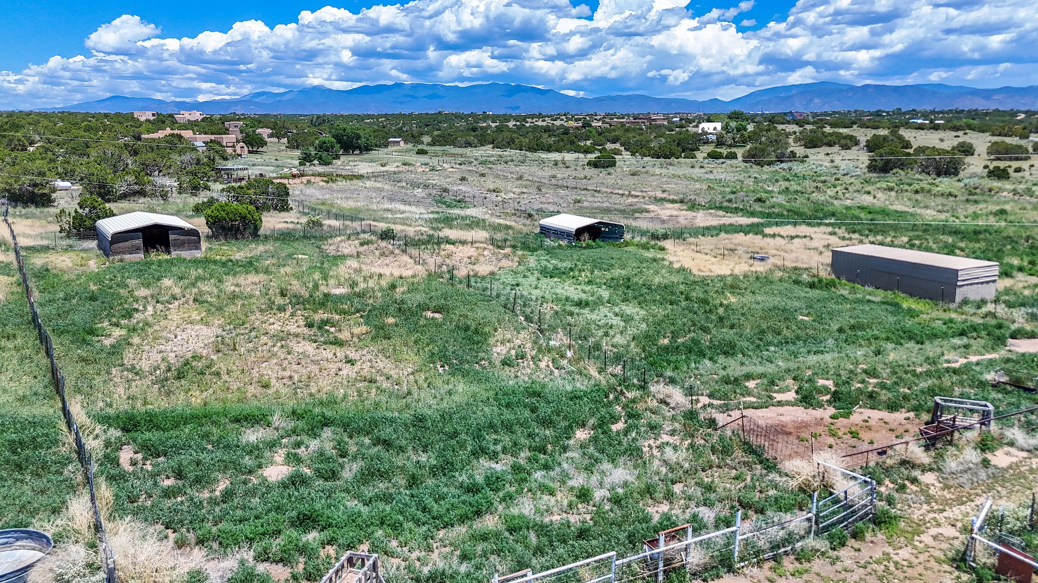 Amazing Building site on 5.31 acres in Santa Fe County. Minutes from town and Plaza. Clear views of the Sangre de Cristo Mountains. This is in a special community with no HOA! New well and private drive easement. Plenty of room for an RV also. This property also has a huge 20 x 50 equestrian barn with a double floor and fencing for all kinds of animals. It has many hydrants and lots of electricity. There is a charming upgraded, well maintained 812 sq. ft cabin at the other entrance. The cabin could be used for a temporary home while overseeing the building site. Later to be used for your children, as a mother in law quarters, or ranch hand or rental home. All kinds of possibilities!