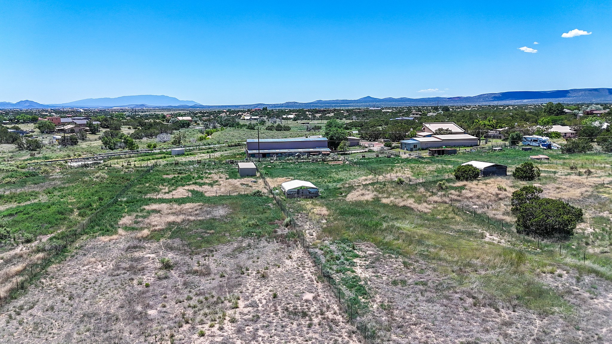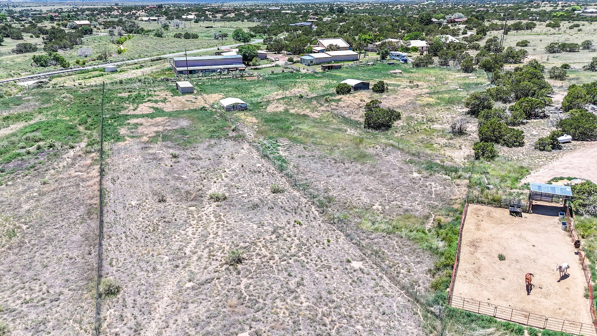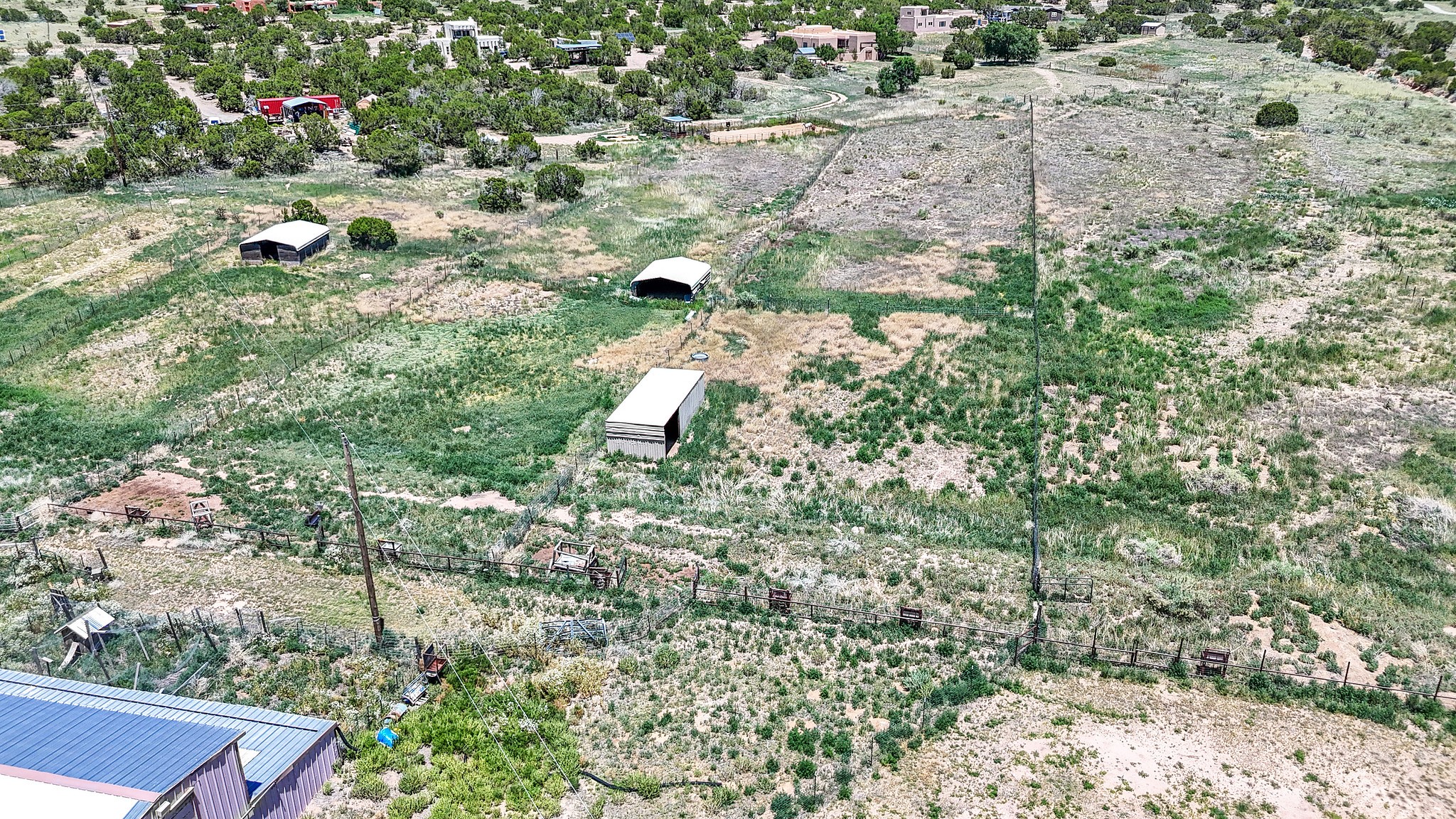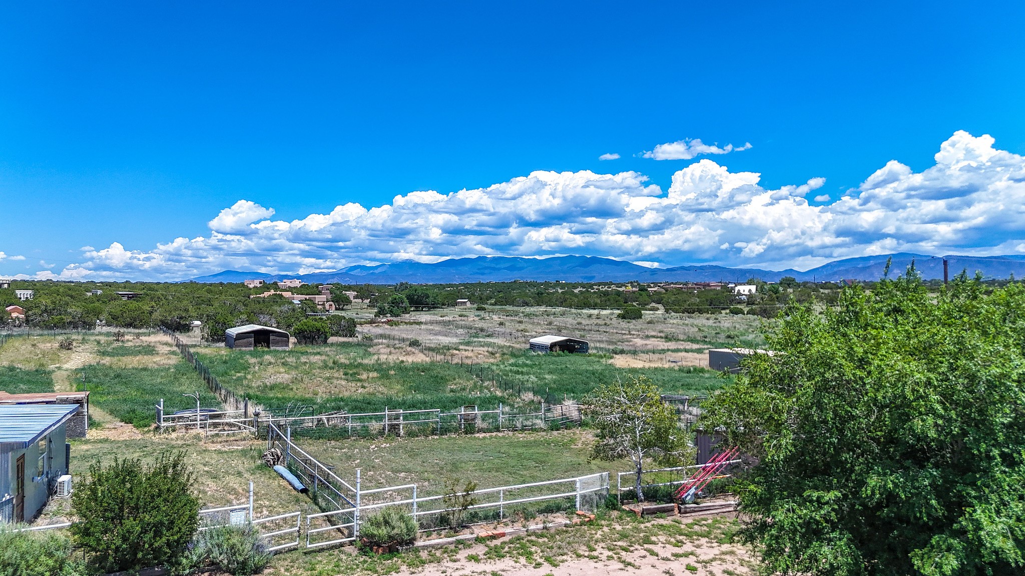 Amazing Building site on 5.31 acres in Santa Fe County. Minutes from town and Plaza. Clear views of the Sangre de Cristo Mountains. This is in a special community with no HOA! New well and private drive easement. Plenty of room for an RV also. This property also has a huge 20 x 50 equestrian barn with a double floor and fencing for all kinds of animals. It has many hydrants and lots of electricity. There is a charming upgraded, well maintained 812 sq. ft cabin at the other entrance. The cabin could be used for a temporary home while overseeing the building site. Later to be used for your children, as a mother in law quarters, or ranch hand or rental home. All kinds of possibilities!