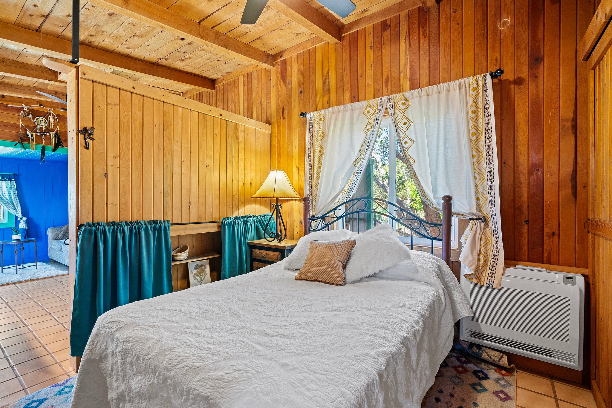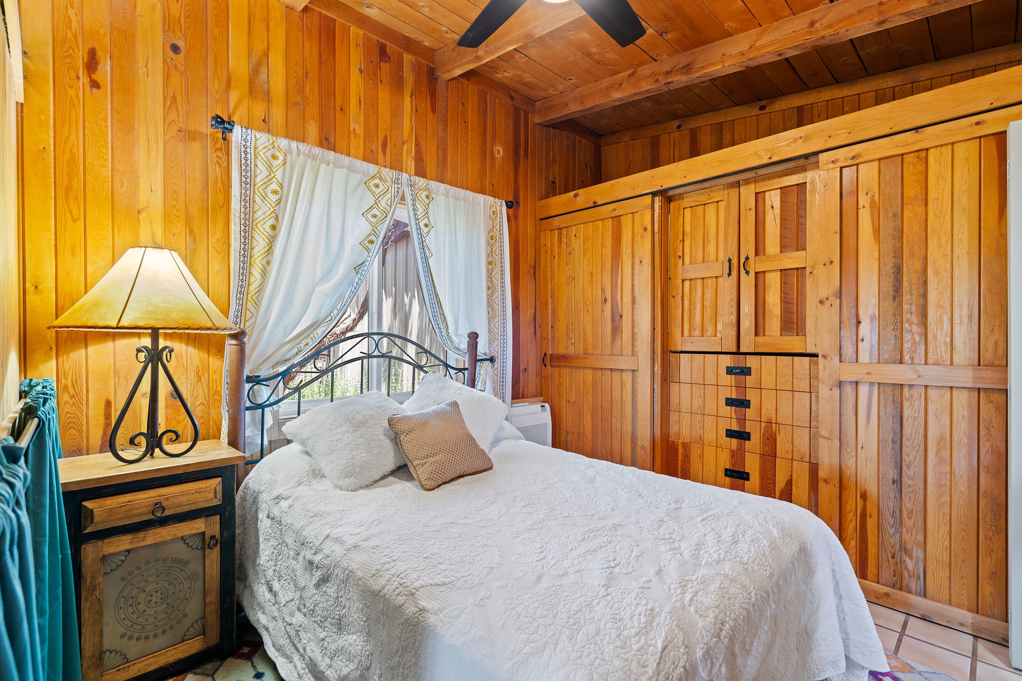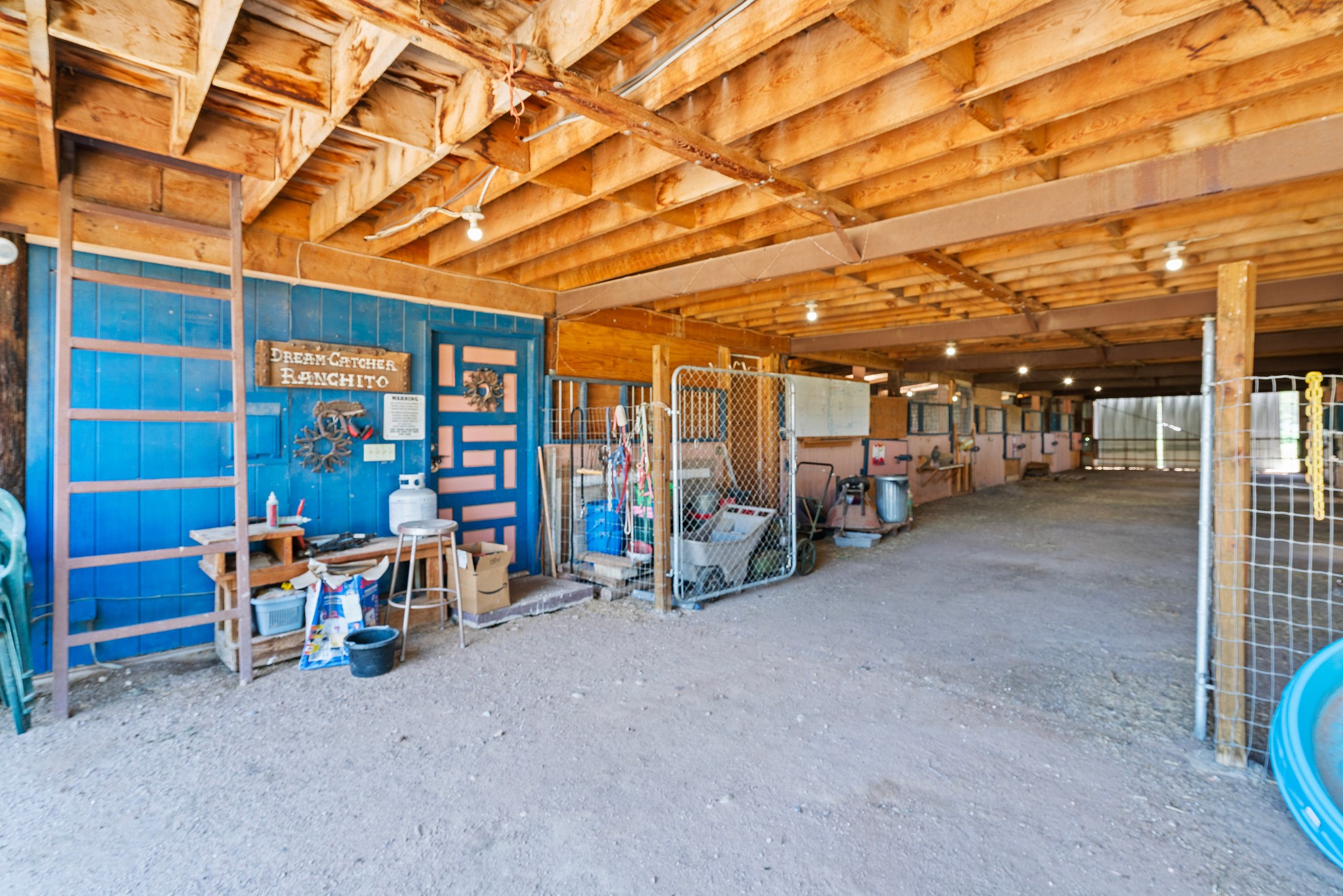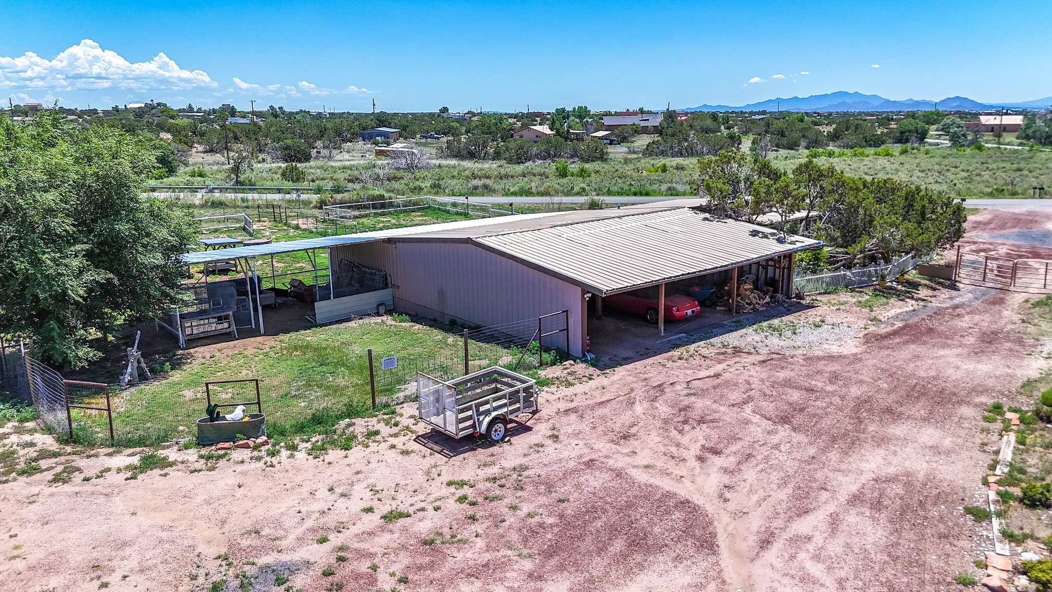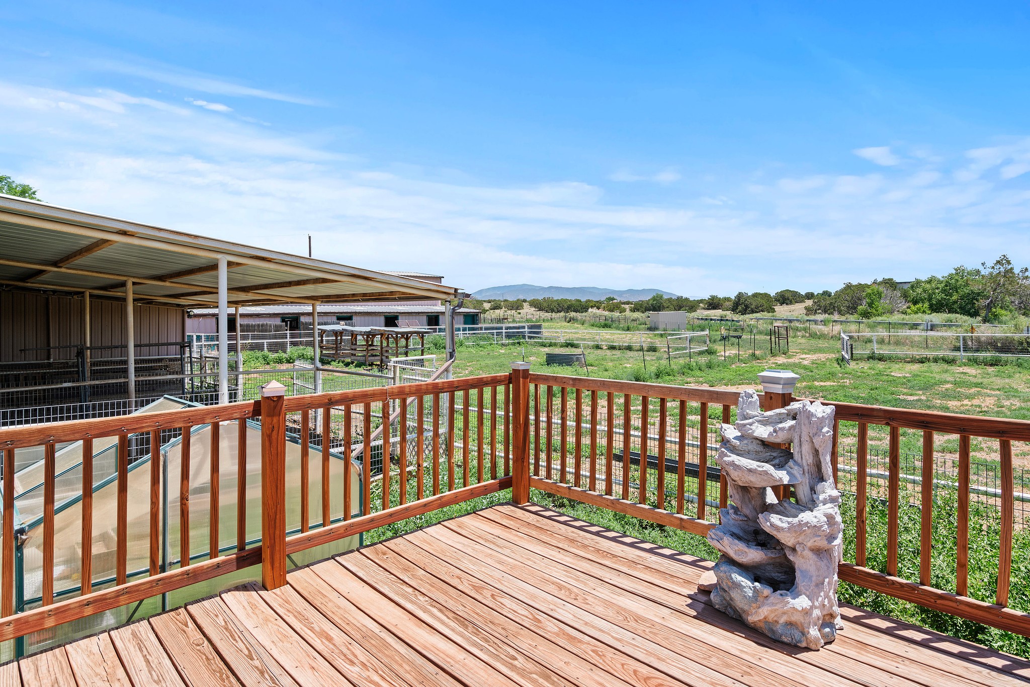 Amazing Building site on 5.31 acres in Santa Fe County. Minutes from town and Plaza. Clear views of the Sangre de Cristo Mountains. This is in a special community with no HOA! New well and private drive easement. Plenty of room for an RV also. This property also has a huge 20 x 50 equestrian barn with a double floor and fencing for all kinds of animals. It has many hydrants and lots of electricity. There is a charming upgraded, well maintained 812 sq. ft cabin at the other entrance. The cabin could be used for a temporary home while overseeing the building site. Later to be used for your children, as a mother in law quarters, or ranch hand or rental home. All kinds of possibilities!