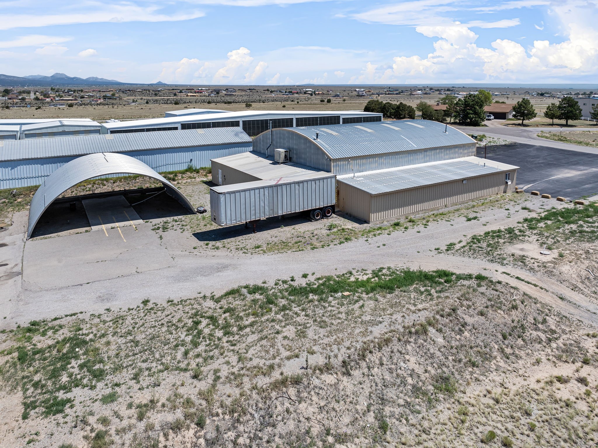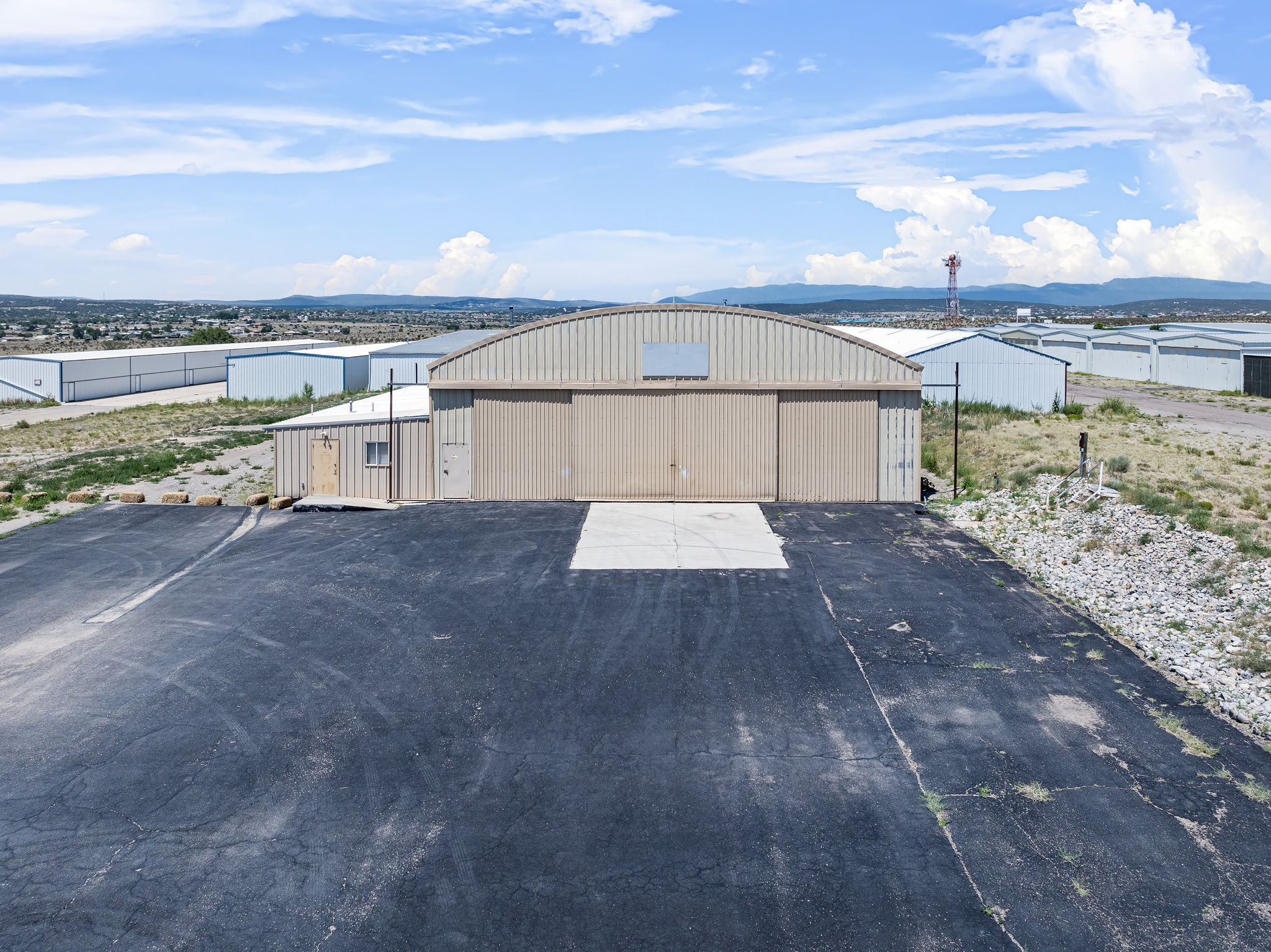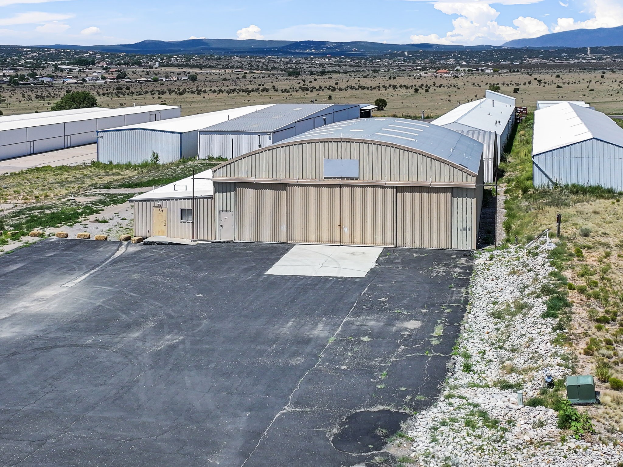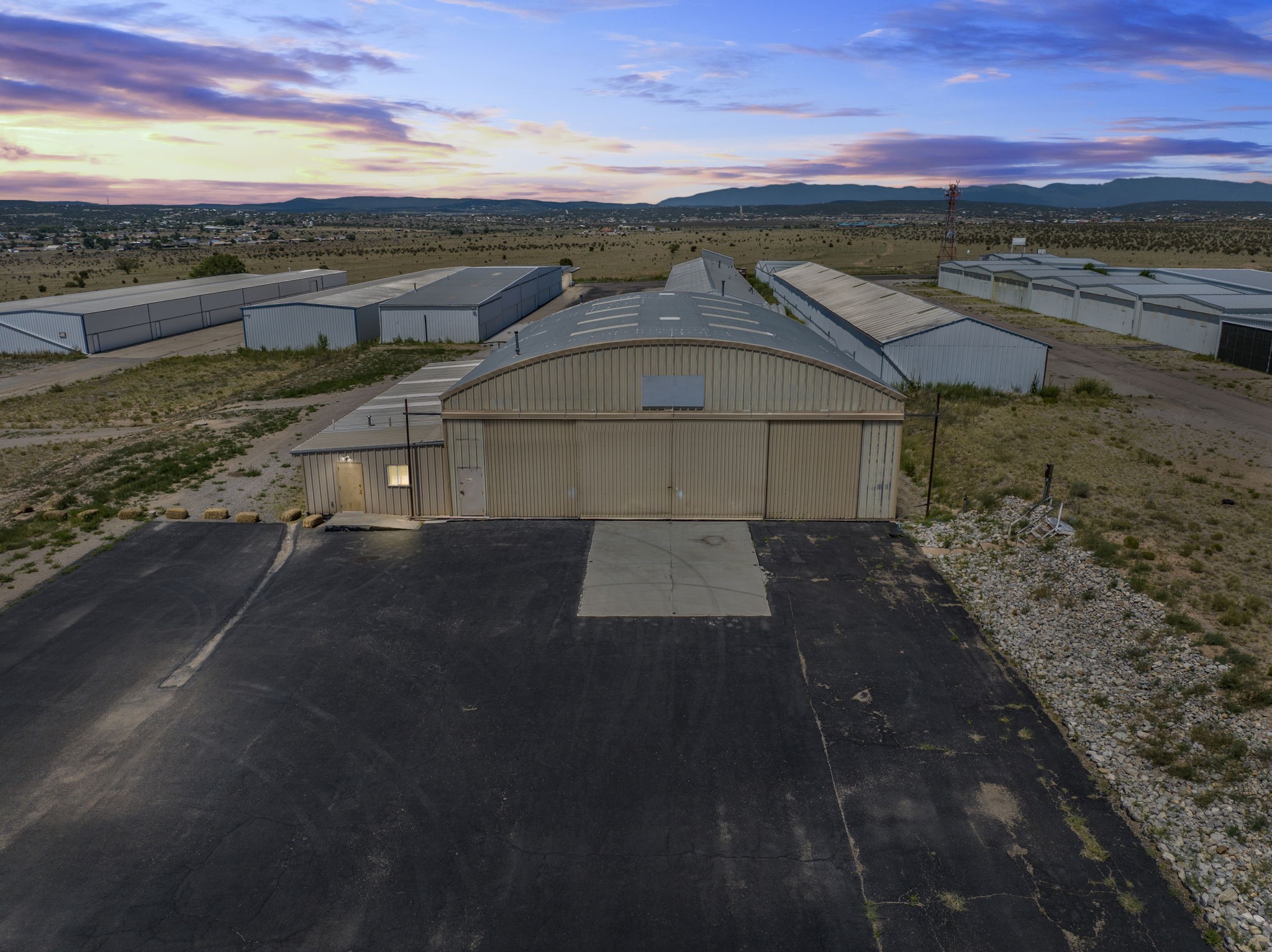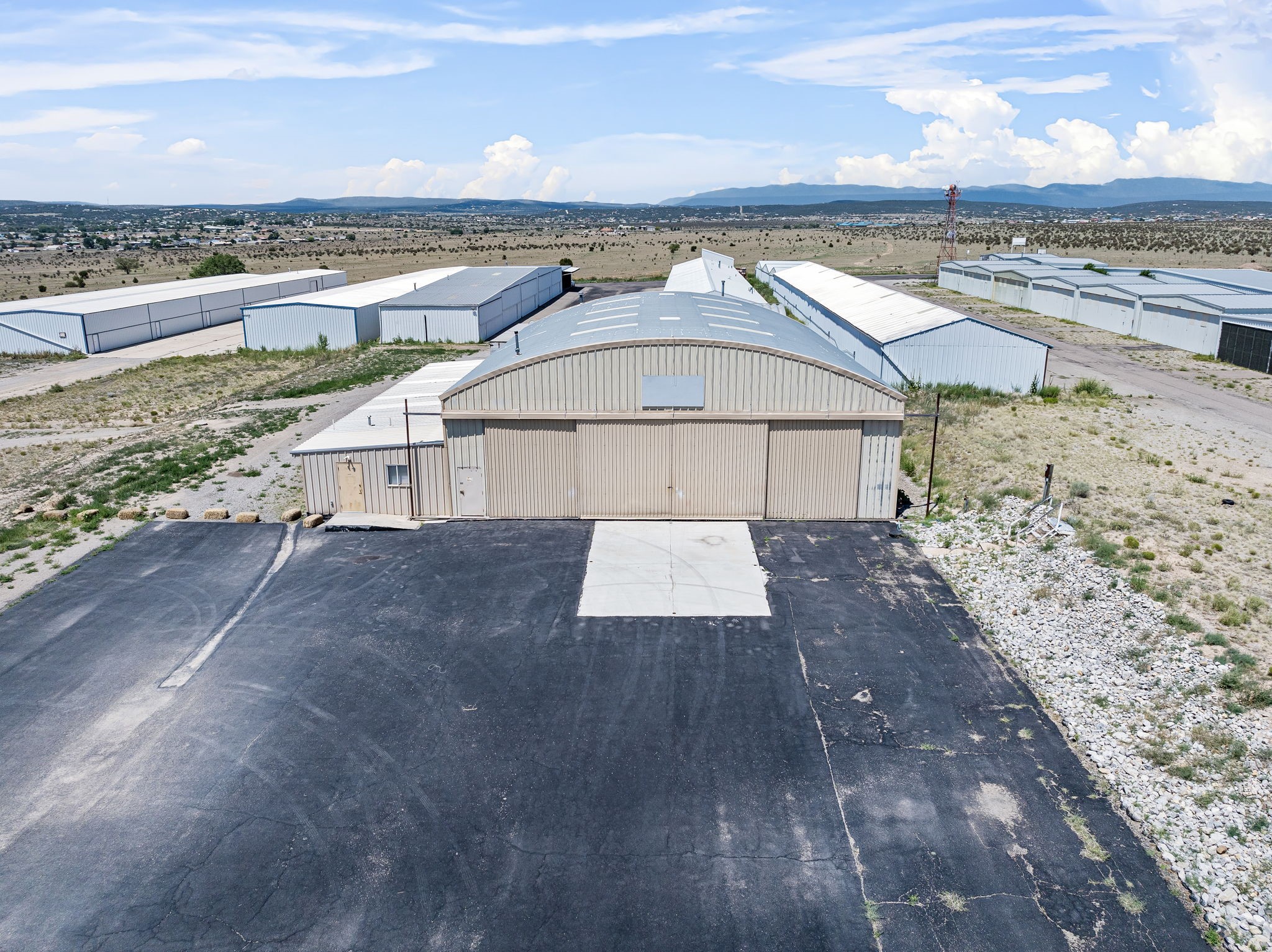 Discover an amazing investment opportunity at Sandia Air Park in Edgewood NM. This property features a massive hangar on a 1-acre lot, offering abundant parking and office facilities, including two bathrooms and multiple rooms for storage or additional office space. The parking area is paved ensuring convenience and ease of access. Beyond the hangar, the property includes a covered area suited for various projects located behind the property. This site offers tremendous potential for a range of uses, making it a versatile investment. This property is ideal for commercial building purposes, airplane storage, and other investment opportunities. Don't miss the chance to capitalize on this outstanding property!
