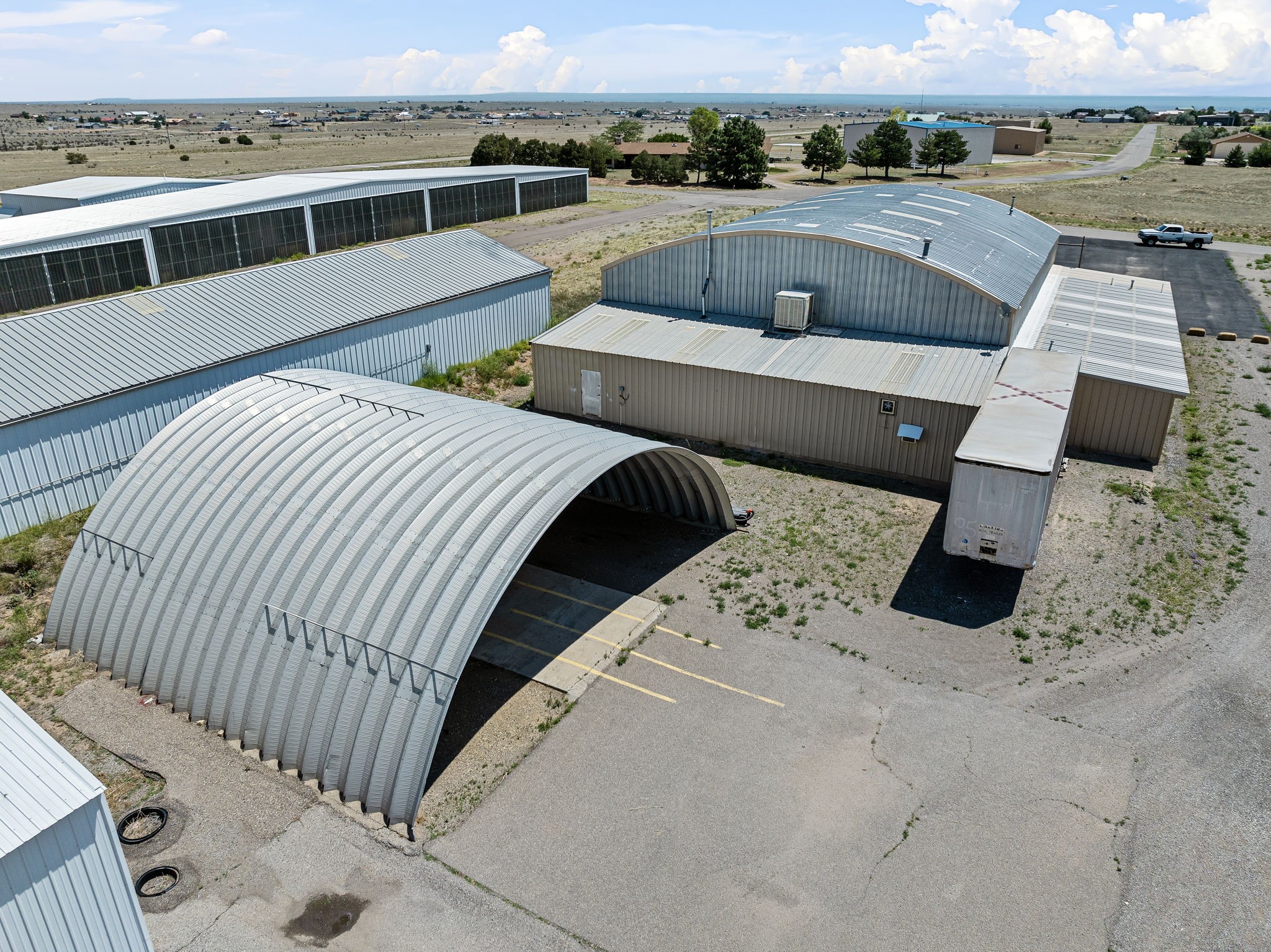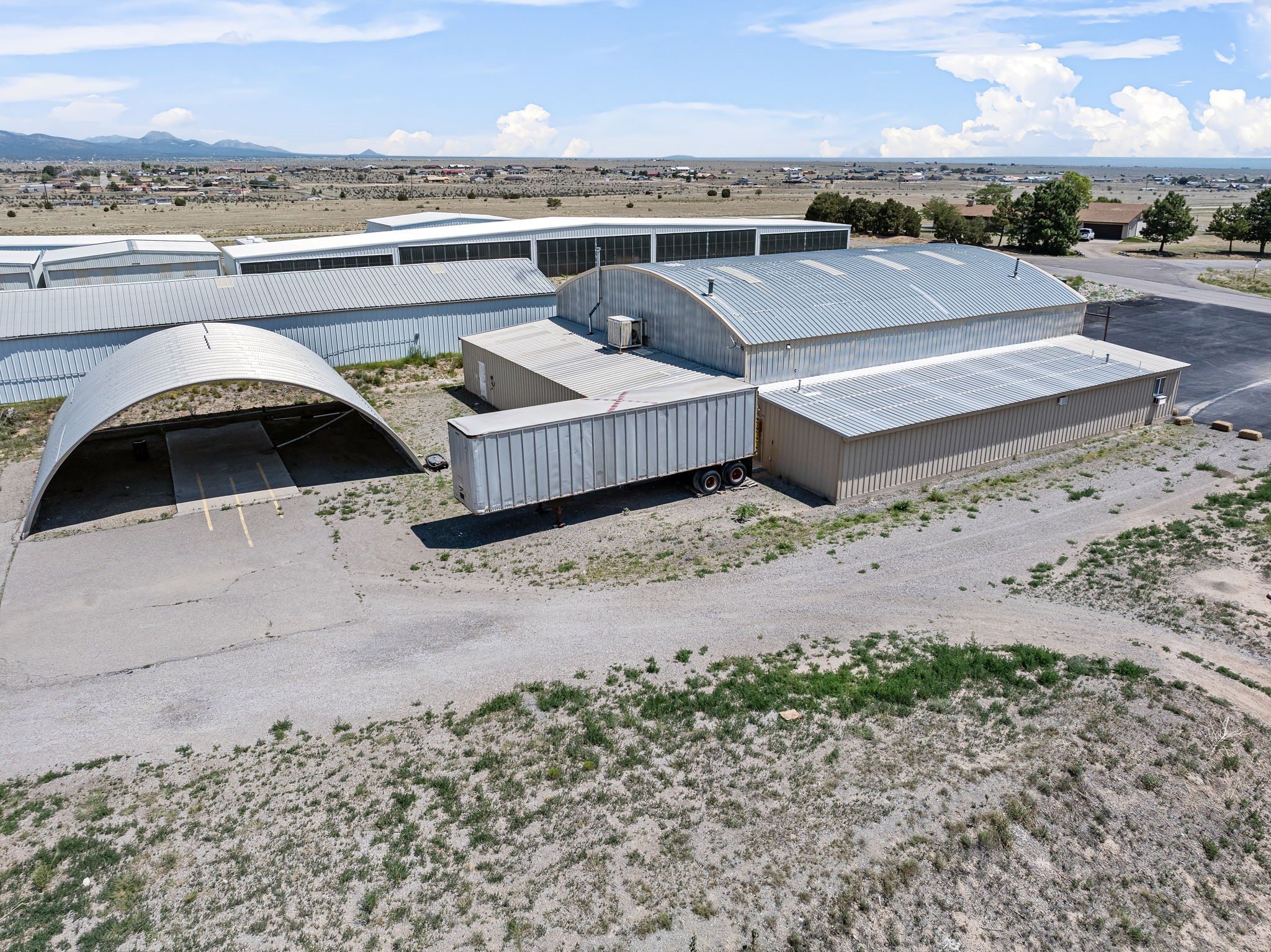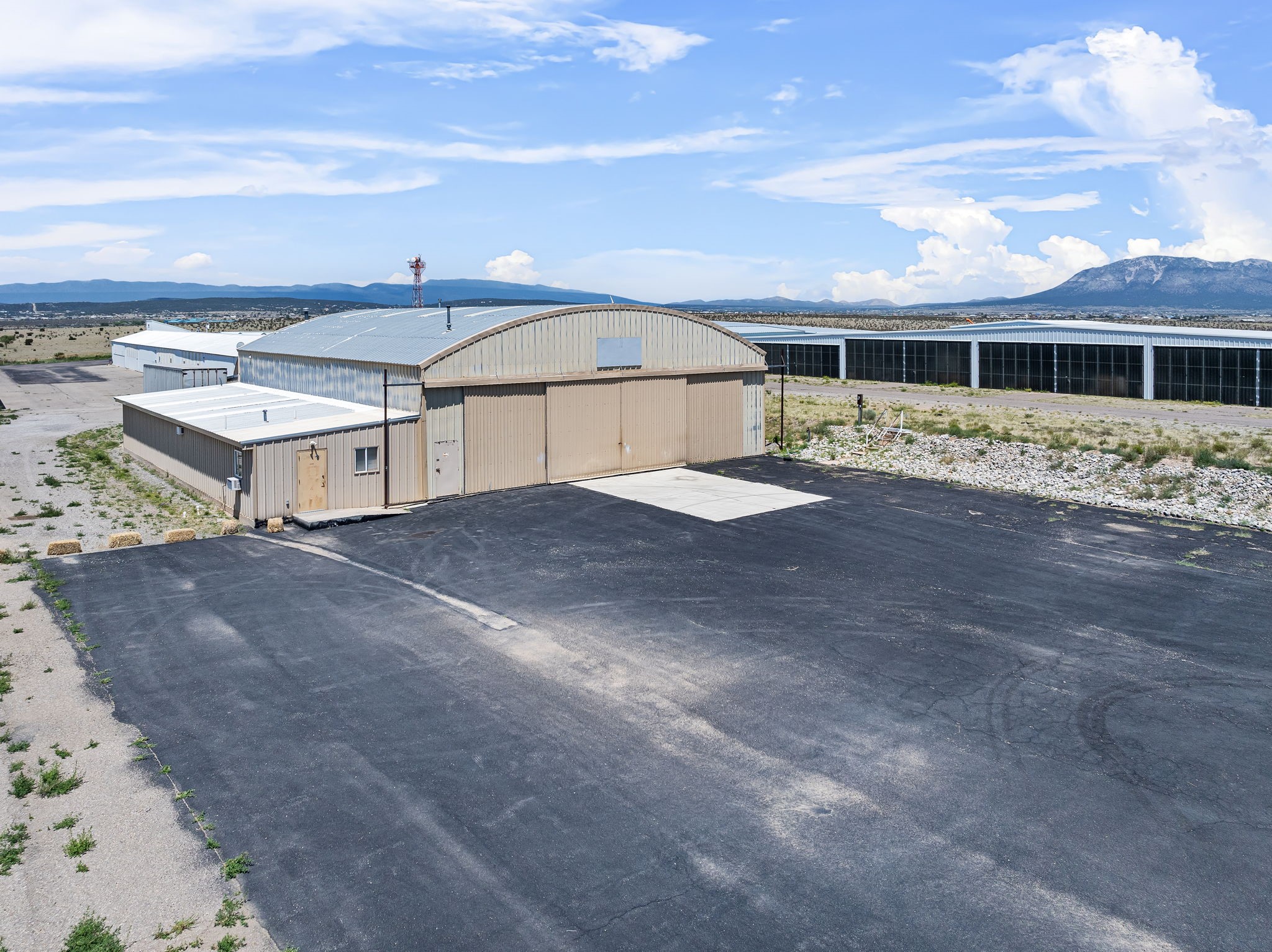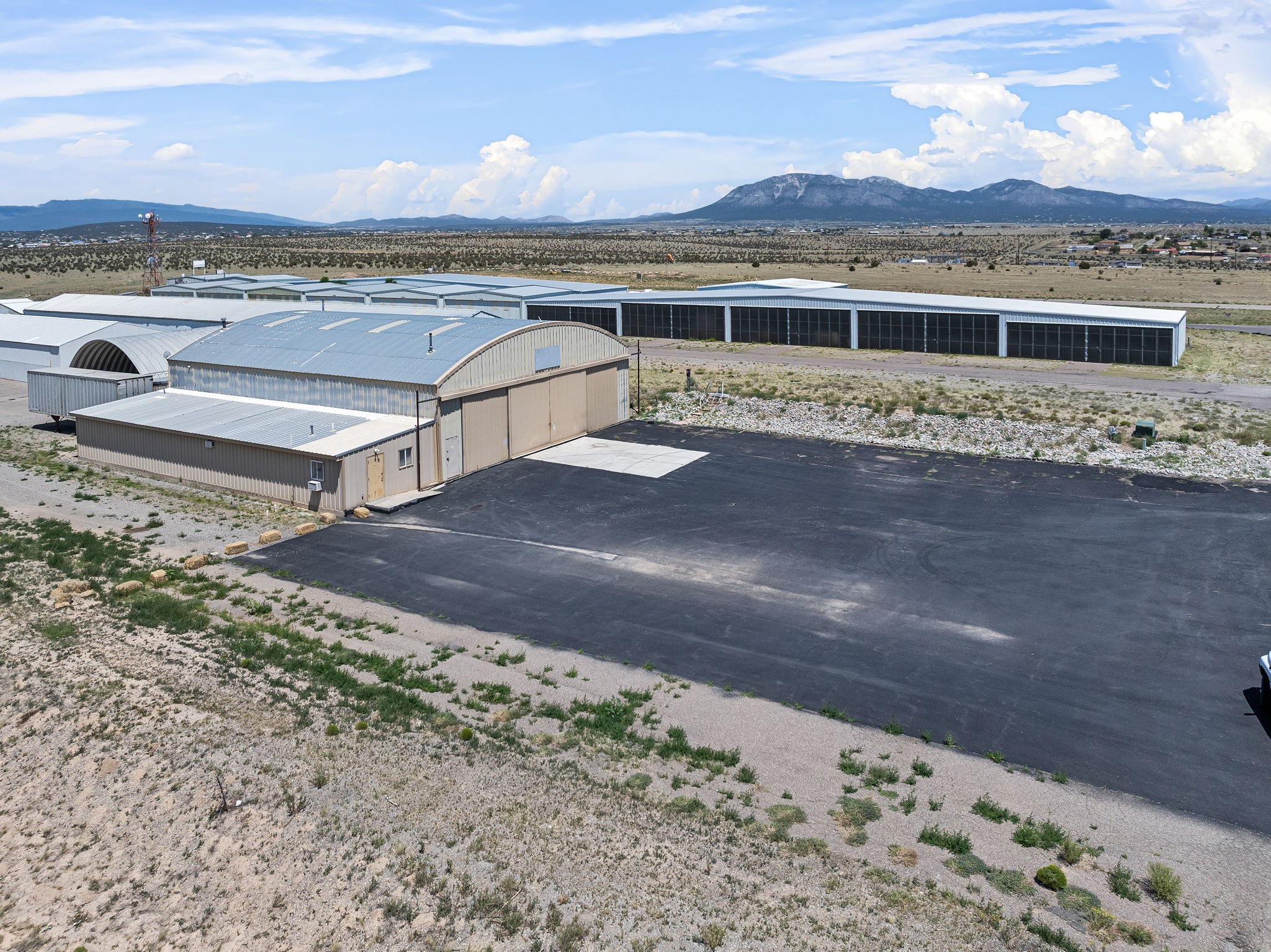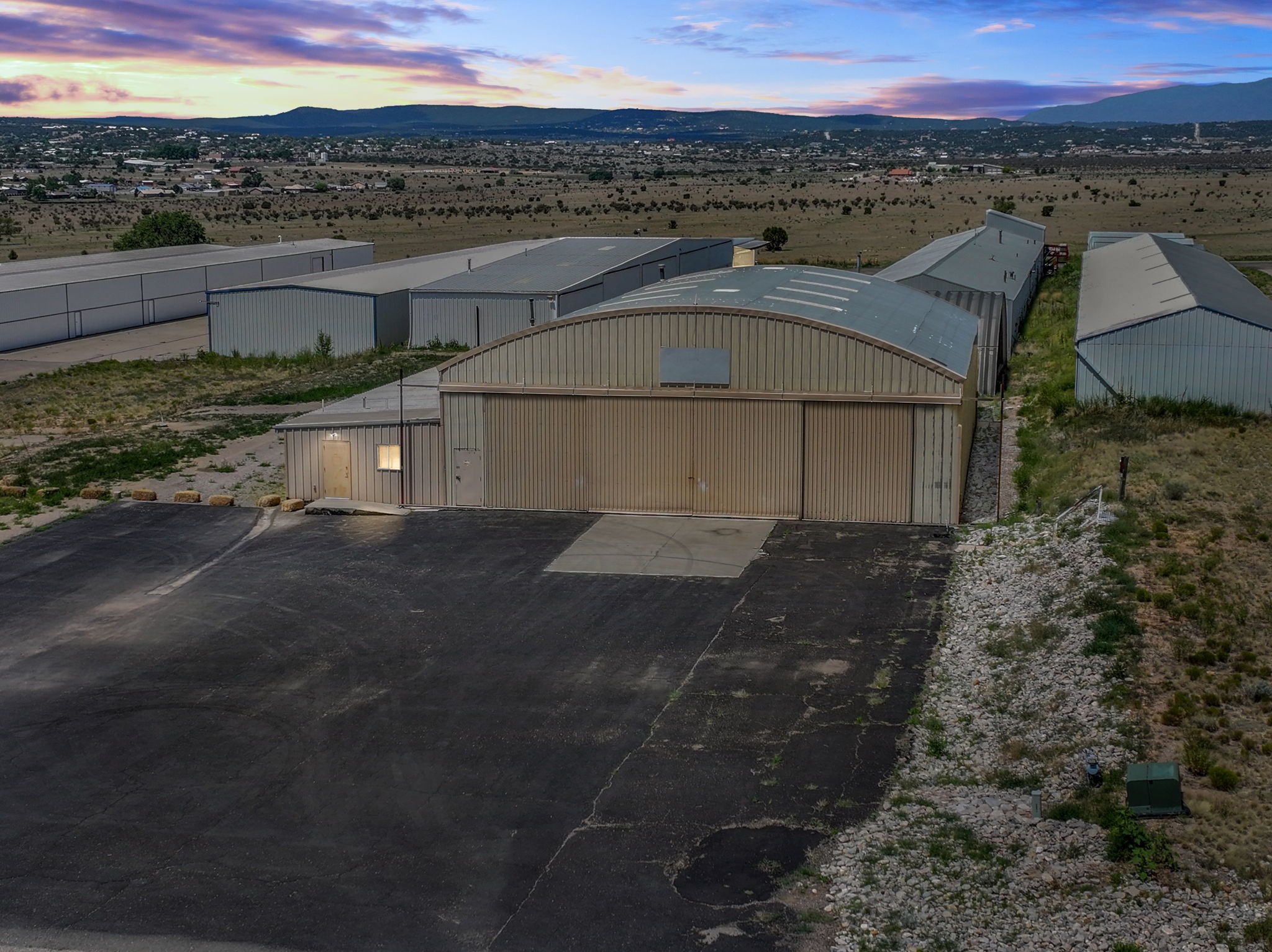 Discover an amazing investment opportunity at Sandia Air Park in Edgewood NM. This property features a massive hangar on a 1-acre lot, offering abundant parking and office facilities, including two bathrooms and multiple rooms for storage or additional office space. The parking area is paved ensuring convenience and ease of access. Beyond the hangar, the property includes a covered area suited for various projects located behind the property. This site offers tremendous potential for a range of uses, making it a versatile investment. This property is ideal for commercial building purposes, airplane storage, and other investment opportunities. Don't miss the chance to capitalize on this outstanding property!