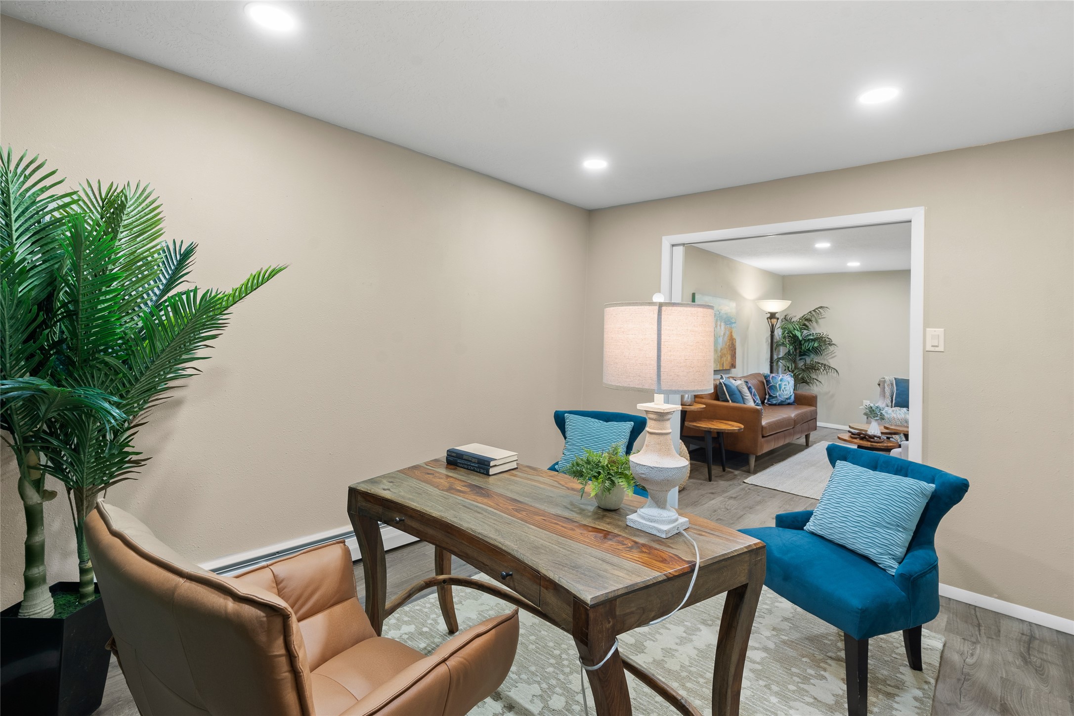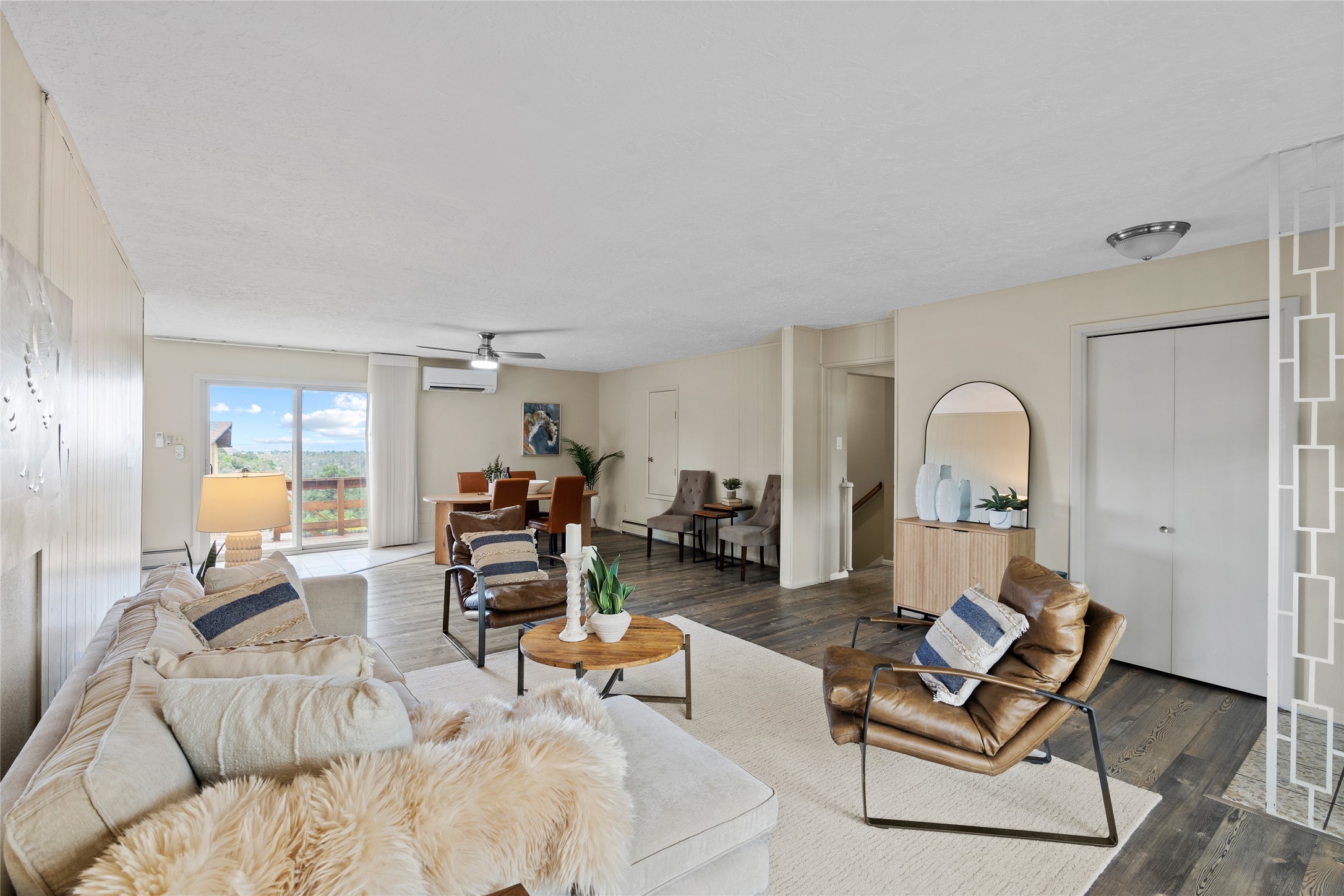 Barranca Mesa, Updated & Move-In Ready, 5 Bedrooms + Office, Mini-Split Air Conditioning, Views, Large 0.488+ Acre Lot, Multiple Living Areas, 2 Car Garage, RV Parking, and More! Welcome to 1091 Barranca!This updated five-bedroom home sits on almost a half-acre lot with beautiful views down the canyon and lots of amenities for you to enjoy life in Los Alamos. The main floor features the living room, dining room, kitchen (with stainless steel appliances, gas cooking, and pantry), observation deck, primary bedroom (with en suite bathroom), two guest bedrooms, and a guest bathroom. With direct garage access, you can enjoy single-level living with the benefit of having additional space below!The downstairs area can be separately locked off from upstairs for potential rental income, if desired. Here, you'll find a kitchenette, dining room, a second living room, two guest bedrooms, an office, a bathroom, and a large (unfinished) storage room. There is direct, walk-out access to the back yard.Addition amenities include mini-split cooling, a tankless hot water heater / boiler combo unit, newer stainless steel kitchen appliances, a radon mitigation system, wildfire-conscious landscaping with defensible space for insurability, a two-car garage, and RV parking with additional off-street parking.Schedule your showing today before this one is gone!