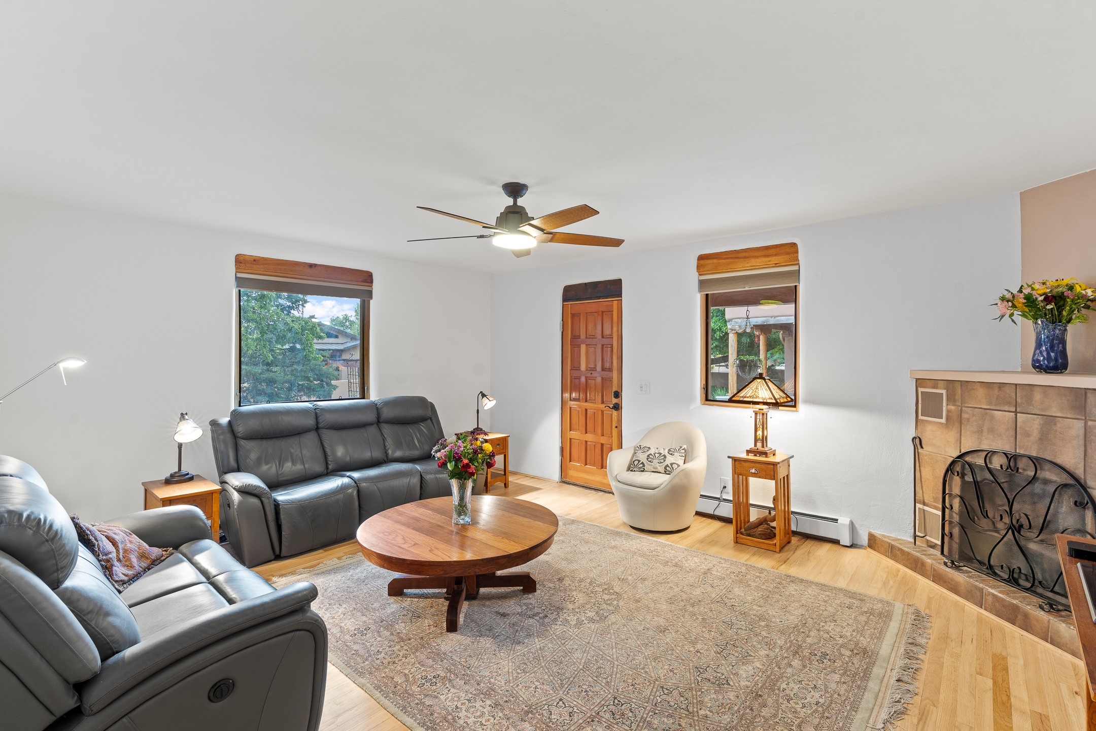 ****Owners may carry with 25% down @ 4.5% P&I, for a monthly payment of $2,853.09 + Plus insurance****Tucked away on a quiet cul-de-sac just behind Whole Foods and mere moments from the vibrant Railyard District and historic Downtown Santa Fe, this inviting 2-bedroom, 1-bath home offers the ideal blend of comfort, character, and convenience. Inside, you'll find gleaming wood floors, and Pella windows that fill the space with natural light. The spacious laundry room offers versatility as a home office or creative studio, perfect for modern living. Enjoy the best of Santa Fe's outdoor lifestyle with both front and back yards--perfect for gardening, relaxing, or entertaining. A detached garage provides additional storage or workspace. High Efficiency boiler and tankless water heater for energy-efficient, on-demand comfort, and a roof under warranty through October 2028. Driveway is shared complete with recorded easement and maintenance agreement. Zoned for the sought-after Wood Gormley school district. This home is a rare opportunity in one of Santa Fe's most desirable and walkable neighborhoods.
