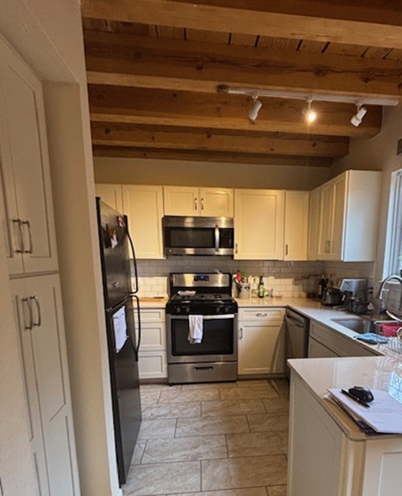 This Condo is located in the center of South Capital across the street from Body and Clafoutis! Walk to everything, Trader Joes, Trove, Maria's, or Whole Foods! This large, open and comfortable condo features Santa Fe detailing like beams and kiva fireplace. It has 3 large bedrooms and 2 baths. This lovely property can be used as one large home, or two separate rentals for residential or professional office space. Newly upgraded kitchen with clean lines and bright, sunny interior, new carpet and boxcar tile, insulated acoustic wall for privacy, tiled baths, built in bookshelves, cozy courtyard, fenced and with plenty ofparking, The perfect Pied de Tierre in a fantastic location in Santa Fe! Was a Vacation Rental, Short term rentals are permitted and one does not need a short term rental permit from the City. Just a simple registration due to zoning. Short term one side and long term the other and this property will generate great income. Or live in one side and run your business from the other. $9,000 dollar decorators allowance being offered by Sellers.