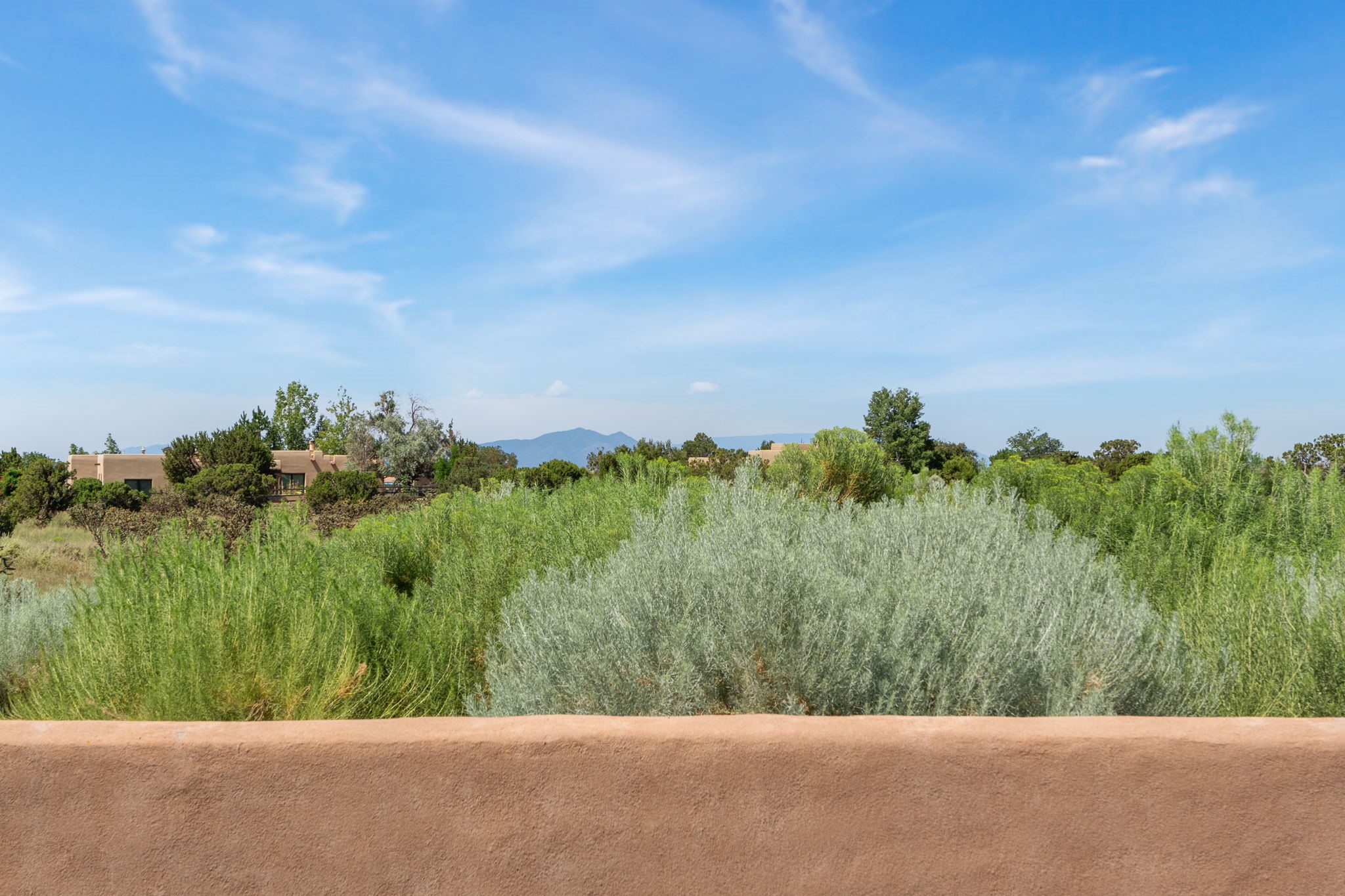 Beautiful, single-level Eldorado home with views, great floorplan and pre-inspected! Two living areas, both with vigas and kiva fireplaces. Den and office have large built-in bookcases. In-floor, natural gas radiant heat and 4 splits for air conditioning and heat. Light and bright studio has a cement floor and is detached from the house with two entrances and has a split for heat and AC - can also be accessed from the garage. Front and back walled courtyards with the rear portal running the length of the property. Generous kitchen has views, stainless appliances, loads of counter space and storage. California closet systems in each bedroom. Home has been pre-inspected and most repairs are complete. Report available on request. Recent roof maintenance with 1-year warranty. NO STEPS. NO KITEC. Radiant heat is Onix. Domestic plumbing is copper. Weil-McClain boiler and Bradford White water heater, both new in 2016. Recent new hot water recirculating pump installed. Proper laundry room with sink and storage. New shed is 10' x 12. Septic inspection is completed and report in supplements. Lot corners are flagged. Four raised garden beds. This home has abundant storage. Sparkling clean and ready to go!