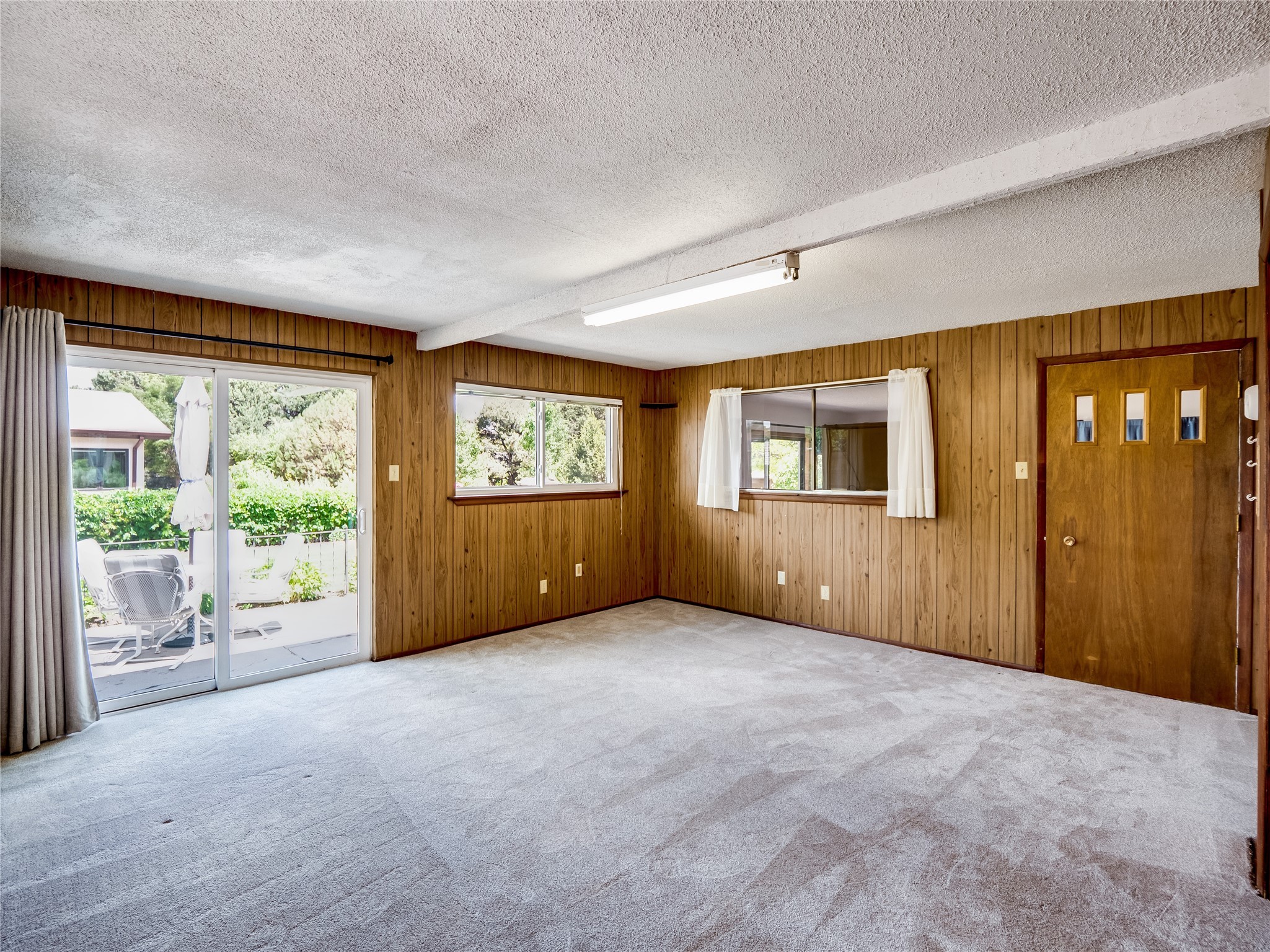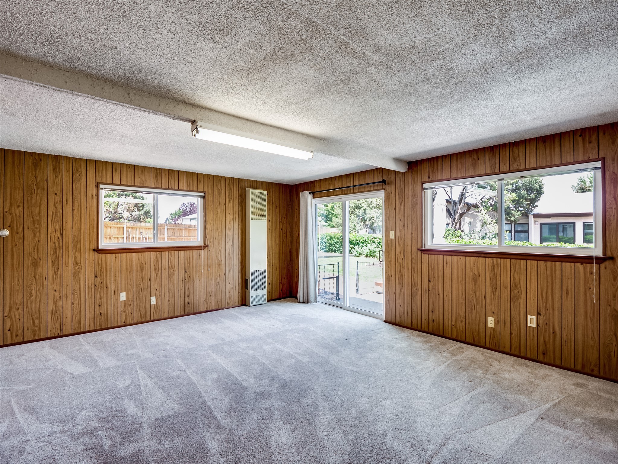 Welcome to this sensational ranch-style home in White Rock with beautiful curb appeal. A lush, green lawn and mature shade trees frame the front of the property, complemented by colorful flower beds that create a warm and inviting entrance. Step inside to find plush carpet flooring that runs throughout, adding comfort and continuity. Just off the entryway to the left is a versatile bonus room or den--ideal for a home office, study, or creative space--framed by elegant pillars that give the area a sense of separation and style. Continue forward into the cozy living room featuring a wood-burning fireplace, perfect for chilly evenings and relaxing with loved ones. The adjacent galley-style kitchen includes wood cabinets with chrome hardware and offers ample prep space, as well as a designated dining area for casual meals A 260 sq. ft. bonus room with access to backyard can be a kids play room, exercise room, a room for arts and crafts, a fifth bedroom or a great man cave! Nearby is access to the two-car garage and a convenient laundry space, providing everyday functionality. Step down into the formal dining room, filled with natural light from the surrounding windows and glass sliders that lead directly to the back patio and yard. Connected to this space is a large family room, offering another access point to the backyard, a perfect setting for gatherings, movie nights, or game days. A beautifully renovated modern guest bathroom with a white single sink vanity and a fully tiled shower/tub combo. At the end of the hall, the spacious primary en-suite overlooks the peaceful backyard and includes a walk-in closet and a private bathroom with a tiled walk-in shower and single sink vanity. The expansive backyard is a true oasis, with a lush green lawn, vibrant flower gardens, and irrigated vegetable planters--perfect for any green thumb. There's also side-yard access to park a vehicle or RV. A large patio area is ideal for outdoor dining and entertaining under the open sky.
