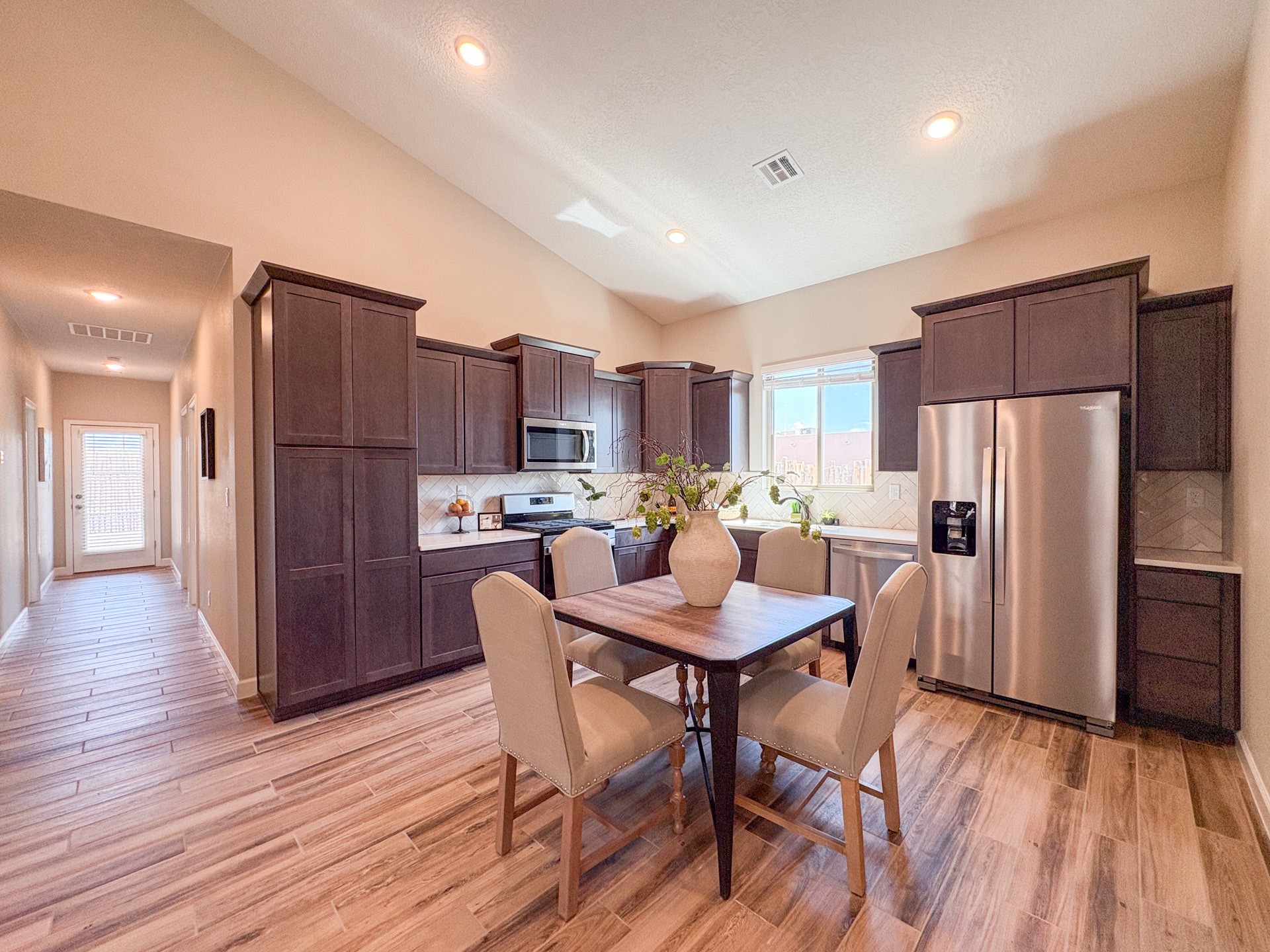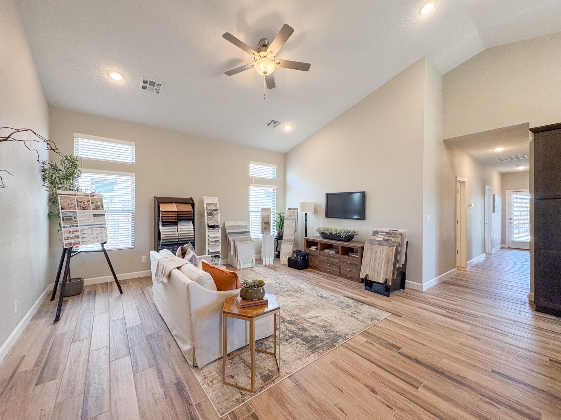 The current model home of the Miraflores community, this home has all the extras you could hope for. Four spacious bedrooms and two bathrooms, there's plenty of room for the whole family to spread out and relax. Step inside and you'll be greeted by 1,544 square feet of thoughtfully designed living space with an open floor plan that creates a seamless flow between rooms, perfect for entertaining or enjoying quality time with loved ones. Extra features include upgraded backsplash, cabinets, flooring, counters, and more! Energy-efficient features throughout the home help reduce your carbon footprint while also keeping those utility bills in check. Don't miss your chance to make this stunning new construction your forever home. Schedule a viewing today and prepare to fall in love!