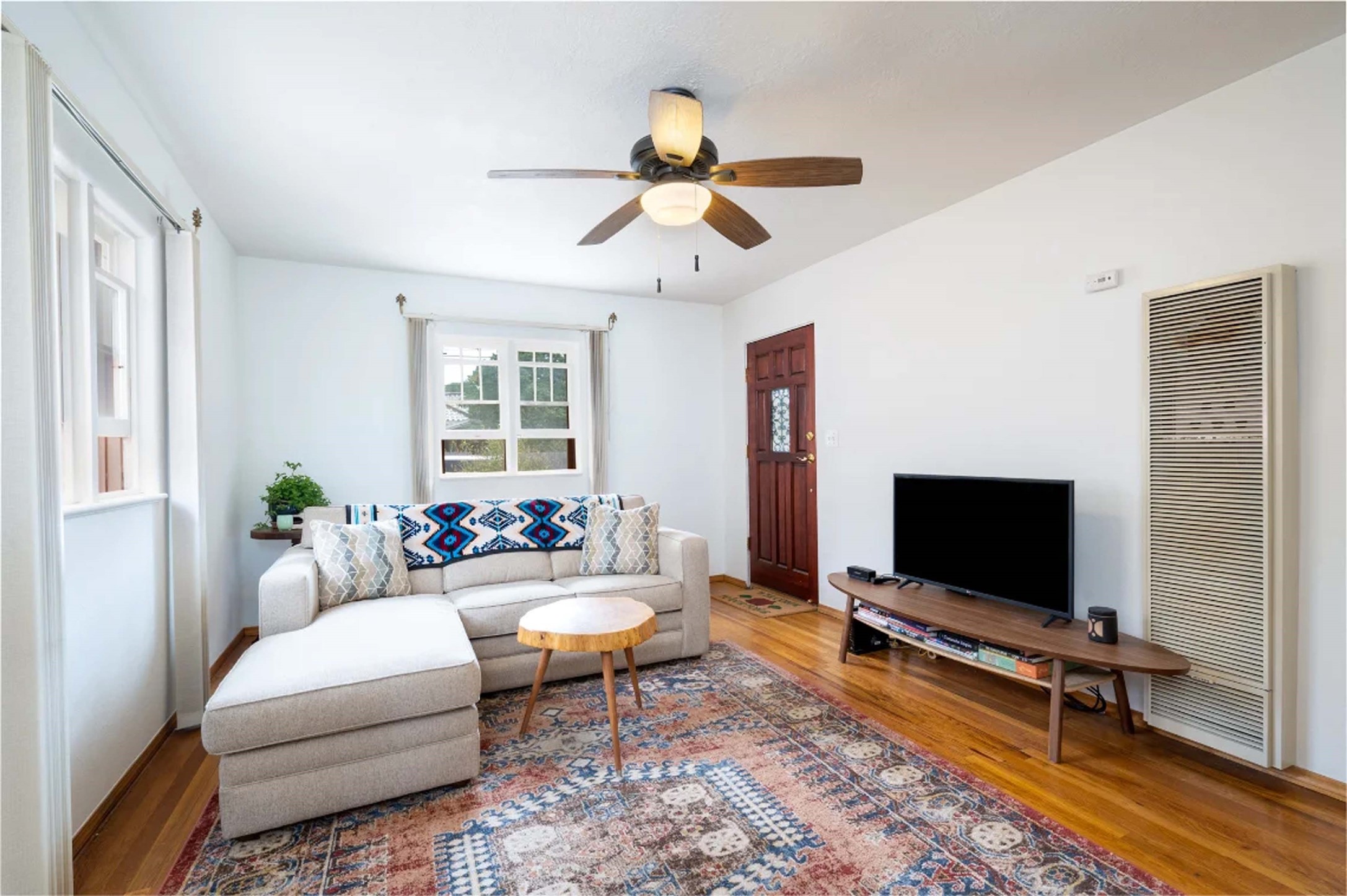 Tucked behind curved, gated walls in the heart of South Capital, this historic Spanish Pueblo Revival home offers the ideal blend of charm, location, and income potential. Built in the 1930s with iconic 15-inch adobe walls, original hardwood floors, and divided-light sash windows, this home exudes authentic Santa Fe character. Currently operating as a successful short-term rental, this property has a strong rental history, making it an excellent opportunity for investors or those looking to offset ownership costs with passive income. The thoughtful floor plan includes two private bedrooms, a spacious living area, and excellent flow for both hosting and relaxing. Step outside to enjoy the beautifully crafted flagstone patio and shaded portal, surrounded by mature trees and romantic gardens. Backing onto the historic Arroyo Tenorio Acequia, the setting is peaceful yet connected. Boasting a Walk Score of 91, you're just moments from the Plaza, River Walk, top-rated restaurants, cafes, art galleries, and Santa Fe's vibrant cultural scene. Whether you're seeking a charming residence, a part-time pied--terre, or a turn-key rental investment, this South Capital gem delivers. Imagine the Possibilities and make this beautiful home yours!