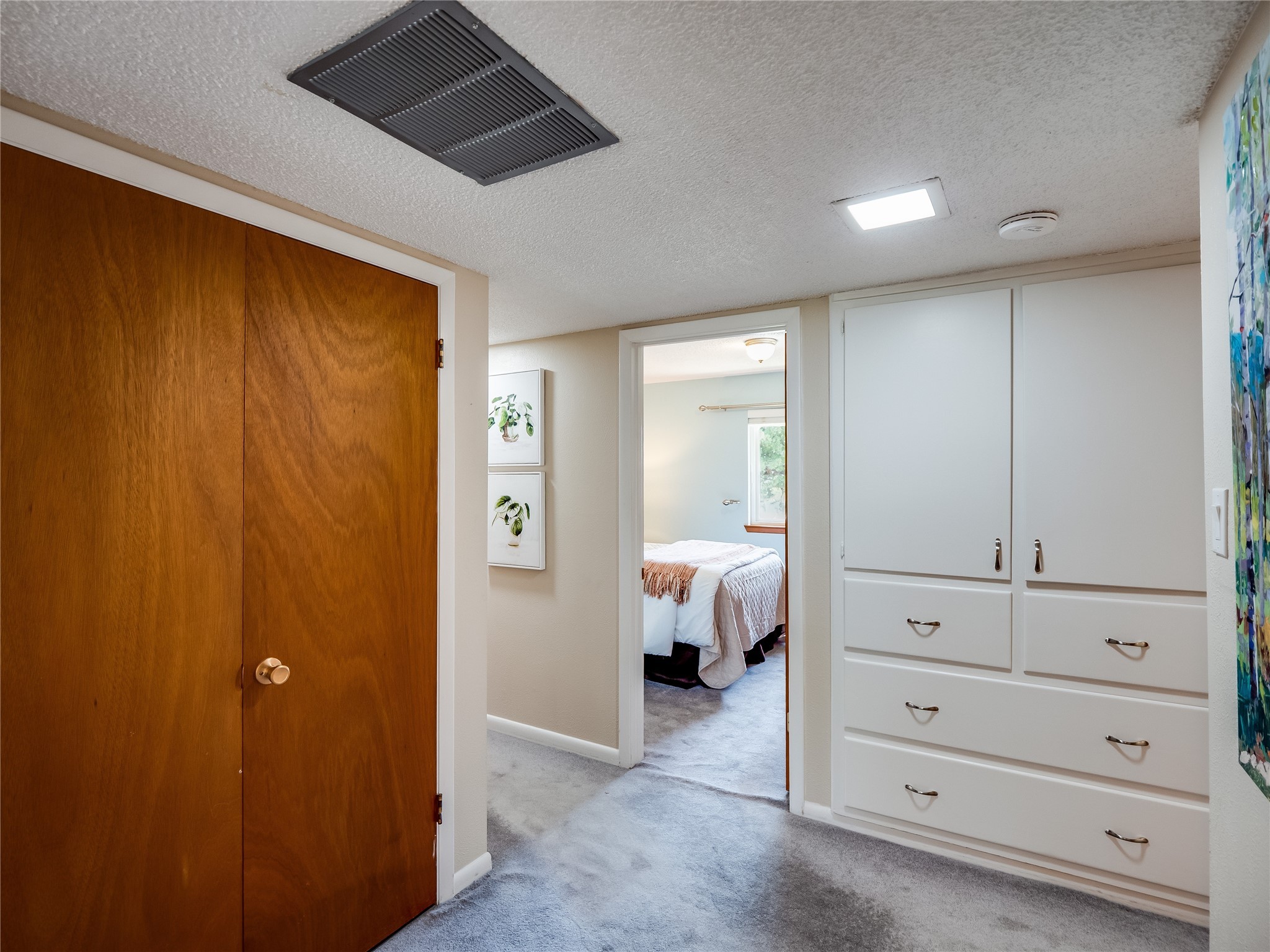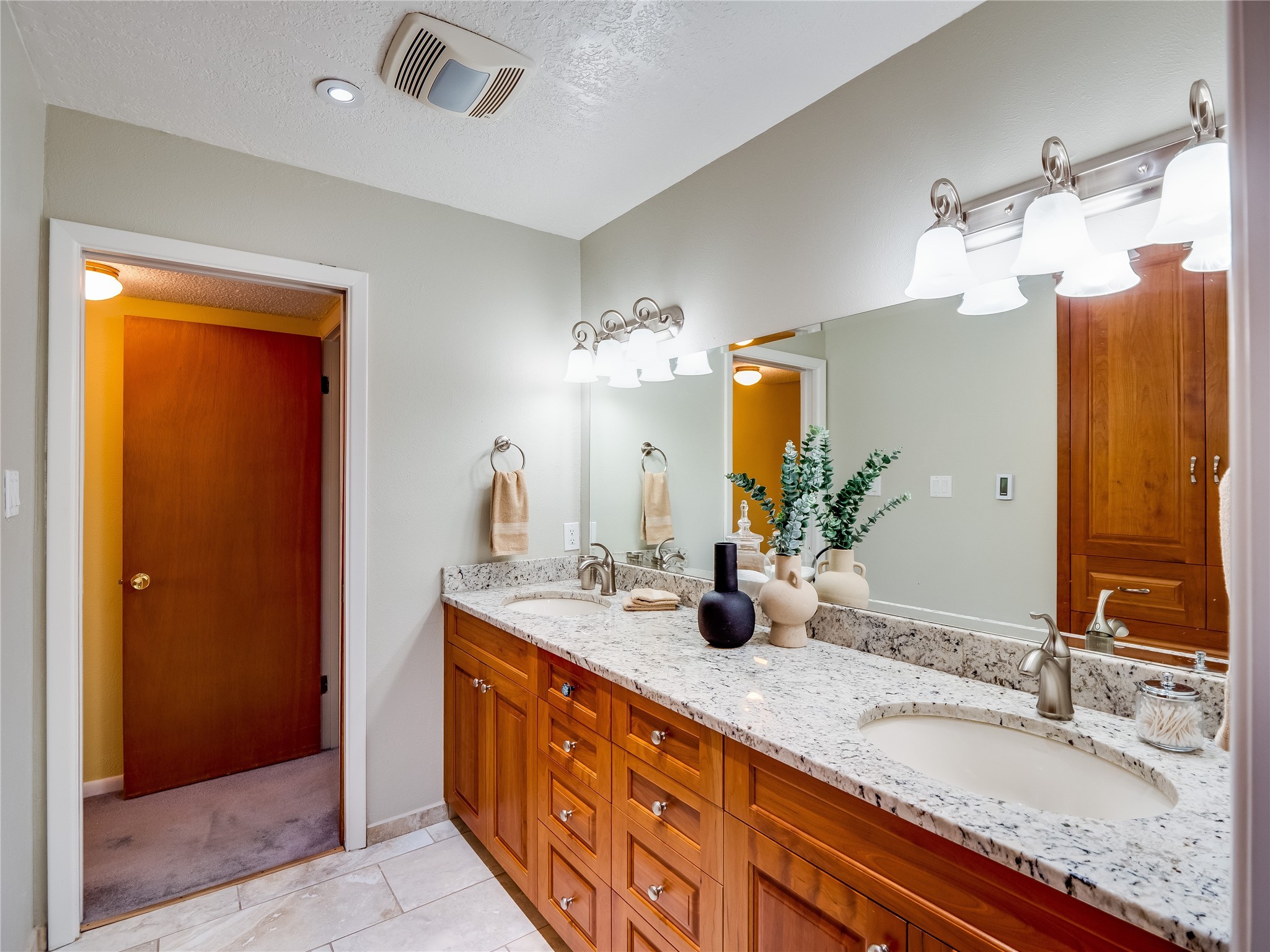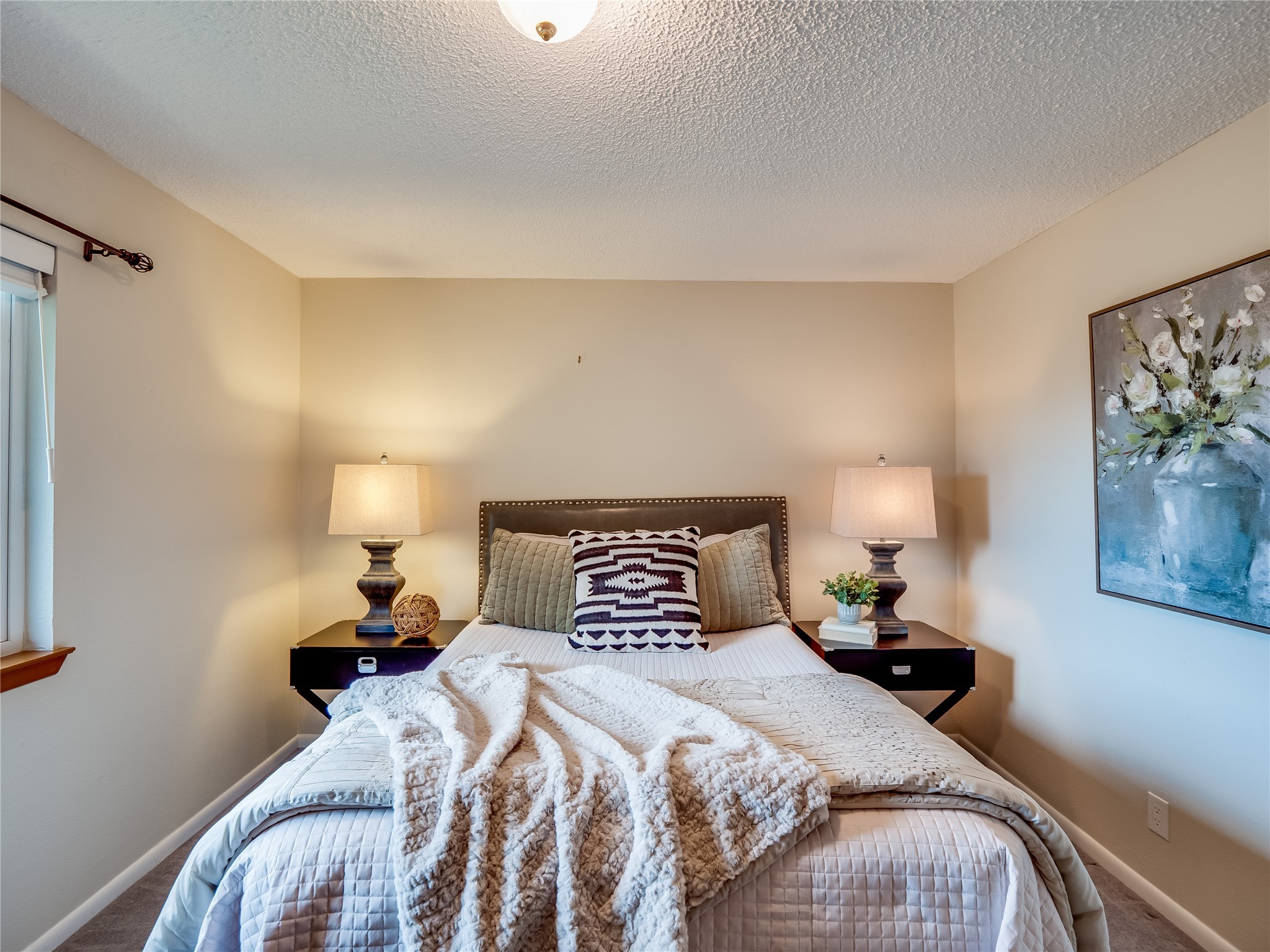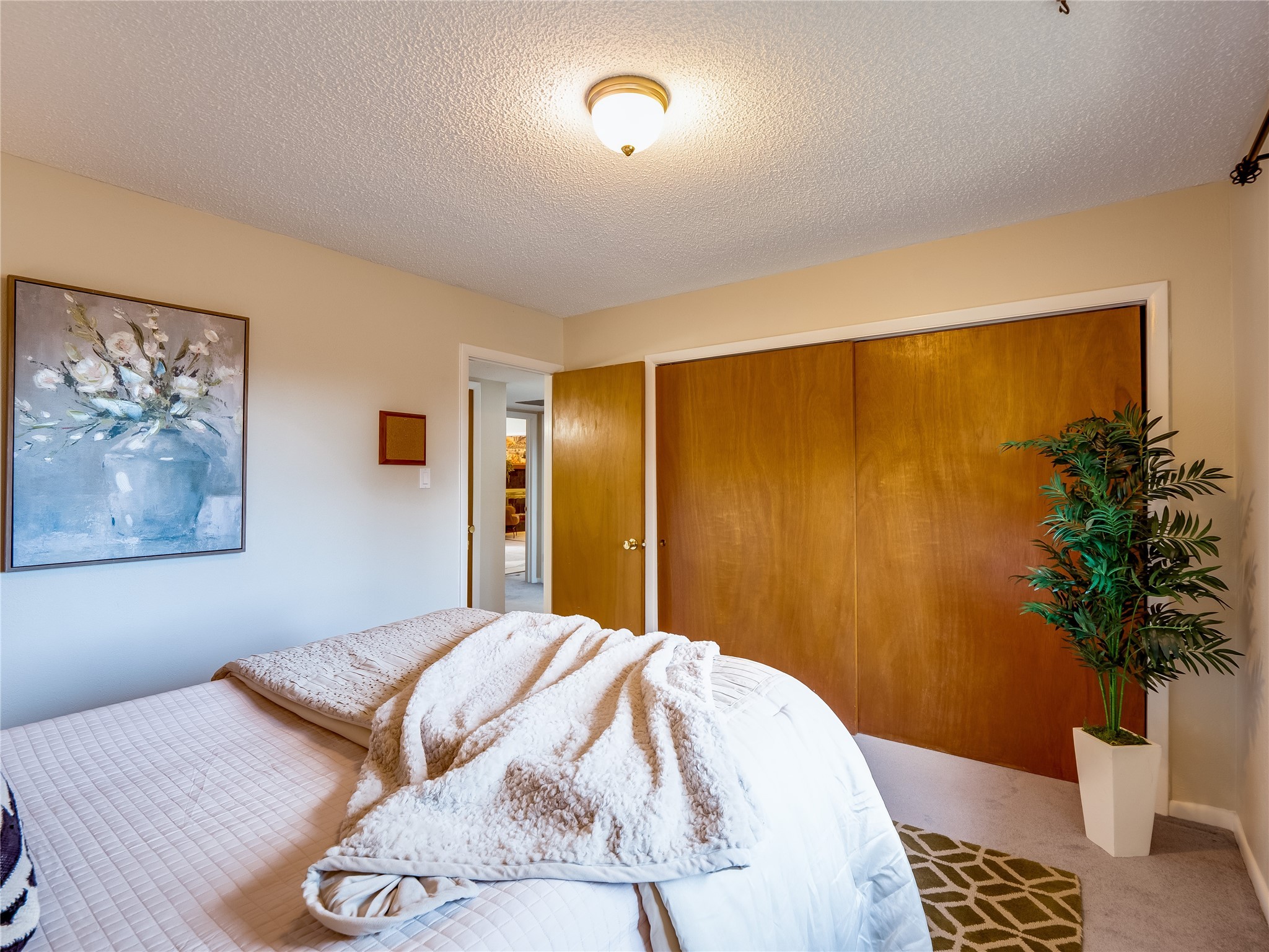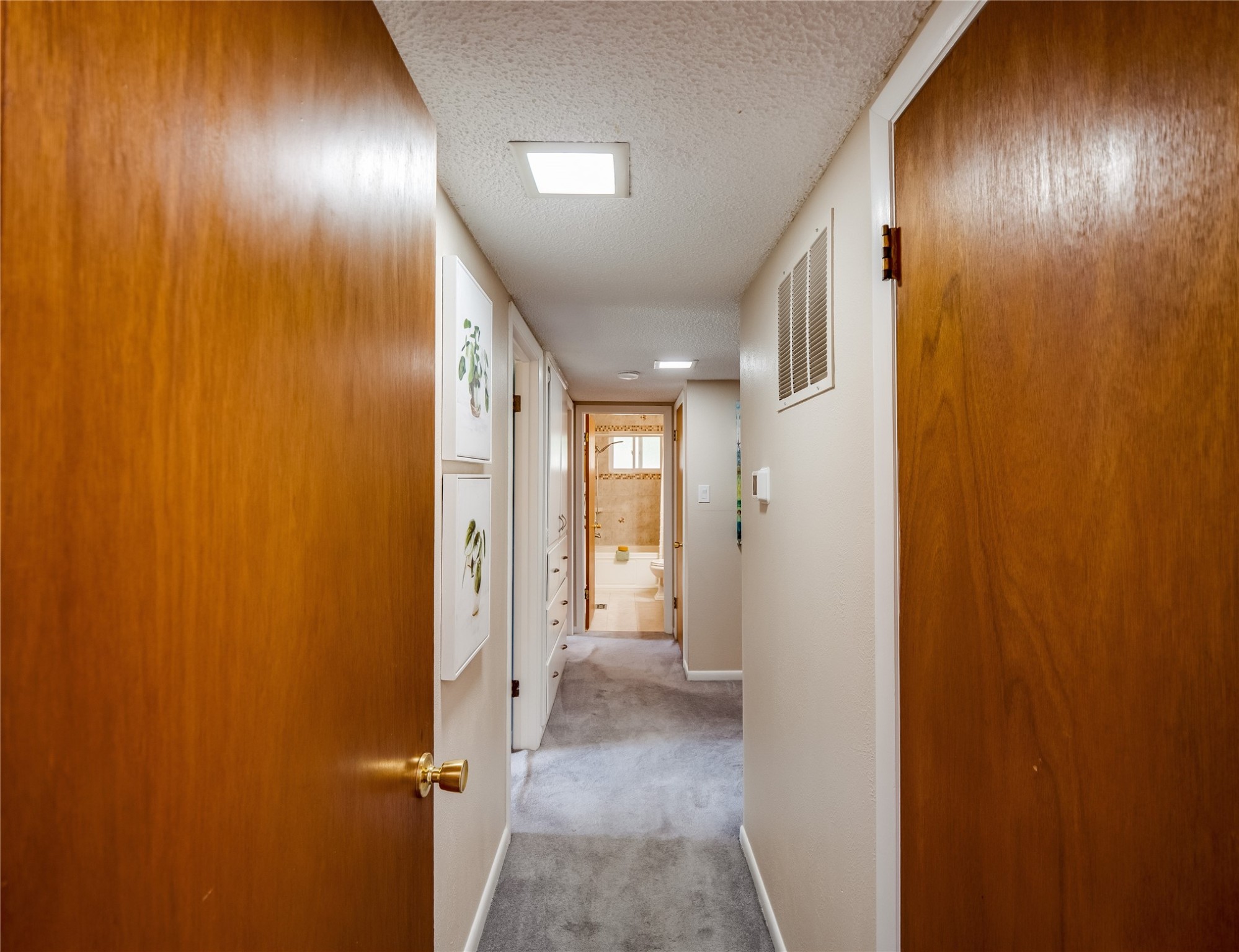 This beautifully remodeled custom Ranch-style home sits on a spacious corner lot with a meticulously maintained front yard. Step inside through the tiled foyer and into the expansive living and dining area, where plush carpeting and a wood-burning fireplace create a warm and inviting atmosphere. Just off the living space, a step-down family room with a cozy gas stove and sliding glass doors provides direct access to the backyard. The heart of the home is the gorgeous remodeled galley-style kitchen, complete with cherry wood cabinets and chrome hardware, granite counters, a travertine tile backsplash, and stainless steel appliances including a five-burner gas stove and double oven. Off the breakfast nook there's a hidden laundry closet with a stackable washer and dryer. Access to the two-car garage with a workbench, attic storage, and EV charging outlet. A private office/den sits just off the living area behind elegant glass pocket doors. Down the hall, you'll find two nicely sized guest bedrooms, and a beautifully appointed guest bathroom with a marble-topped single sink vanity and a soaking tub. The spacious primary en-suite is a true retreat, featuring a large closet, built-in drawers and cabinets, and a chandelier that adds a touch of sophistication. The spa-like bath includes a double sink vanity with granite counters and chrome fixtures, radiant floor heating, built-in cabinetry, and a beautifully tiled walk-in shower with a glass enclosure. This home has been thoughtfully upgraded with a new roof, updated electrical panel, central air conditioning and heating unit, a new water heater, and more. The expansive backyard is a private haven with a lush lawn, colorful flower garden beds, mature fruit trees, ideal for entertaining or quiet enjoyment. Multiple access gates, including a wide side gate with a concrete pad for RV parking and more. With thoughtful design, high-end finishes, and impressive upgrades throughout, this move-in-ready home is a rare find!